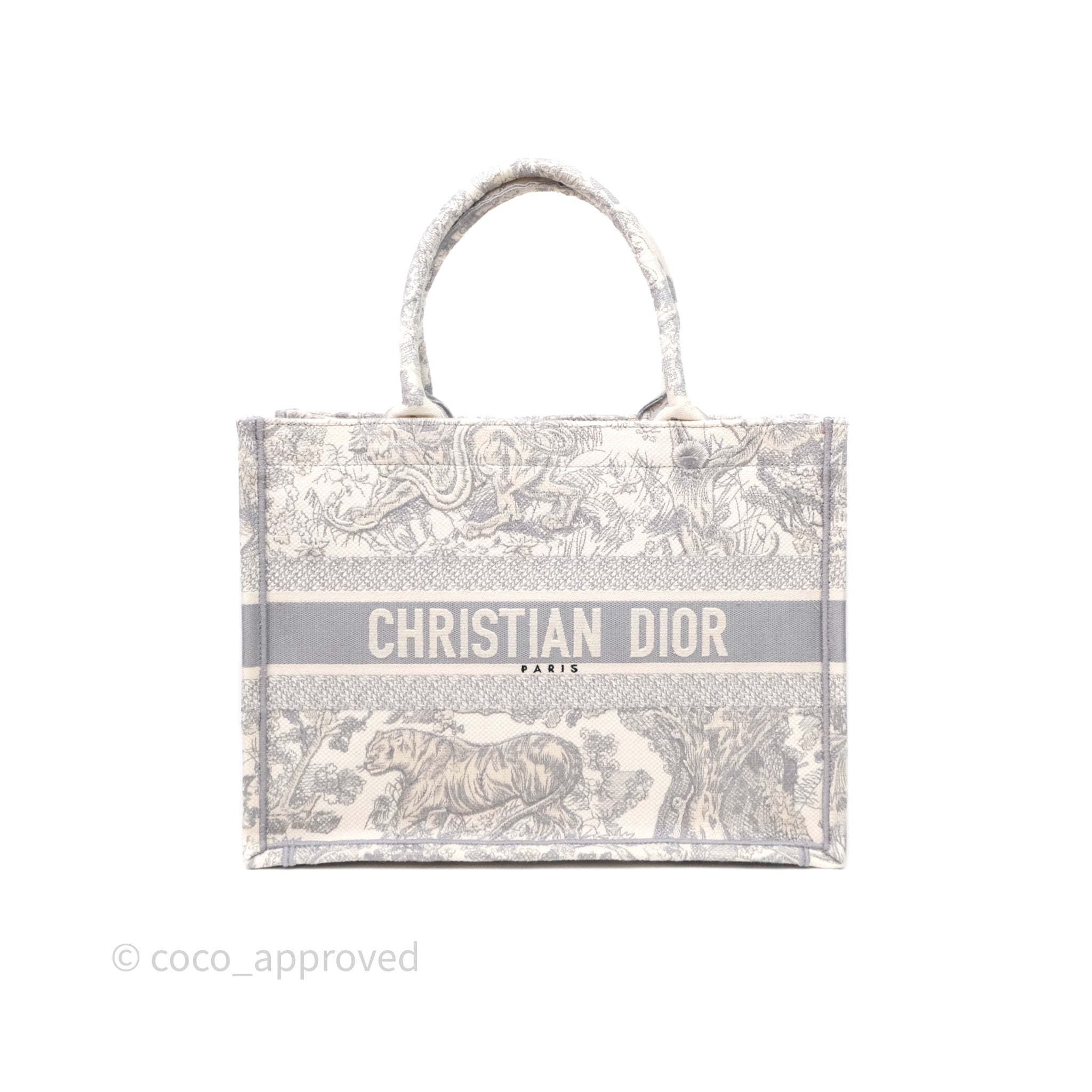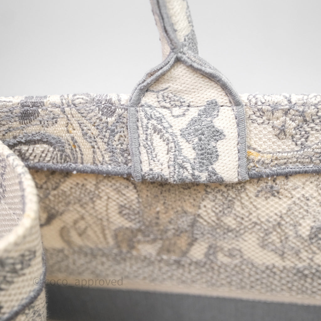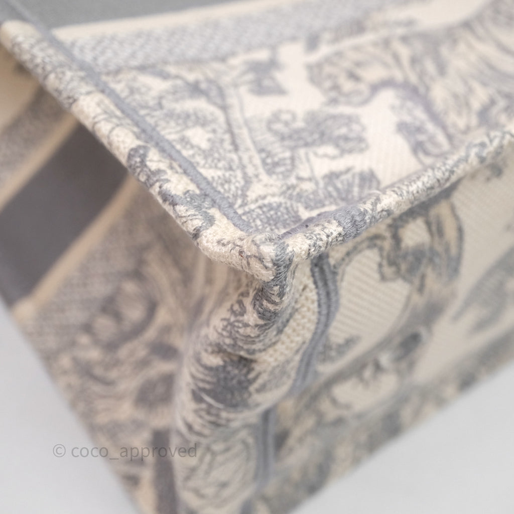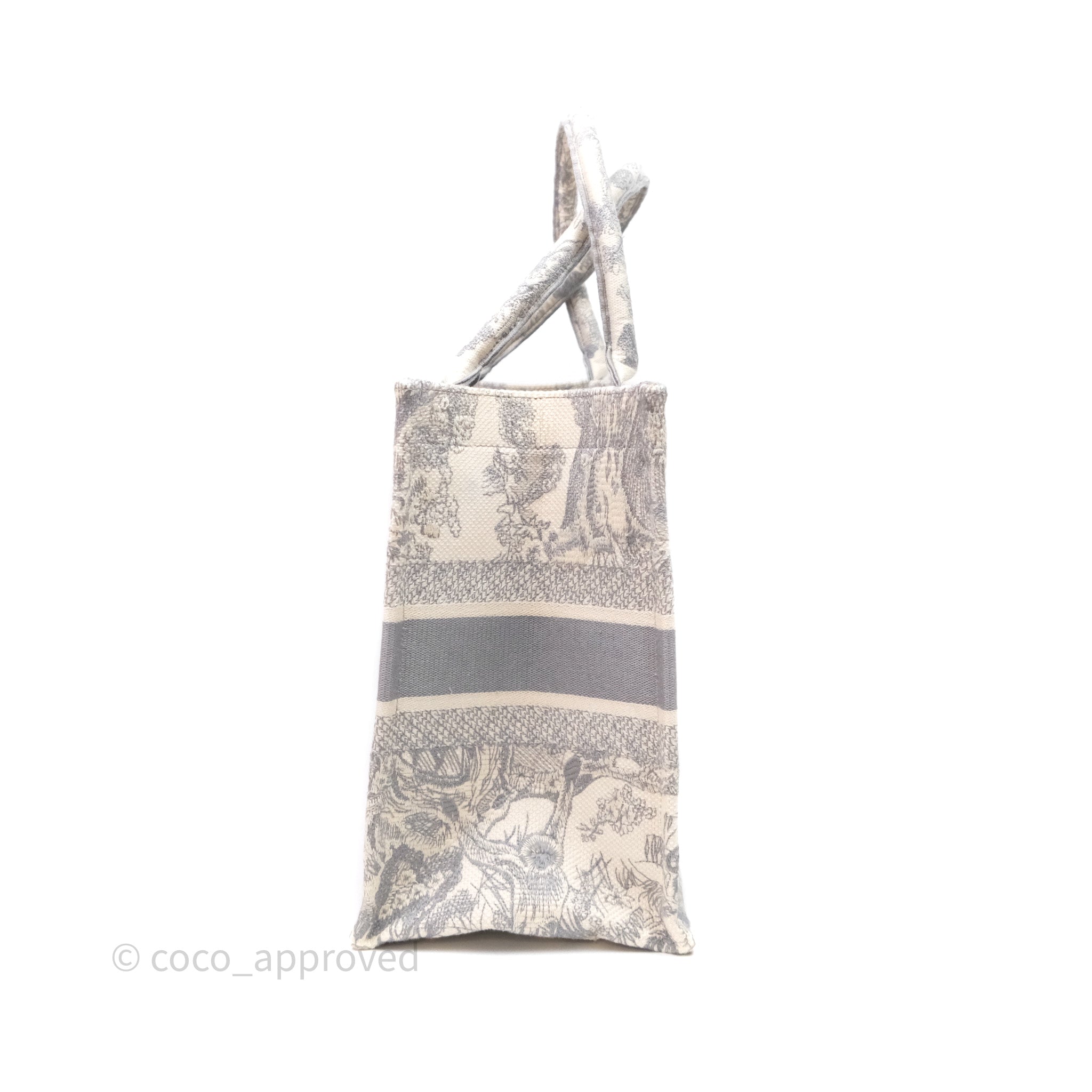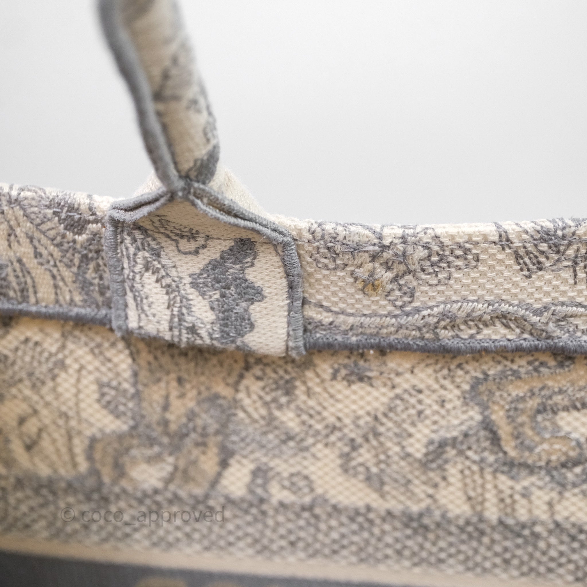 Christian Dior Medium (Old Small) Embroidered Toile De Jouy Light Grey Canvas Book Tote