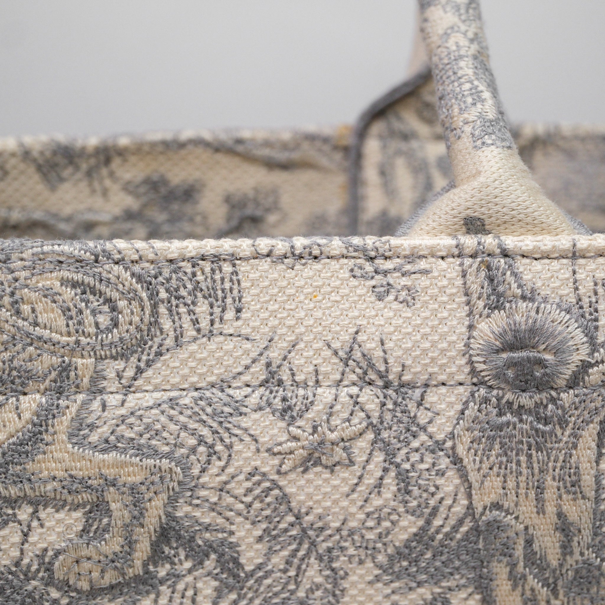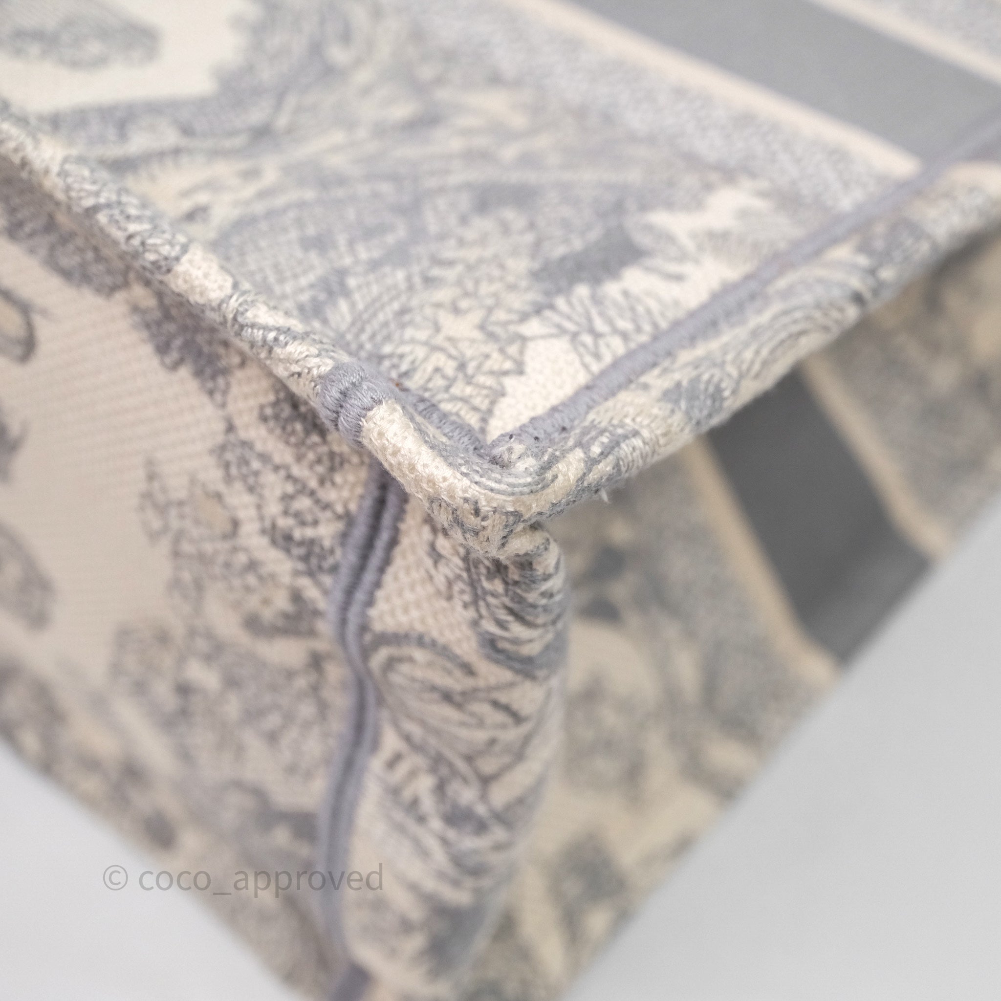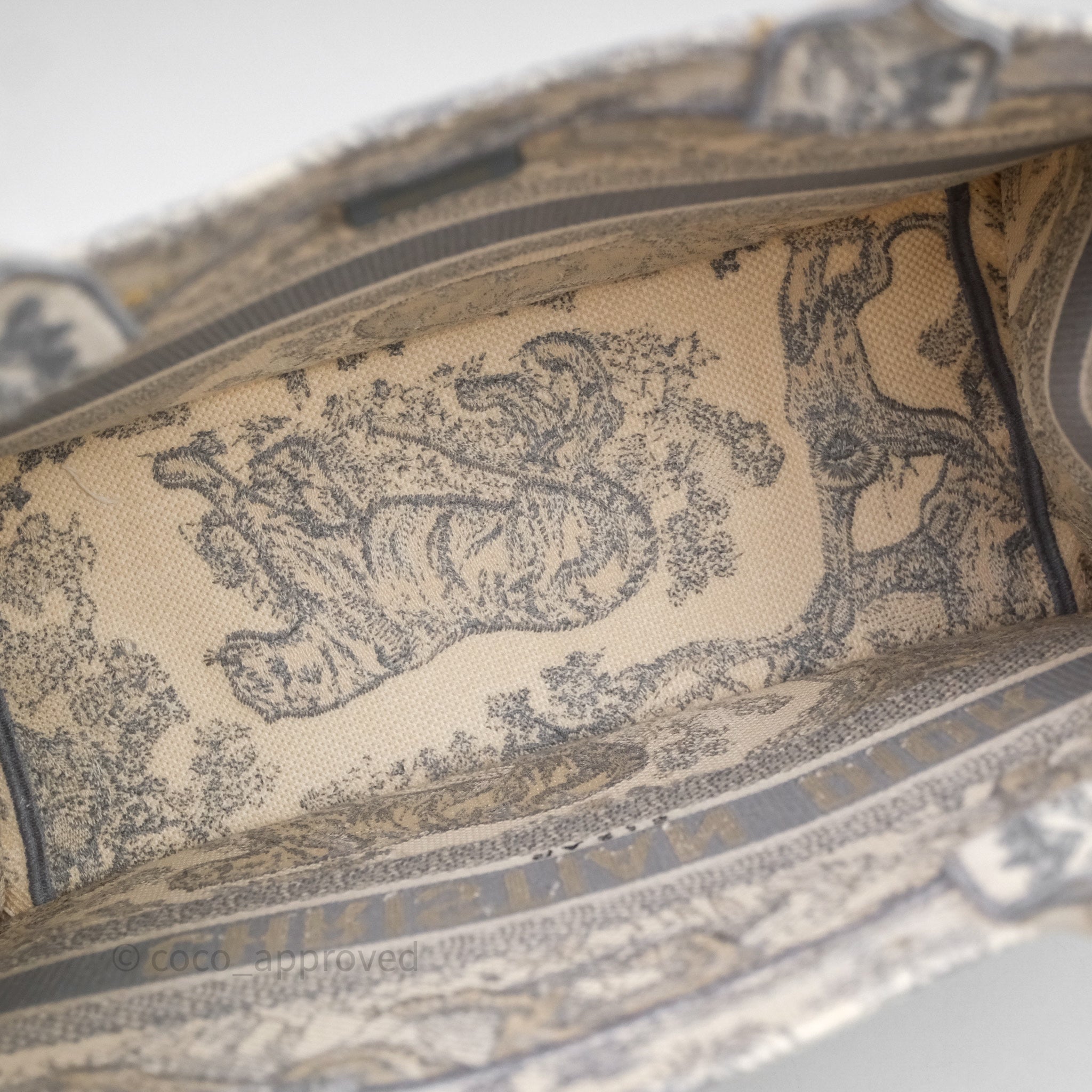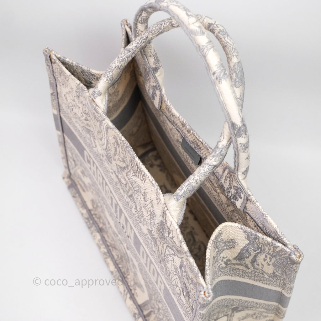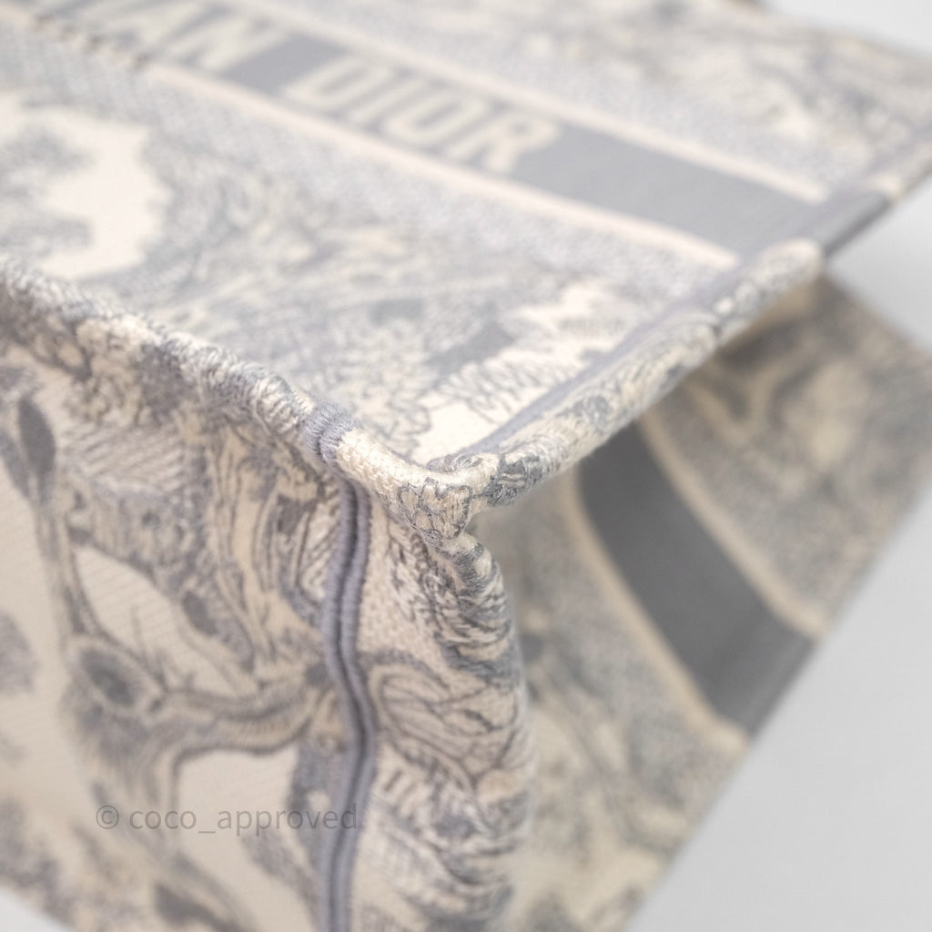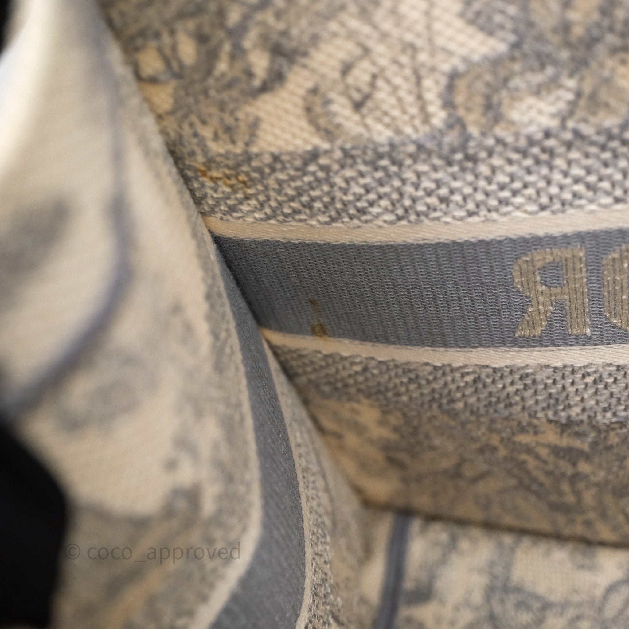 Christian Dior Medium (Old Small) Embroidered Toile De Jouy Light Grey Canvas Book Tote