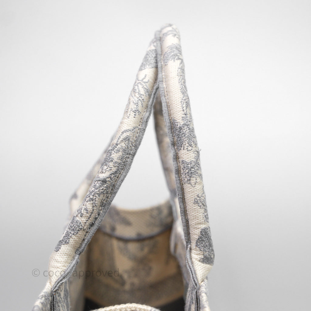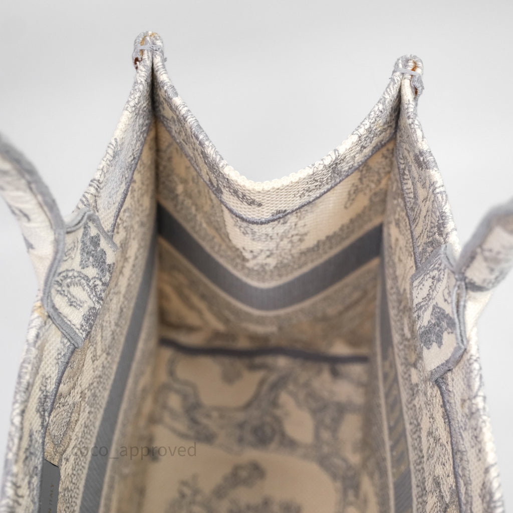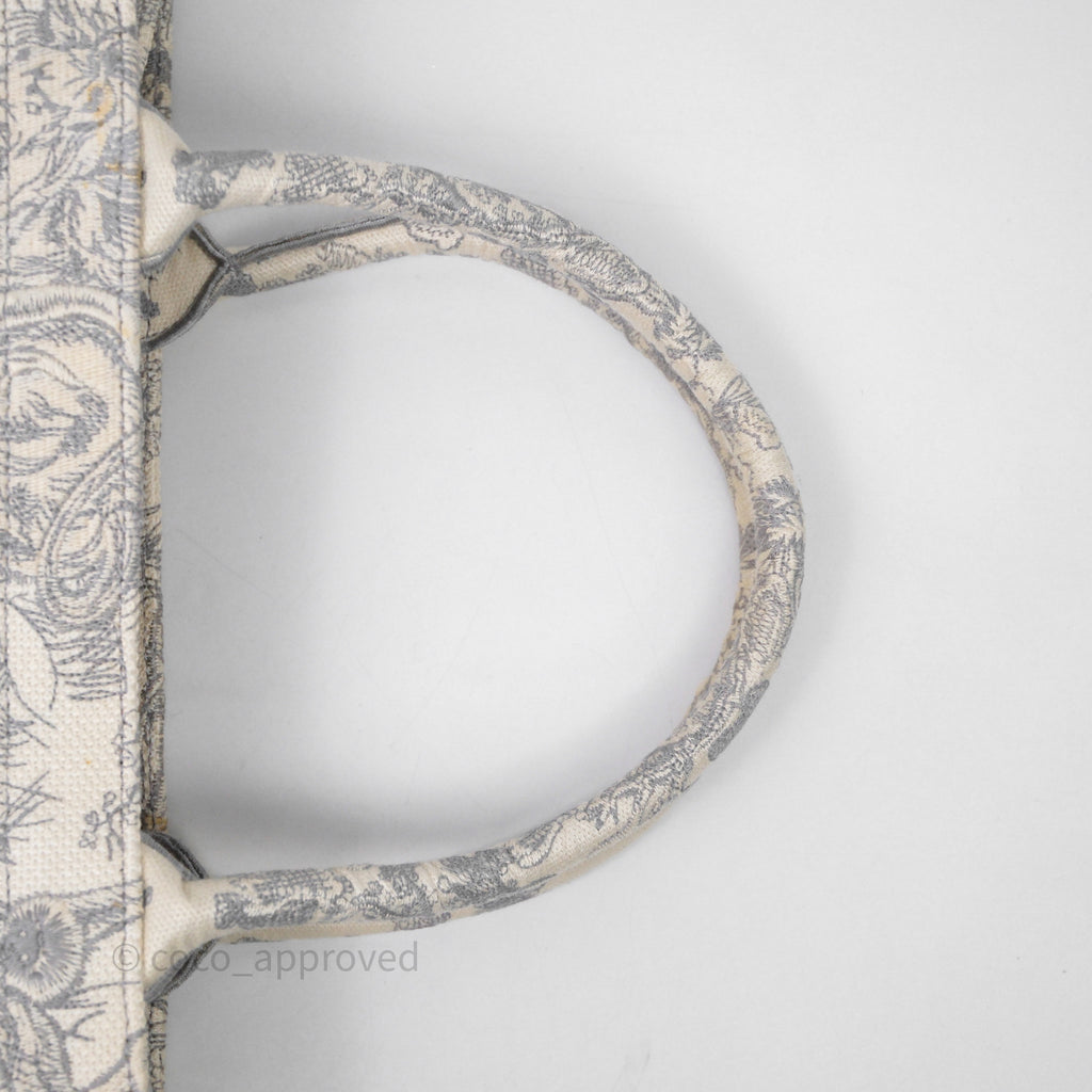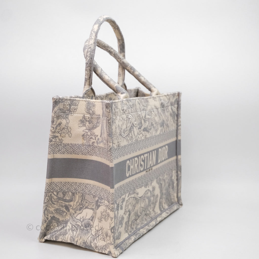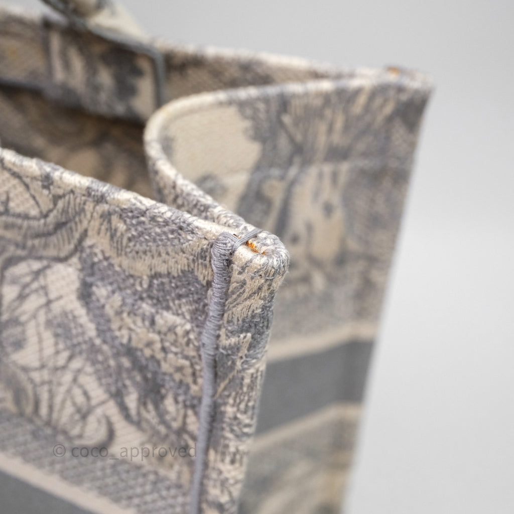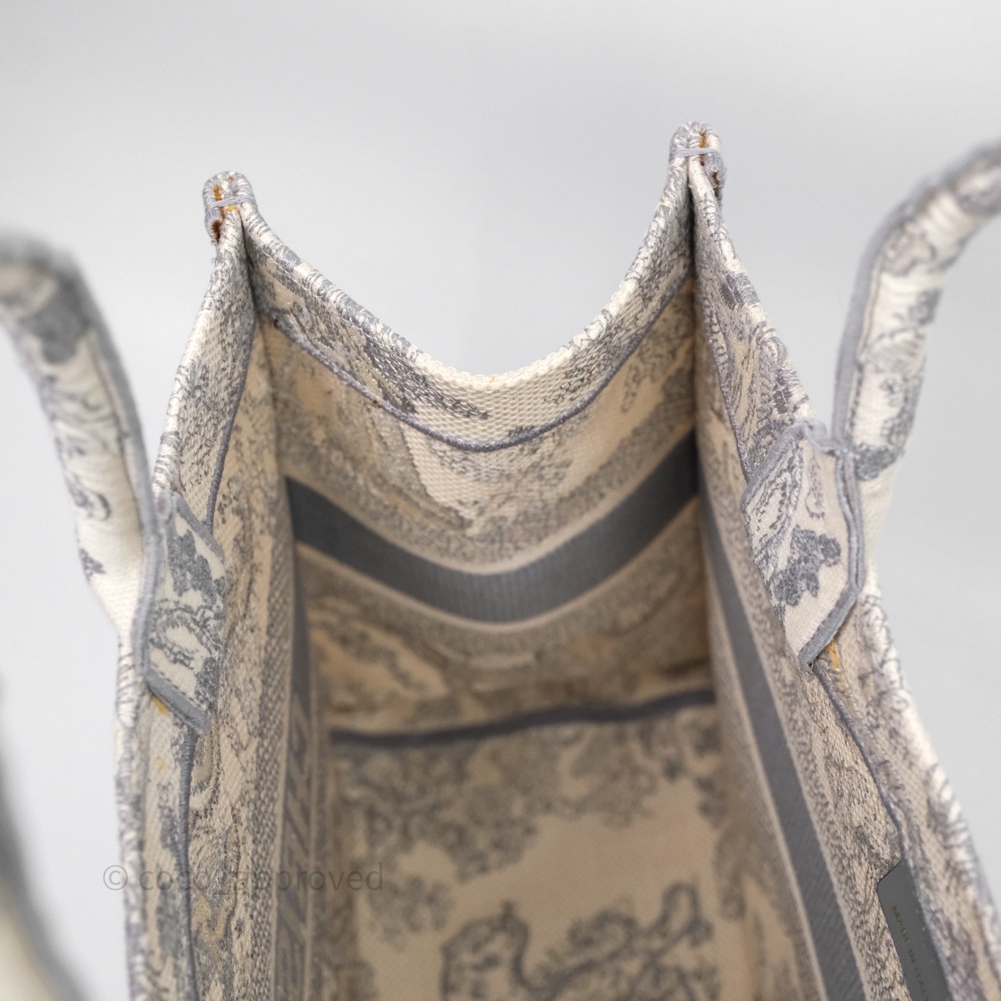 Christian Dior Medium (Old Small) Embroidered Toile De Jouy Light Grey Canvas Book Tote