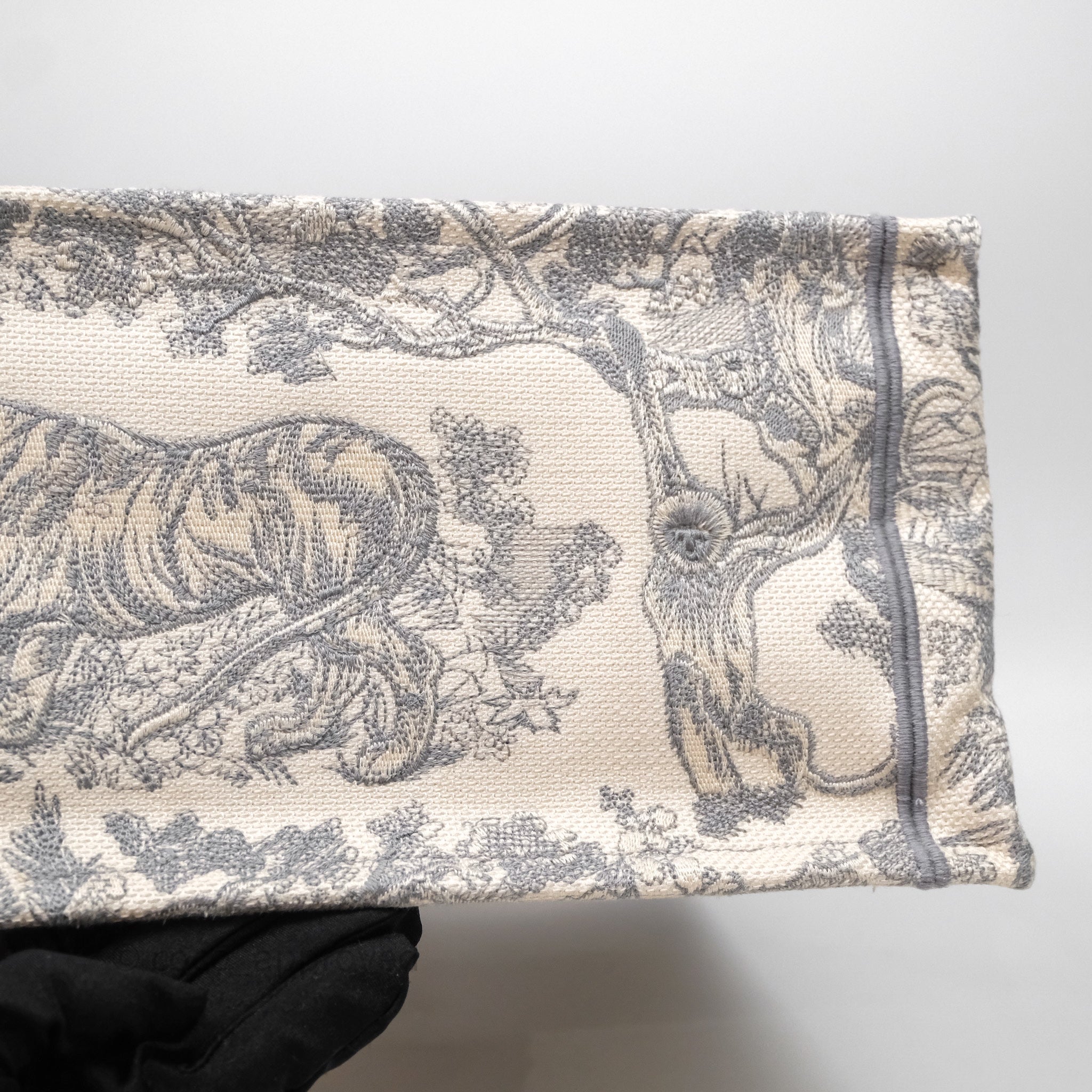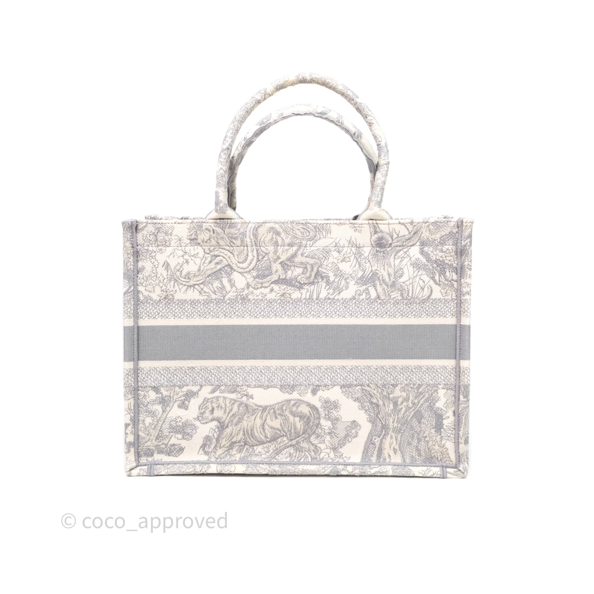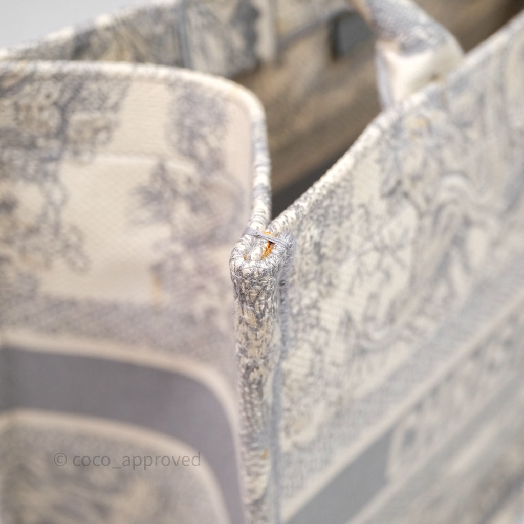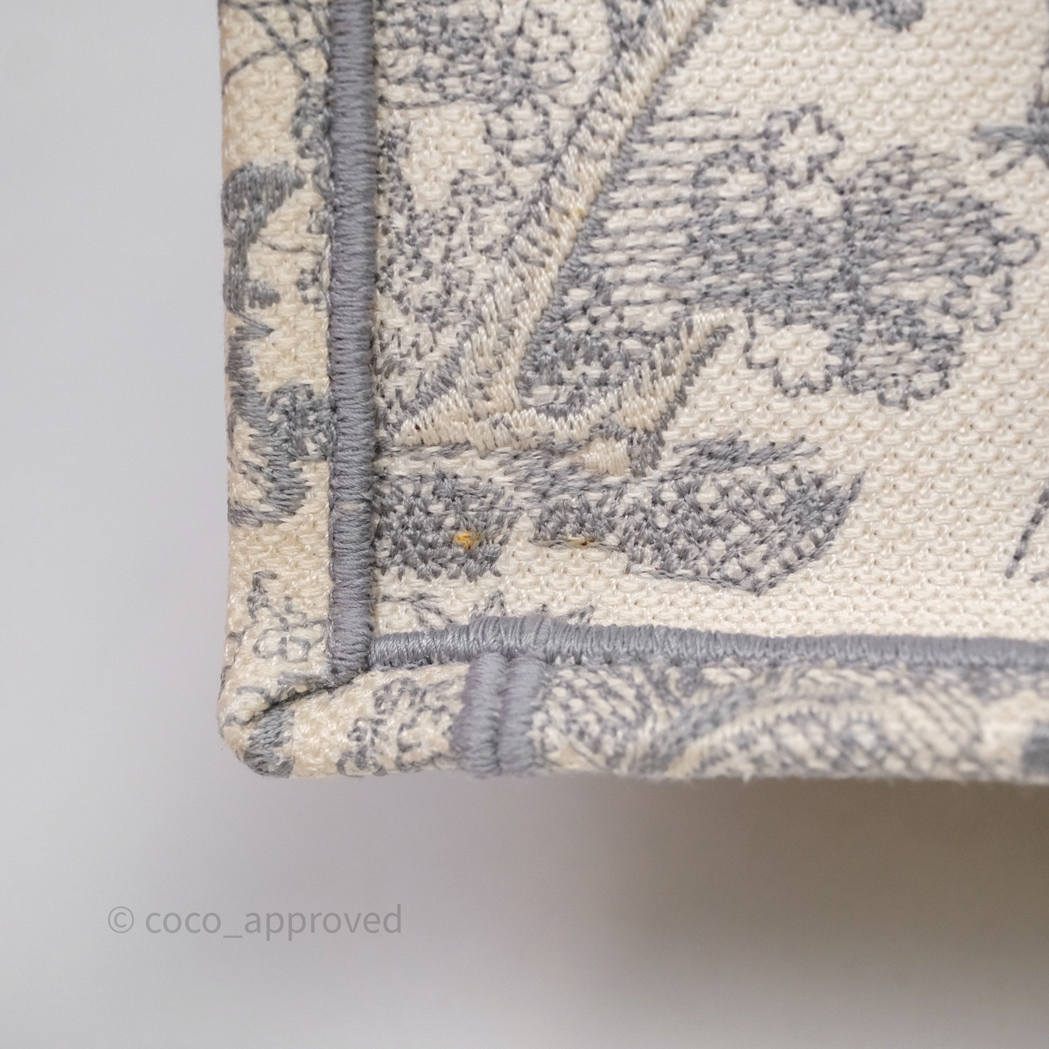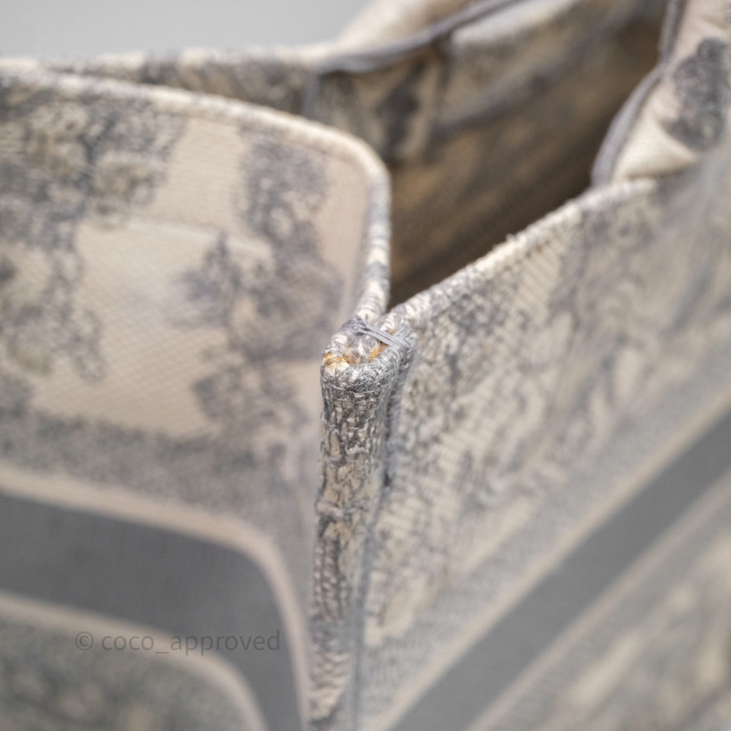 Christian Dior Medium (Old Small) Embroidered Toile De Jouy Light Grey Canvas Book Tote