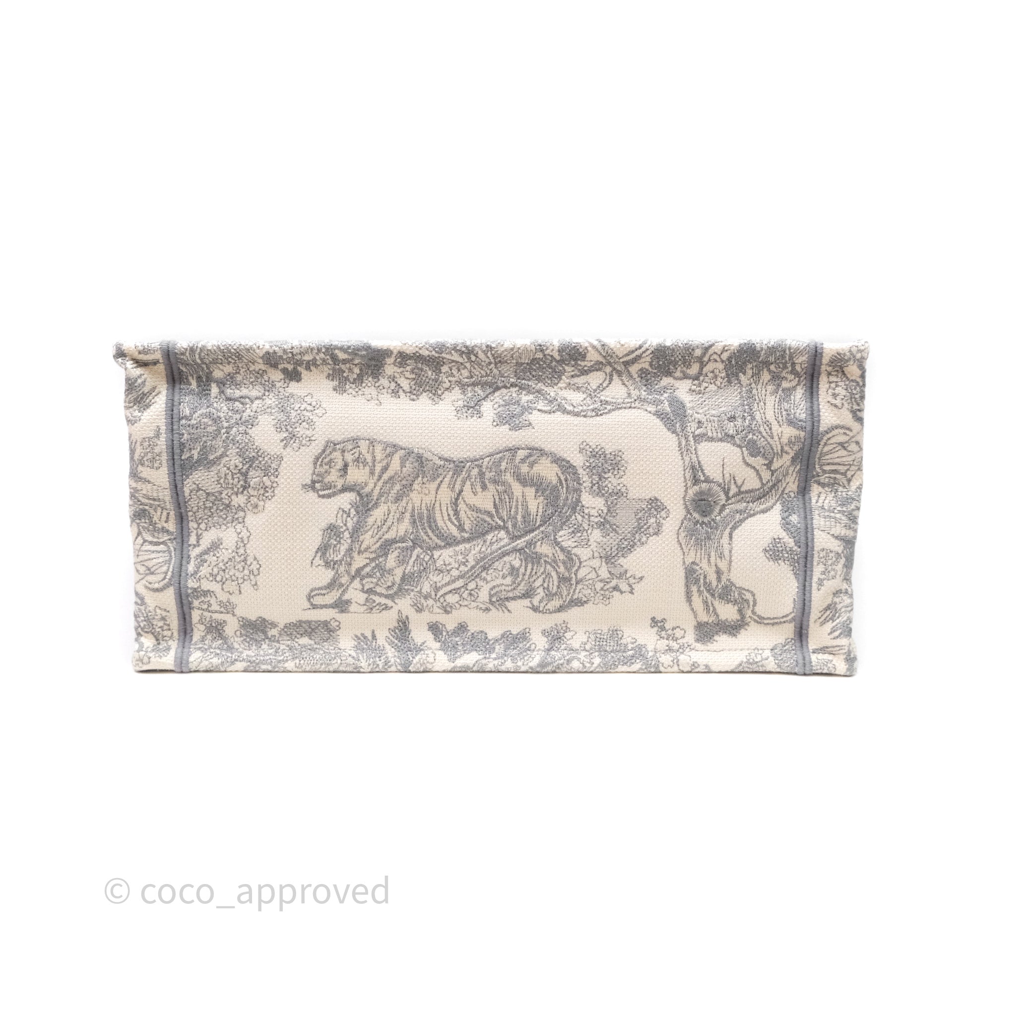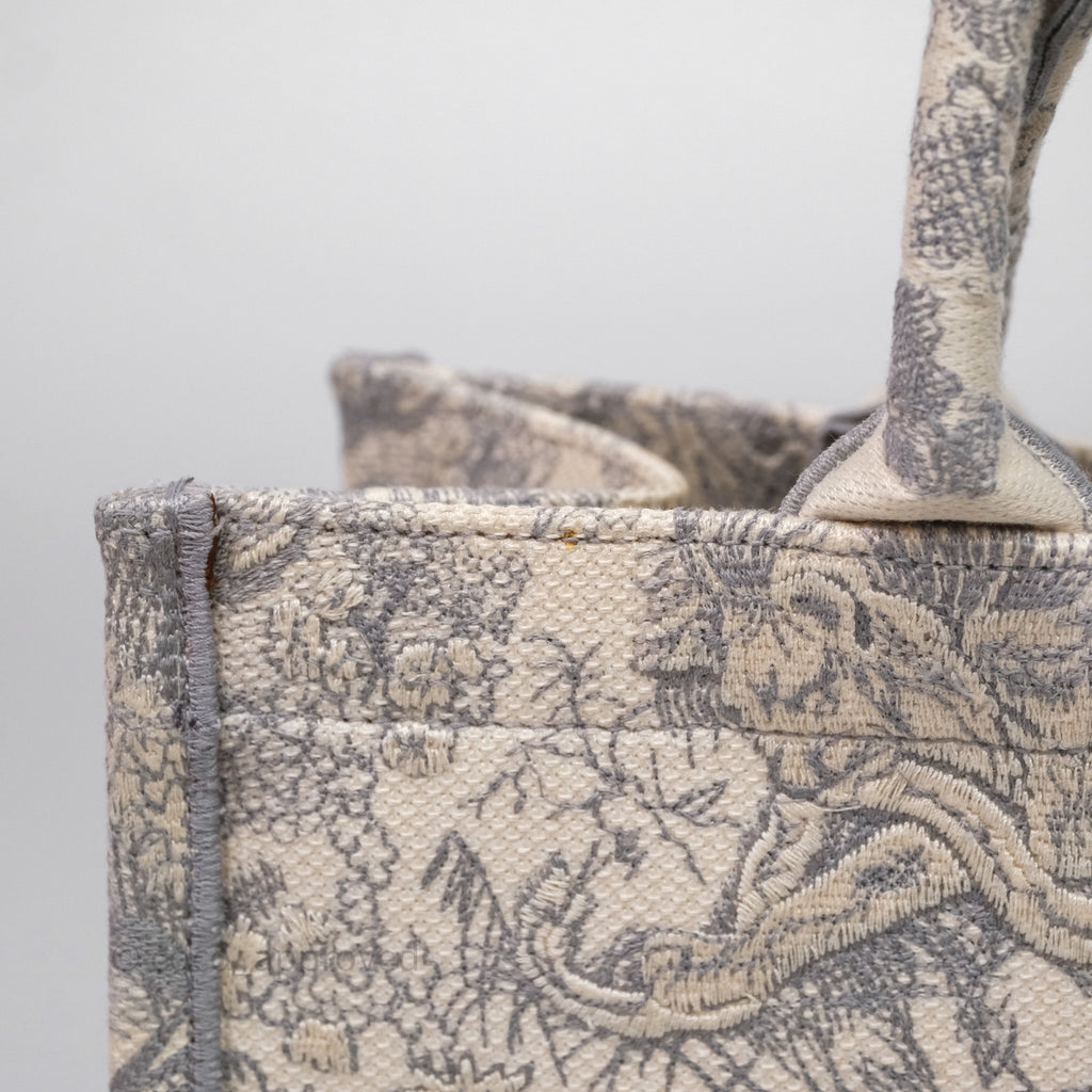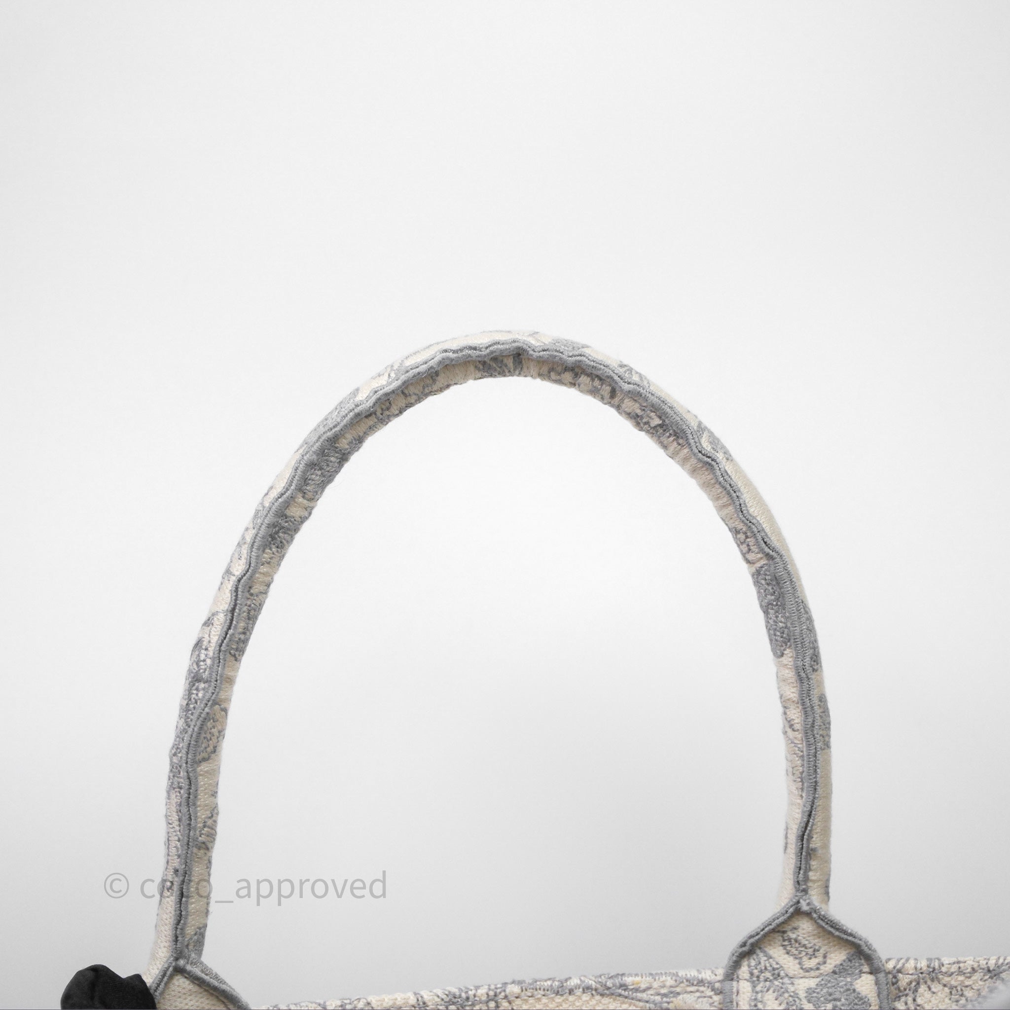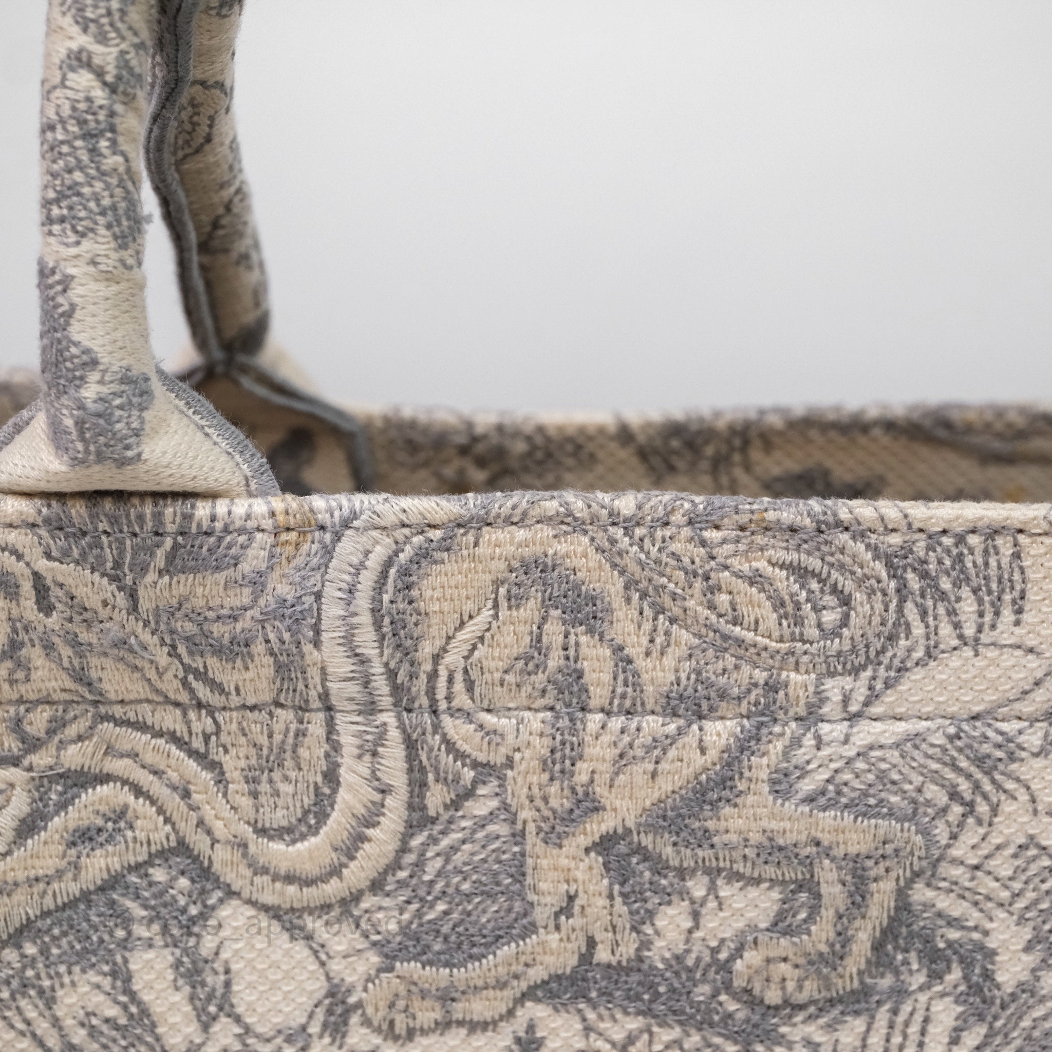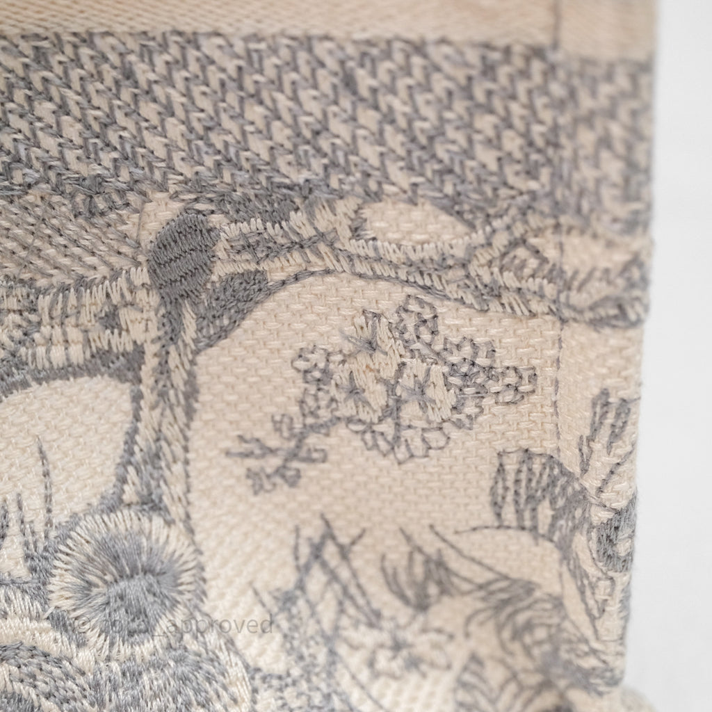 Christian Dior Medium (Old Small) Embroidered Toile De Jouy Light Grey Canvas Book Tote