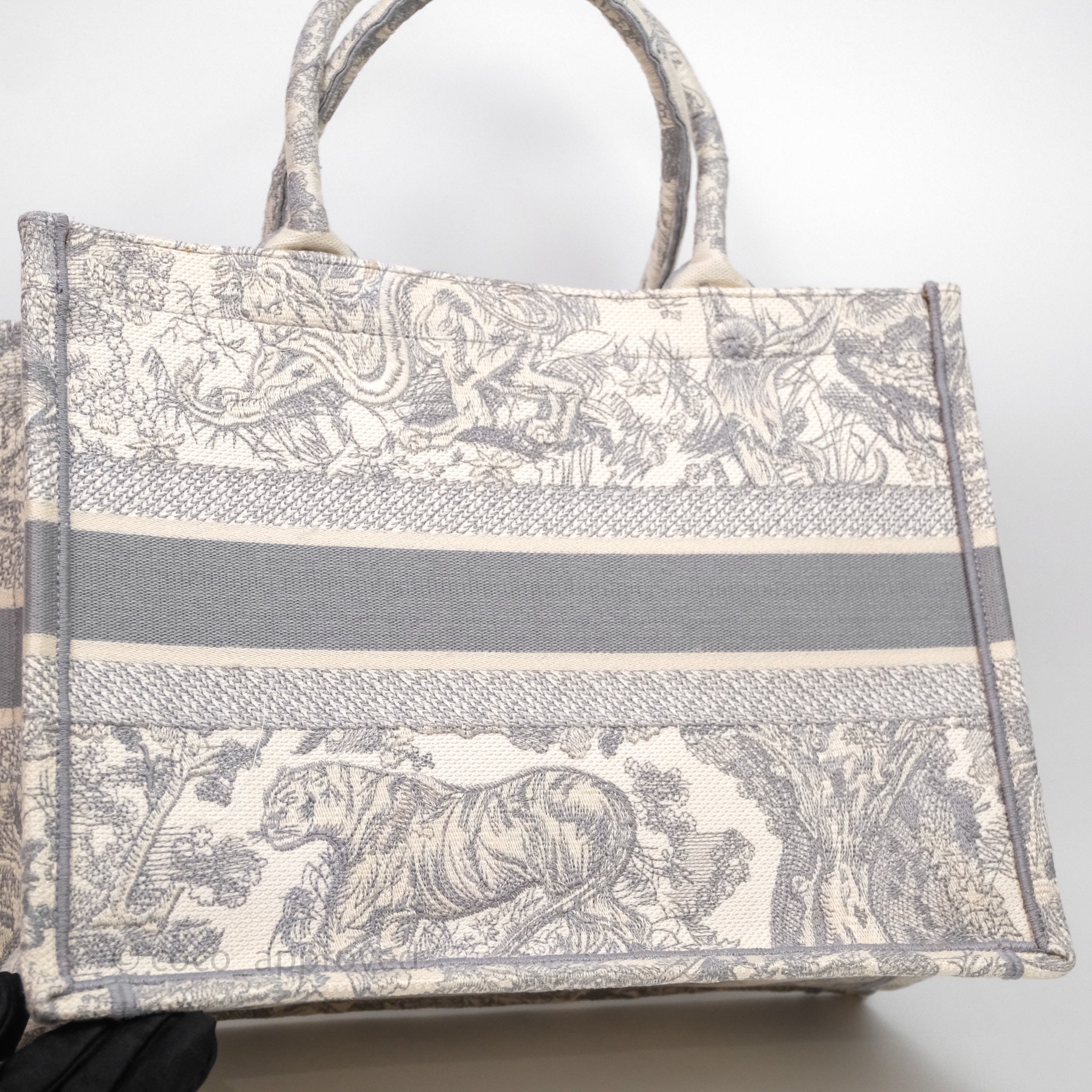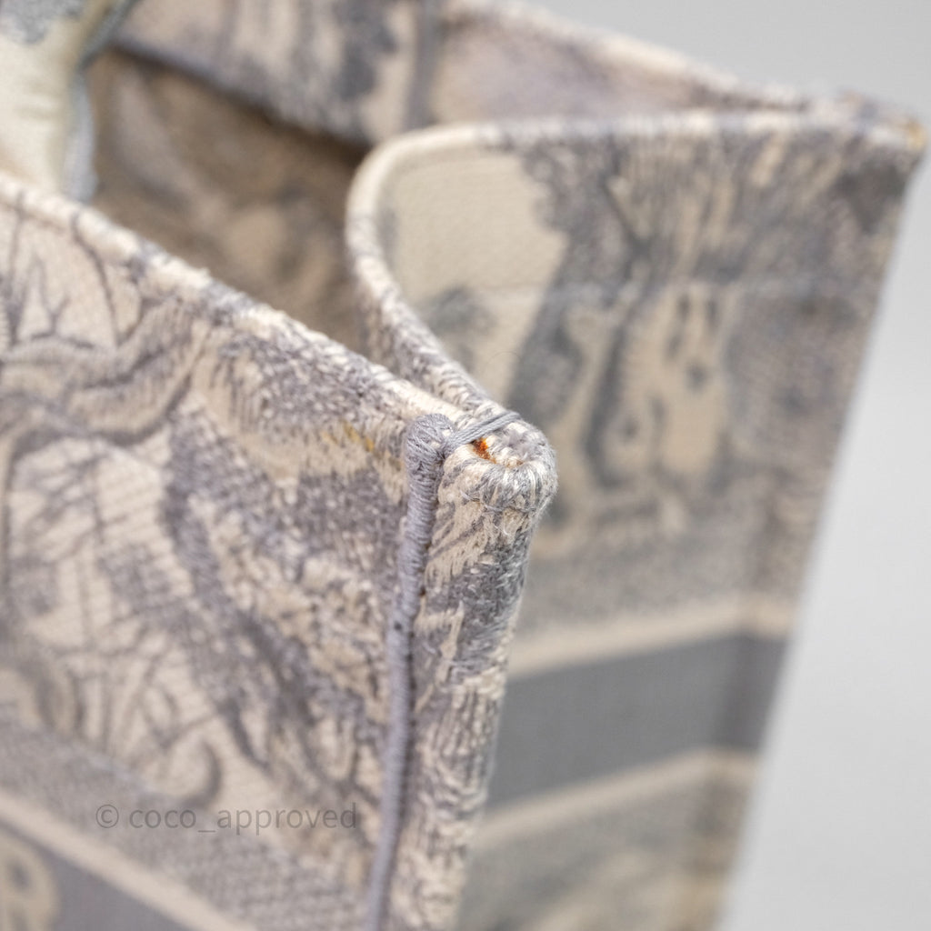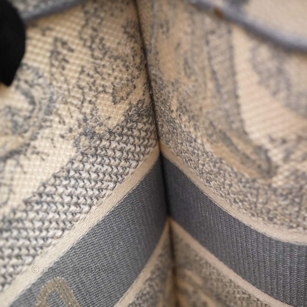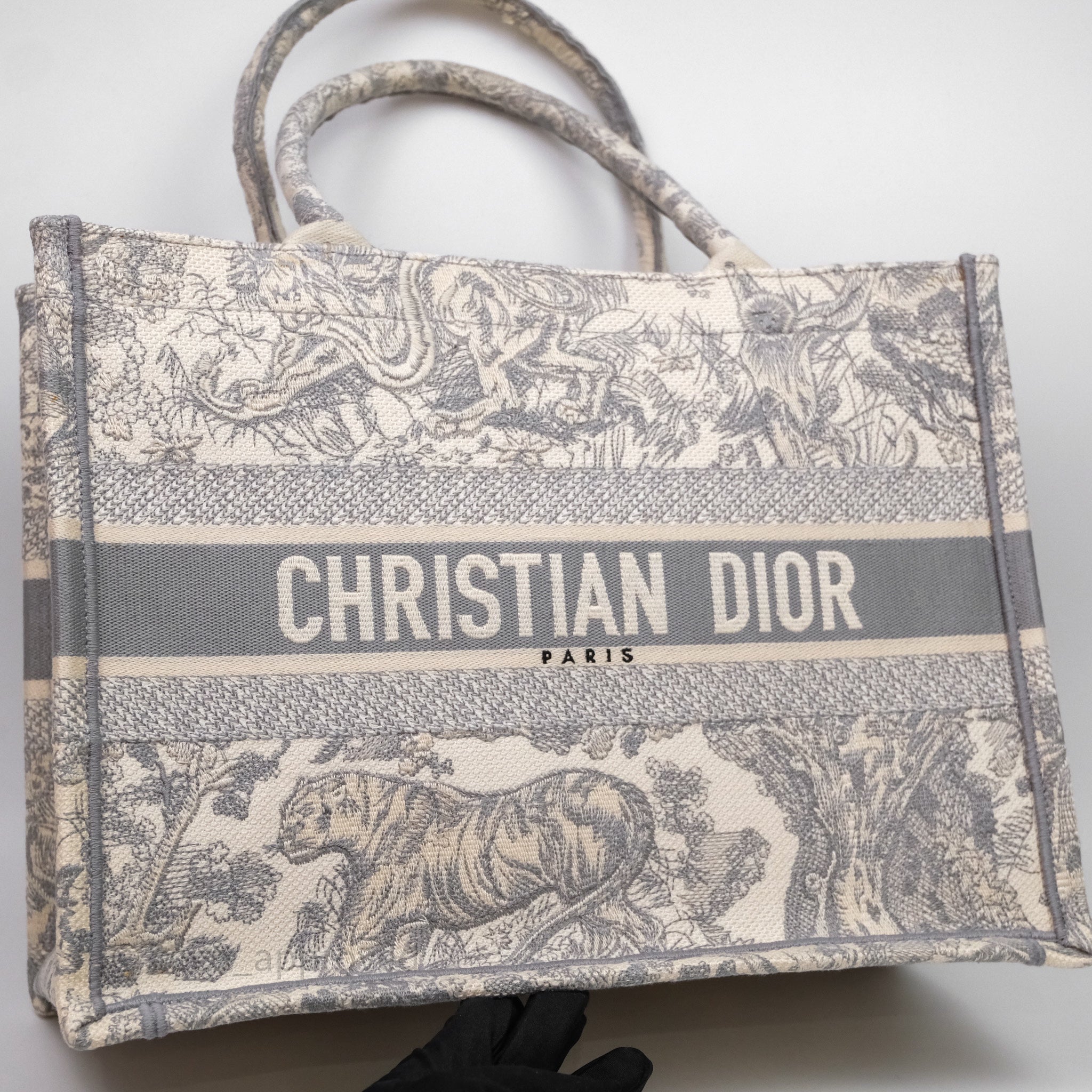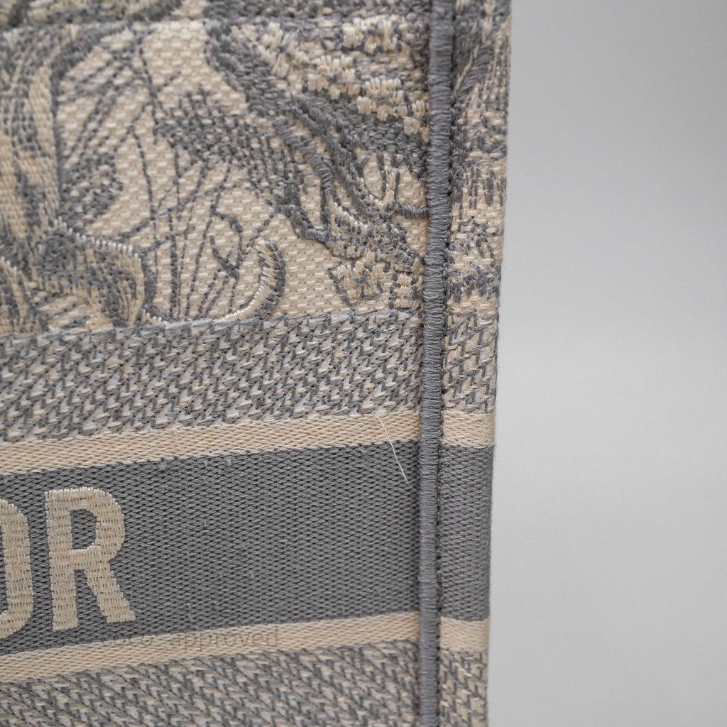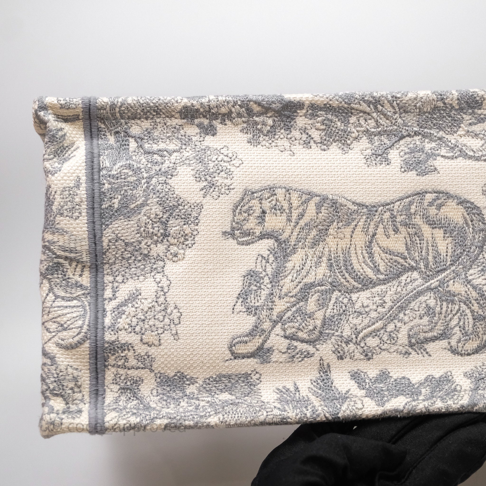Christian Dior Medium (Old Small) Embroidered Toile De Jouy Light Grey Canvas Book Tote