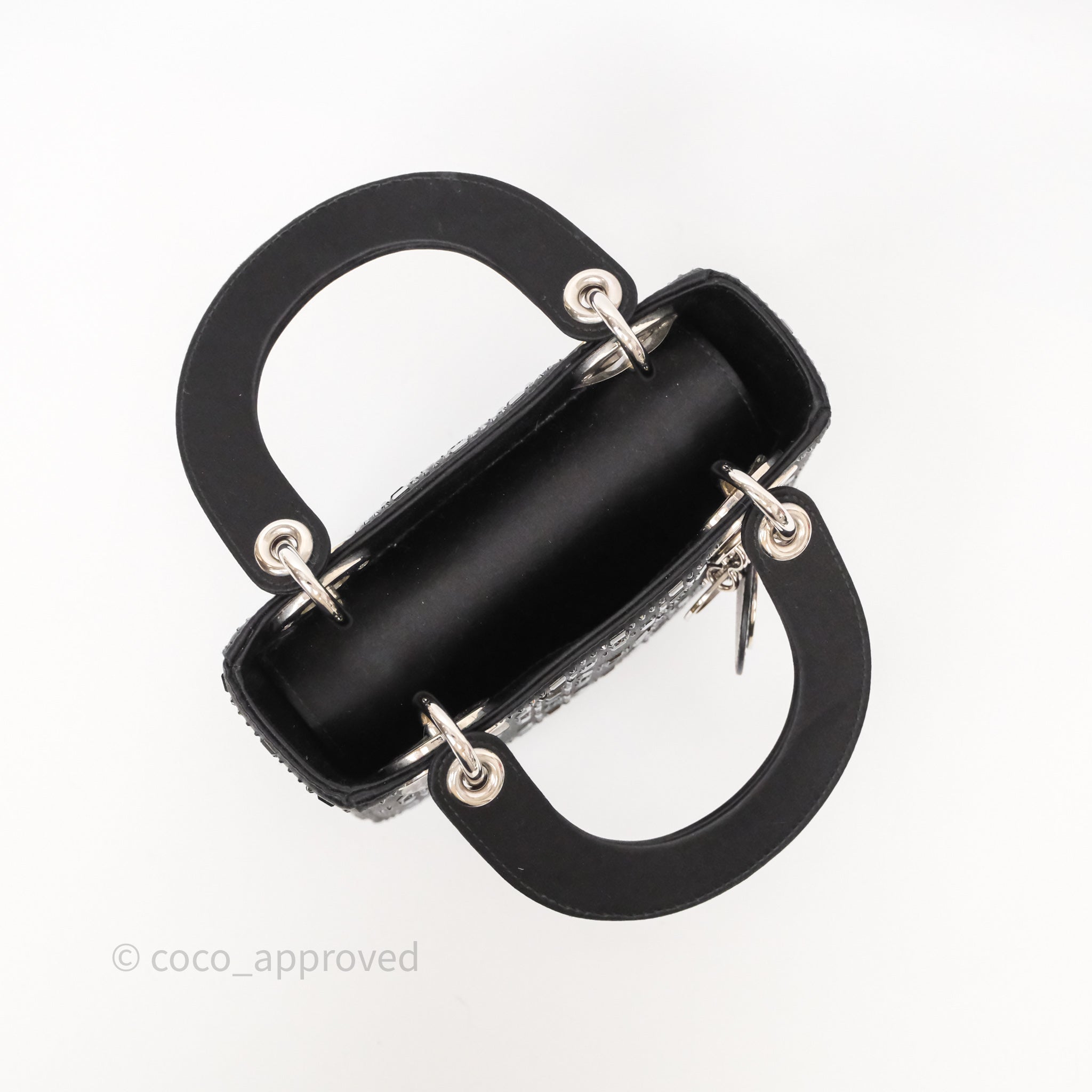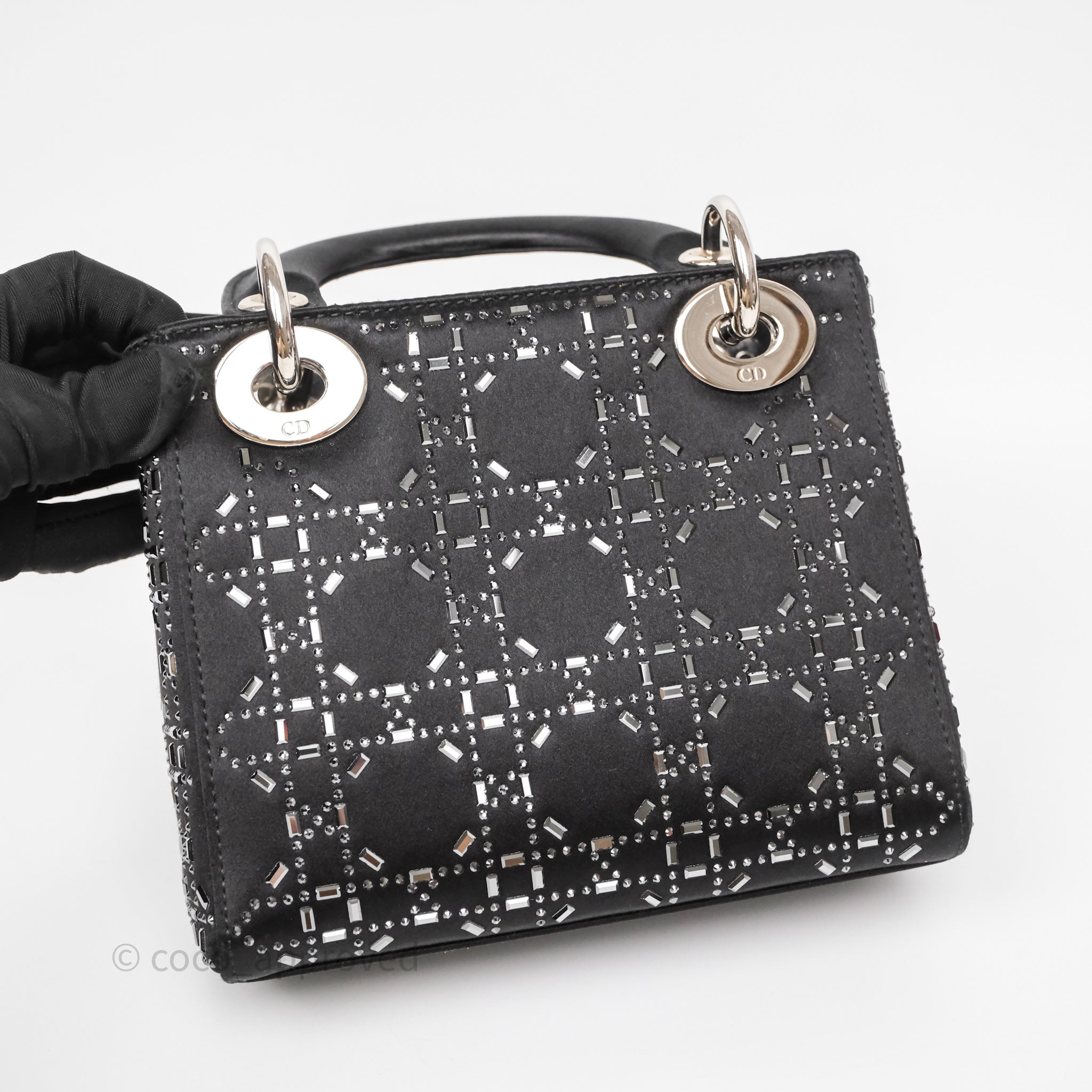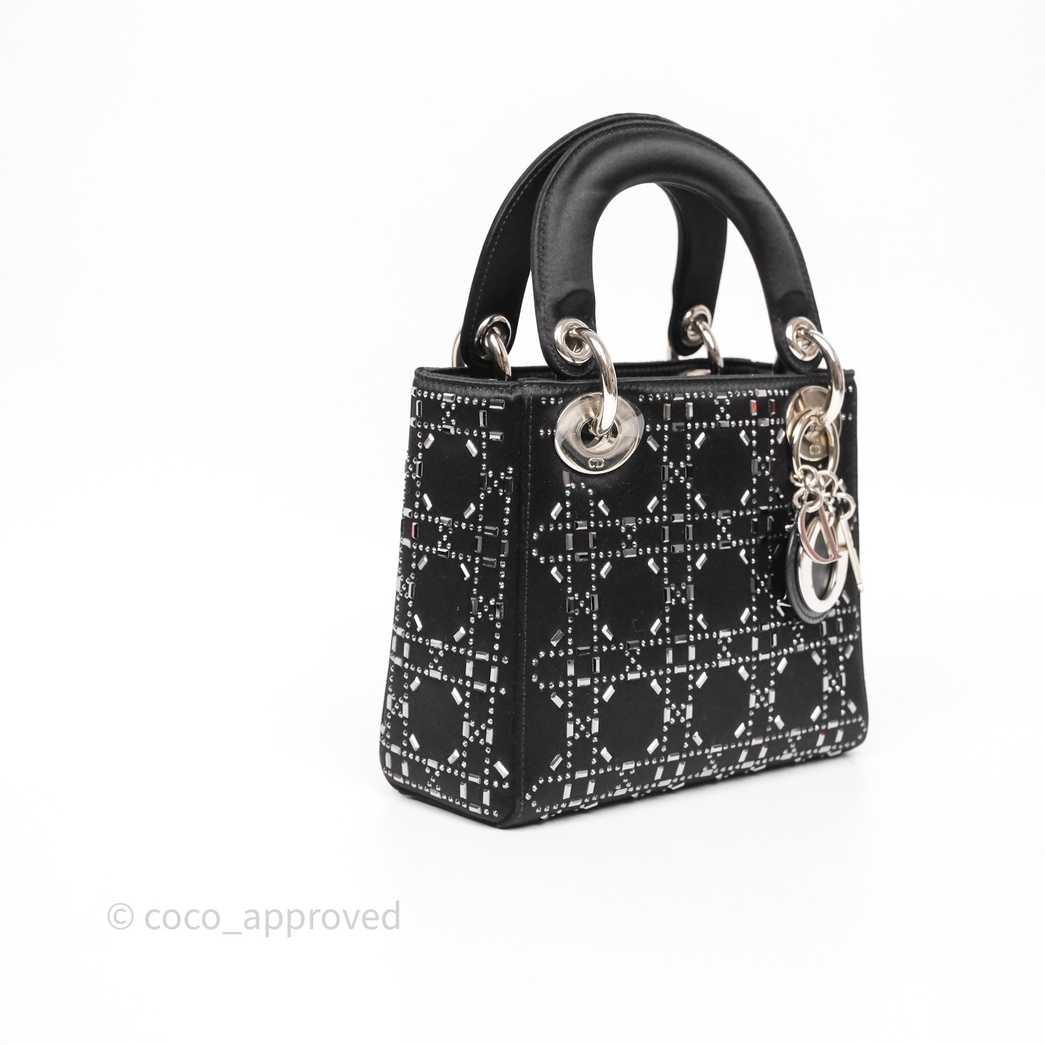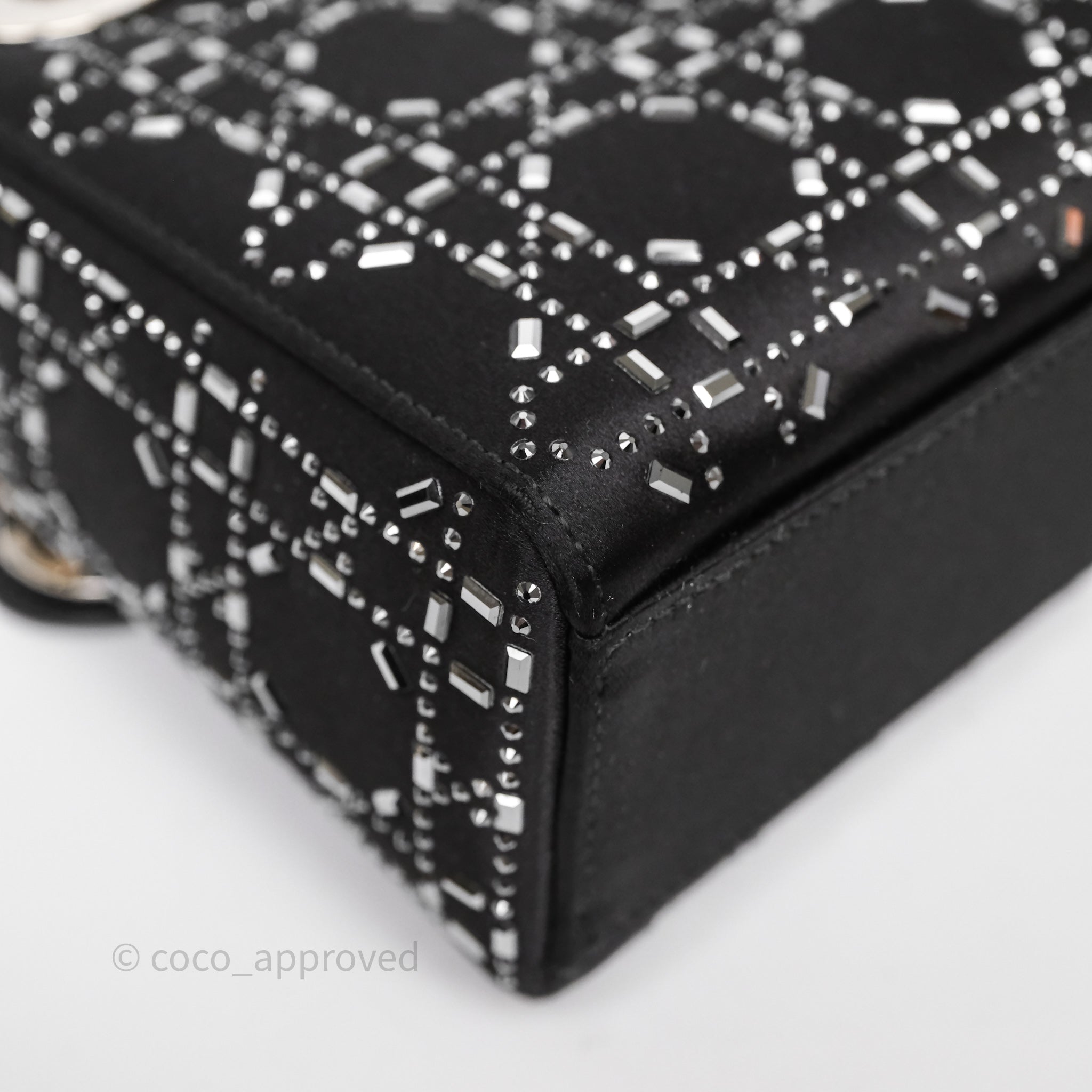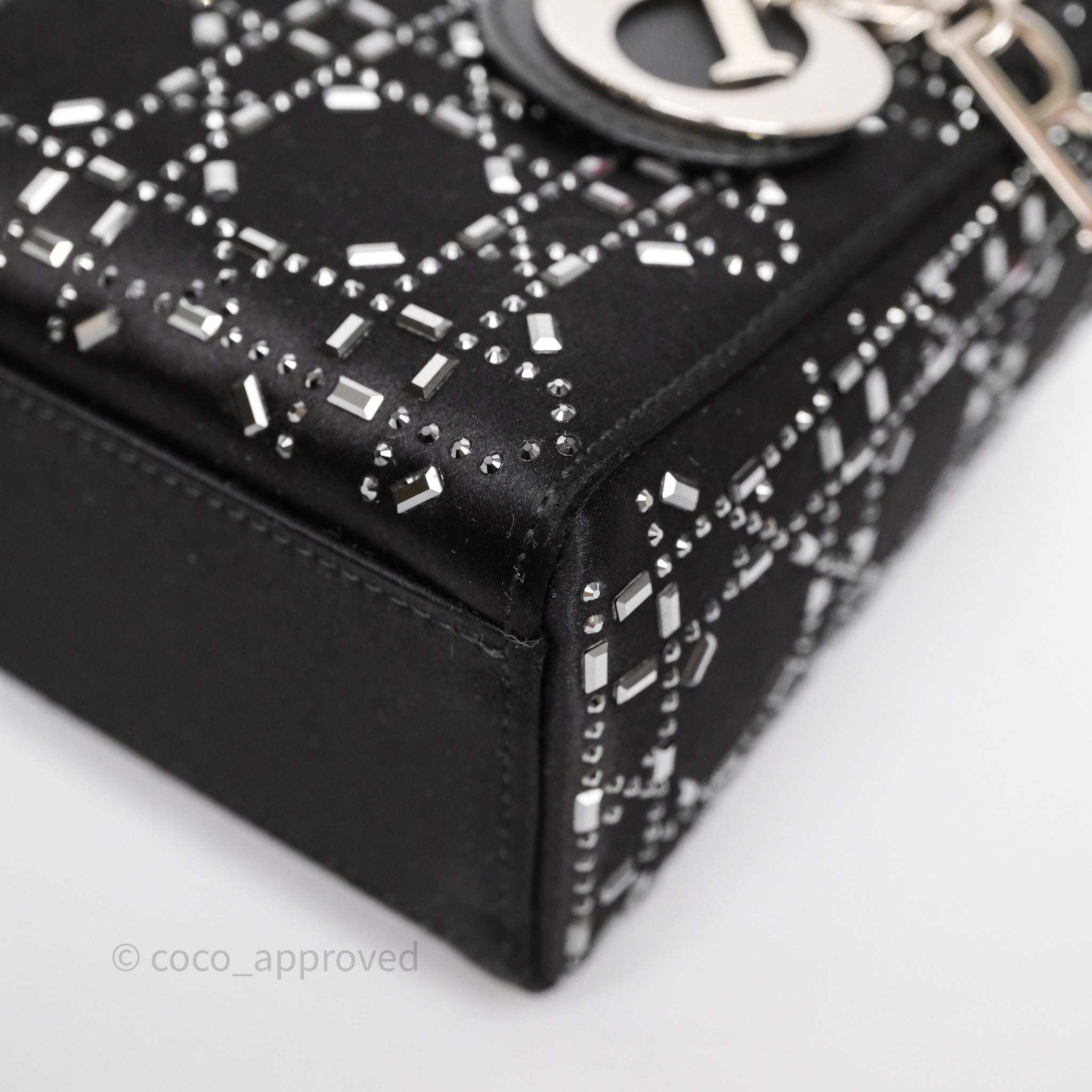 Christian Dior Mini Lady Dior Bag Black Strass Cannage Satin Silver Hardware