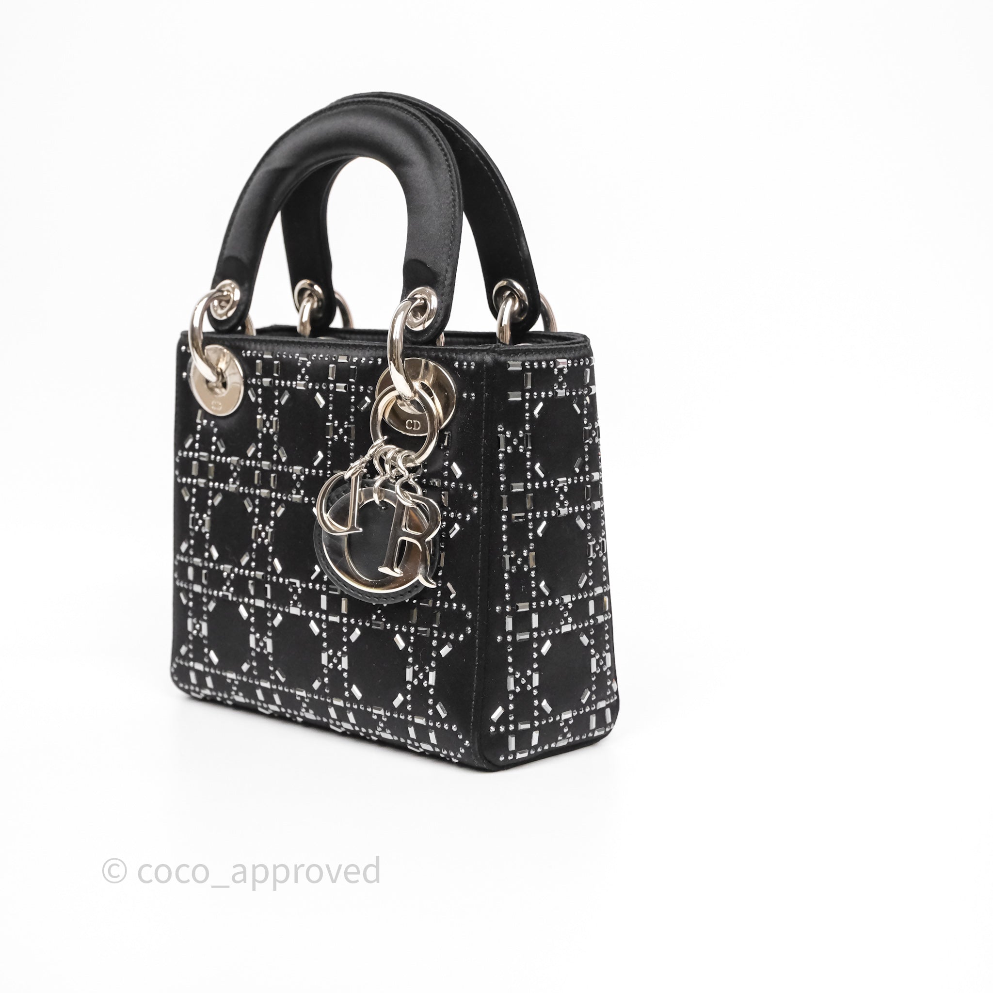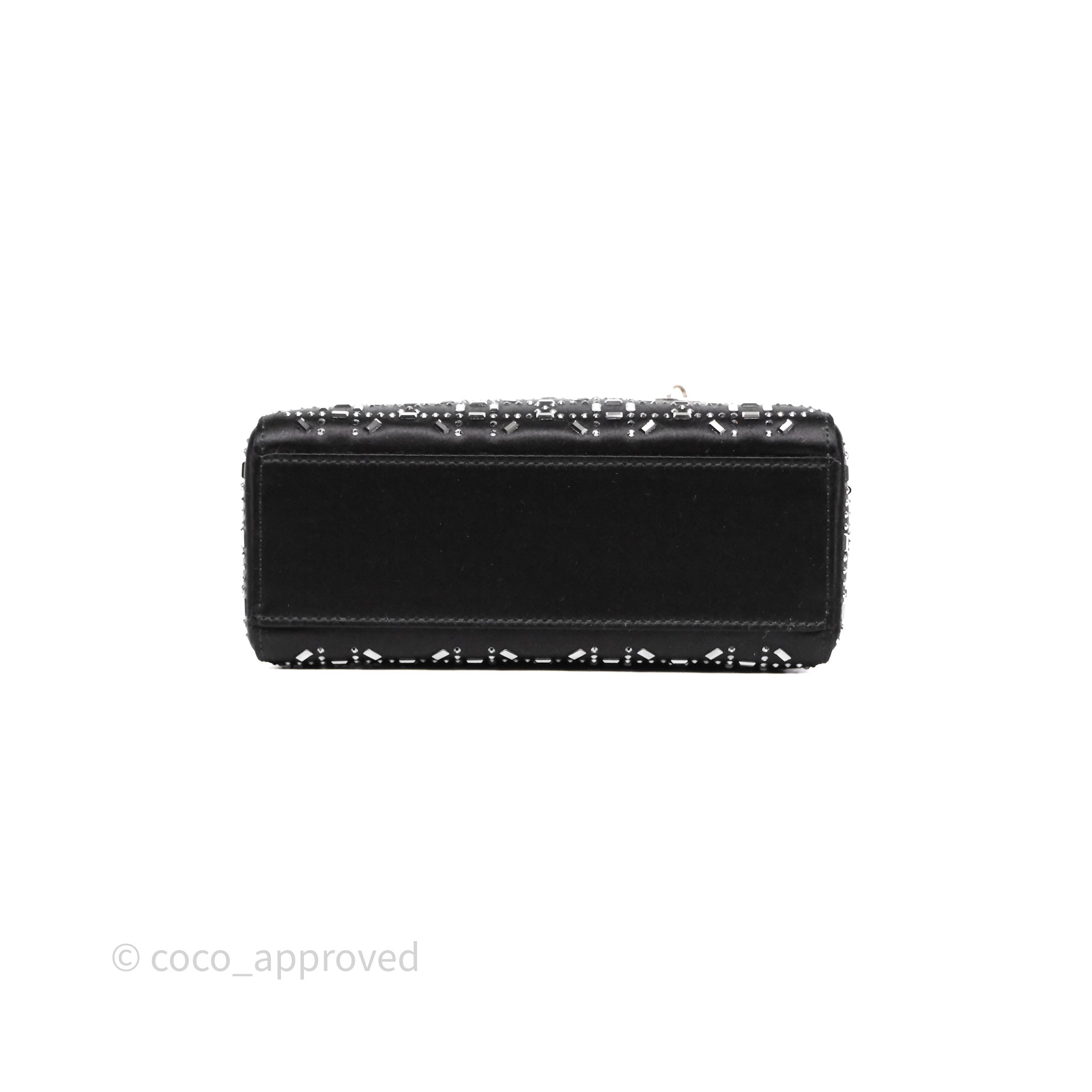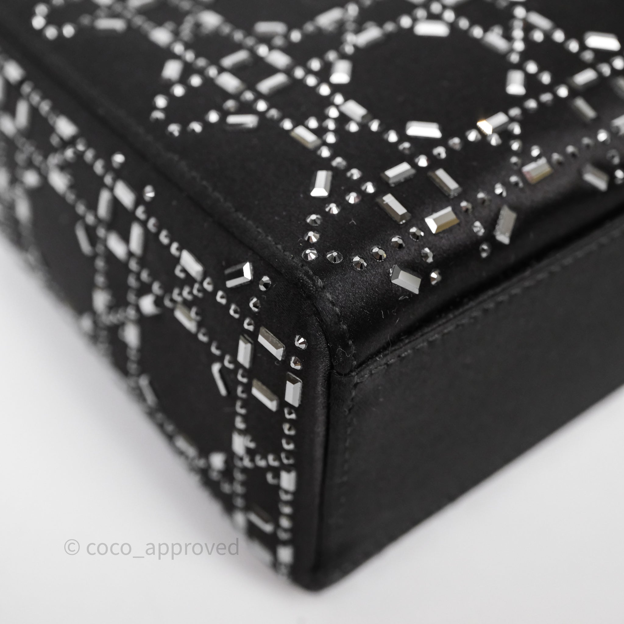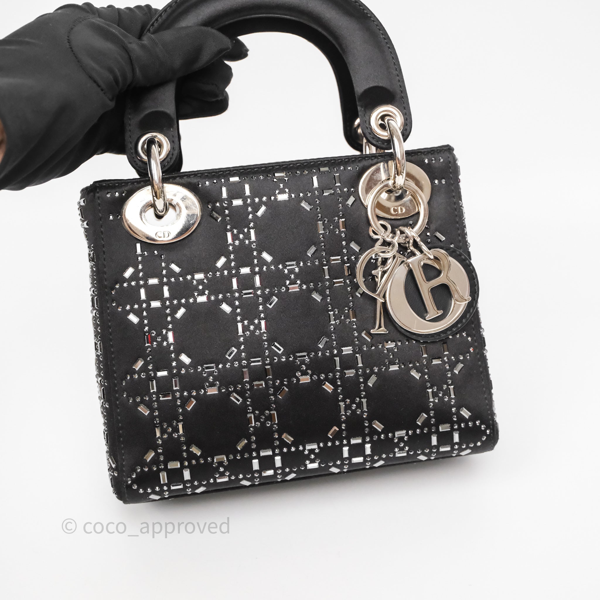 Christian Dior Mini Lady Dior Bag Black Strass Cannage Satin Silver Hardware