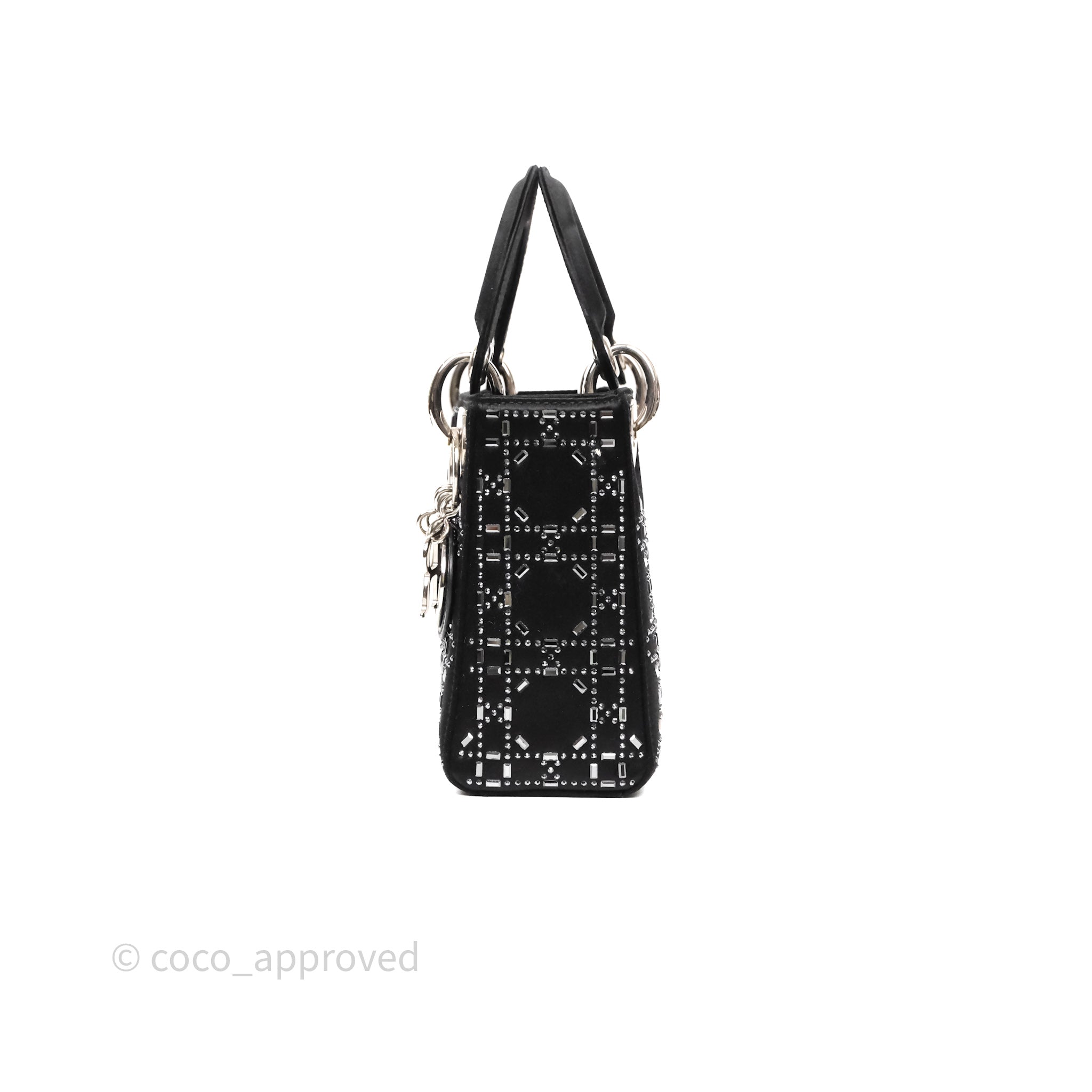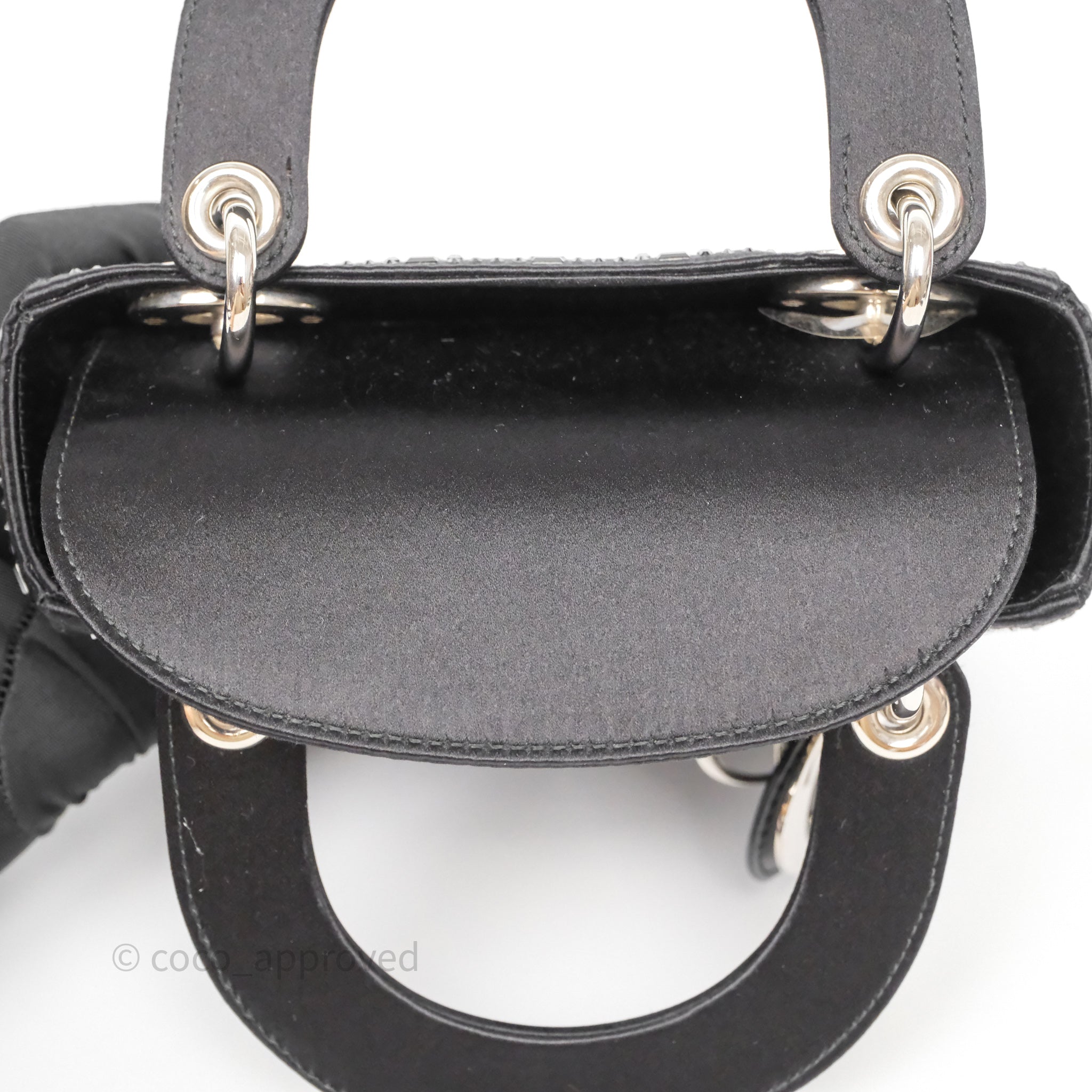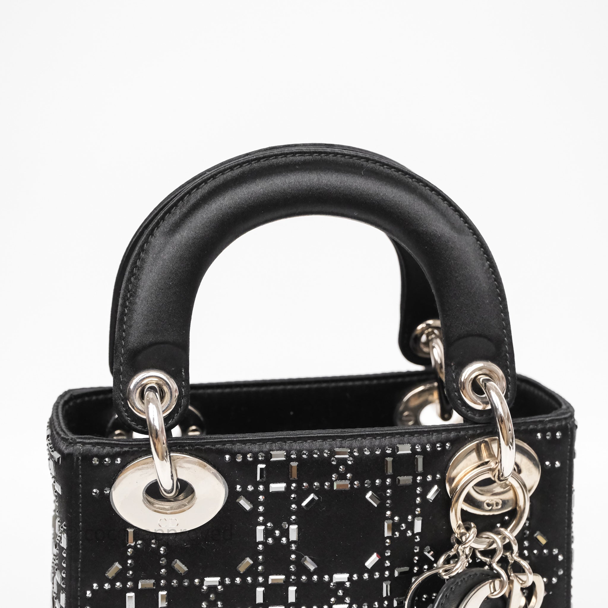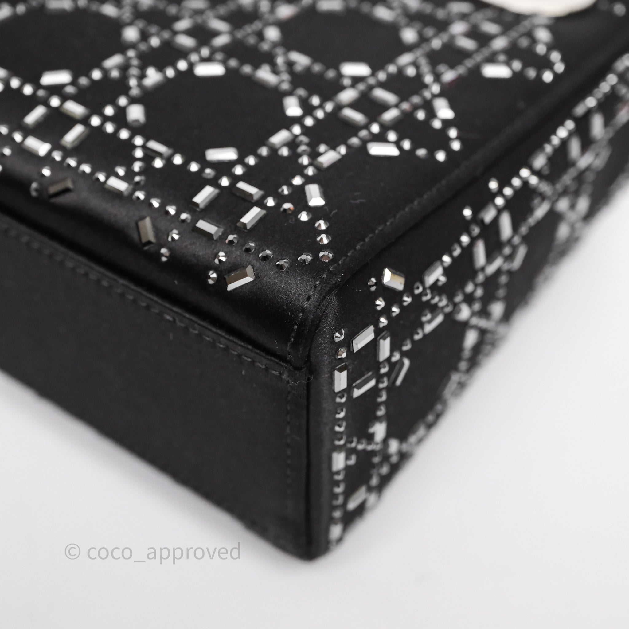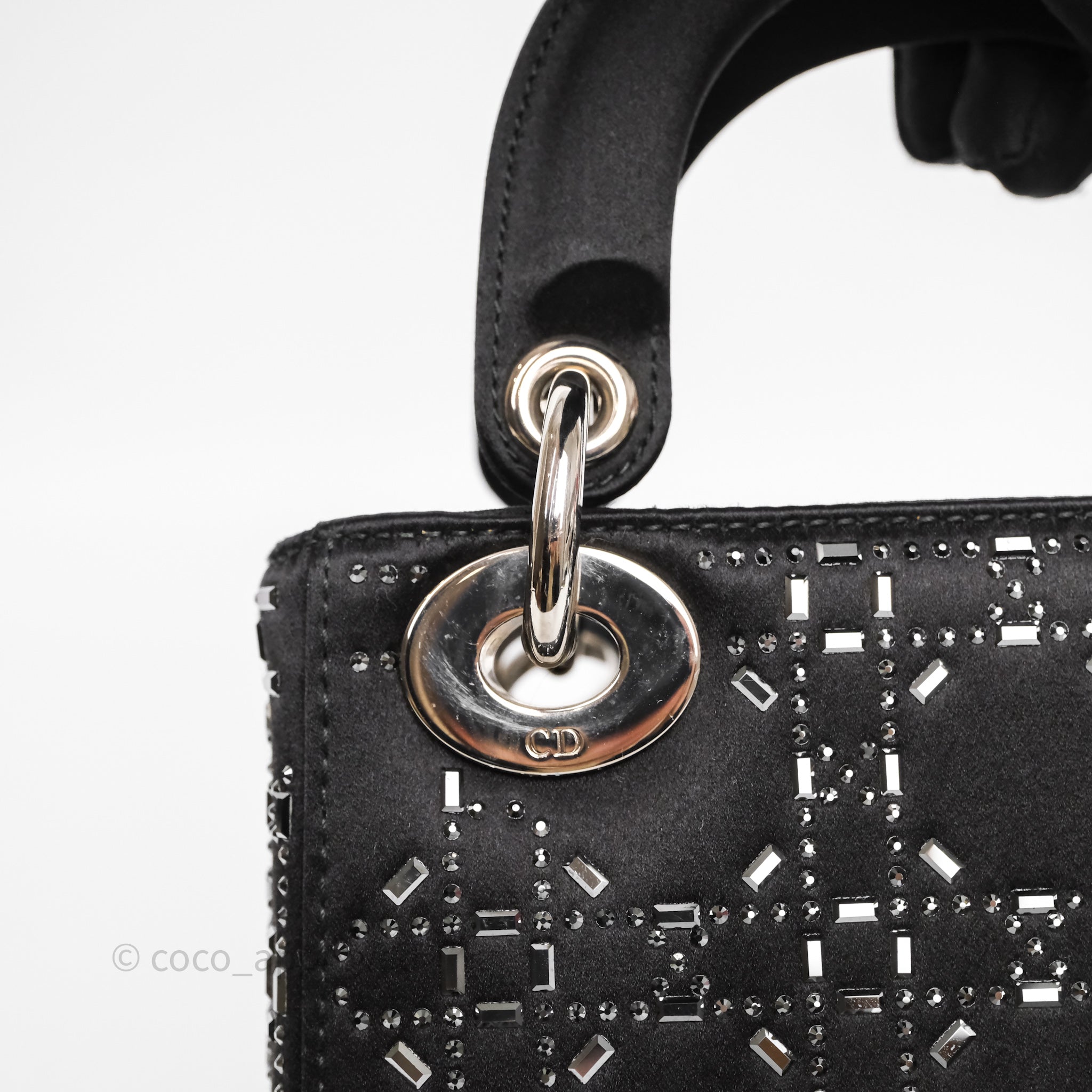 Christian Dior Mini Lady Dior Bag Black Strass Cannage Satin Silver Hardware