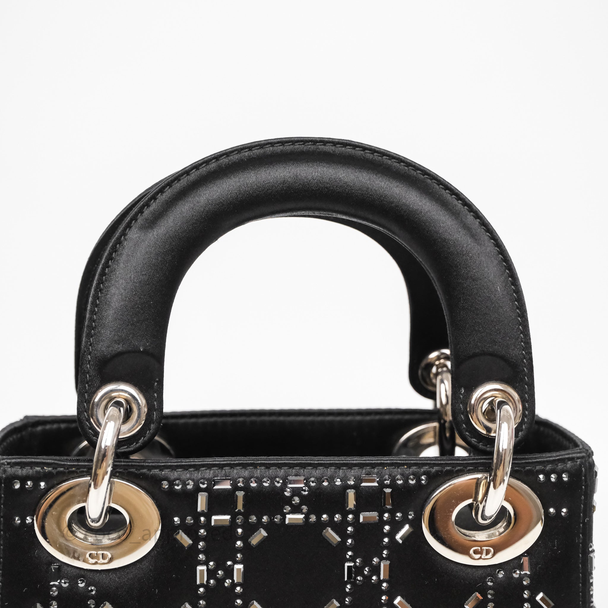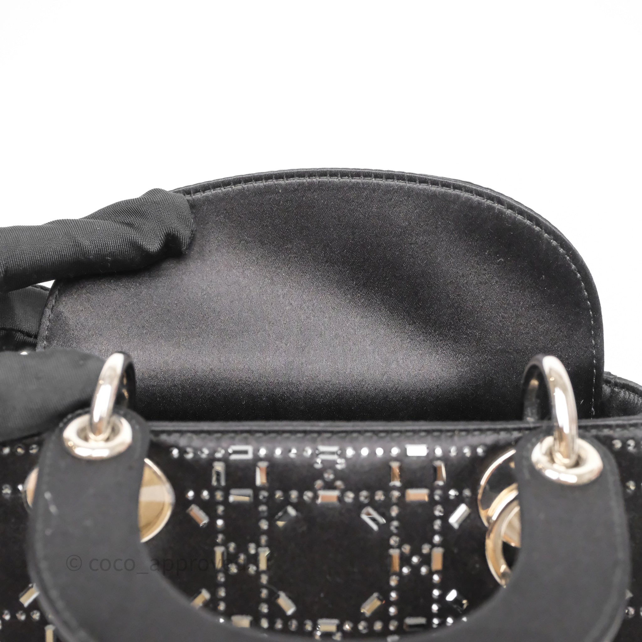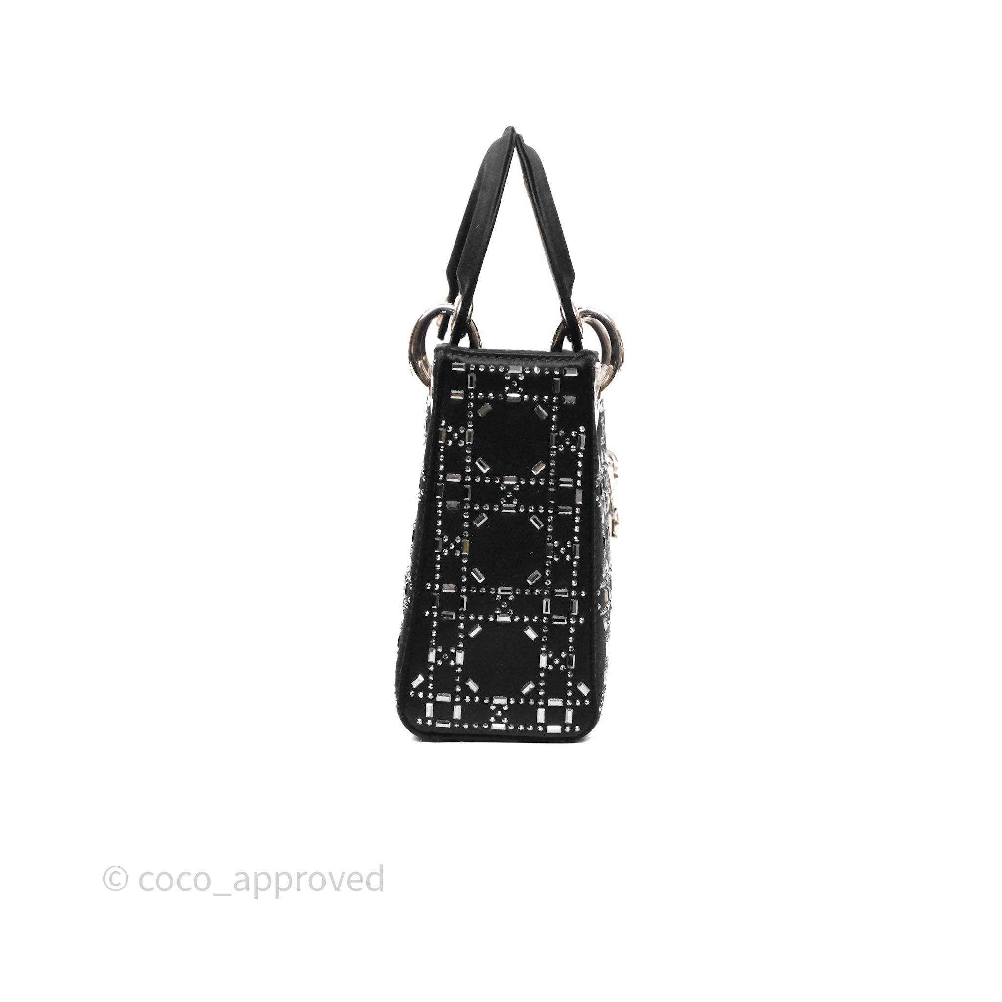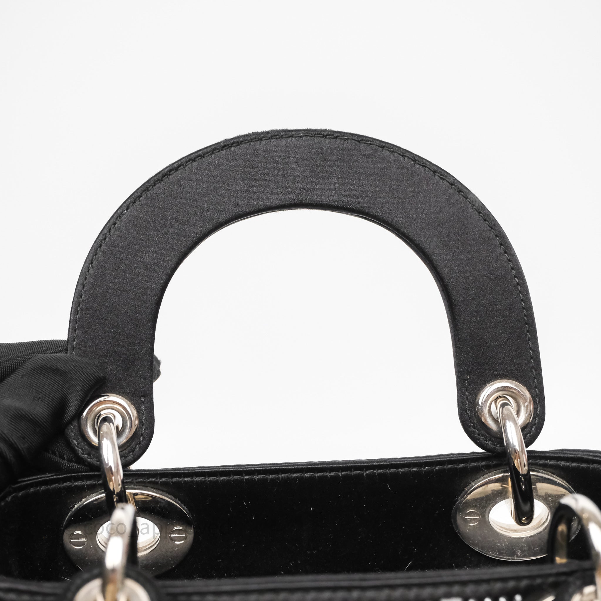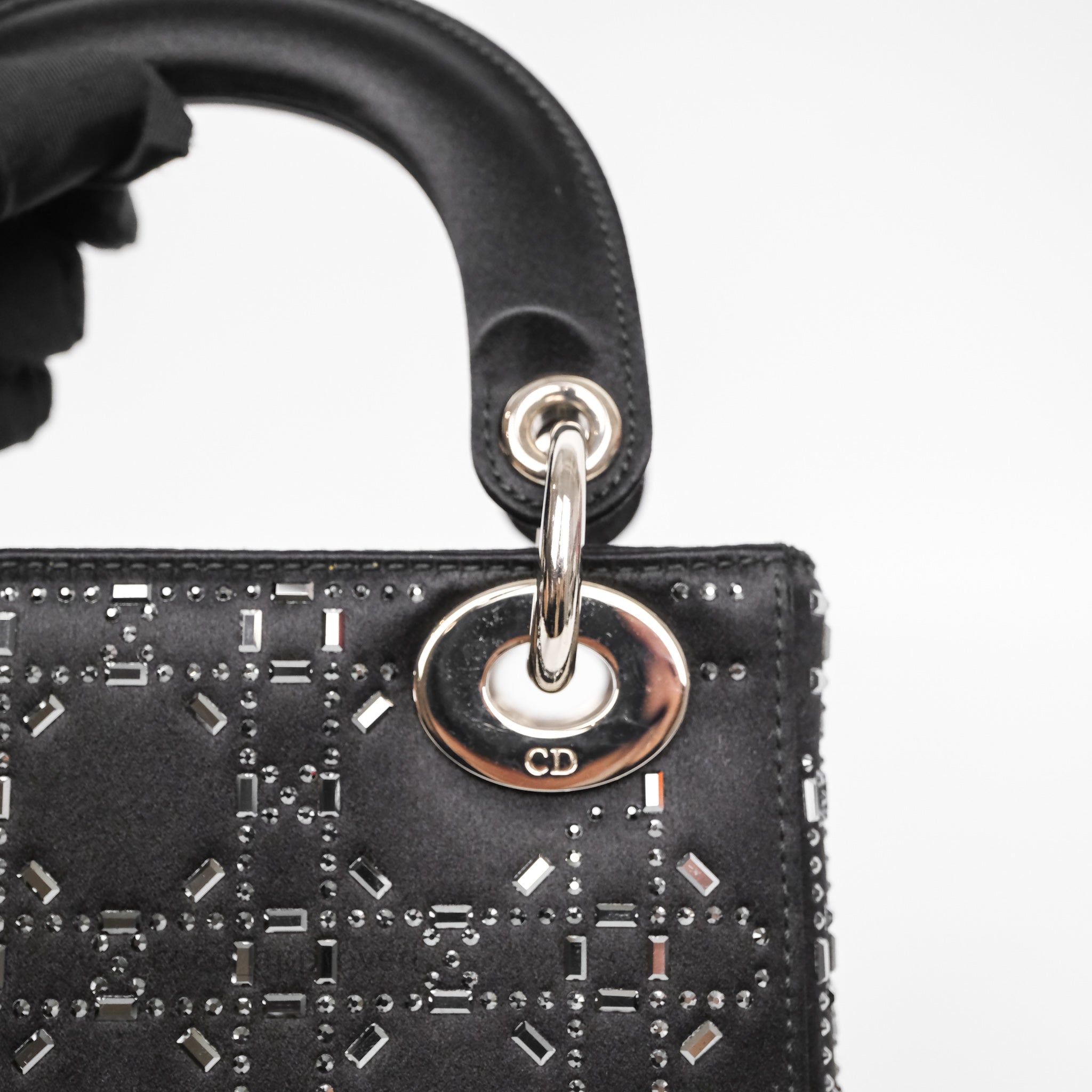 Christian Dior Mini Lady Dior Bag Black Strass Cannage Satin Silver Hardware