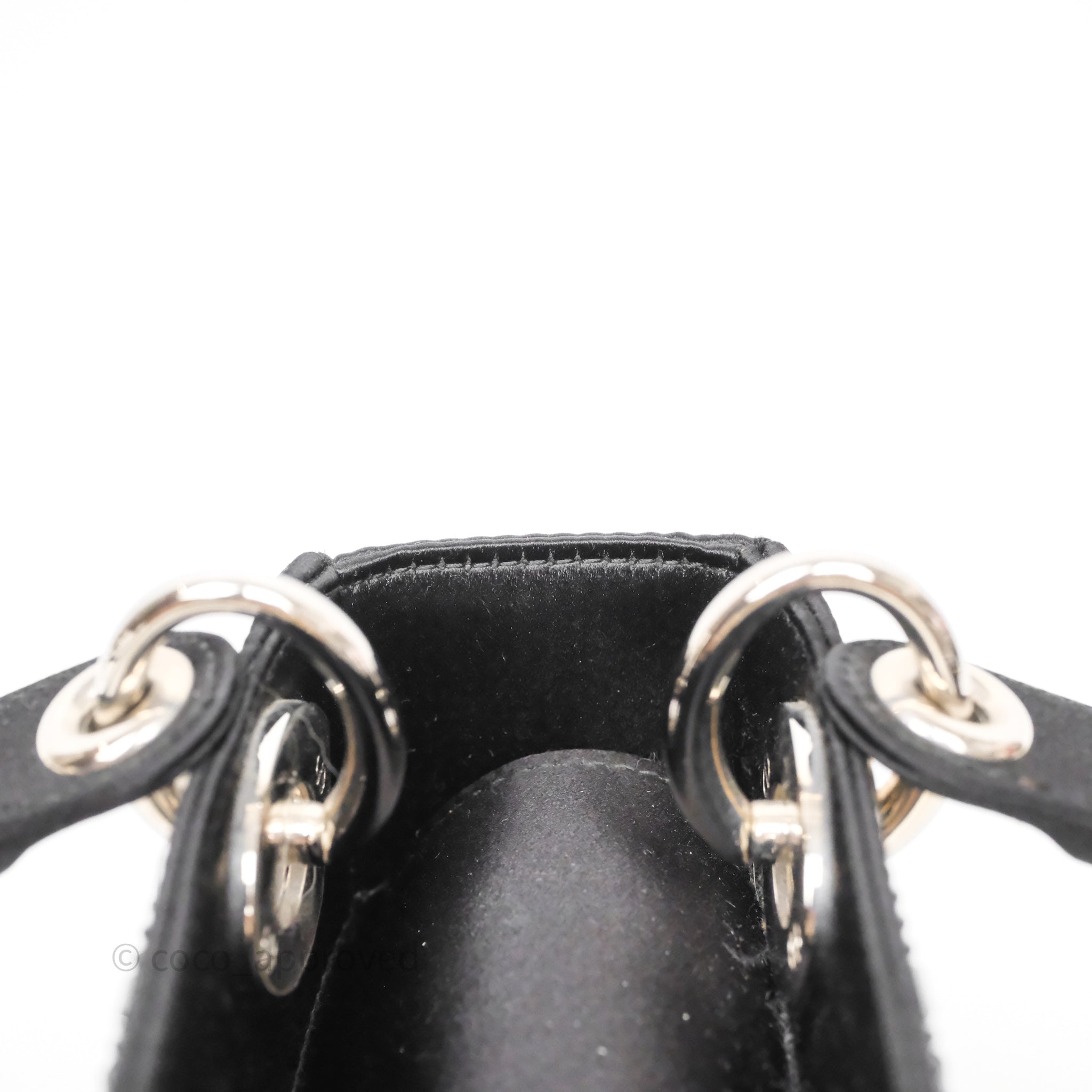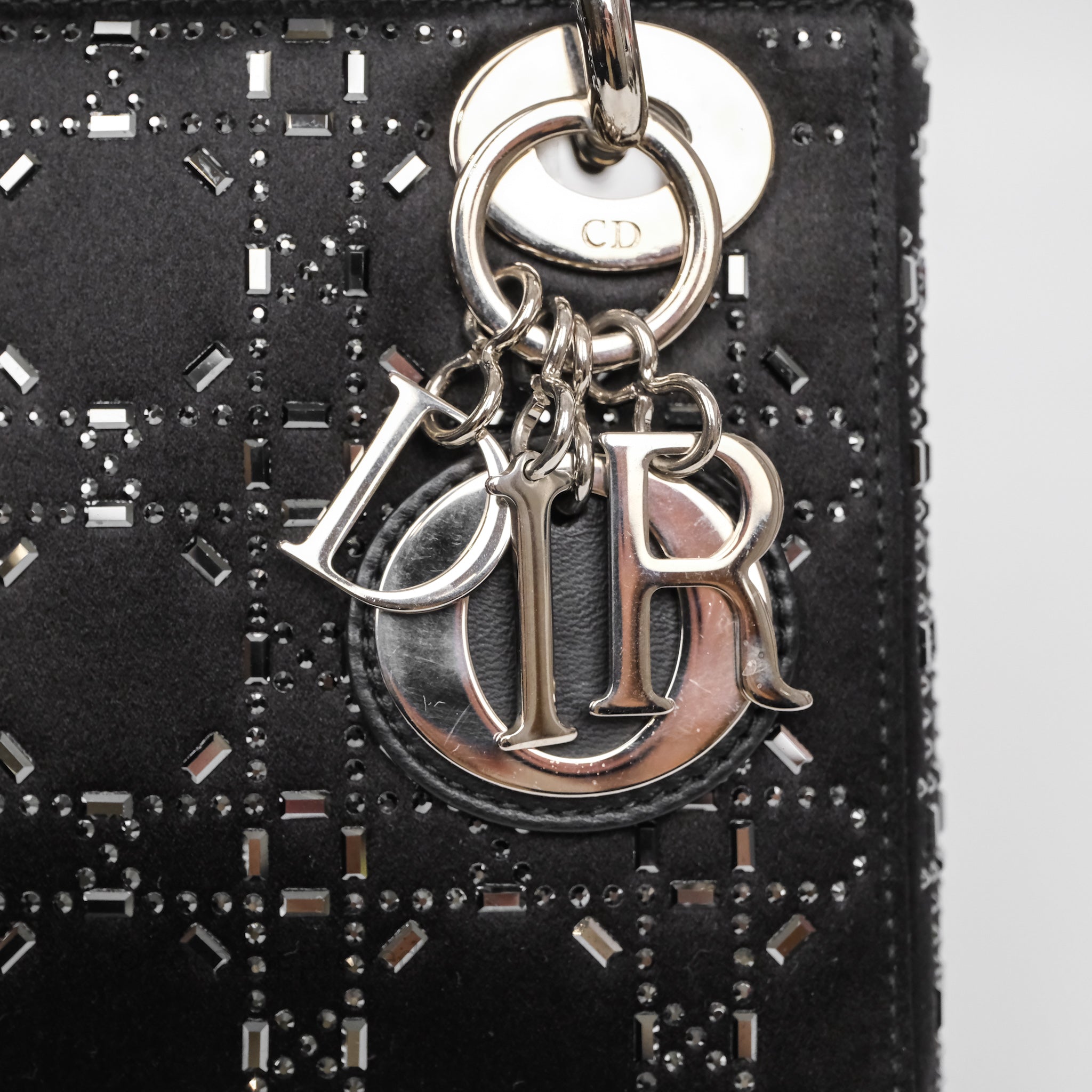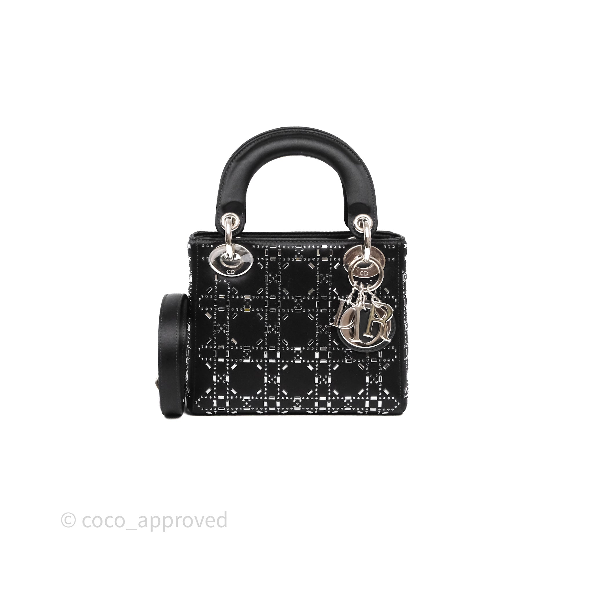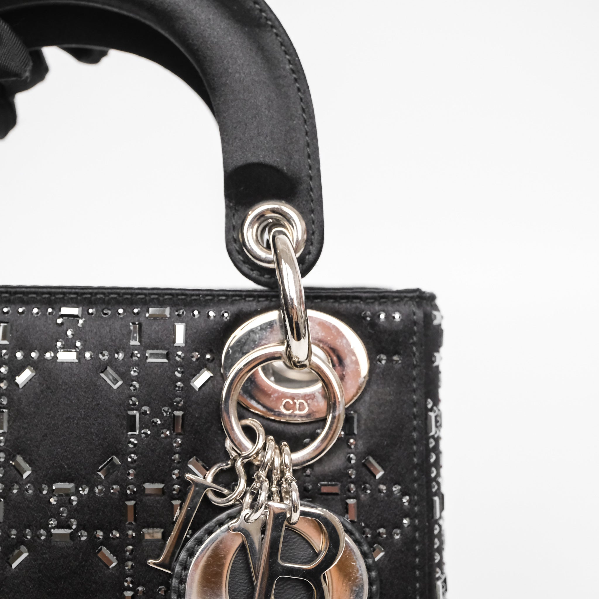 Christian Dior Mini Lady Dior Bag Black Strass Cannage Satin Silver Hardware