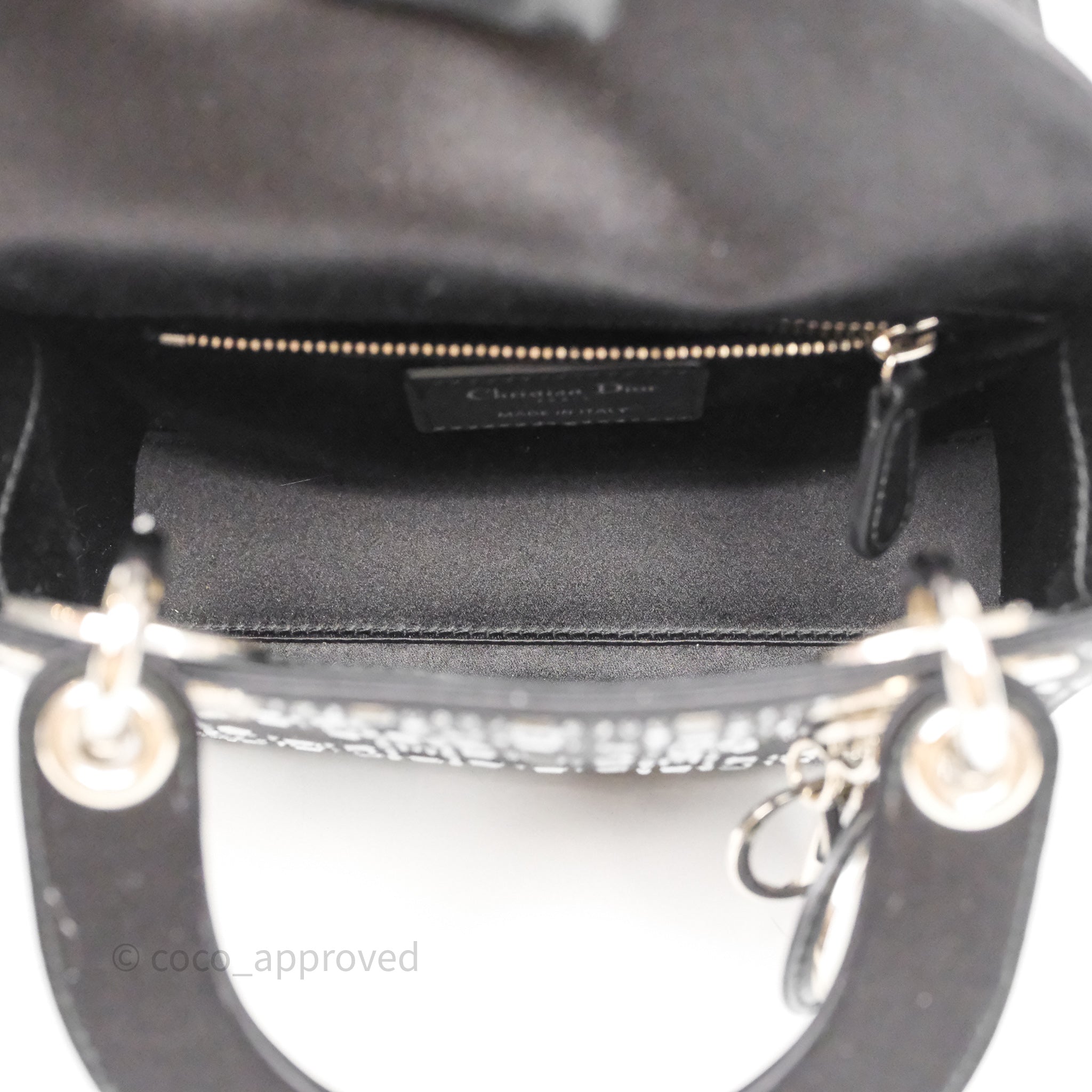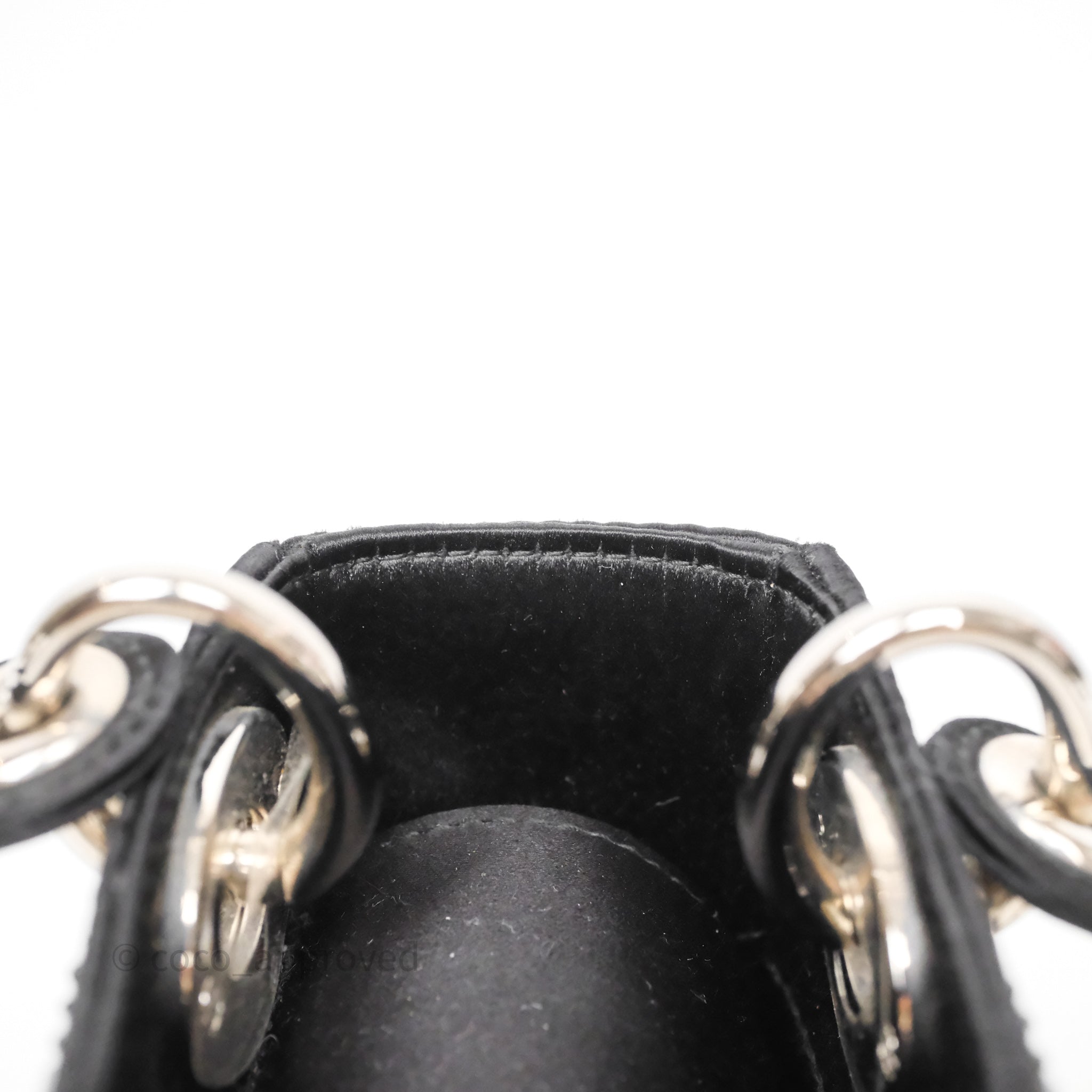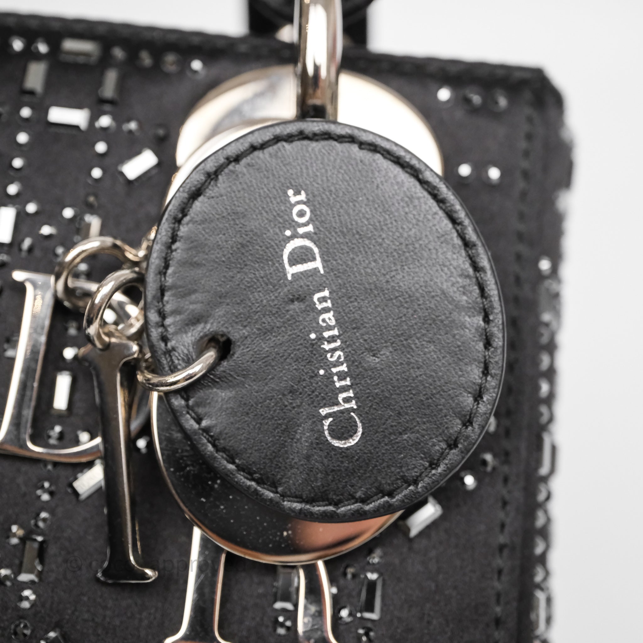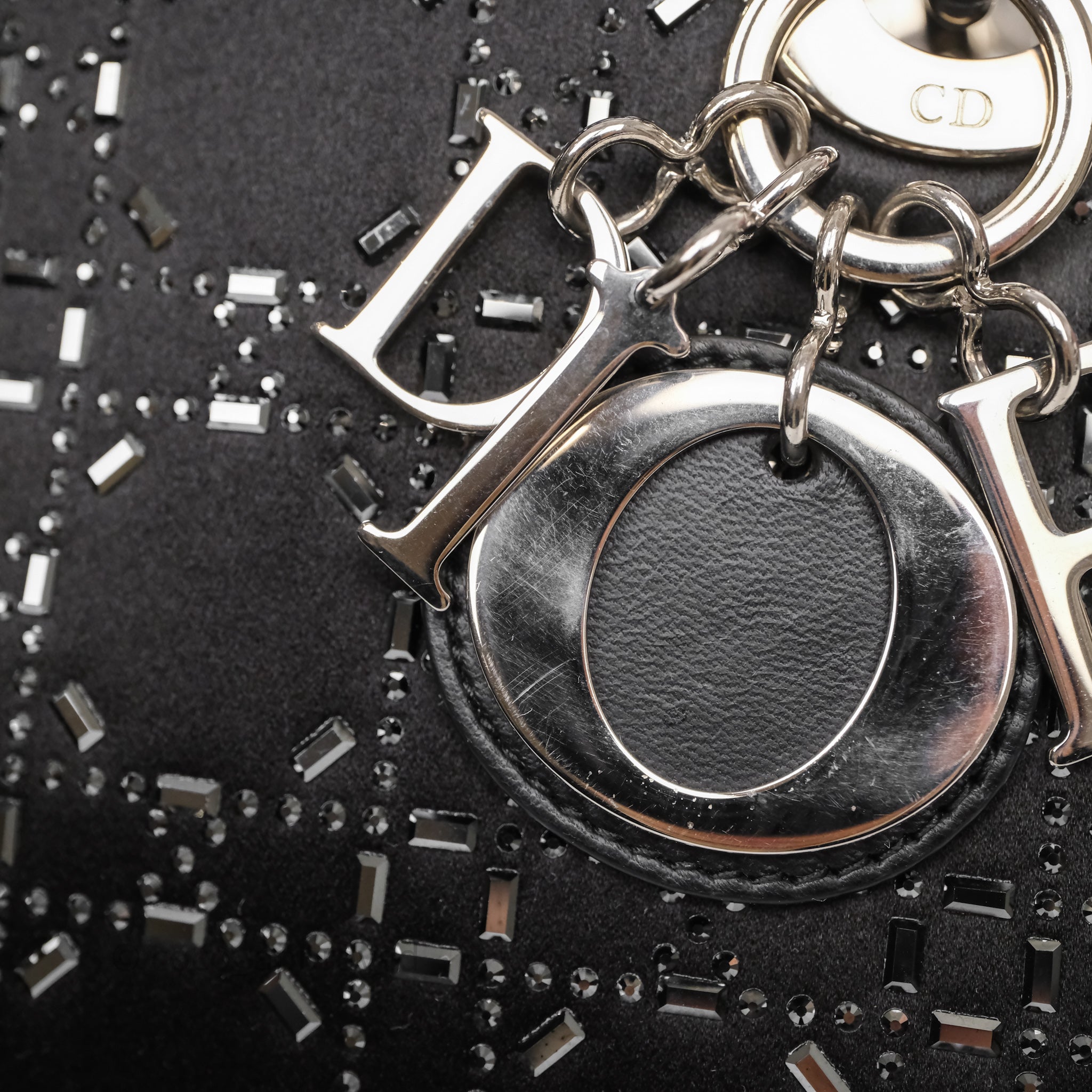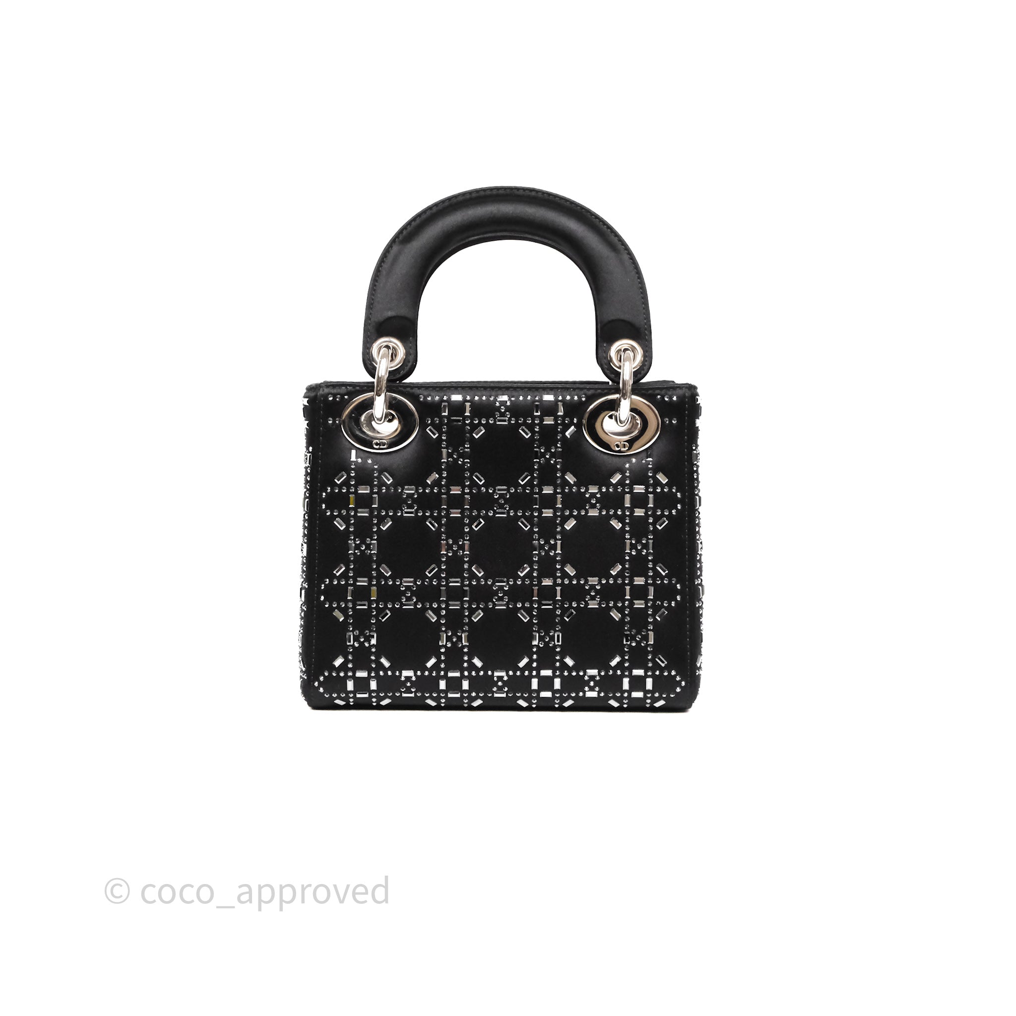 Christian Dior Mini Lady Dior Bag Black Strass Cannage Satin Silver Hardware