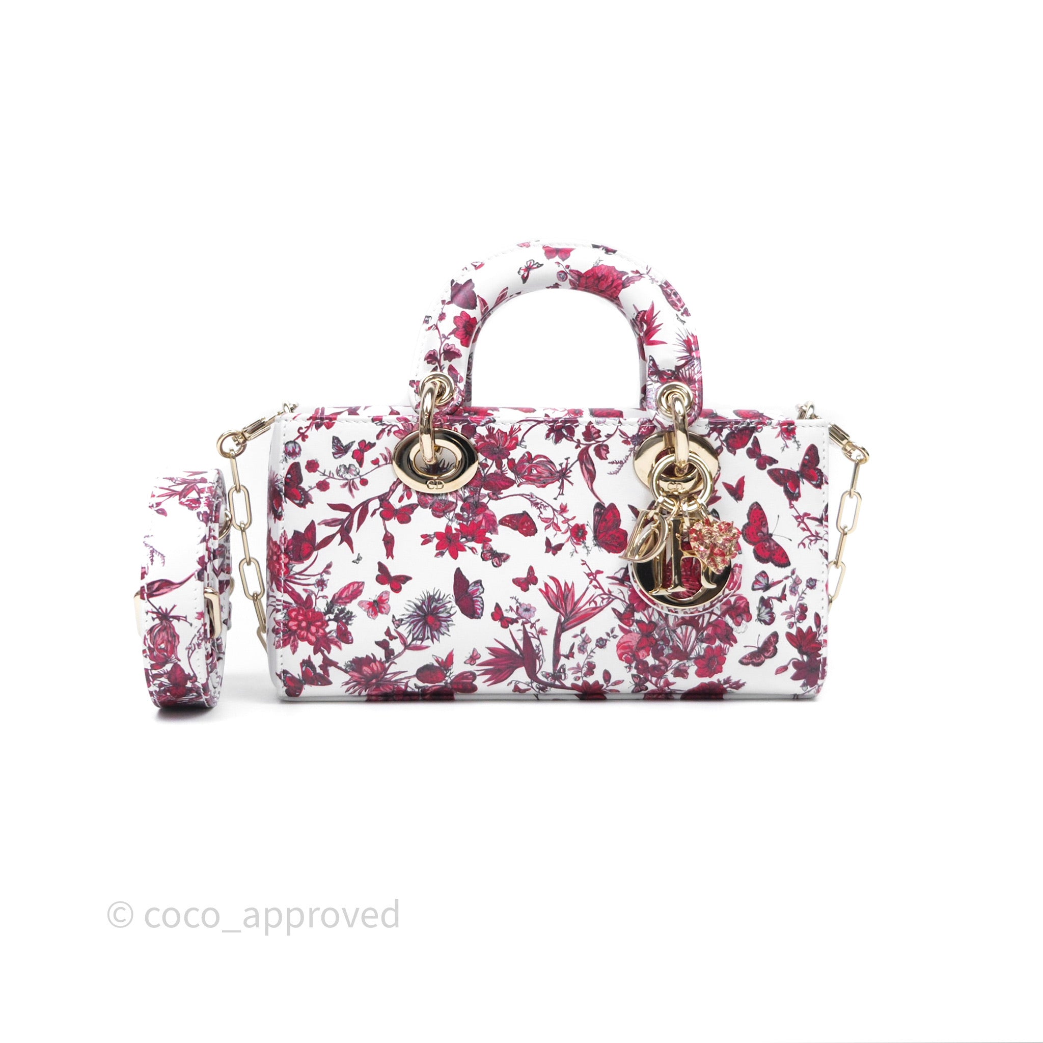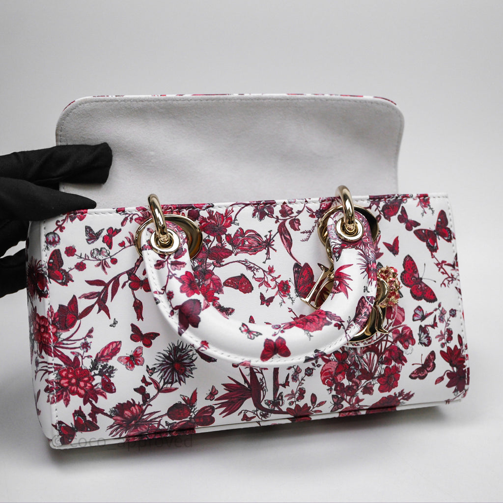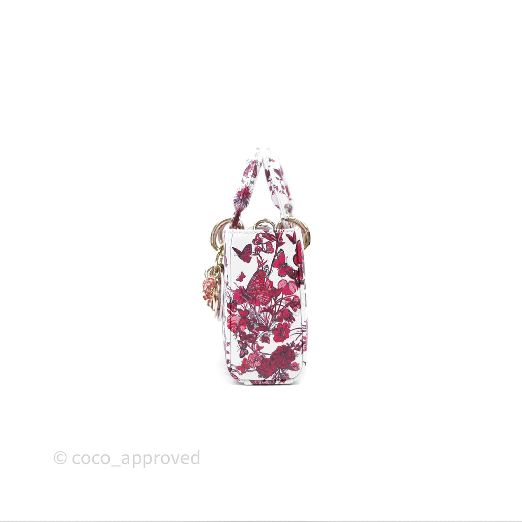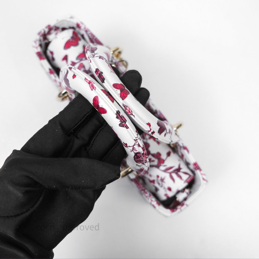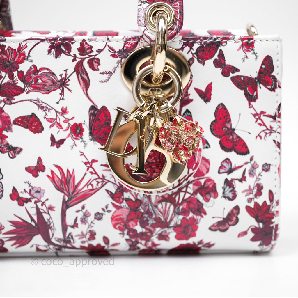 Christian Dior Small Lady D-Joy Bag Coeur Des Papillons Calfskin Light Gold Hardware