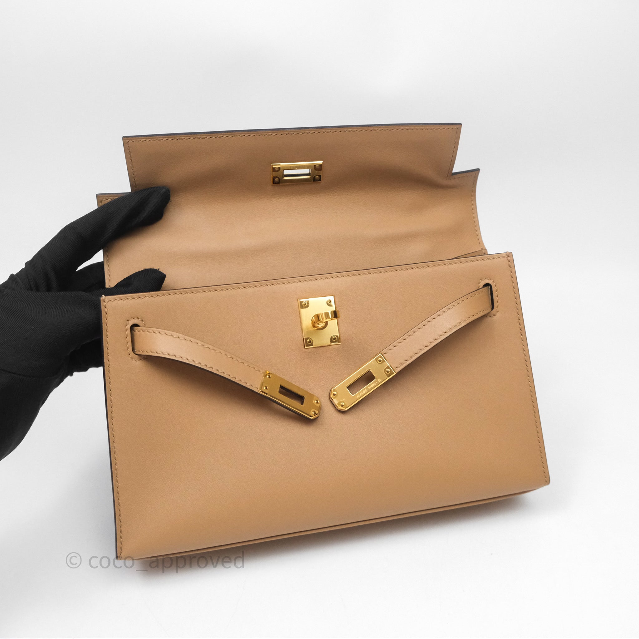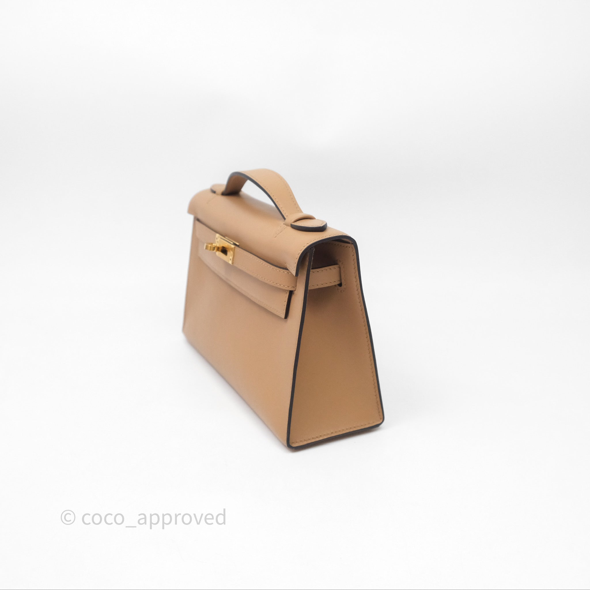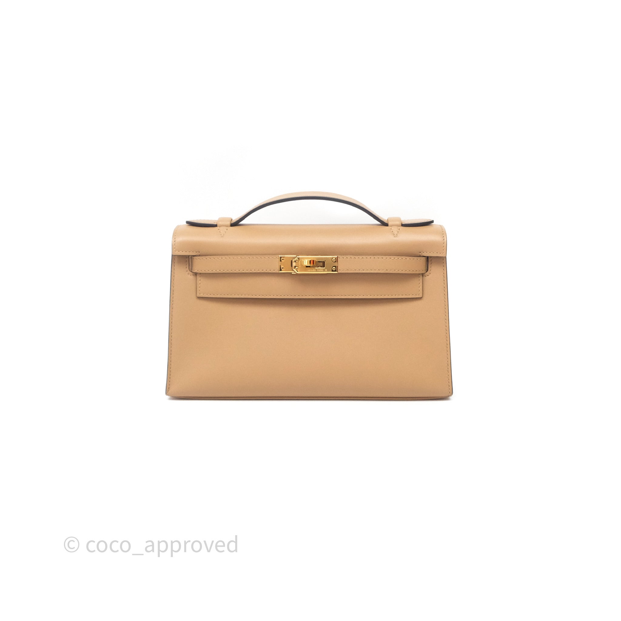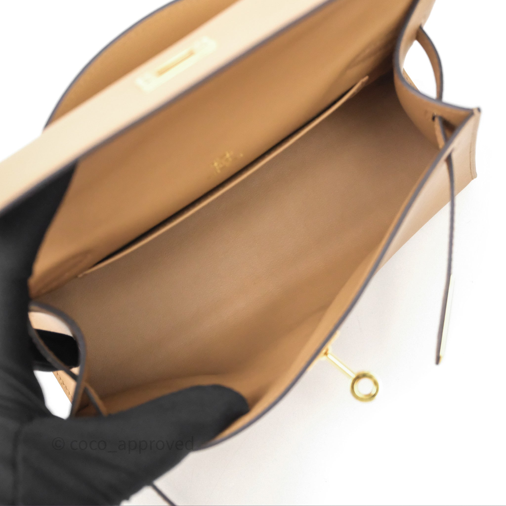 Hermes Kelly Pochette Veau Swift Chai 0M Gold Hardware