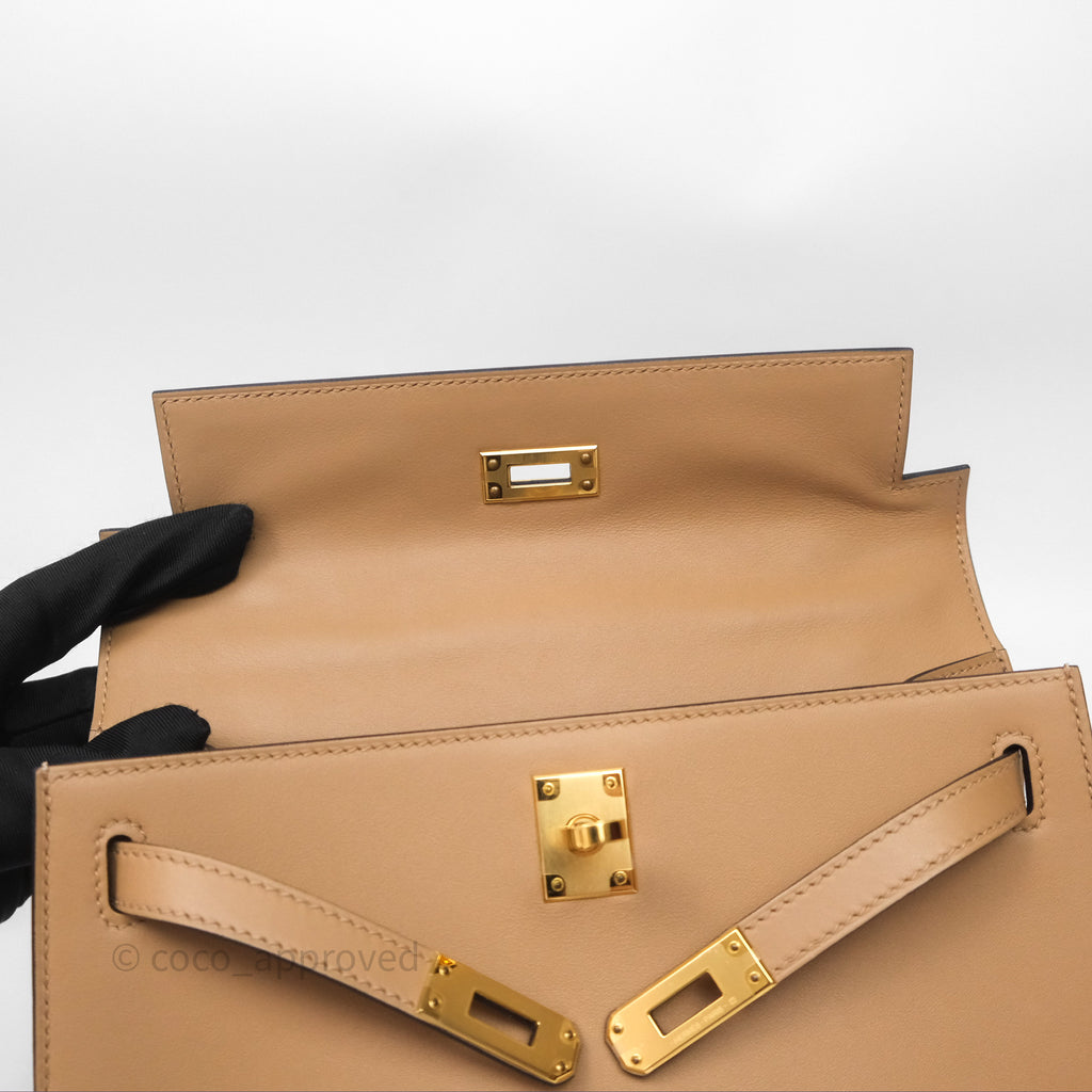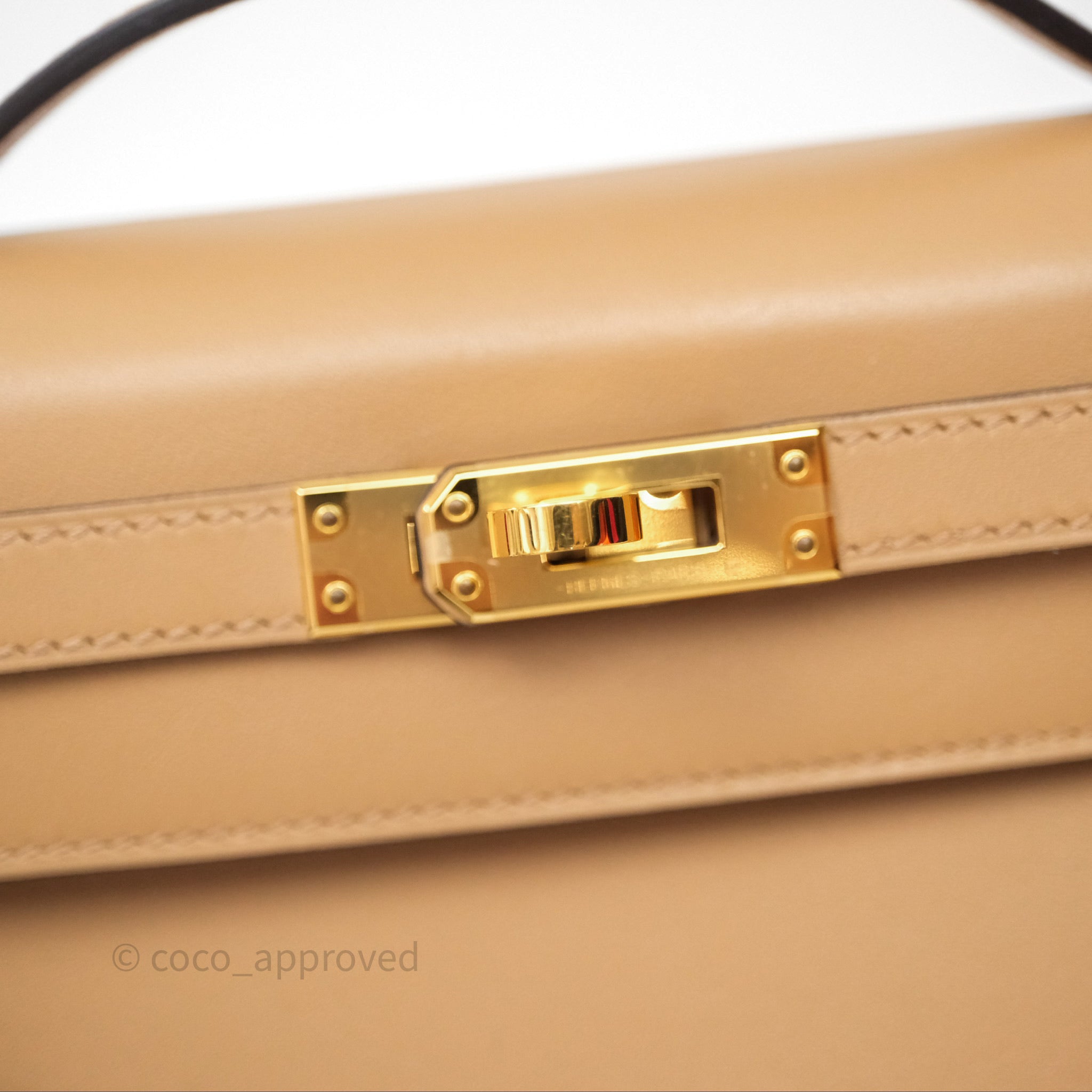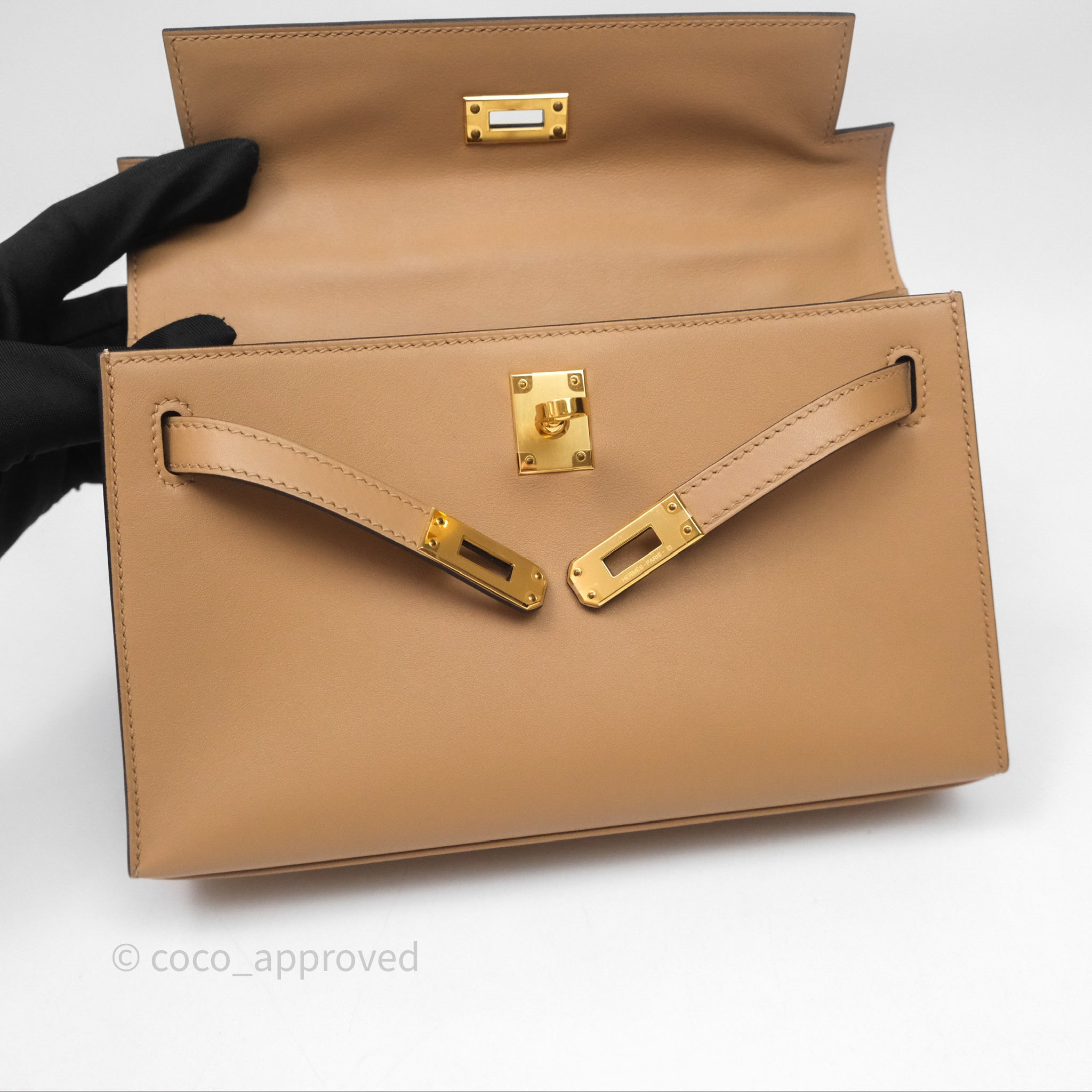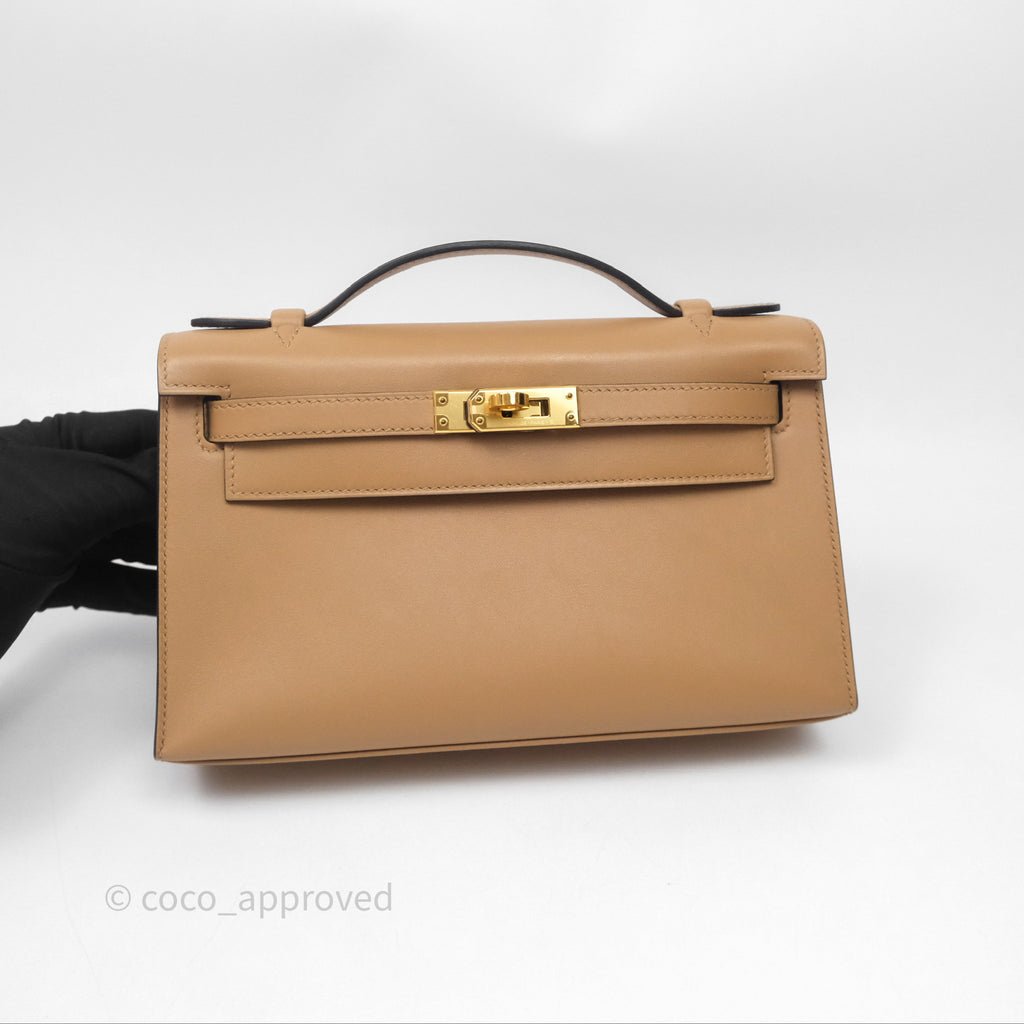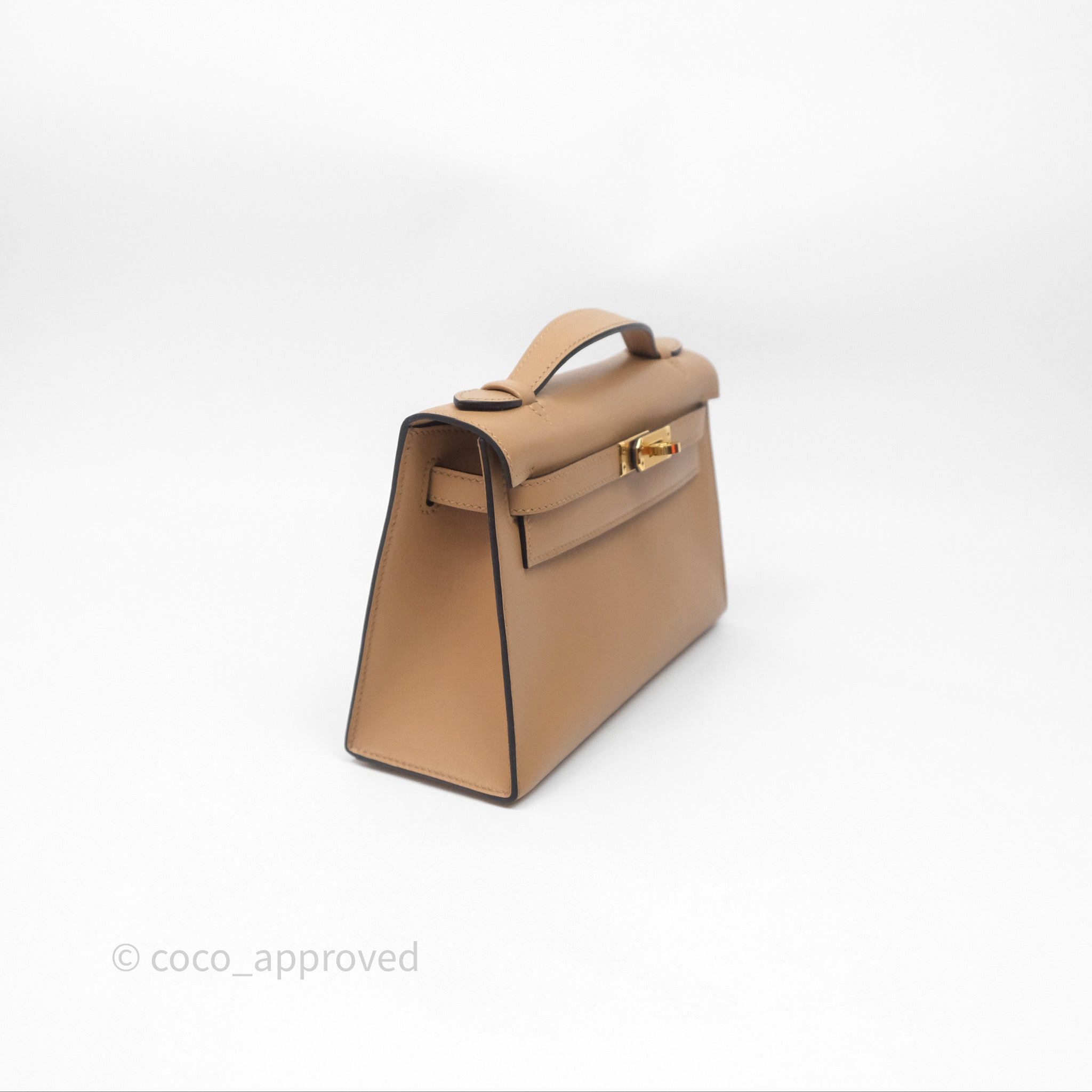 Hermes Kelly Pochette Veau Swift Chai 0M Gold Hardware