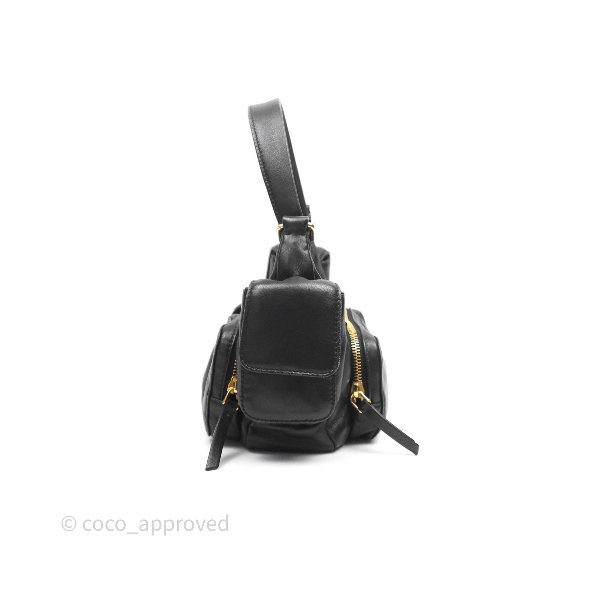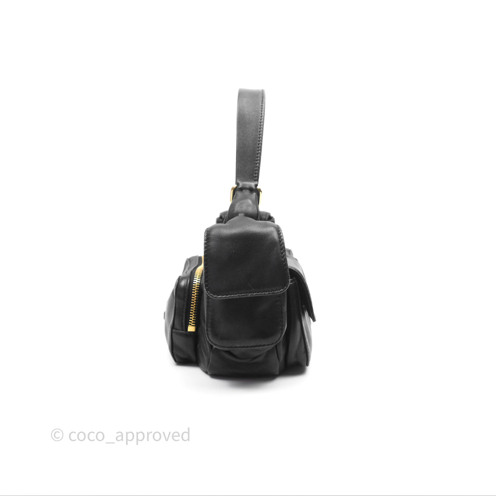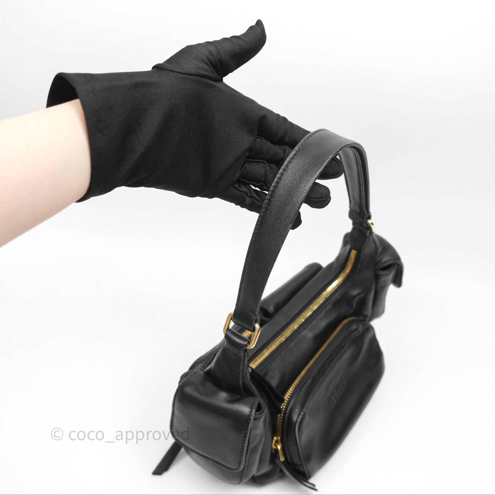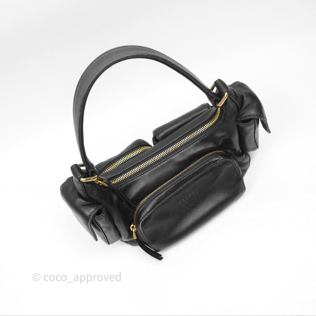 Miu Miu Nappa Leather Pocket Bag Black Lambskin Gold Hardware