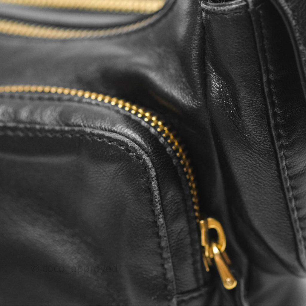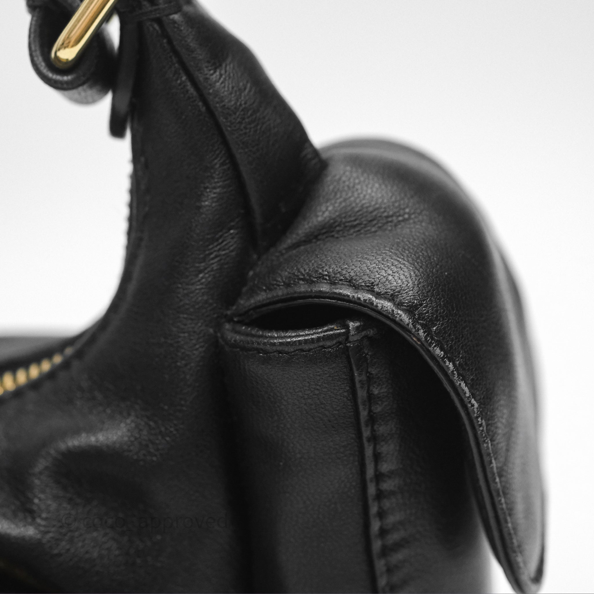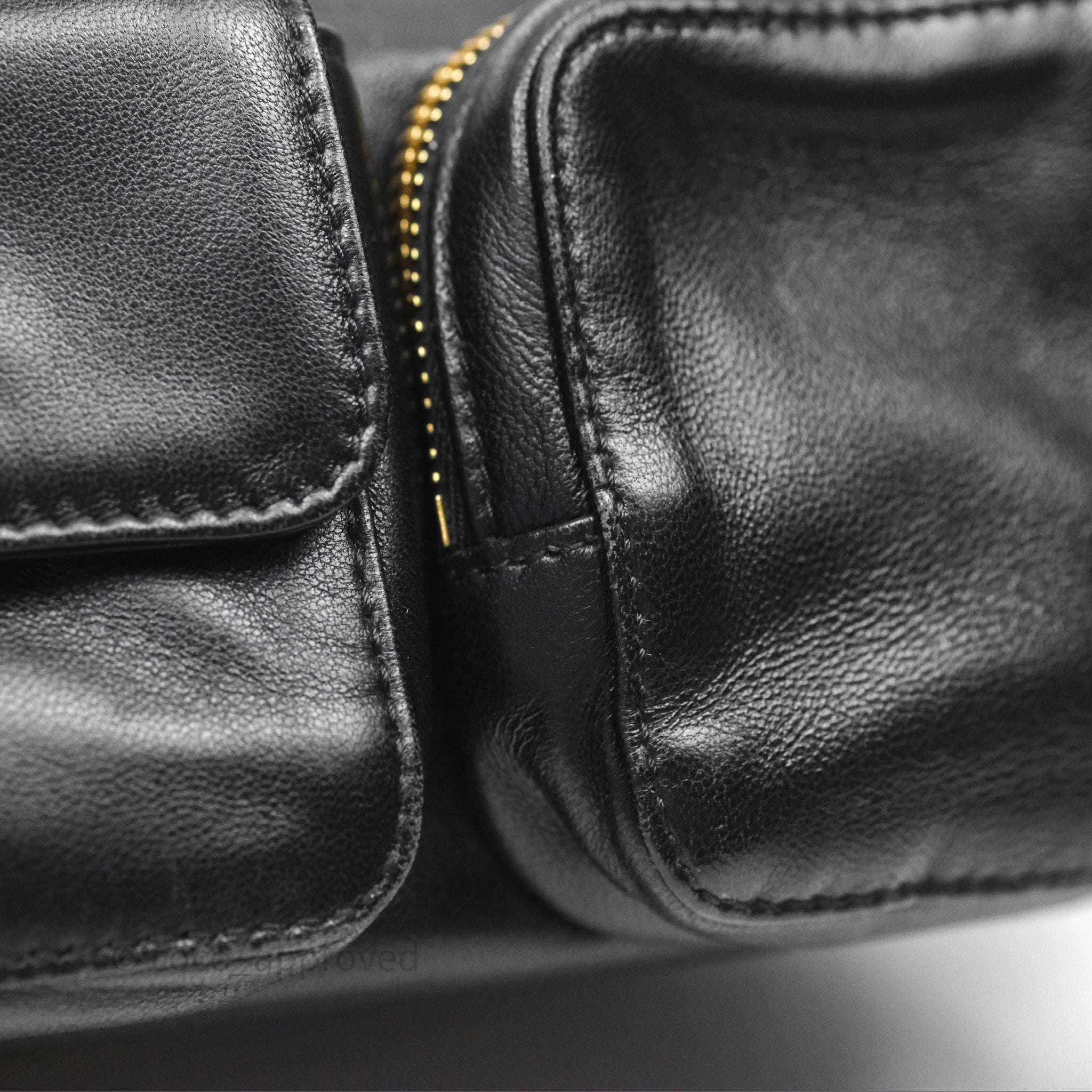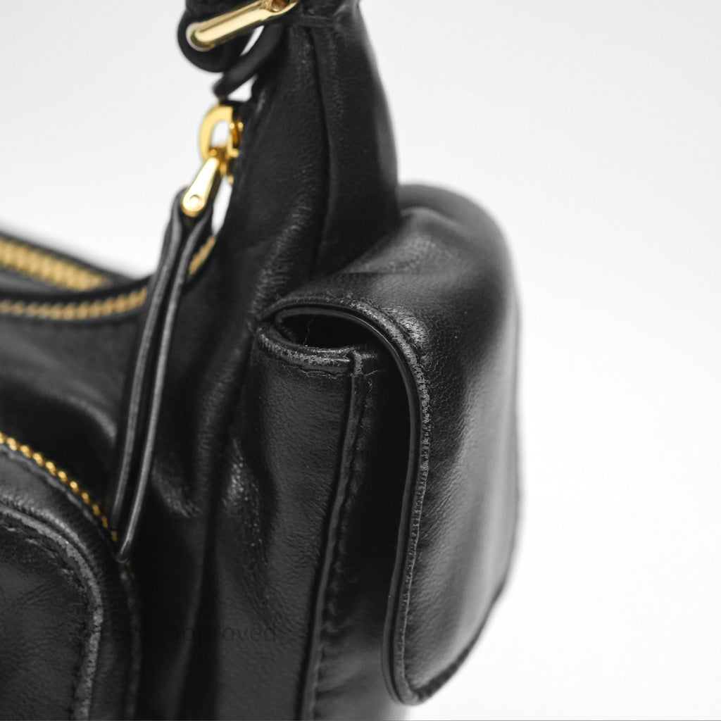 Miu Miu Nappa Leather Pocket Bag Black Lambskin Gold Hardware
