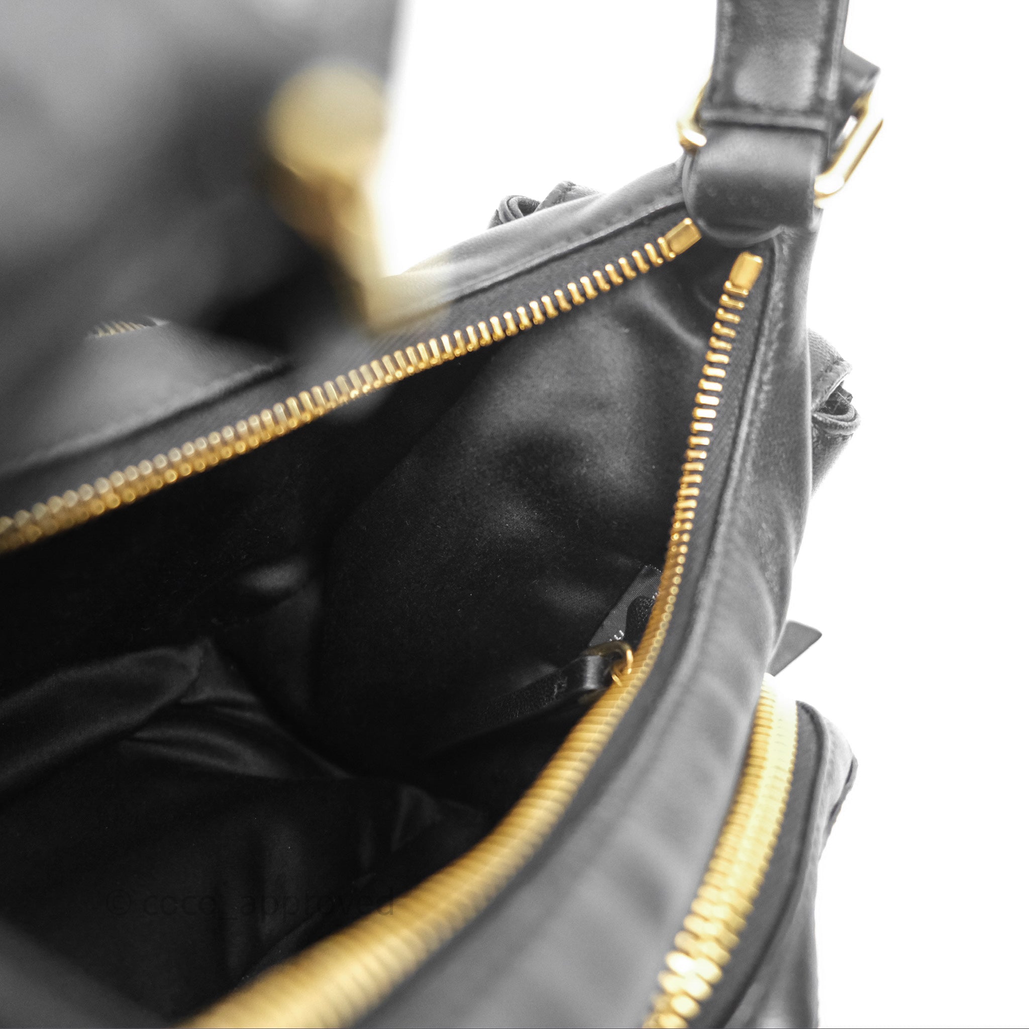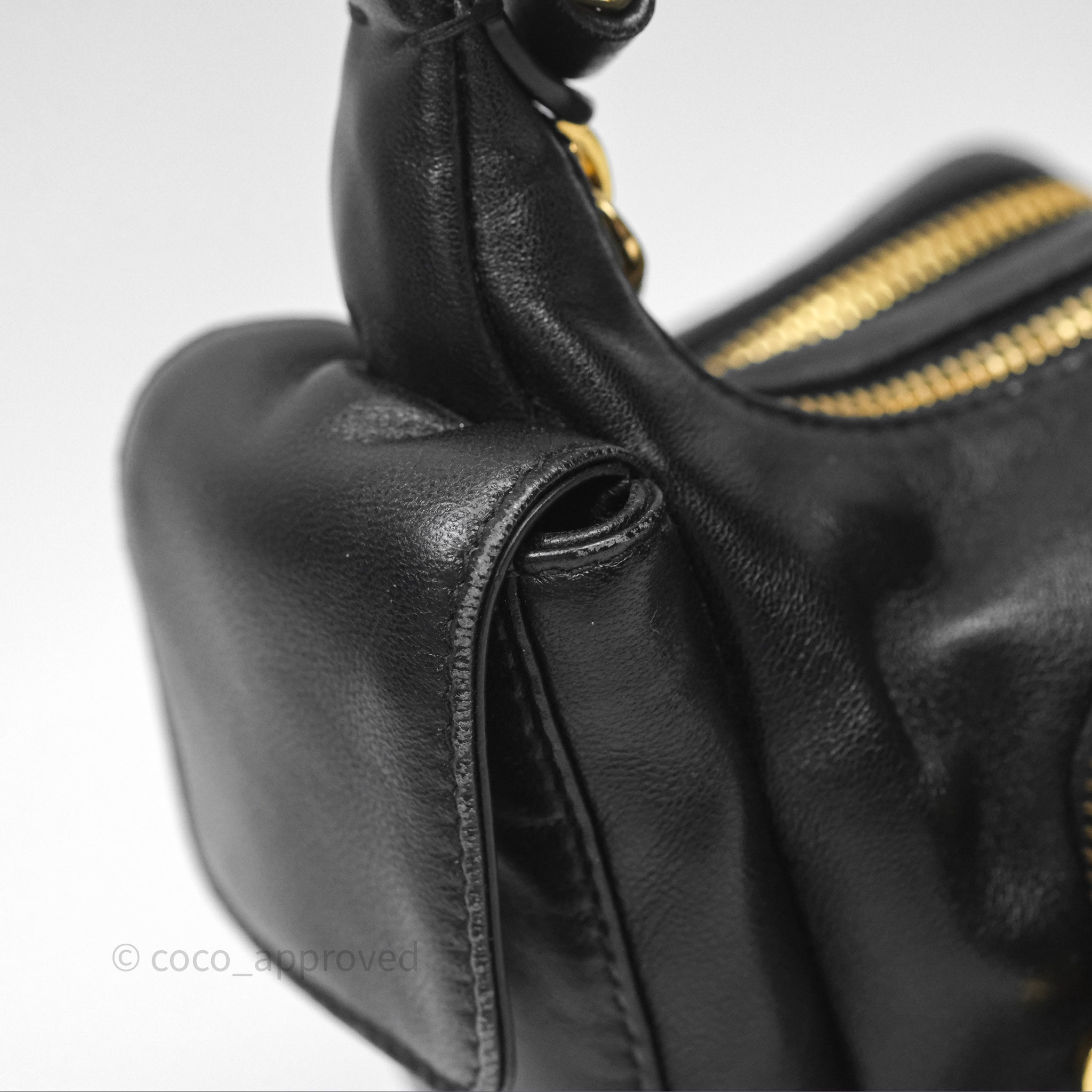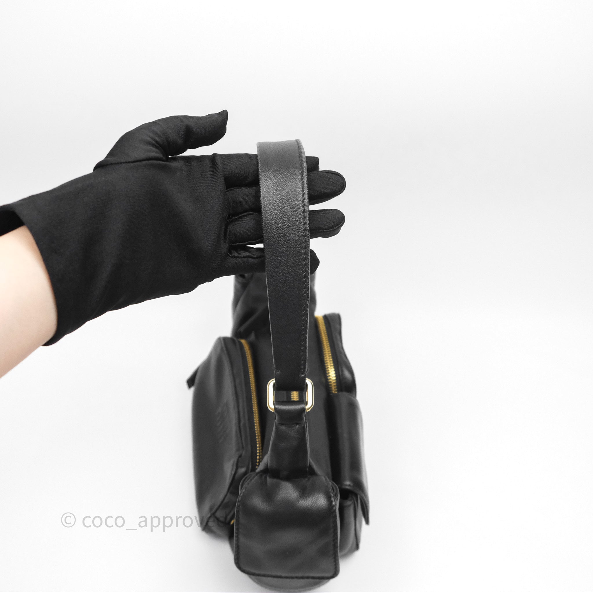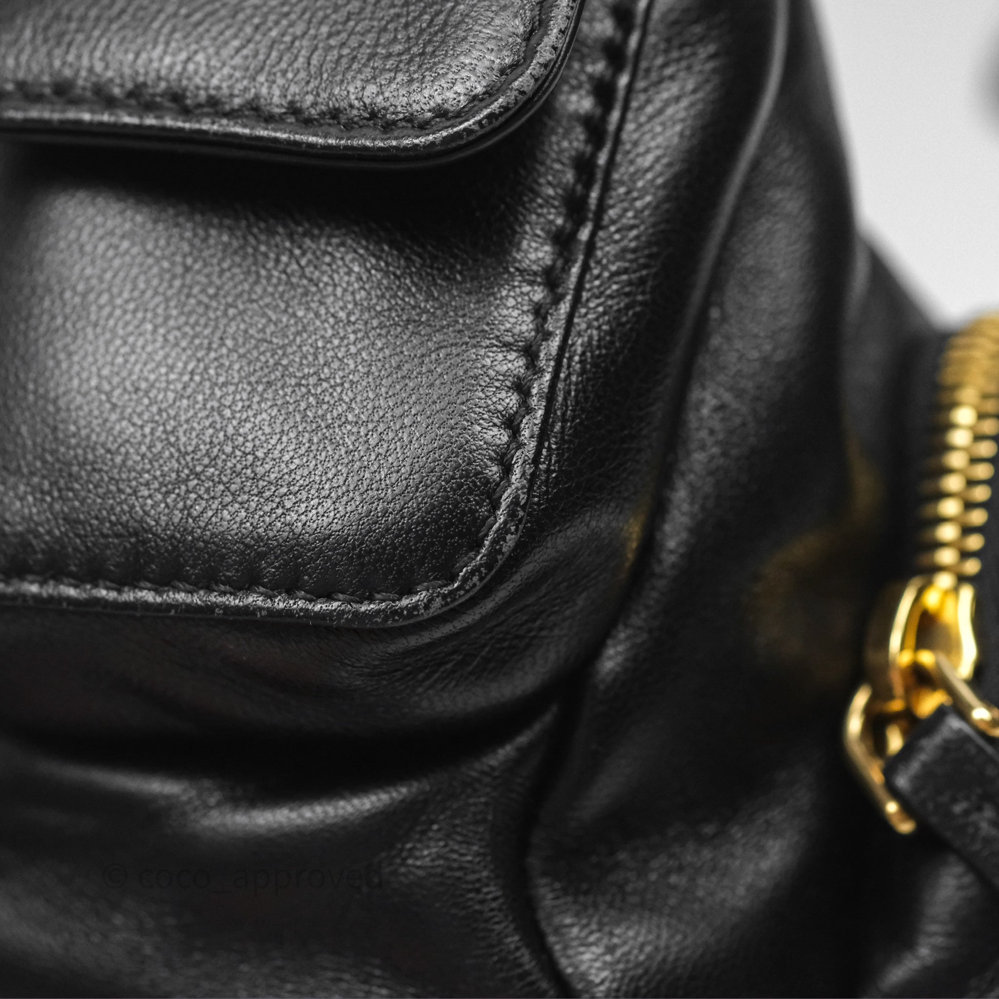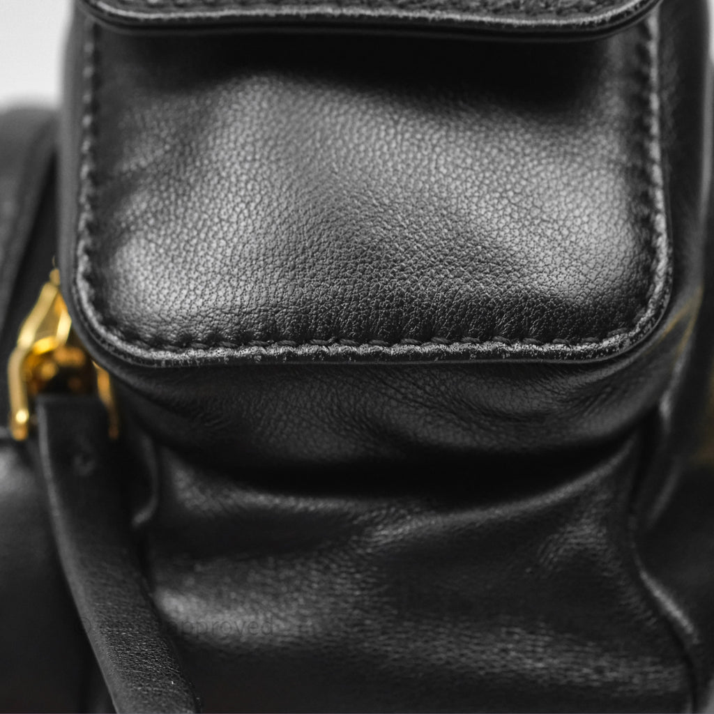Miu Miu Nappa Leather Pocket Bag Black Lambskin Gold Hardware