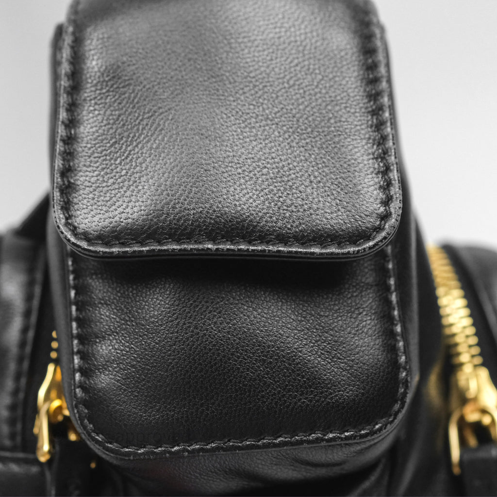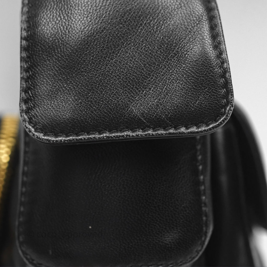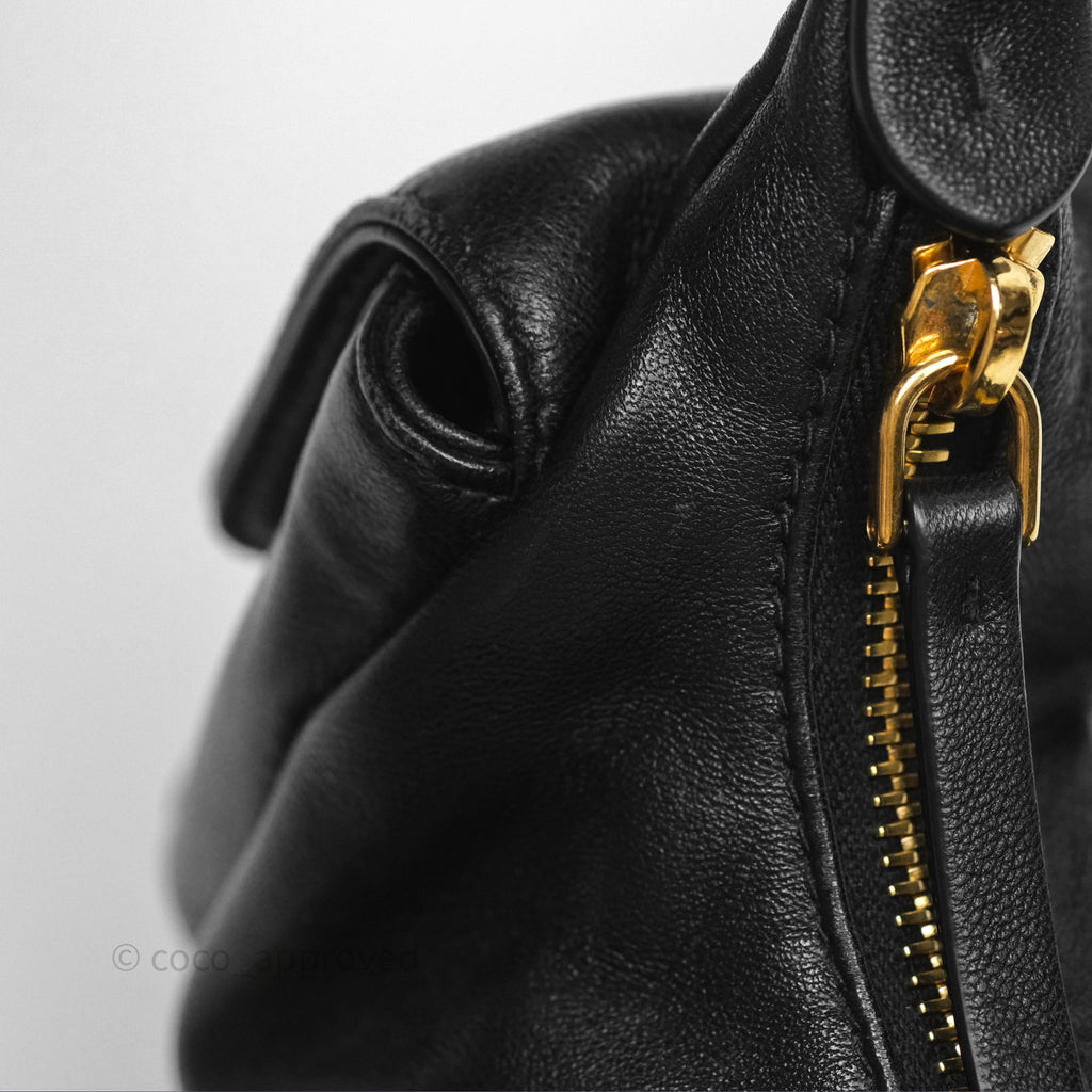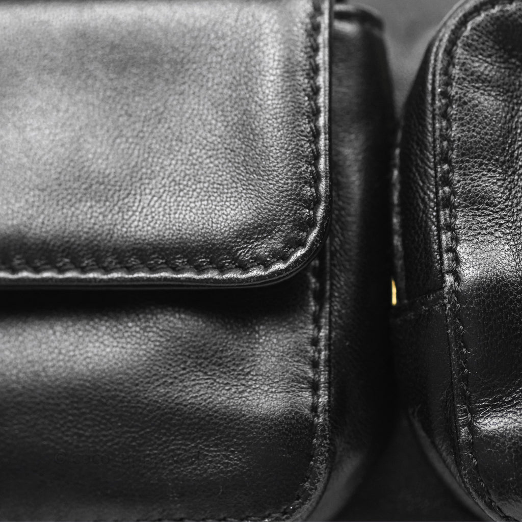Miu Miu Nappa Leather Pocket Bag Black Lambskin Gold Hardware