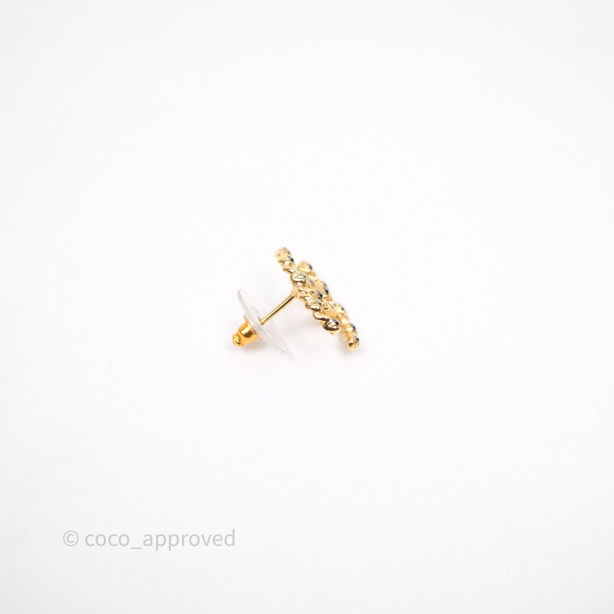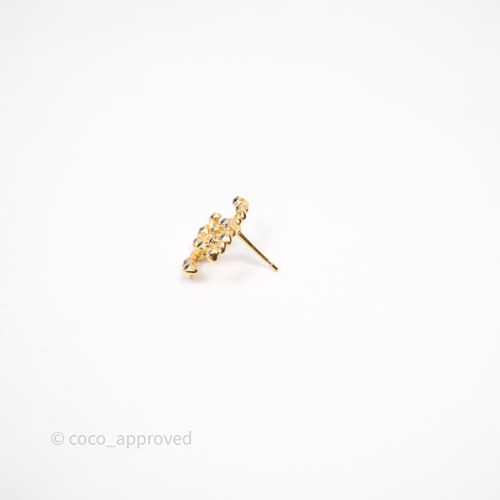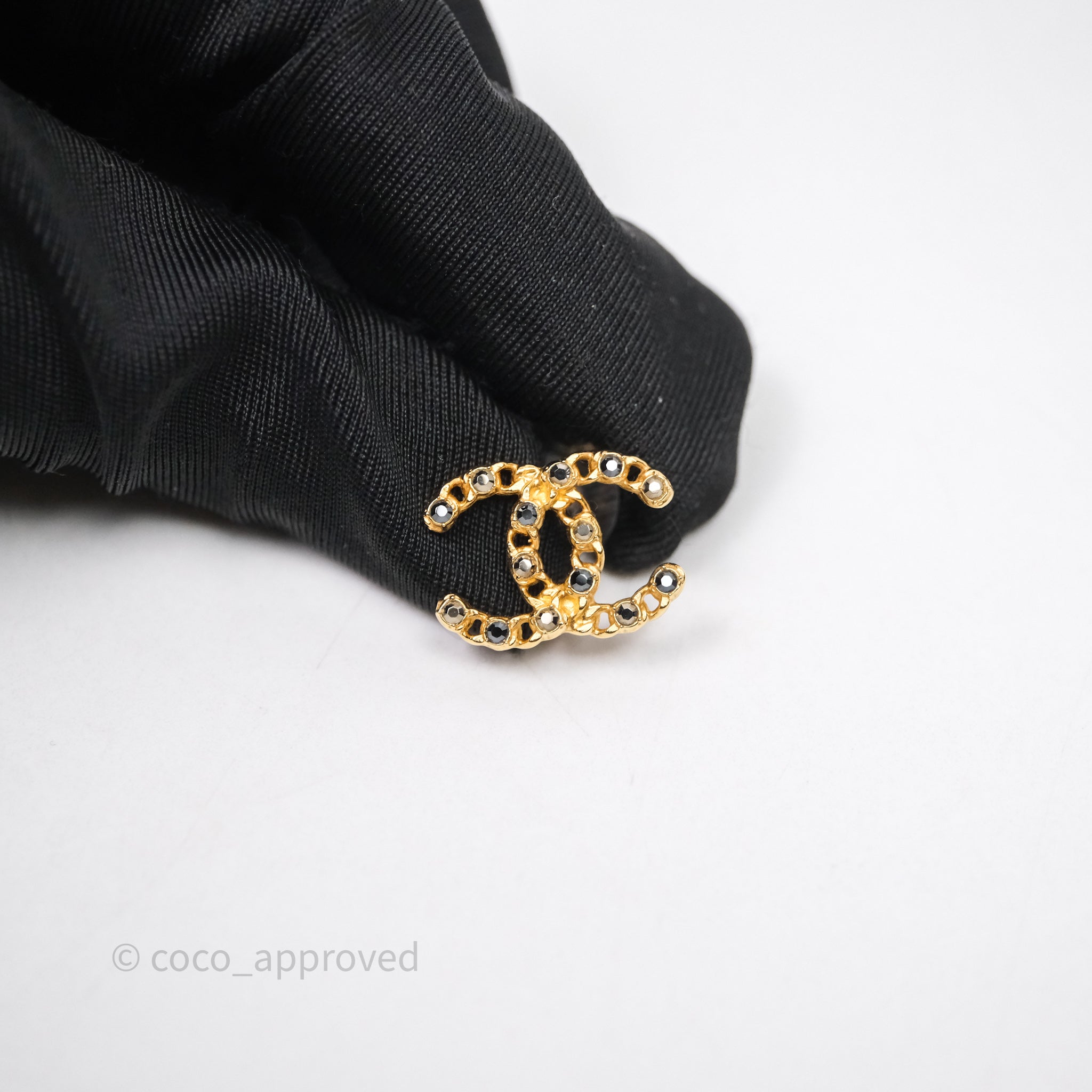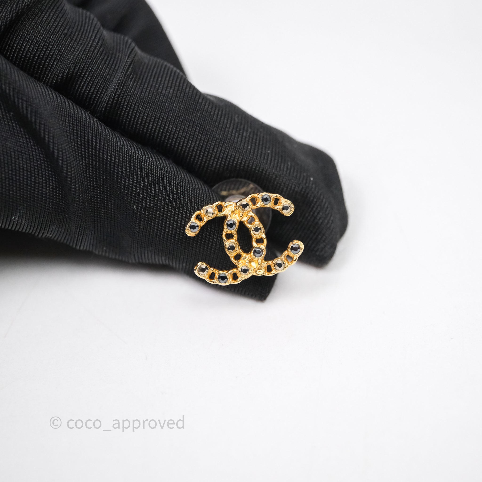 Chanel CC Black Crystal Stud Earrings Gold Tone 20P