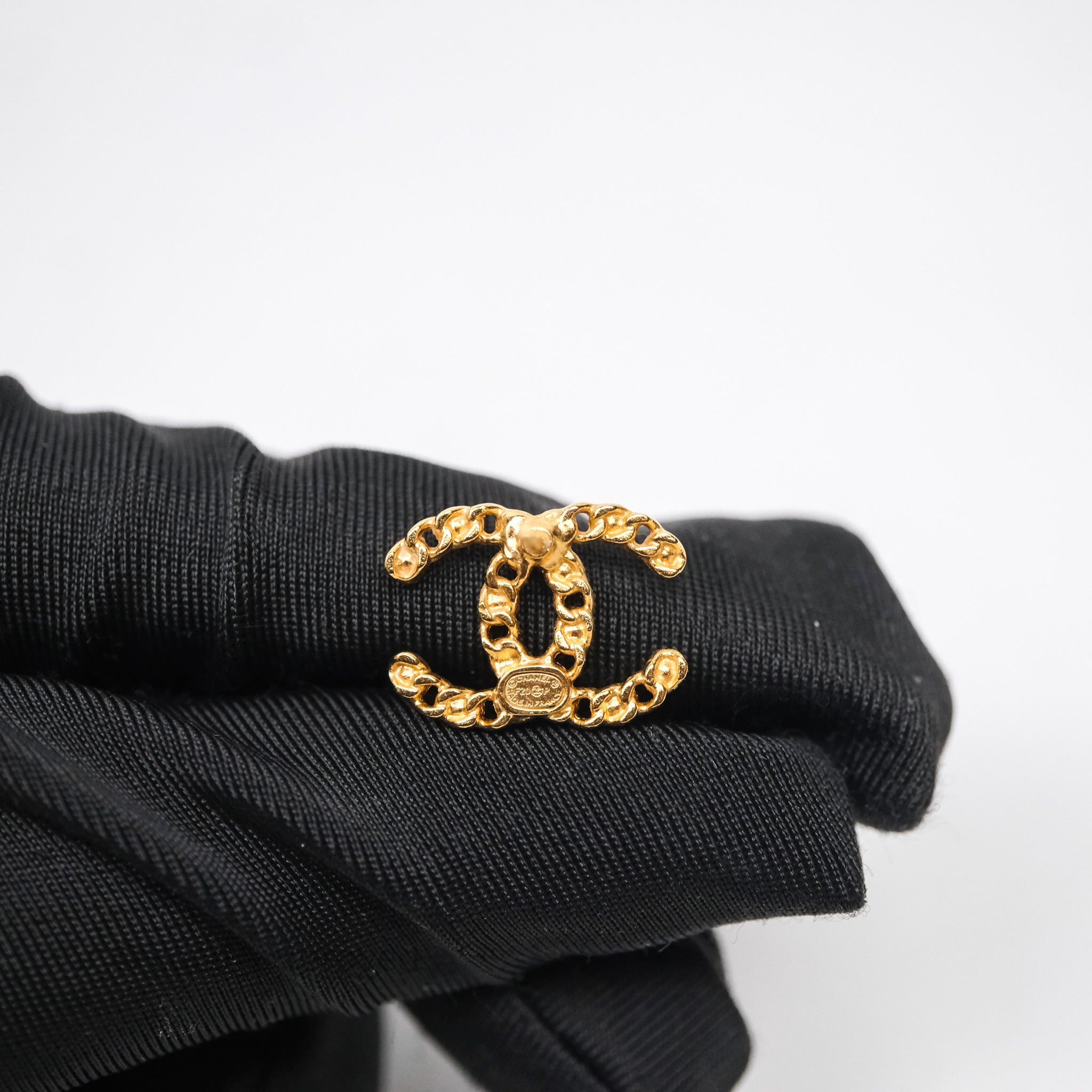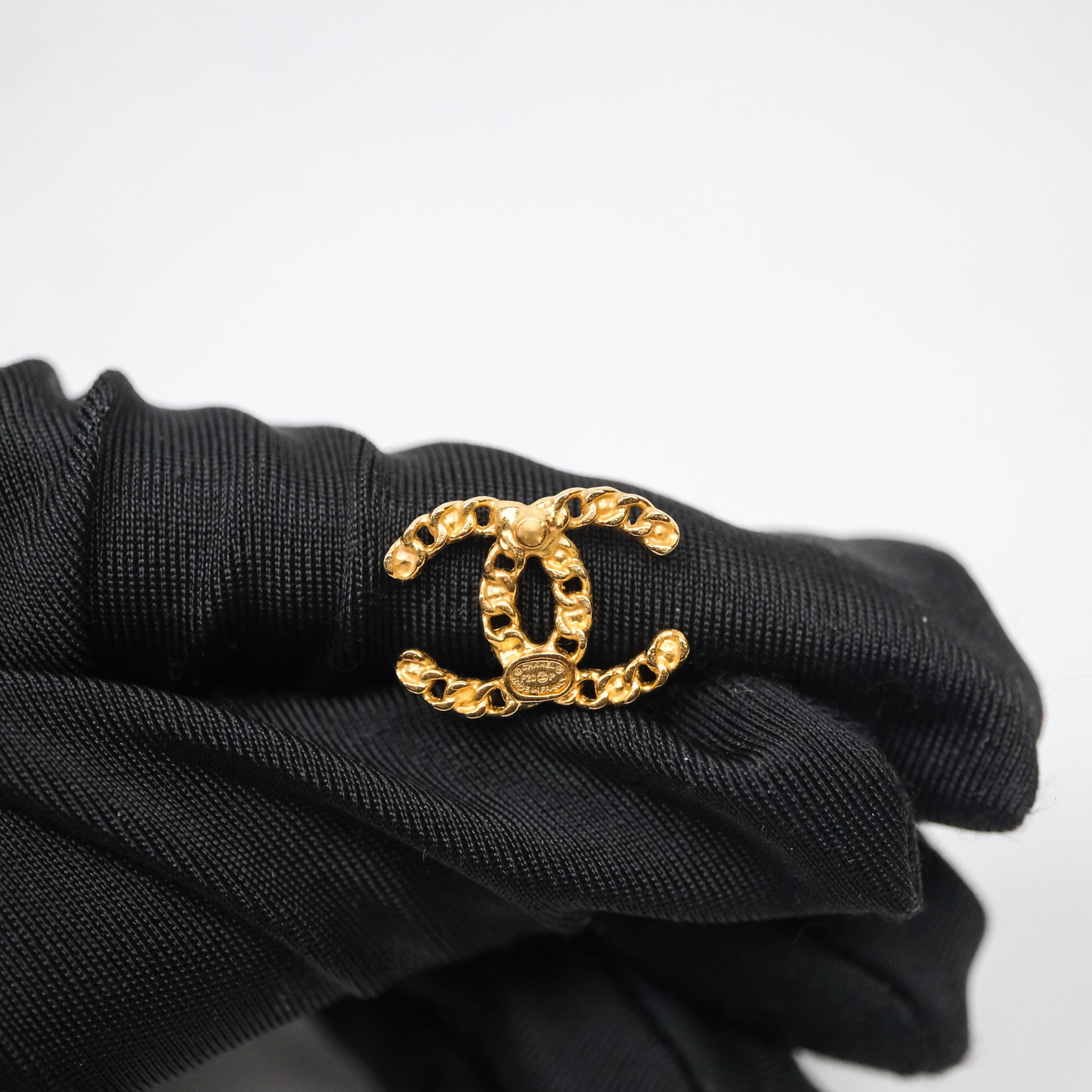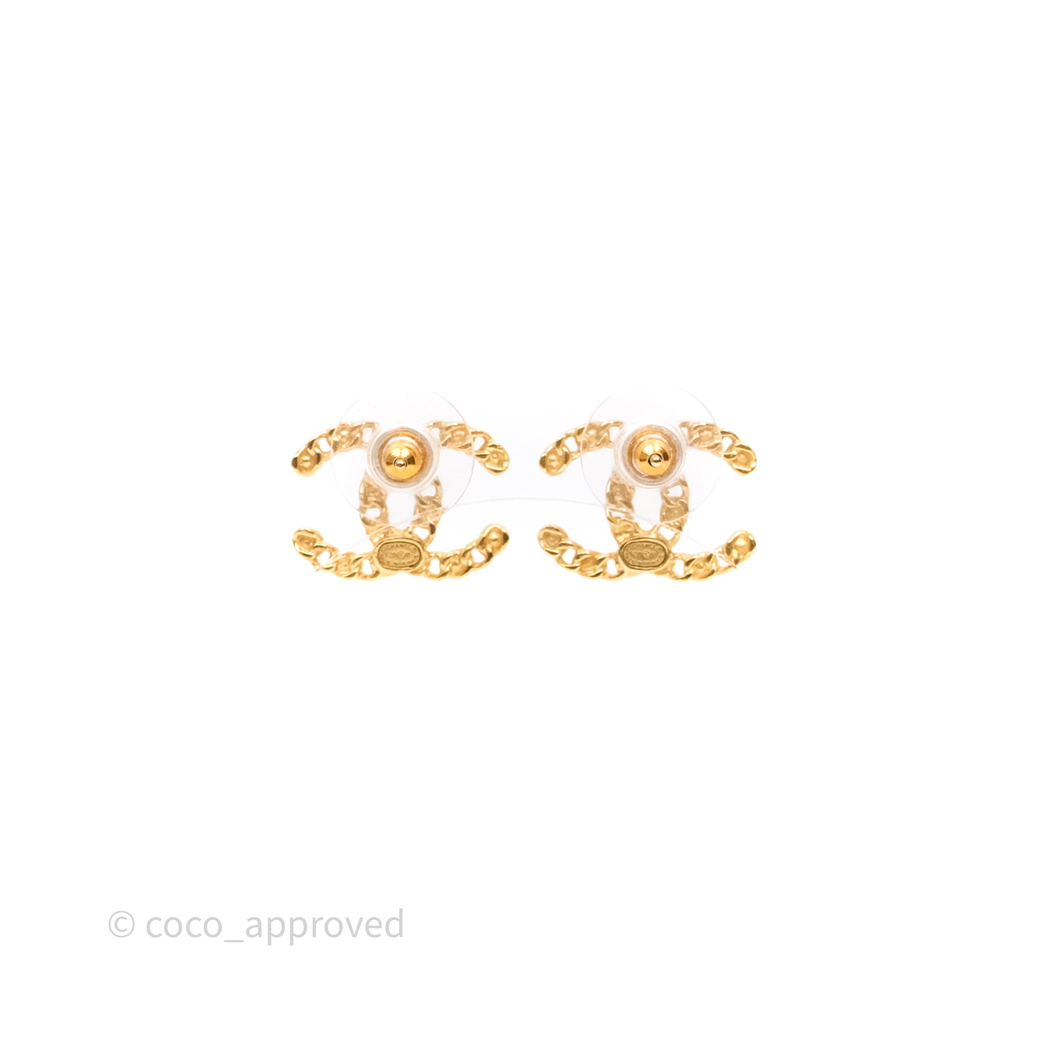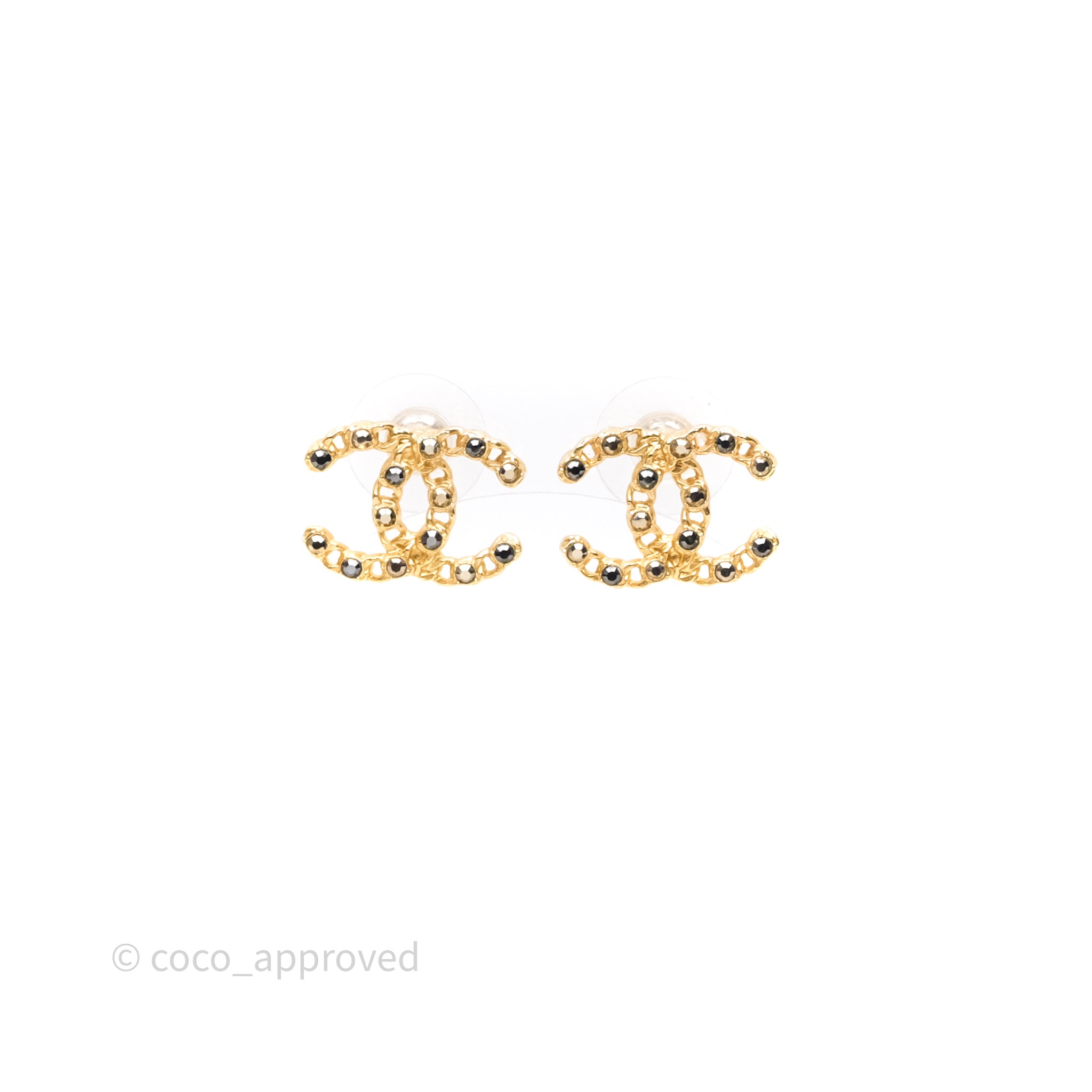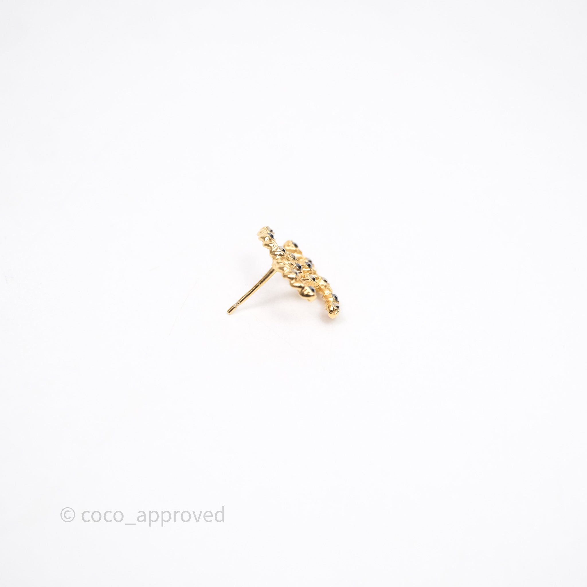 Chanel CC Black Crystal Stud Earrings Gold Tone 20P
