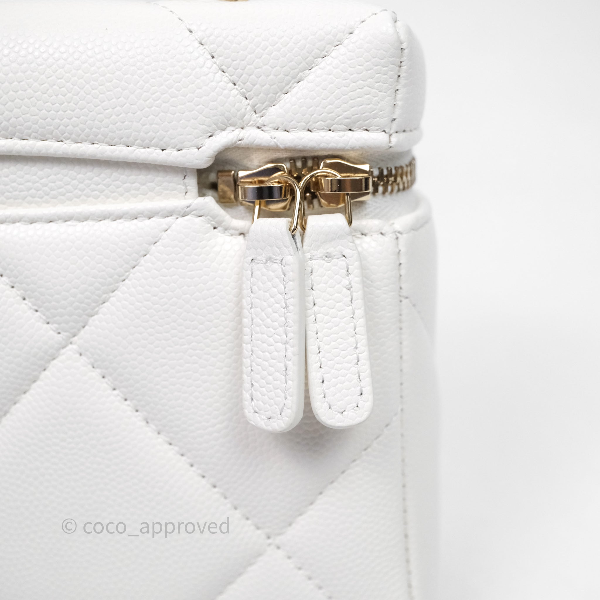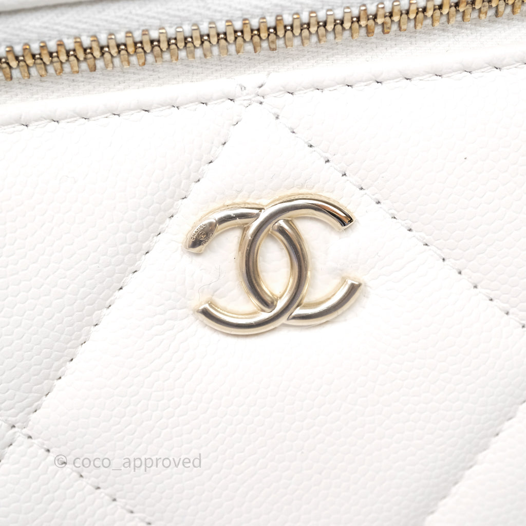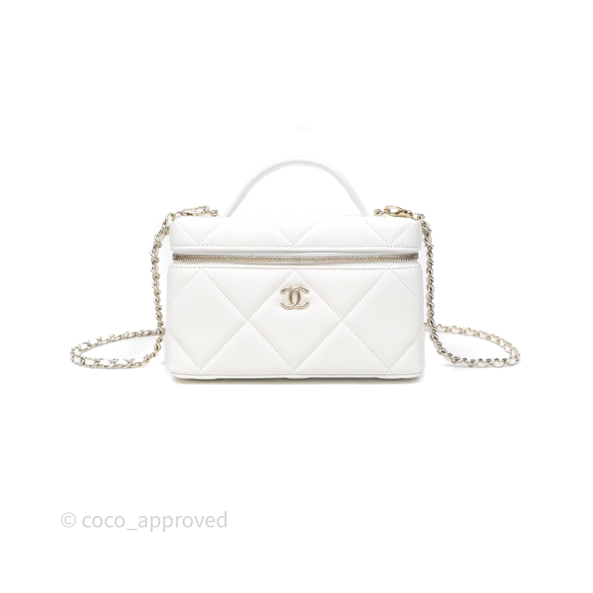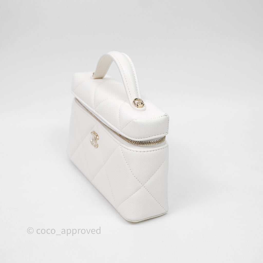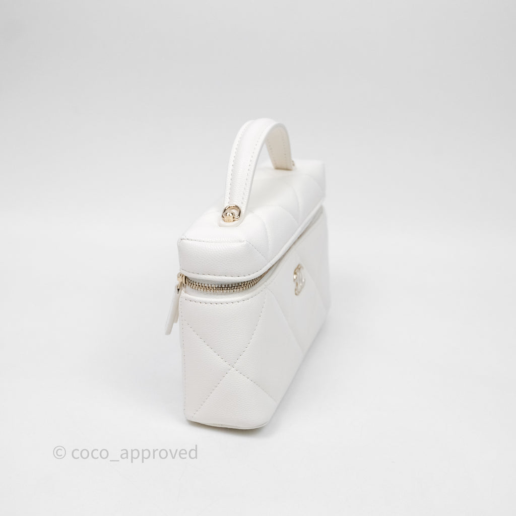Chanel Top Handle Long Vanity with Chain White Caviar Gold Hardware