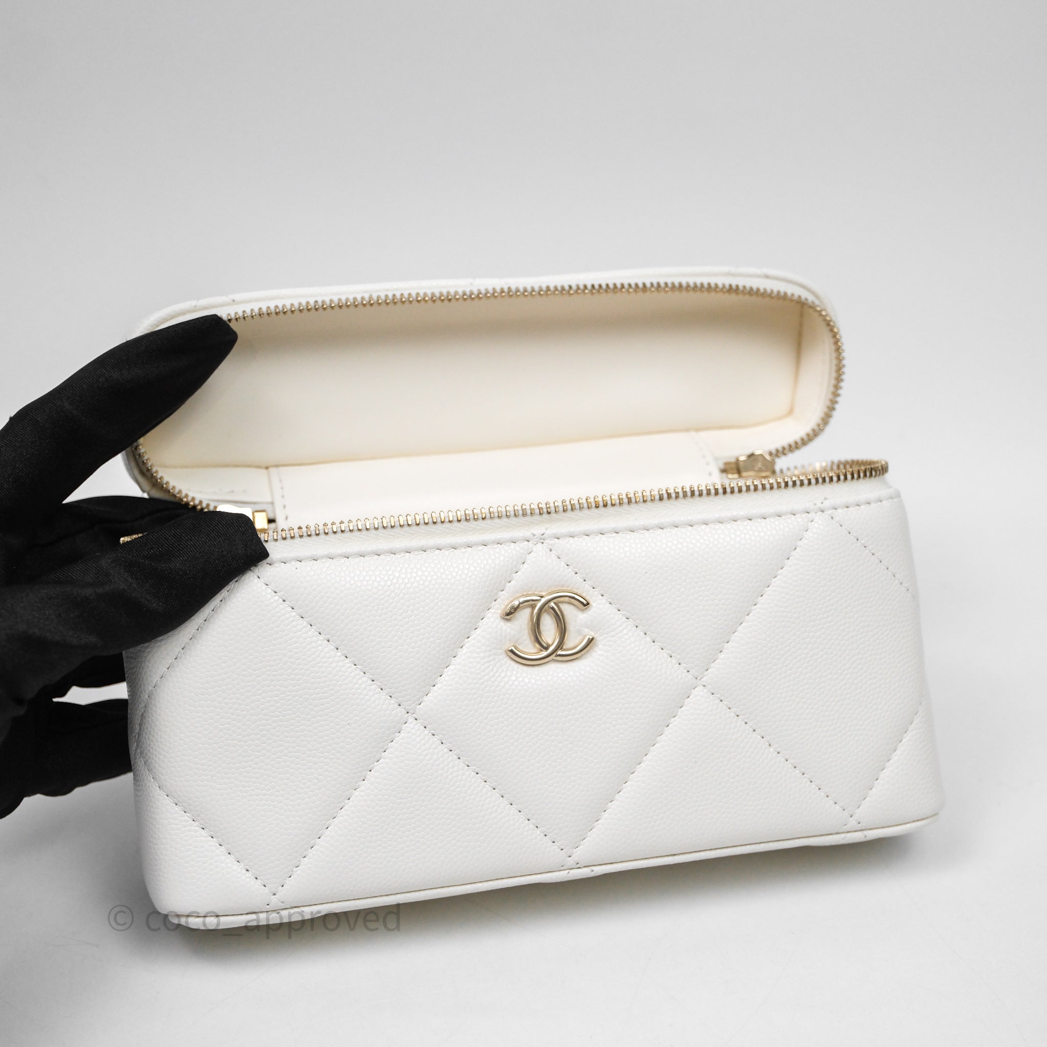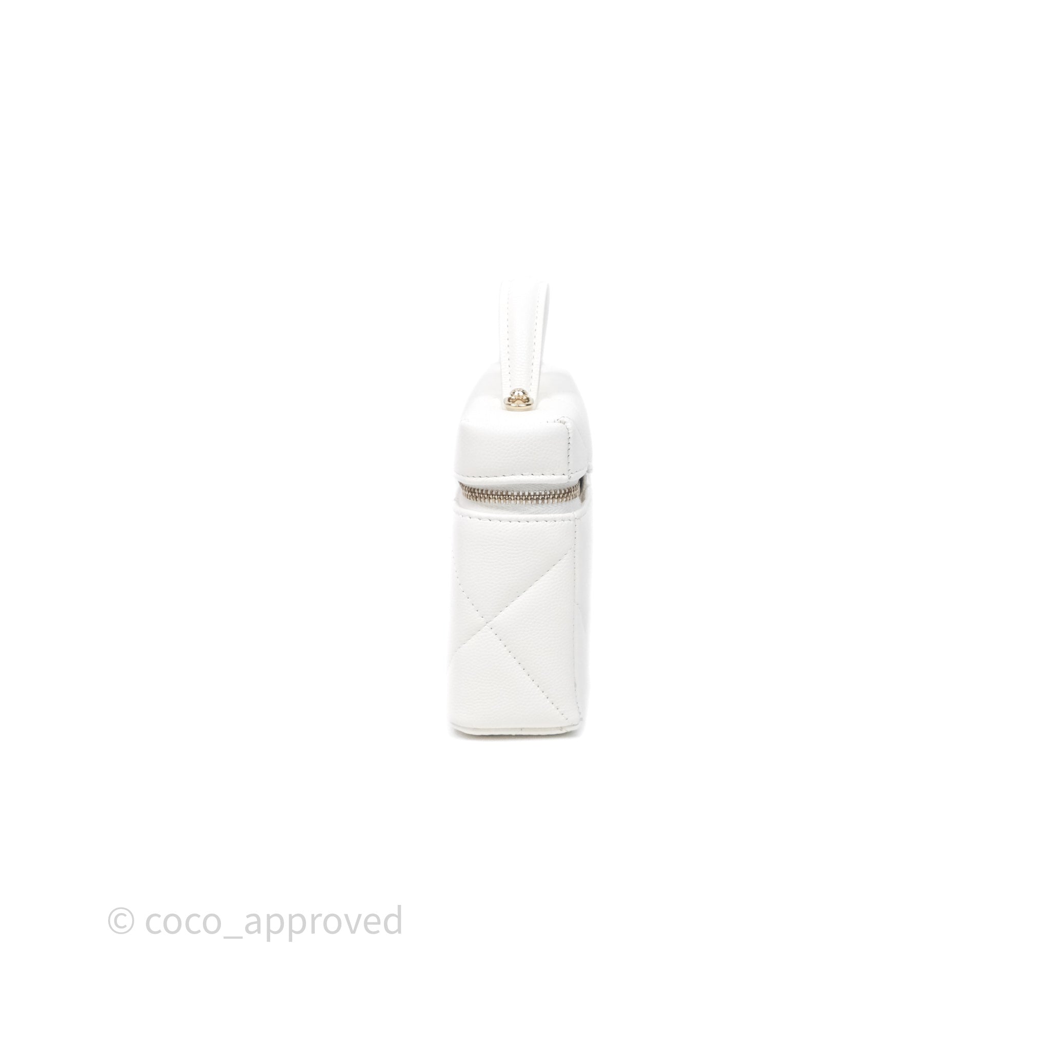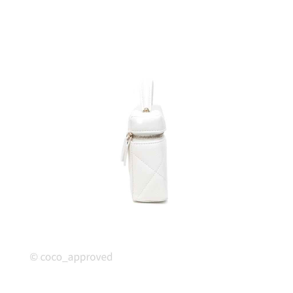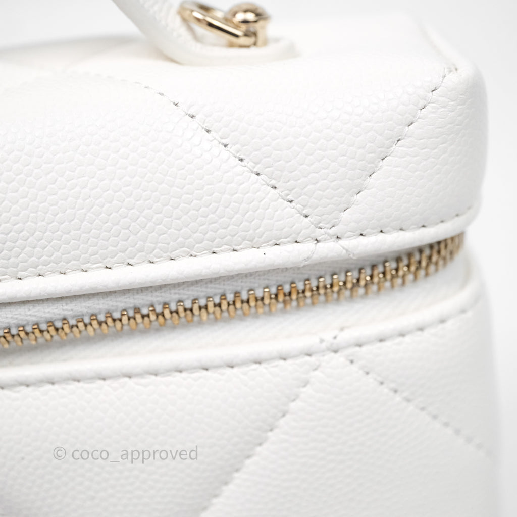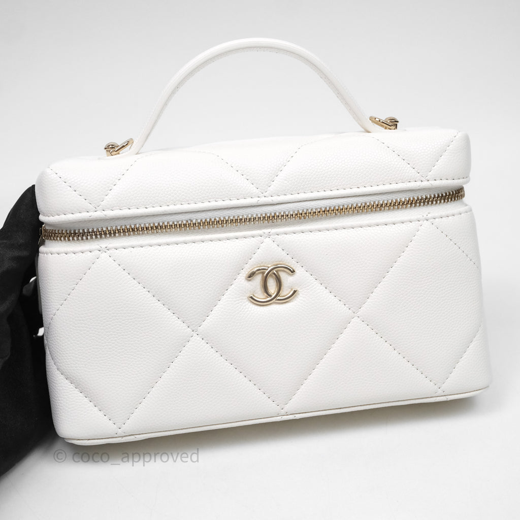 Chanel Top Handle Long Vanity with Chain White Caviar Gold Hardware