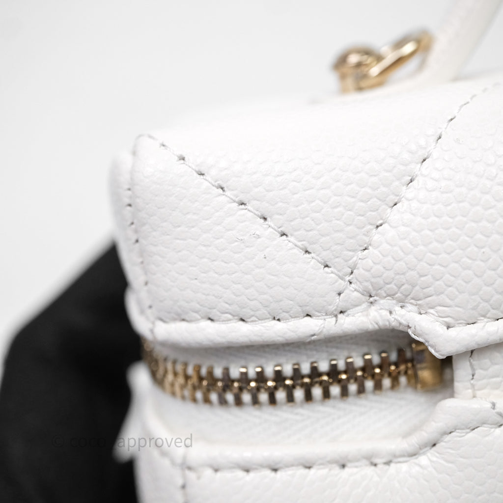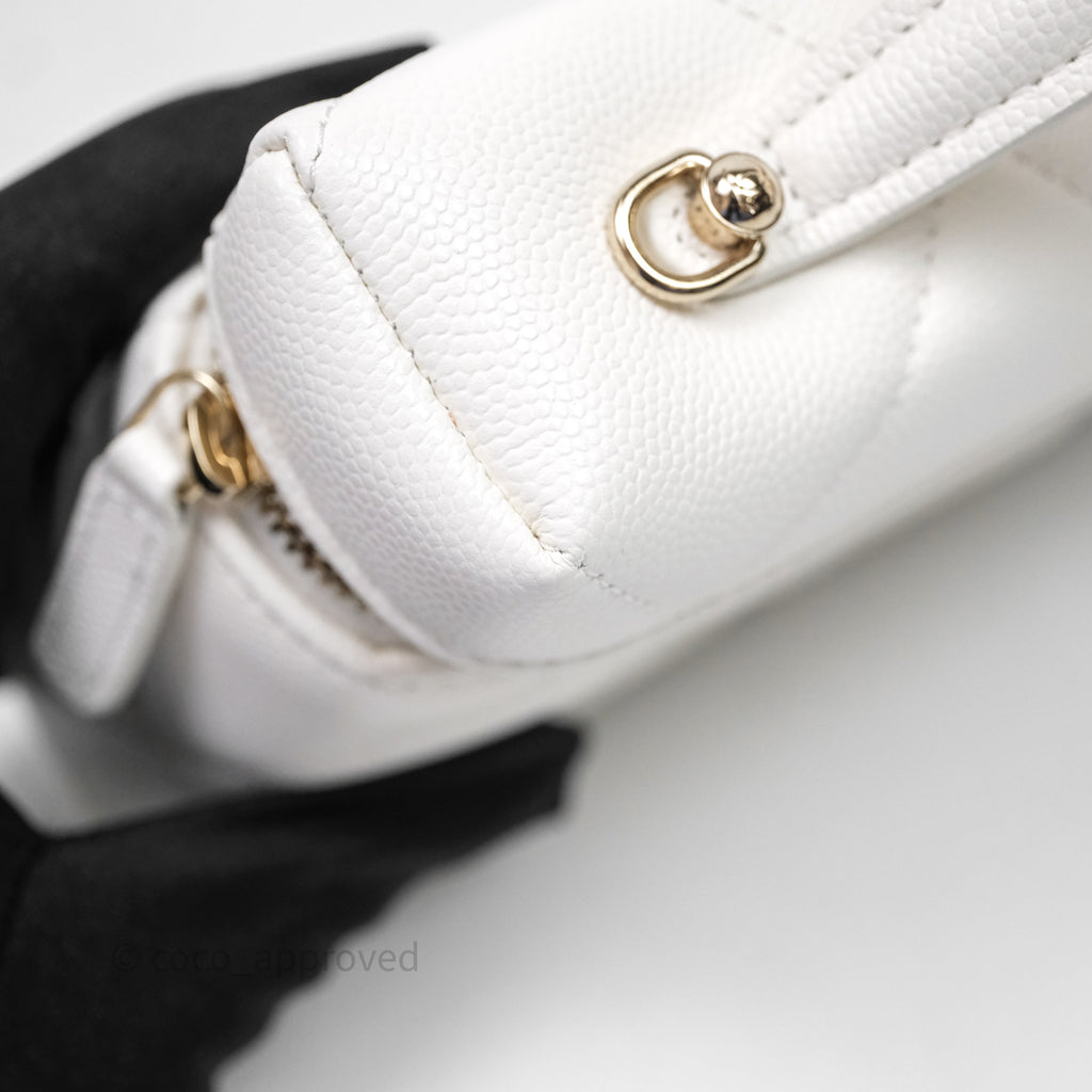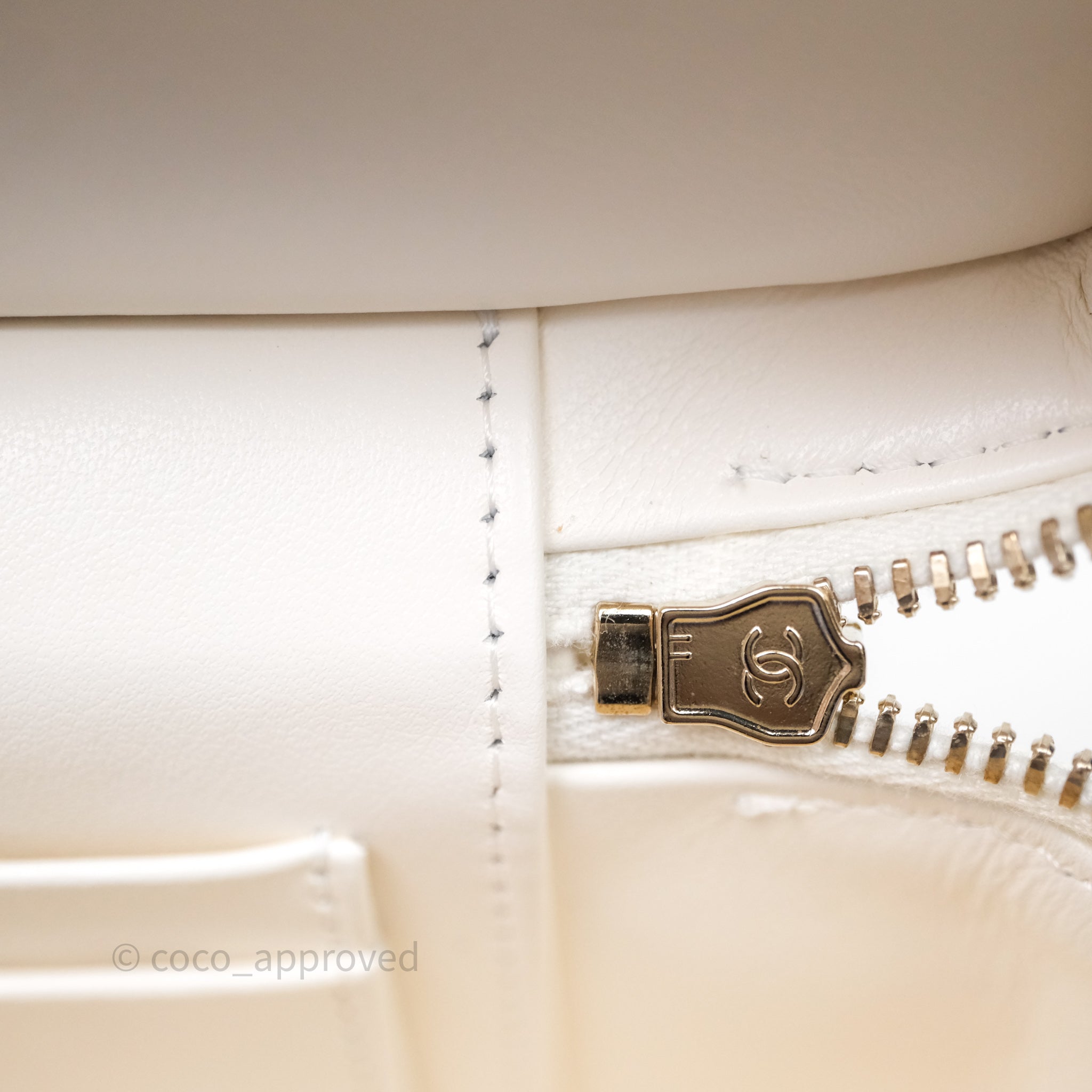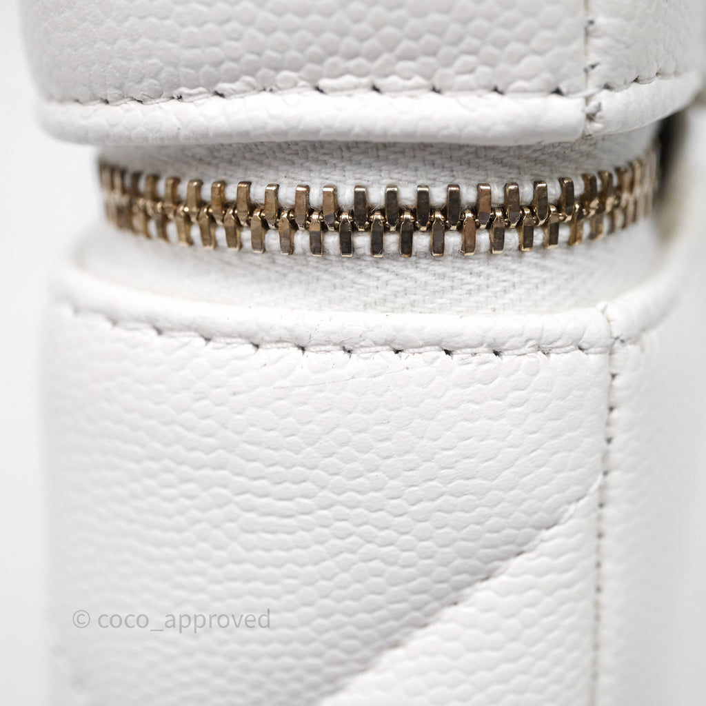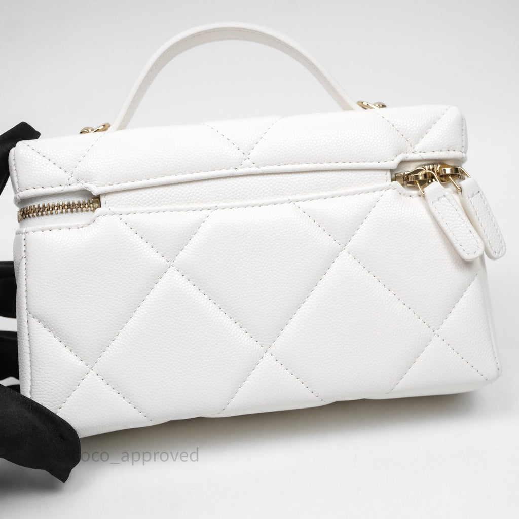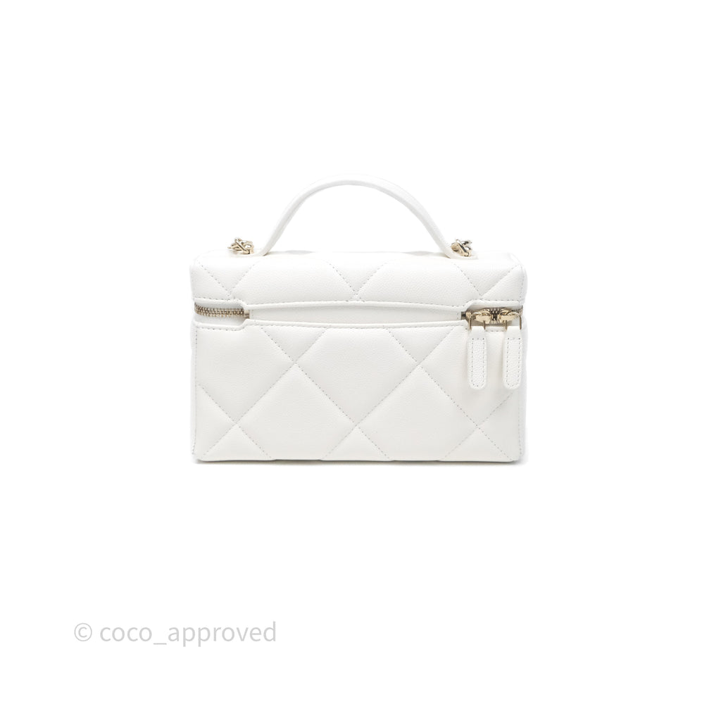 Chanel Top Handle Long Vanity with Chain White Caviar Gold Hardware