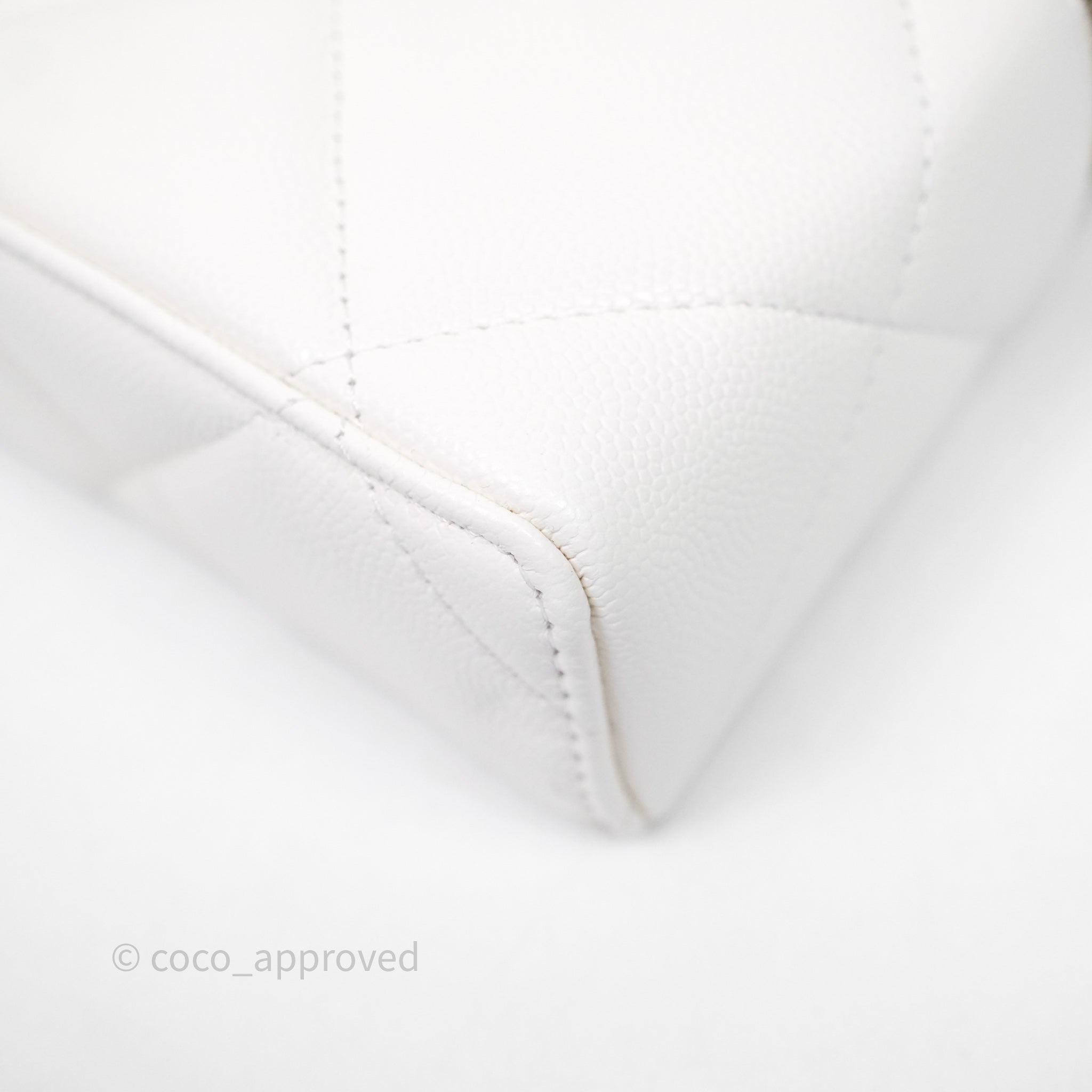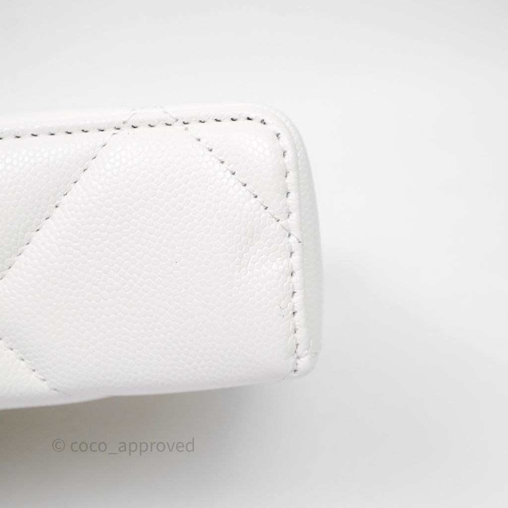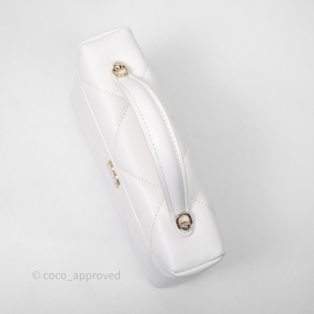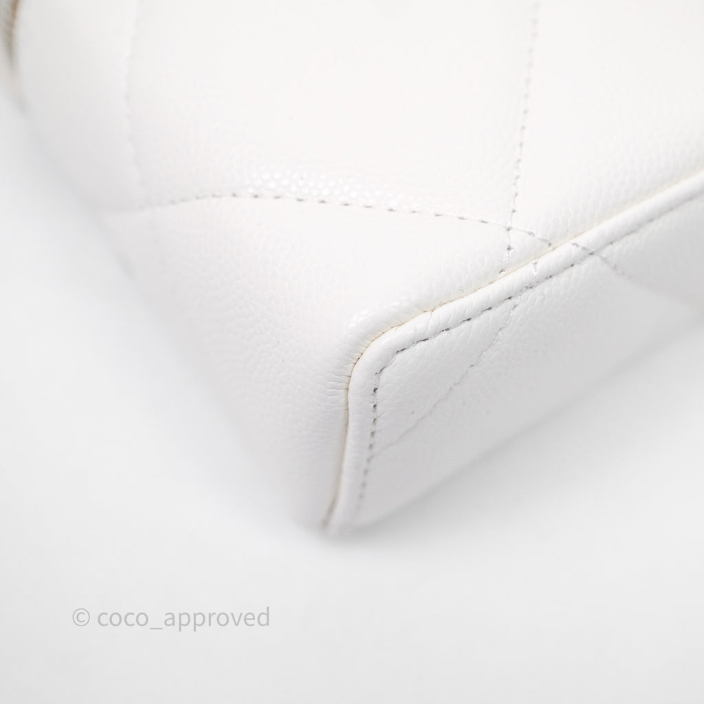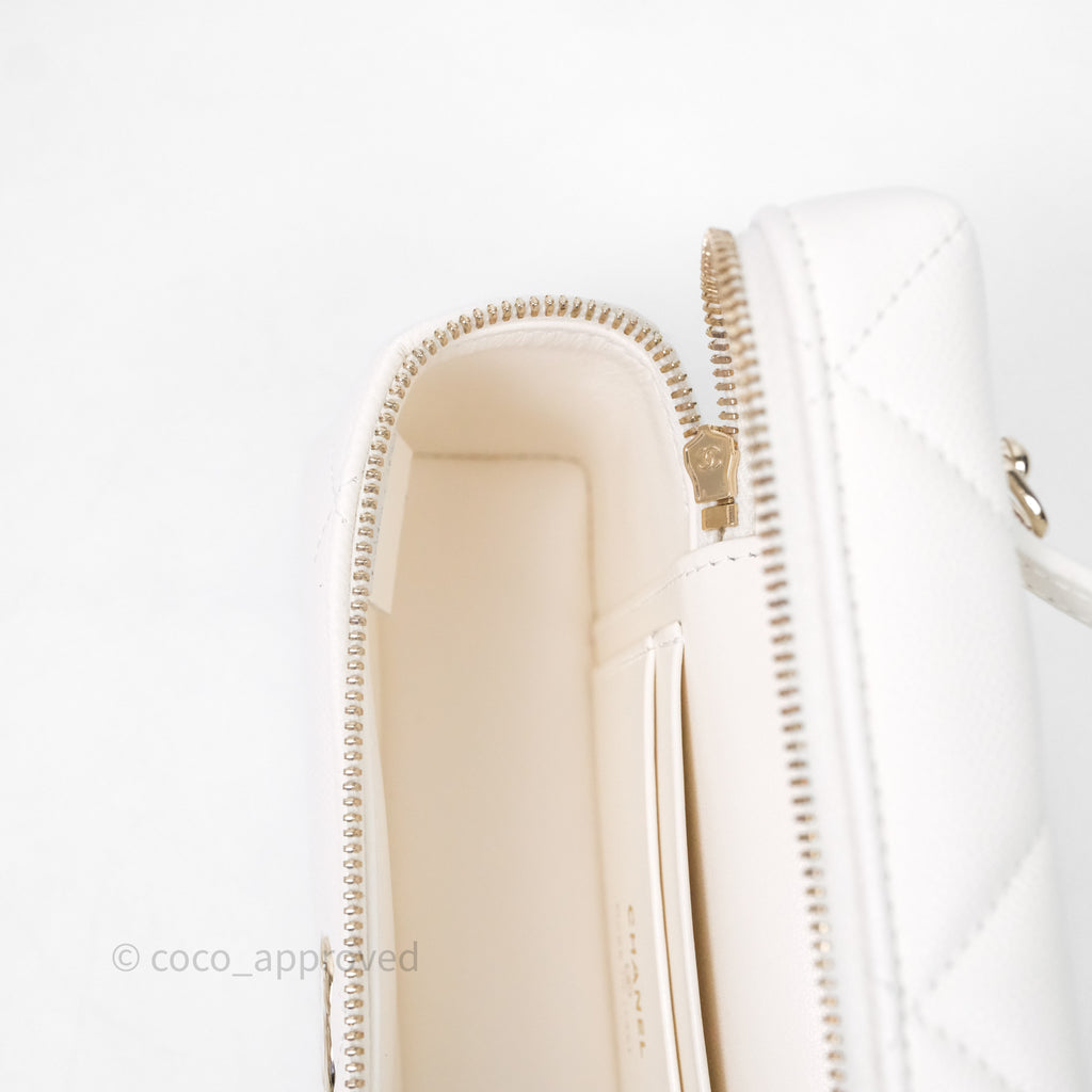 Chanel Top Handle Long Vanity with Chain White Caviar Gold Hardware