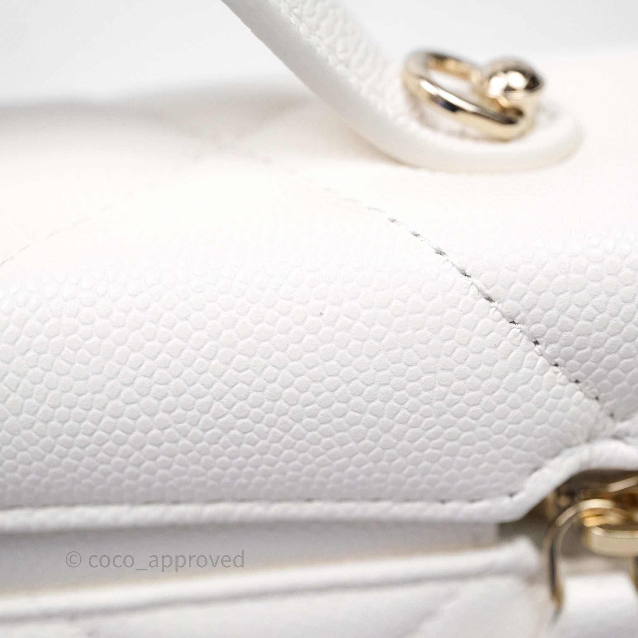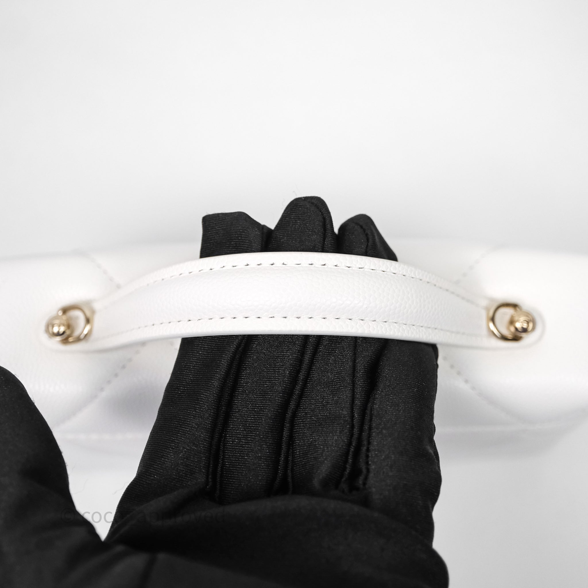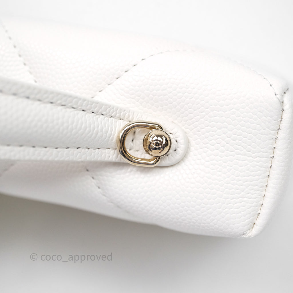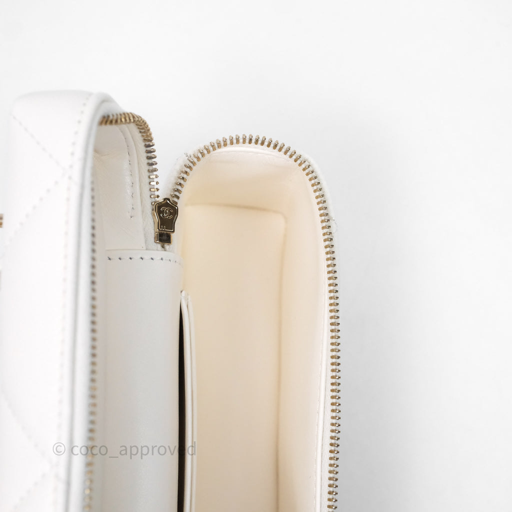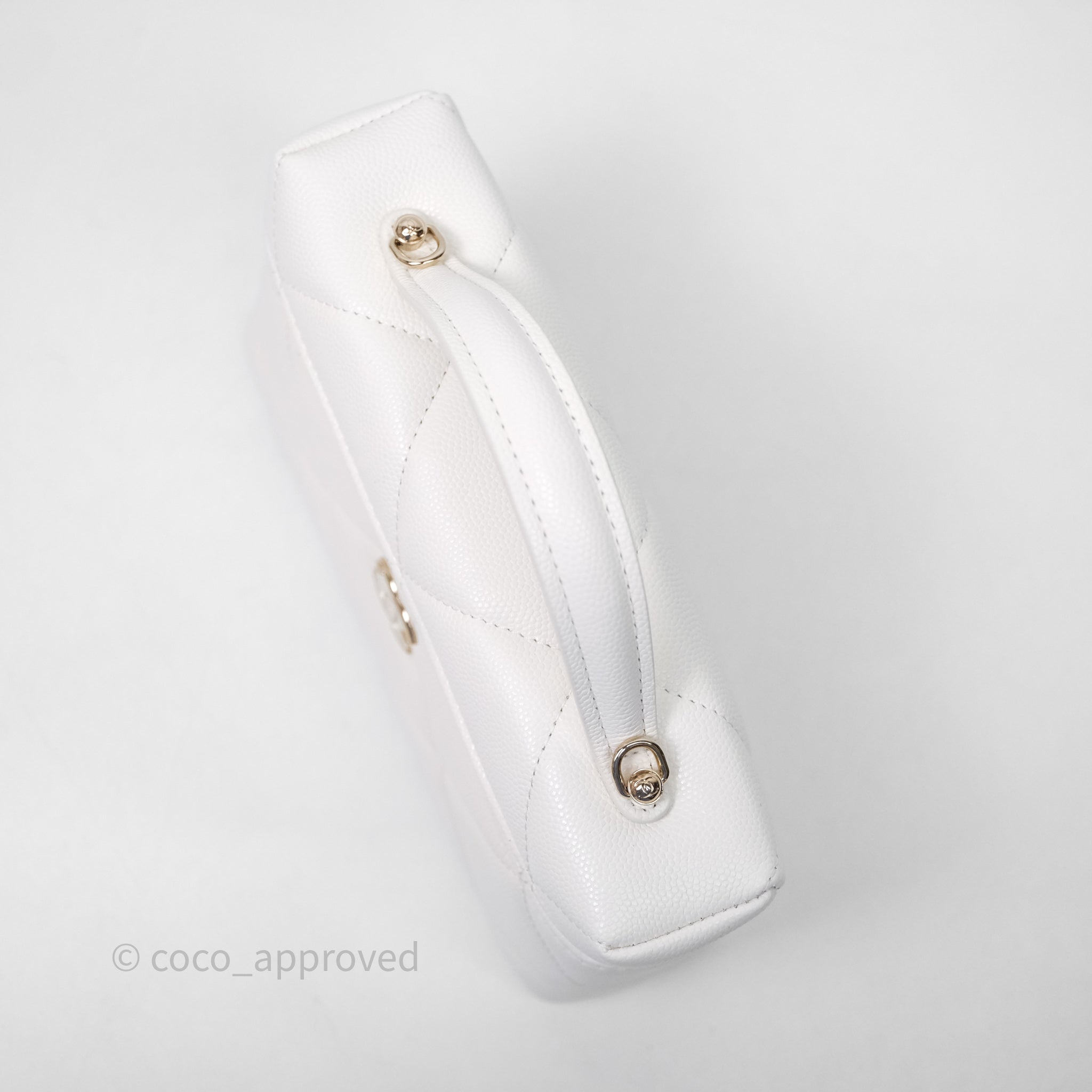Chanel Top Handle Long Vanity with Chain White Caviar Gold Hardware