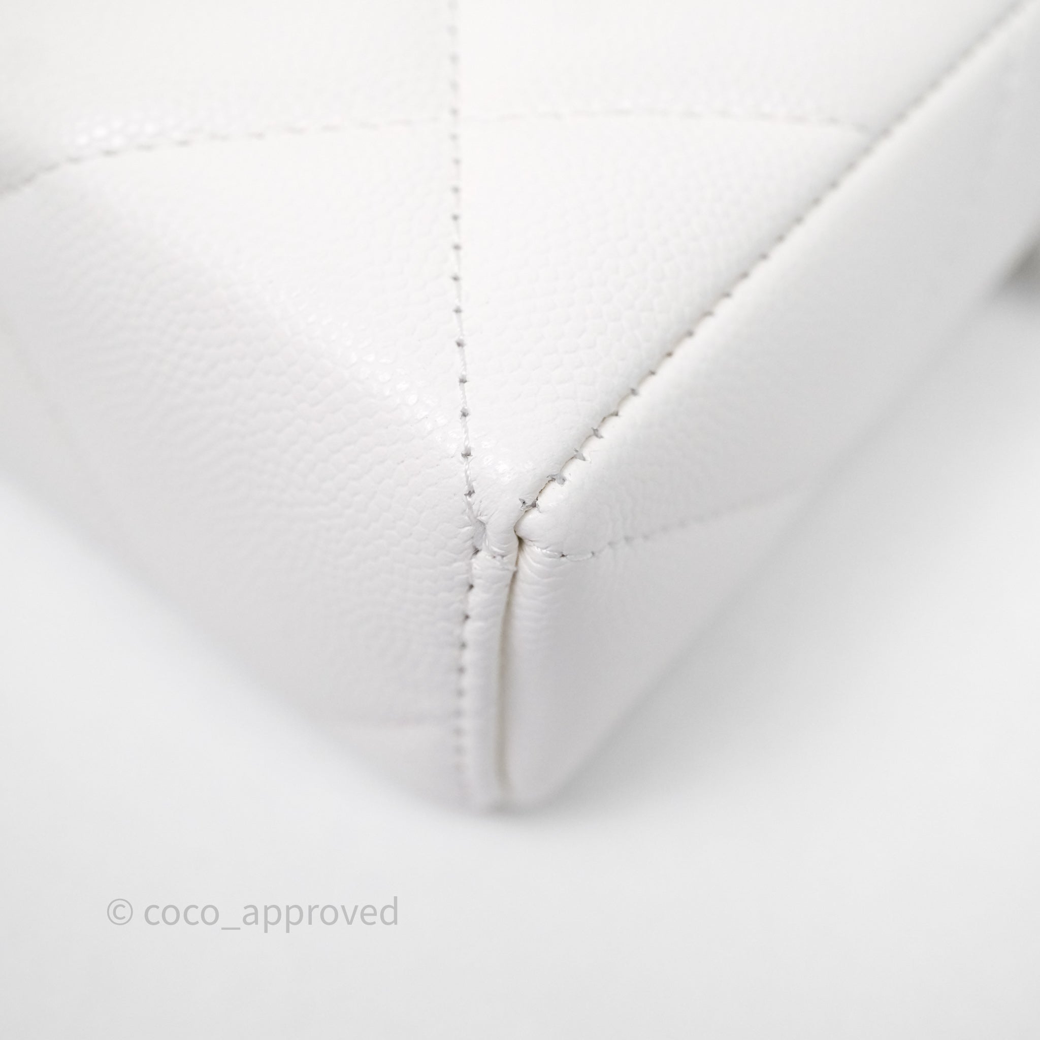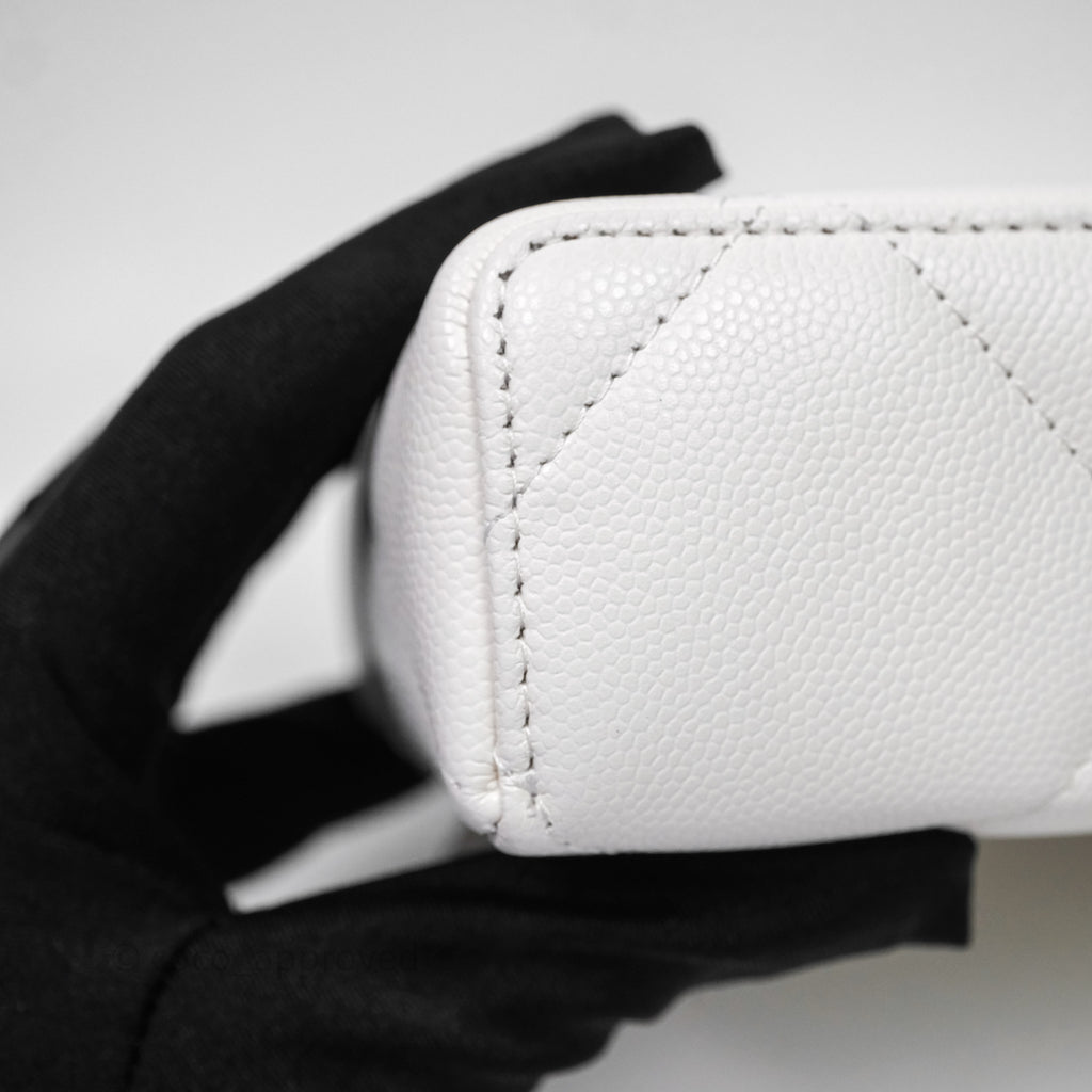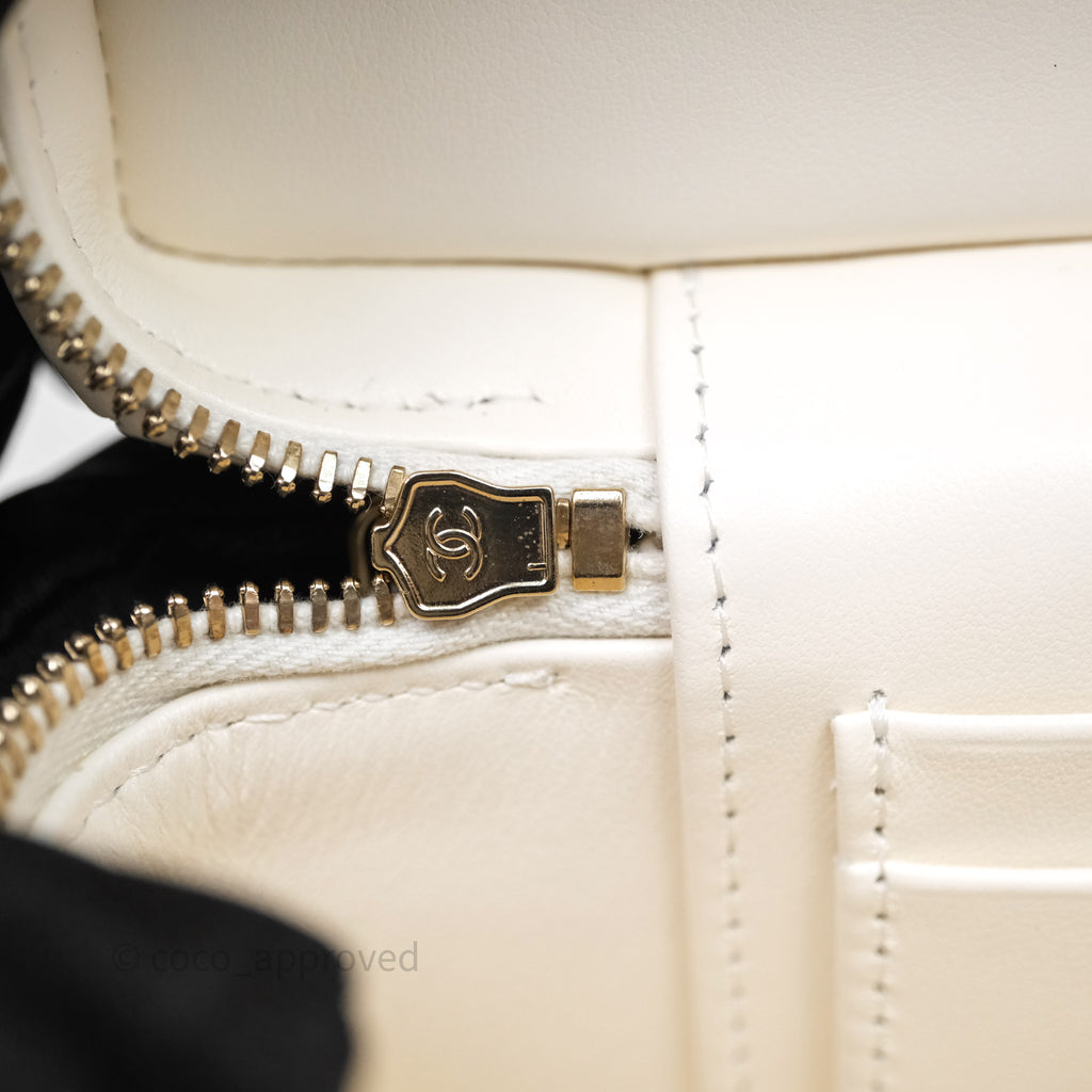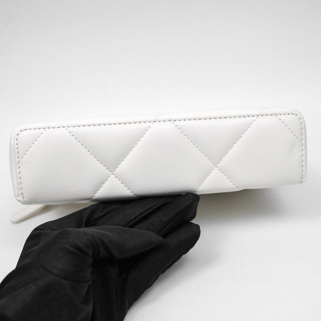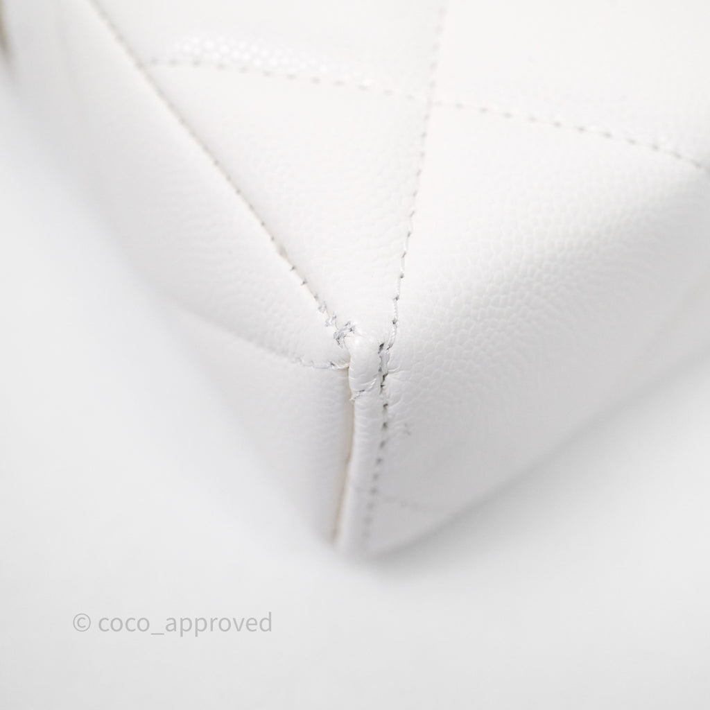 Chanel Top Handle Long Vanity with Chain White Caviar Gold Hardware