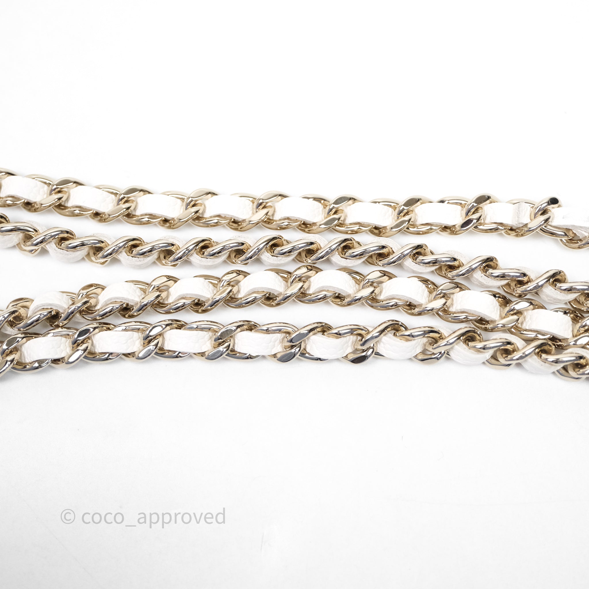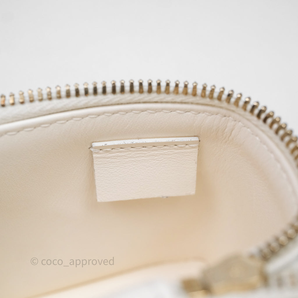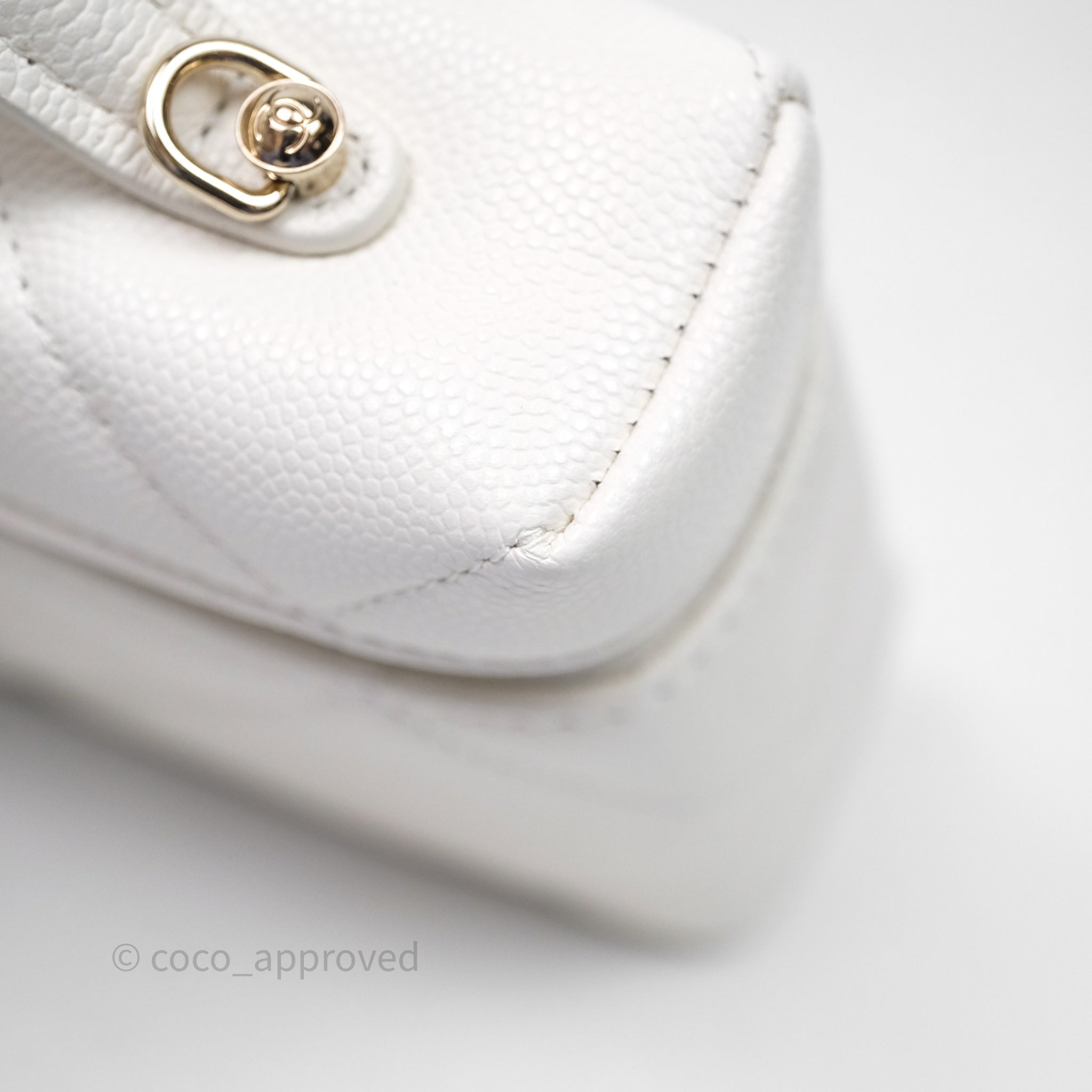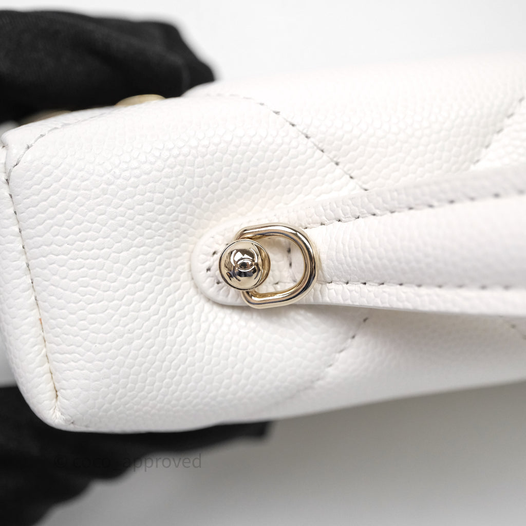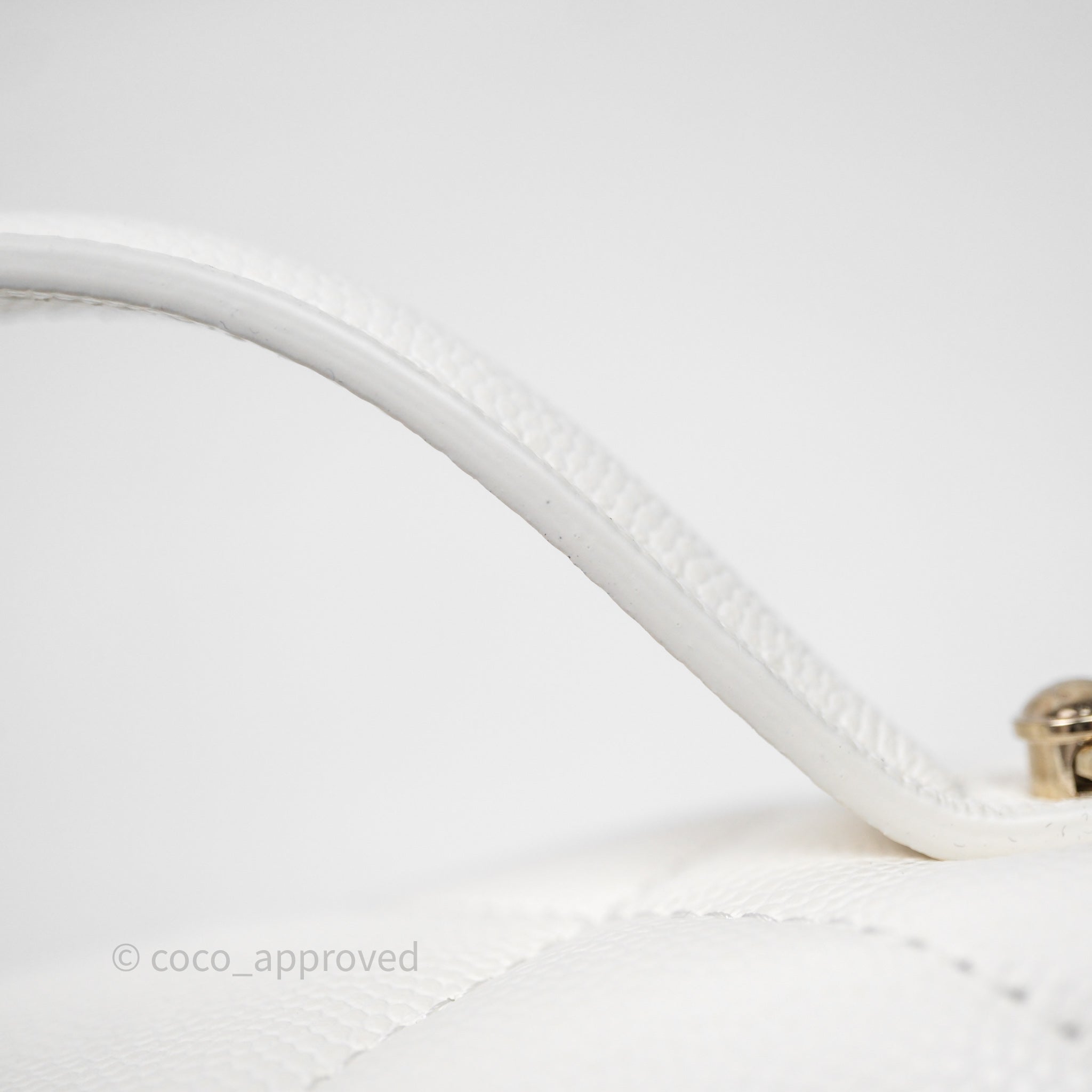 Chanel Top Handle Long Vanity with Chain White Caviar Gold Hardware