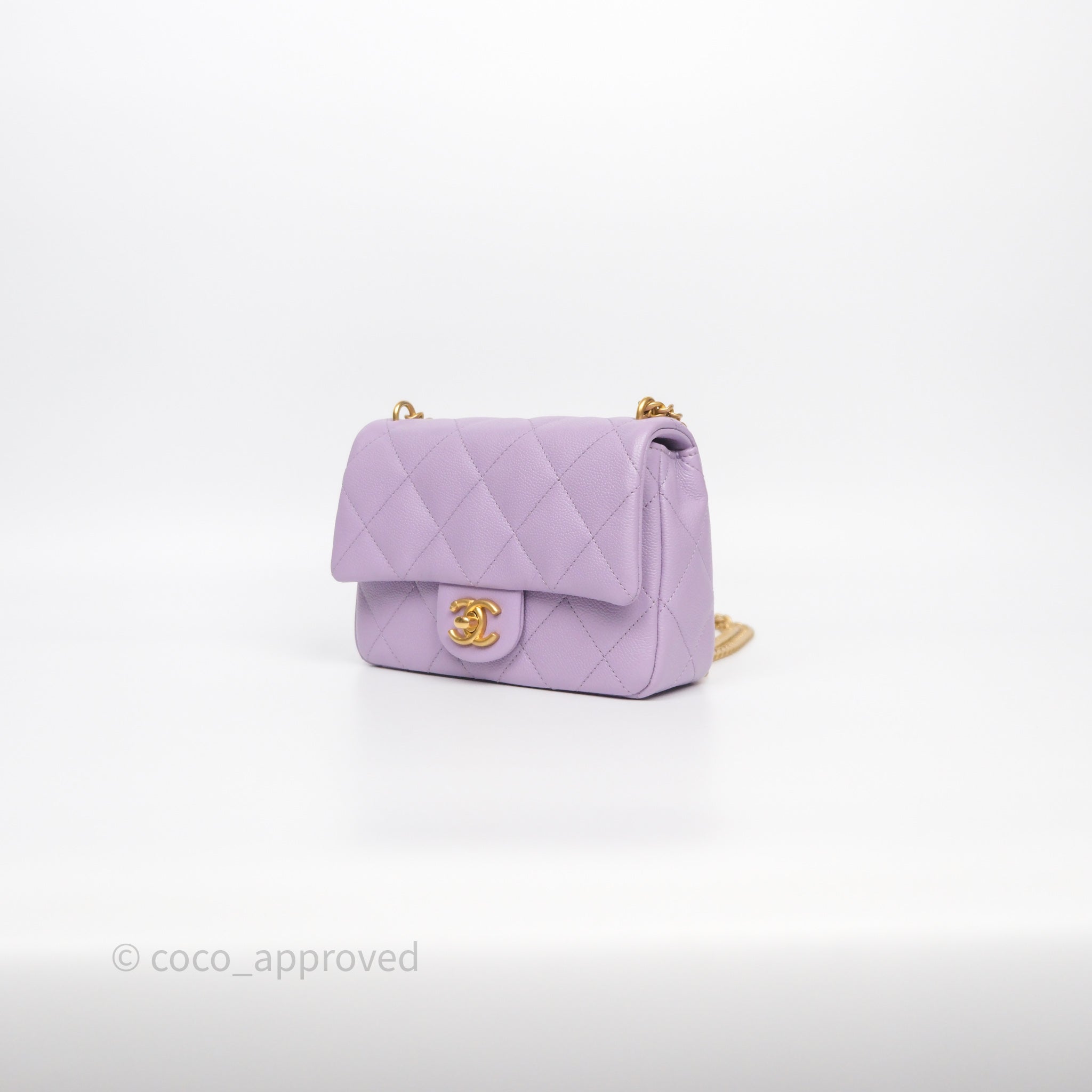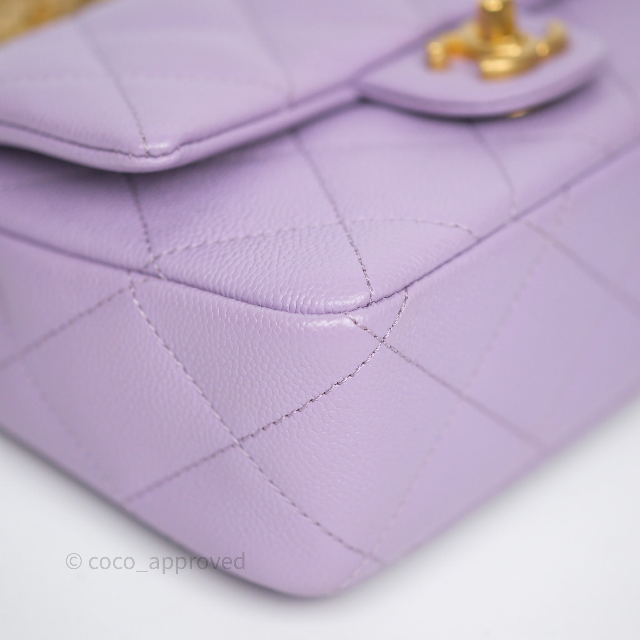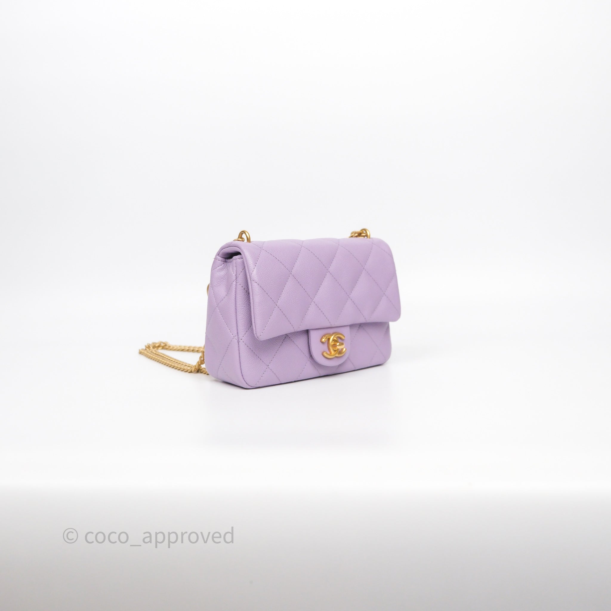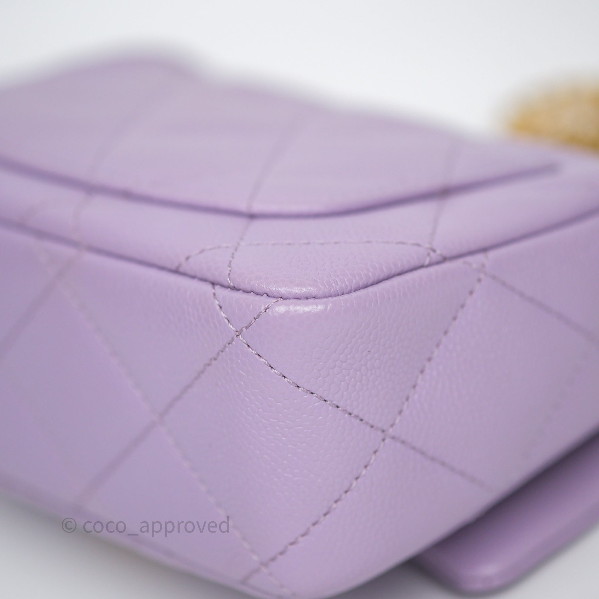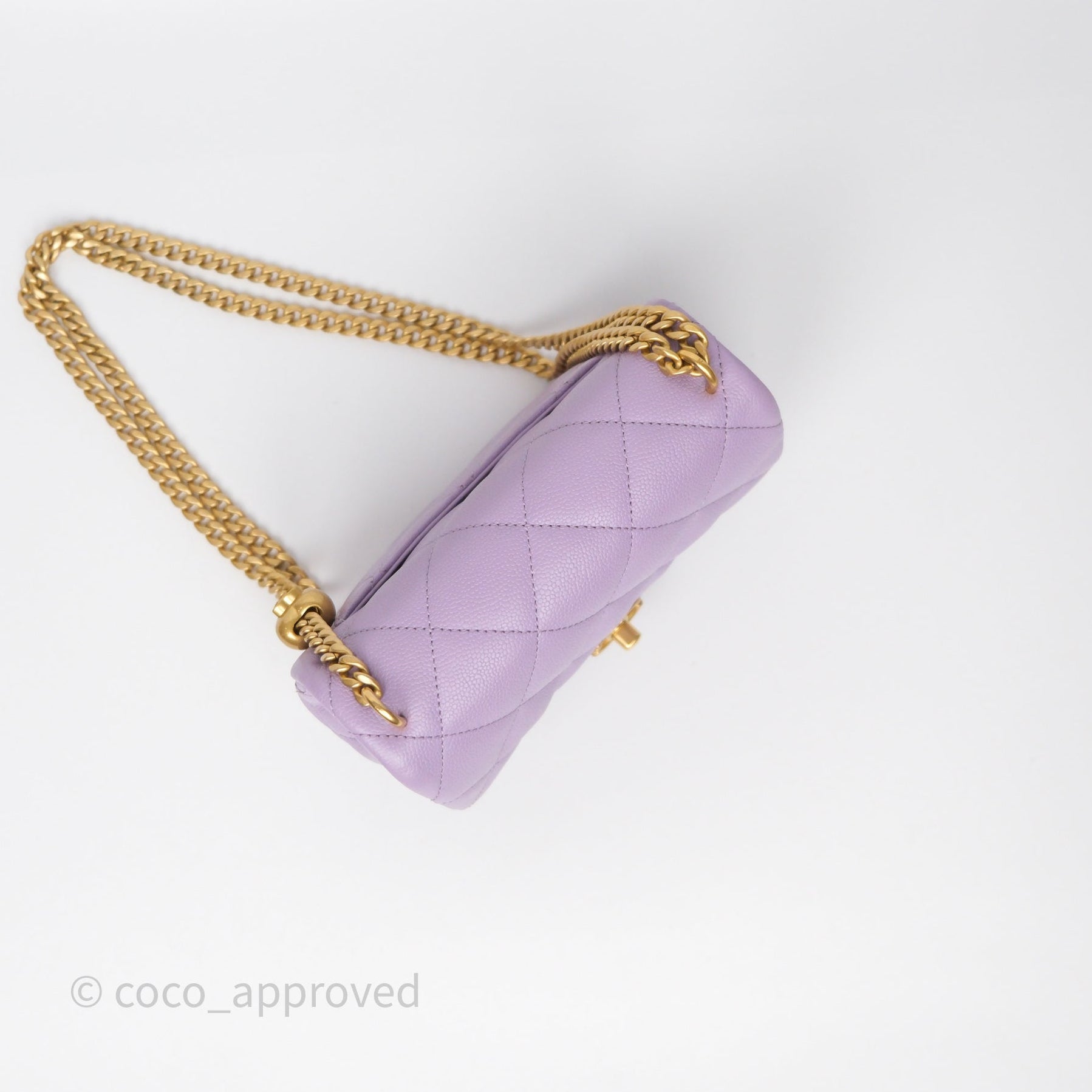 Chanel Heart Crush Mini Flap Bag Lilac Purple Caviar Aged Gold Hardware