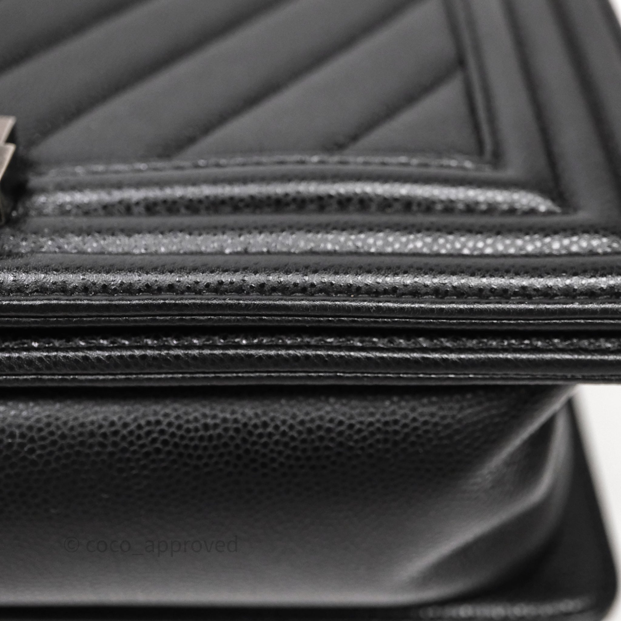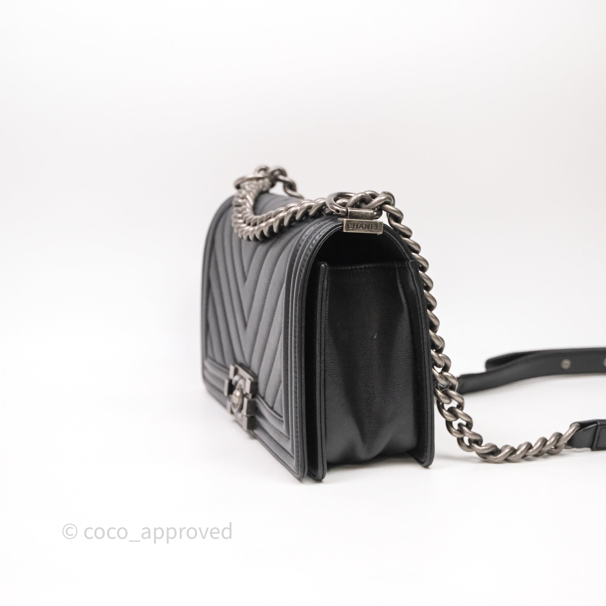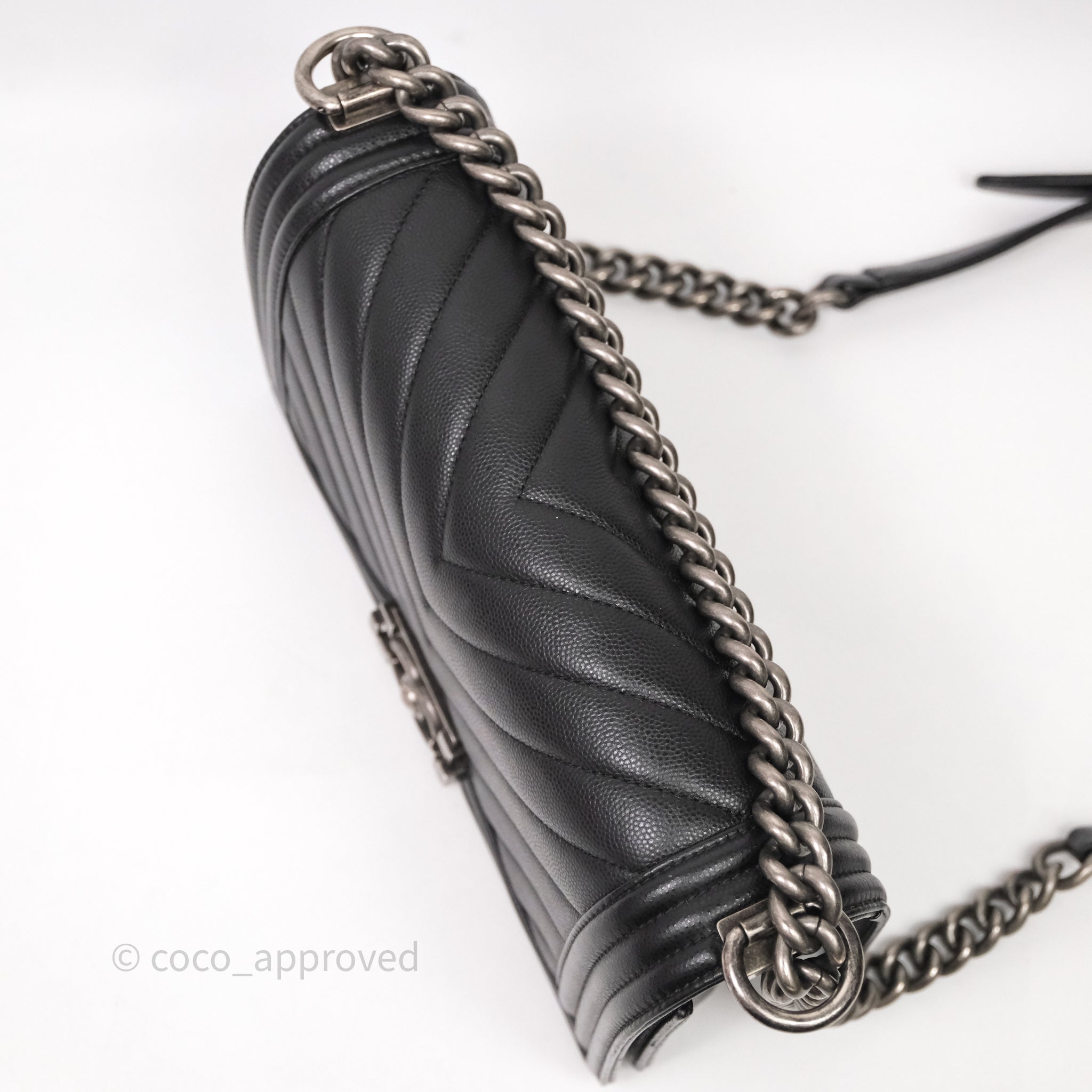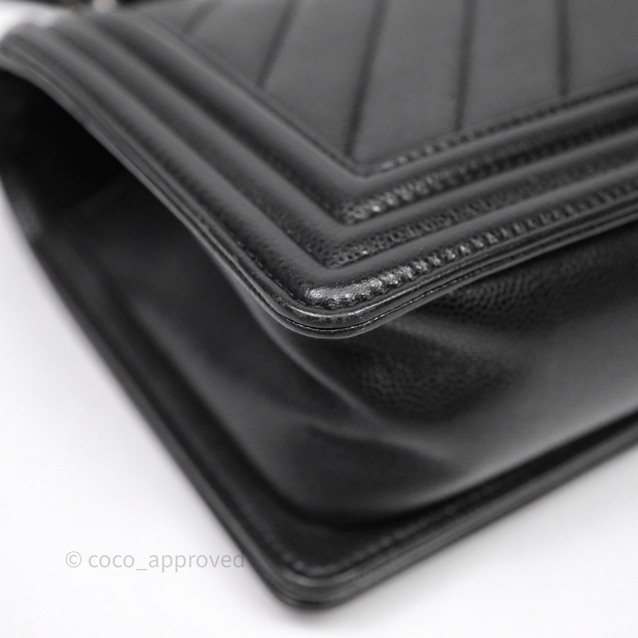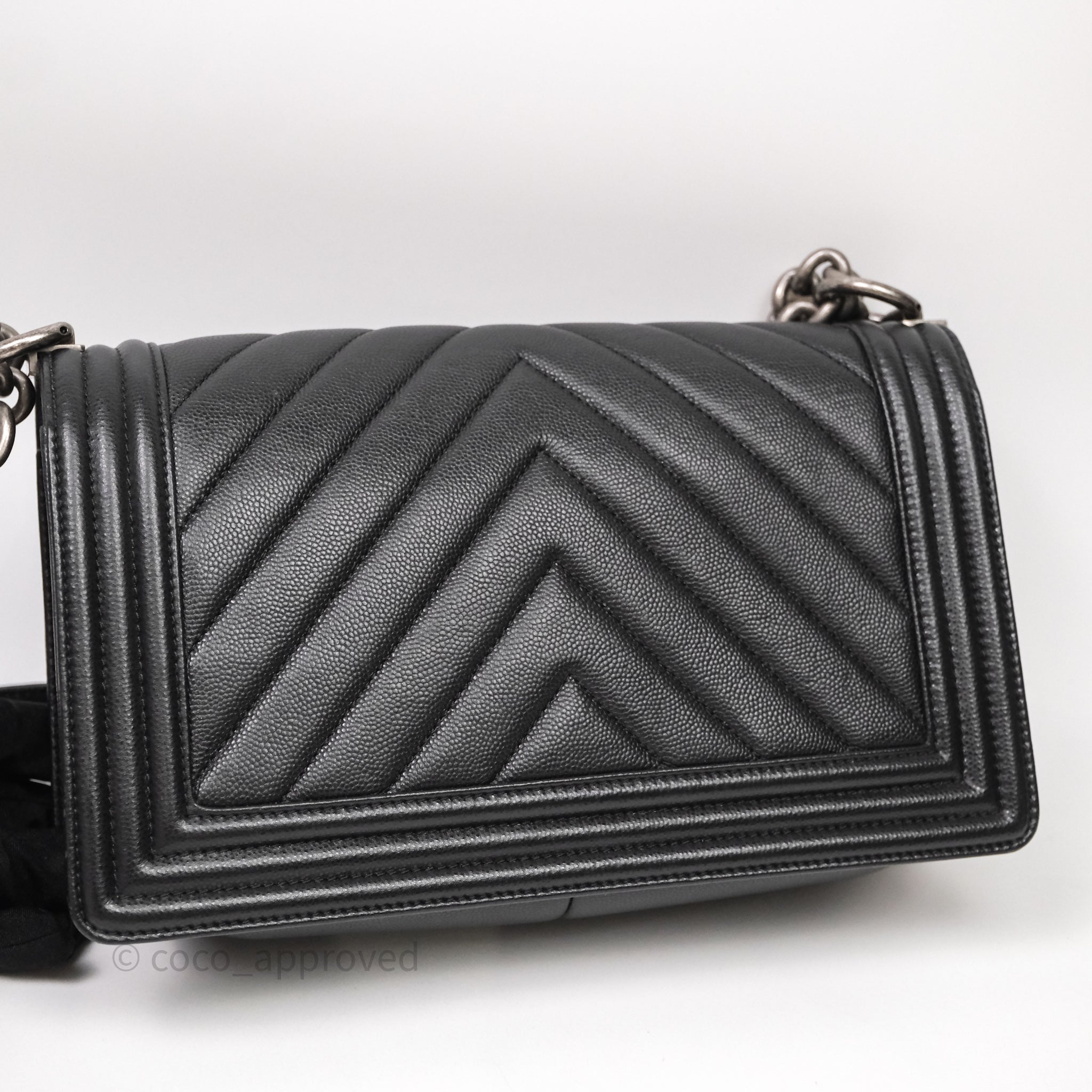 Chanel Medium Boy Chevron Black Caviar Ruthenium Hardware