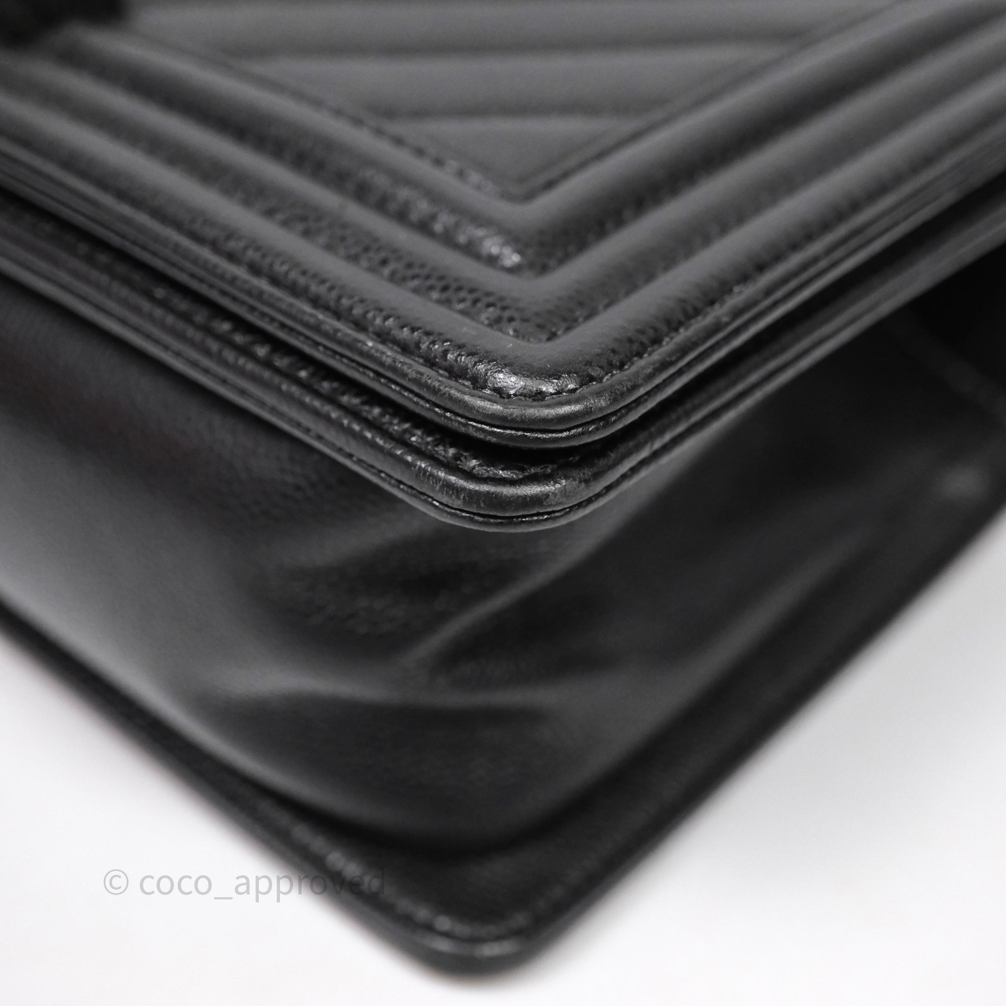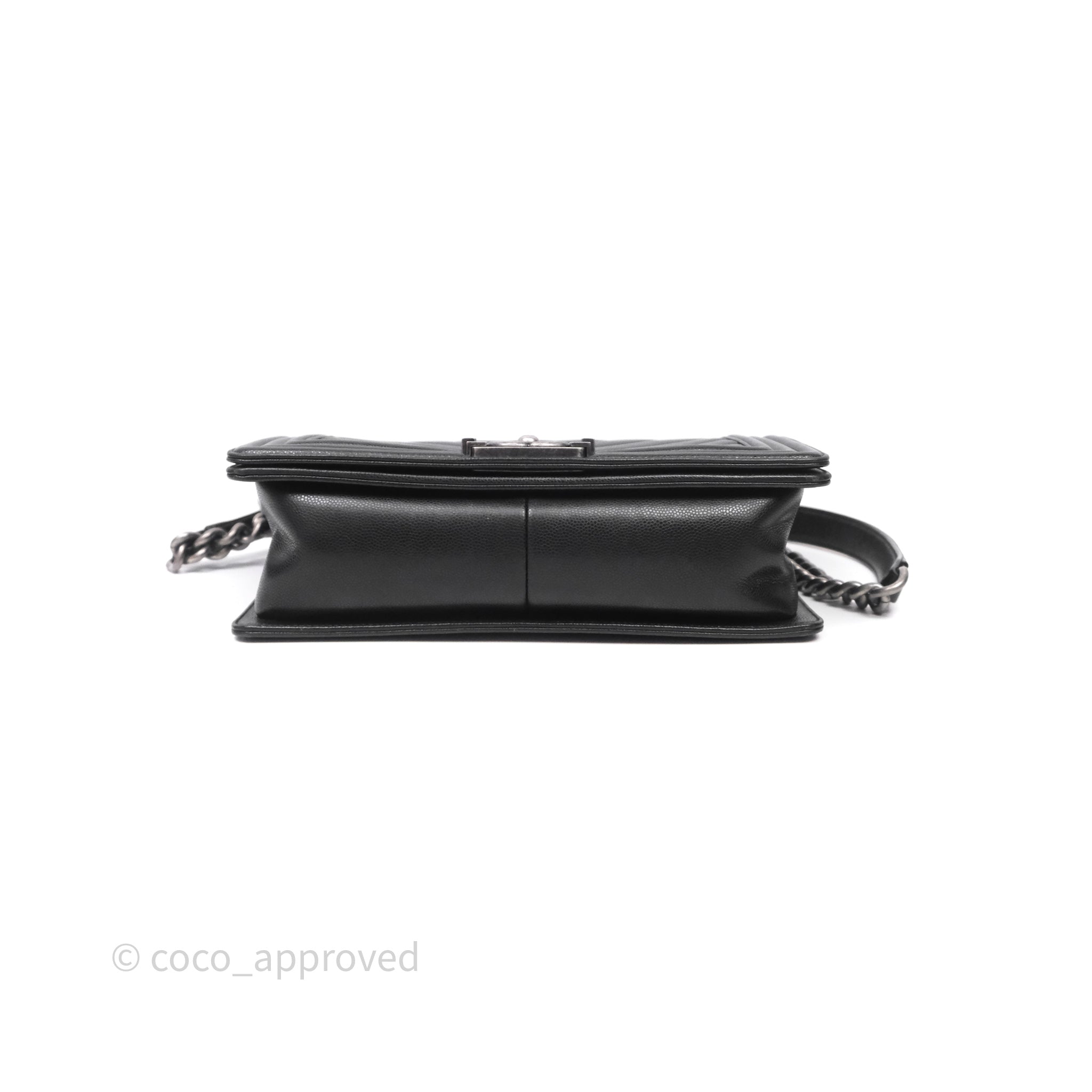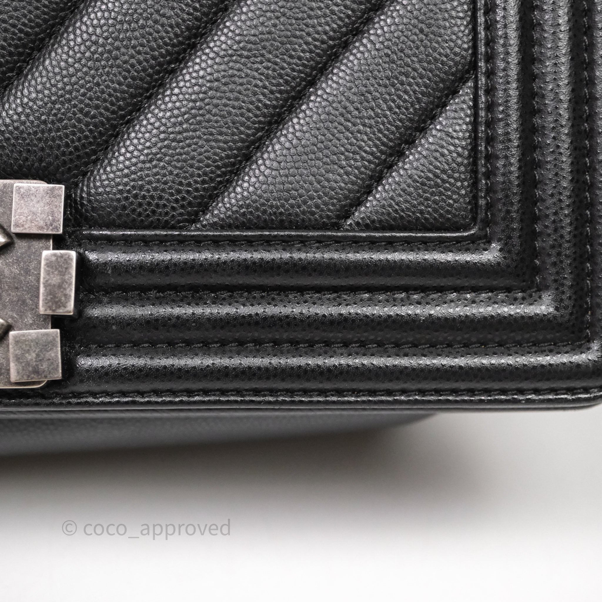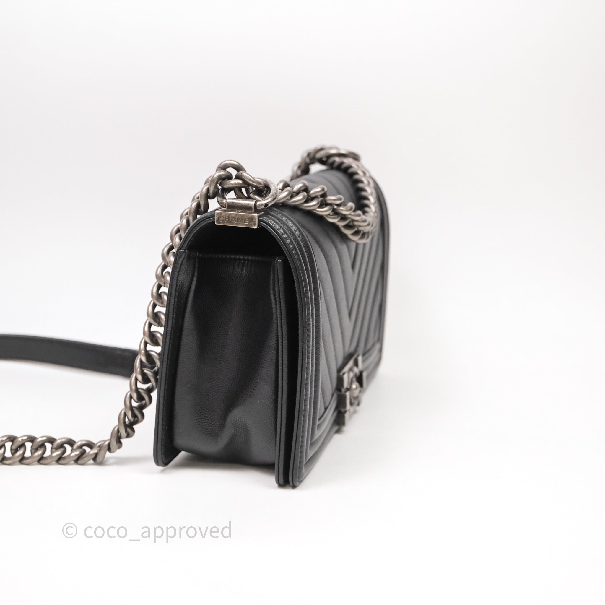 Chanel Medium Boy Chevron Black Caviar Ruthenium Hardware