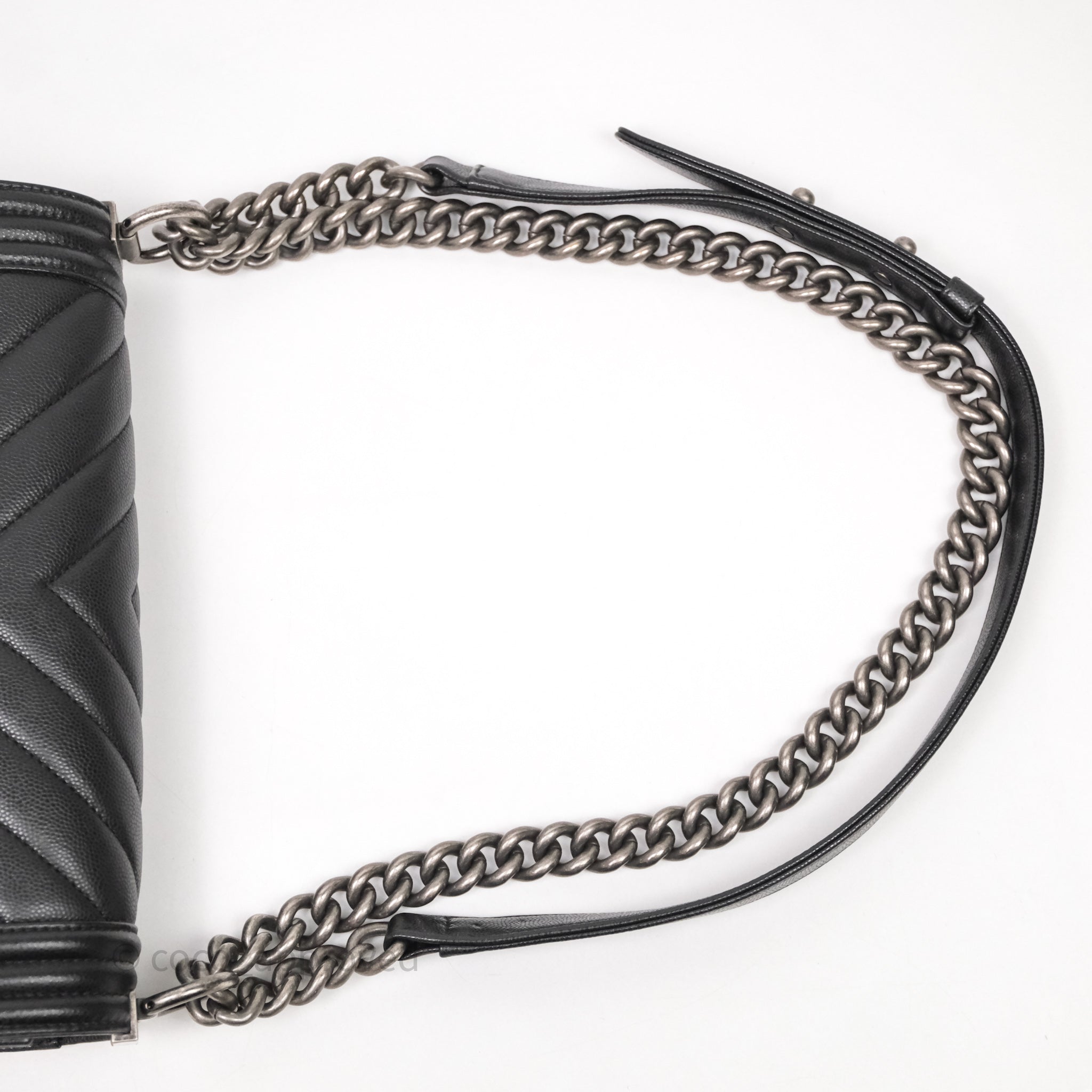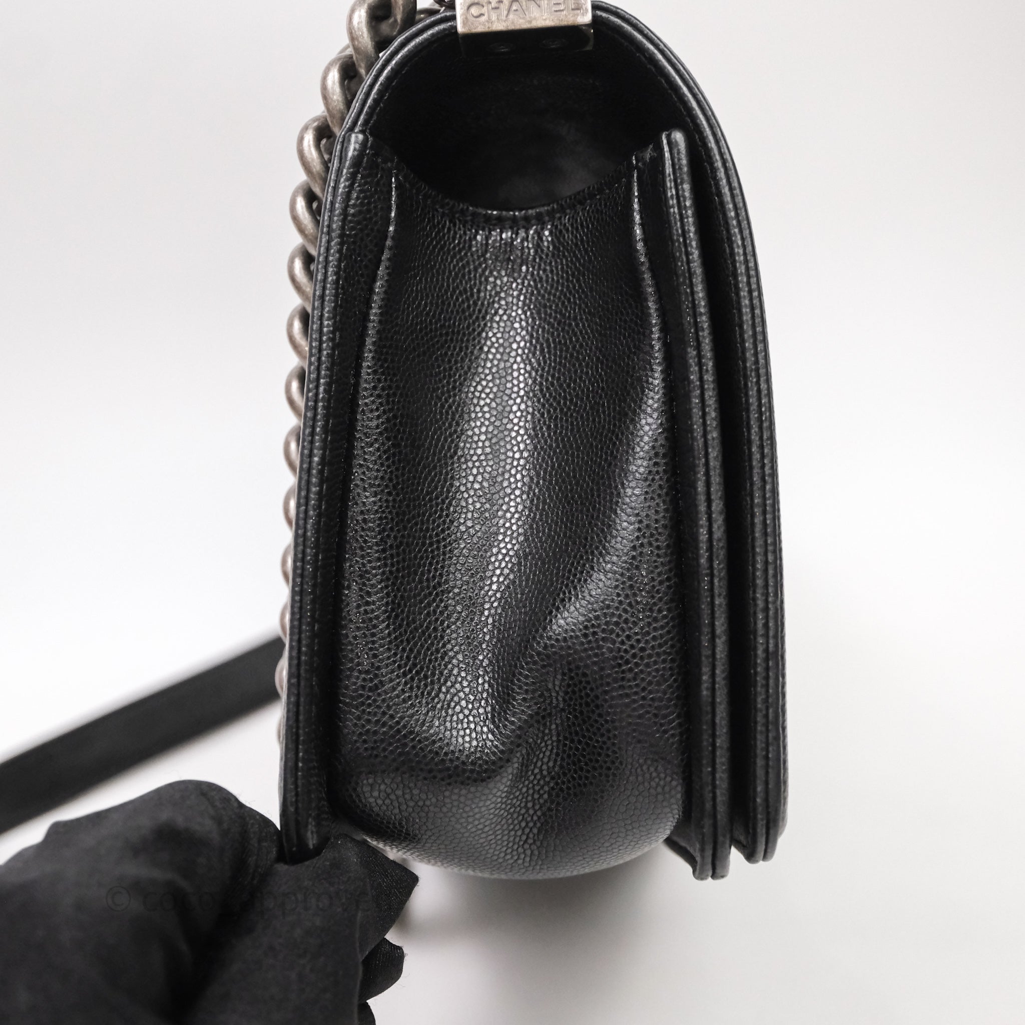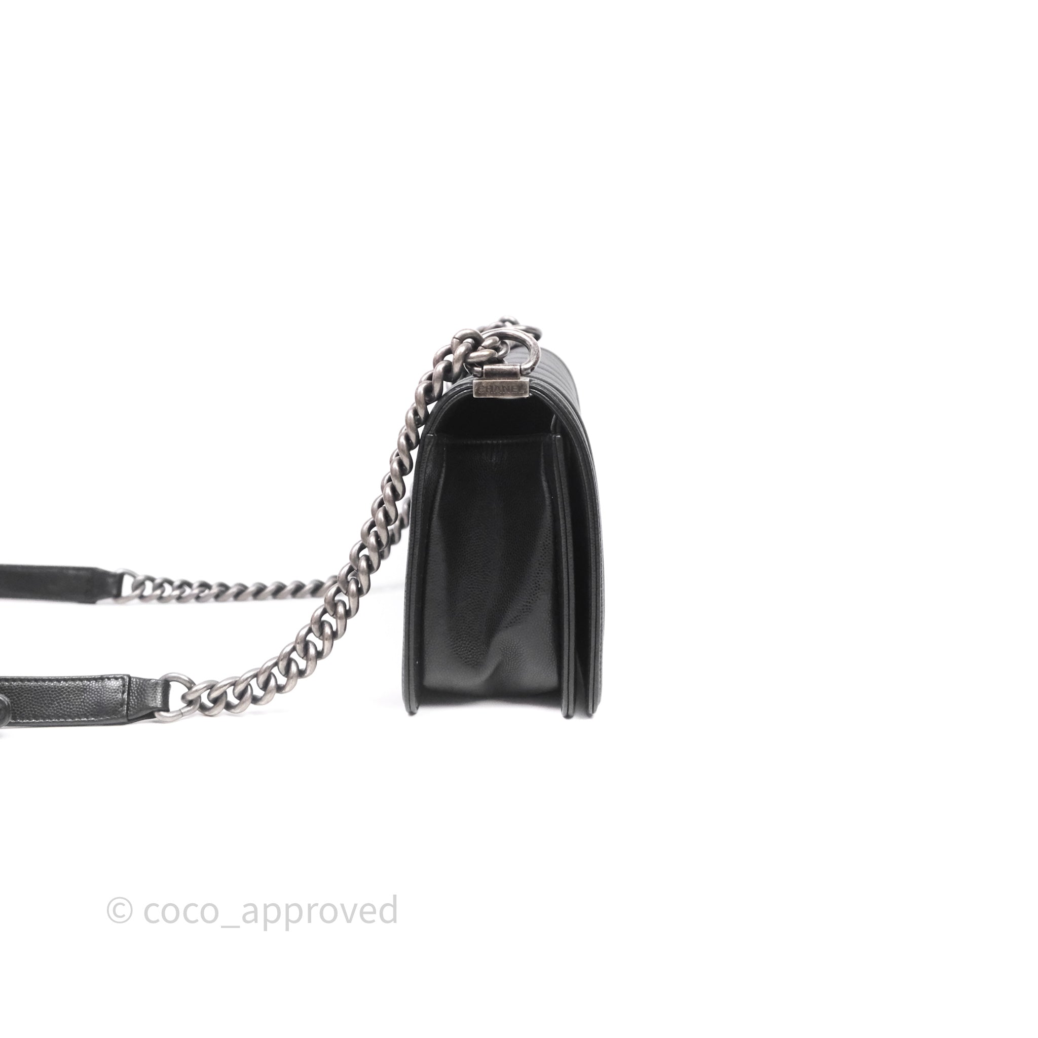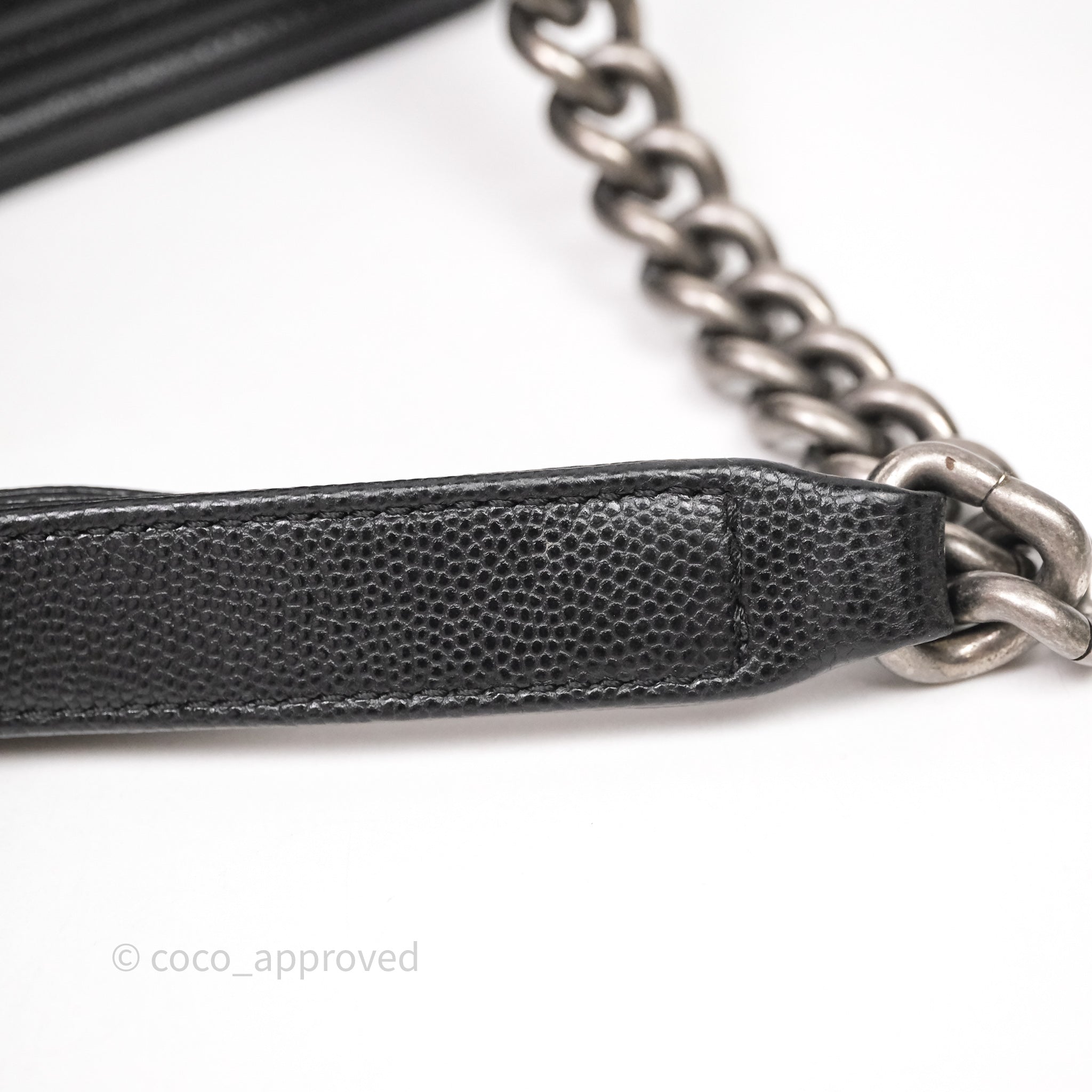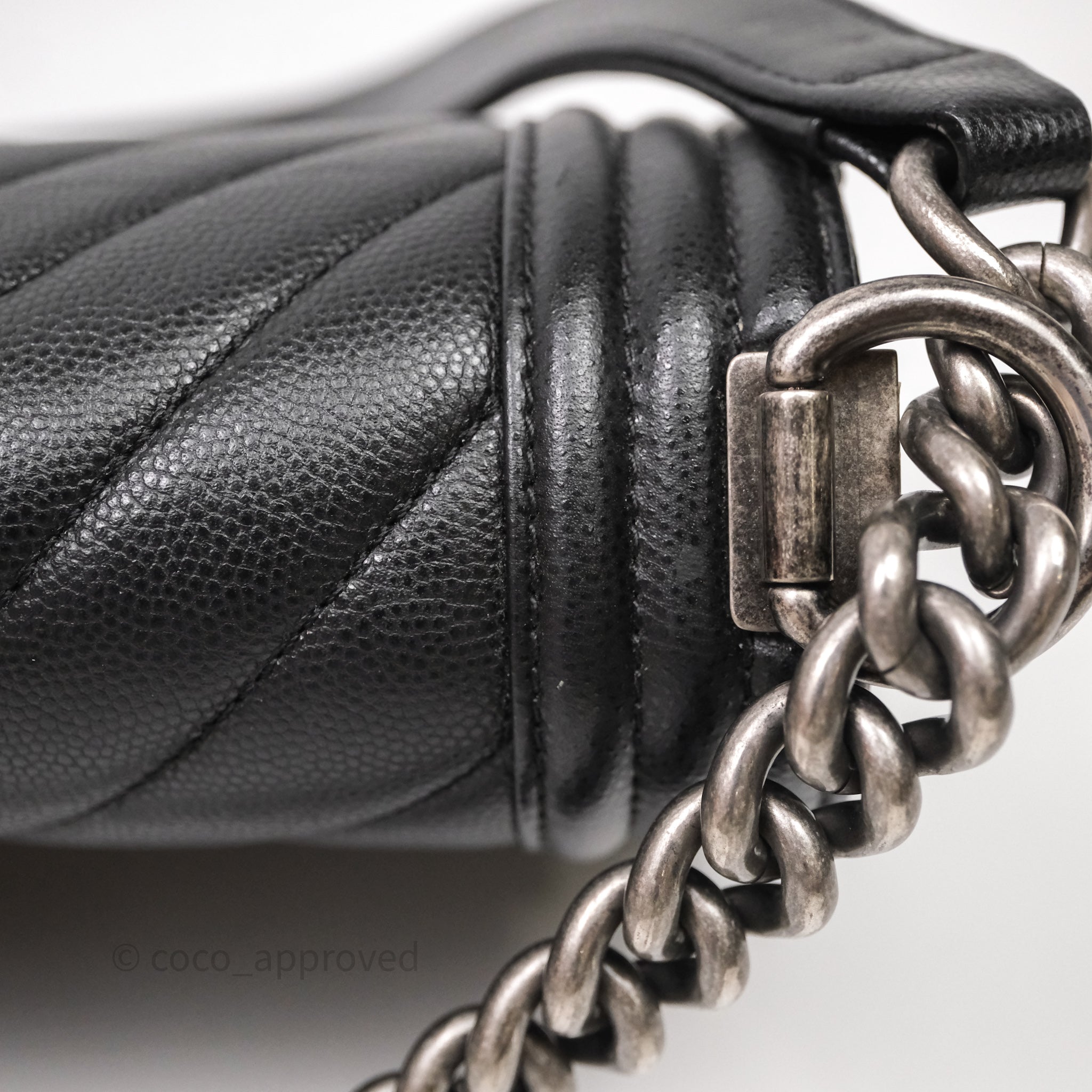 Chanel Medium Boy Chevron Black Caviar Ruthenium Hardware