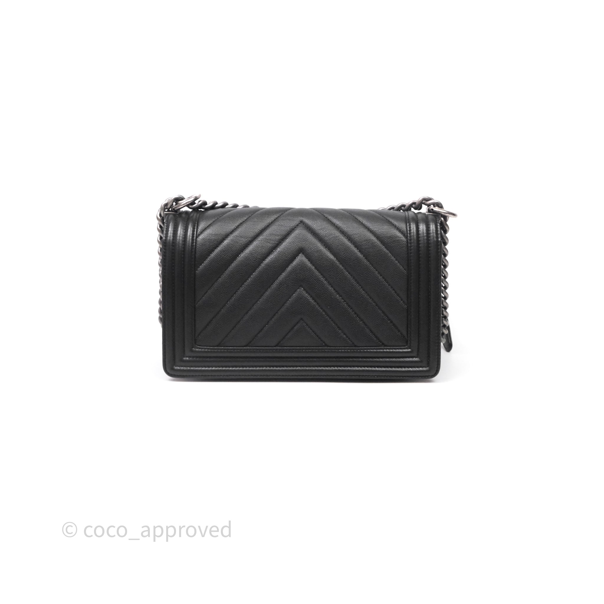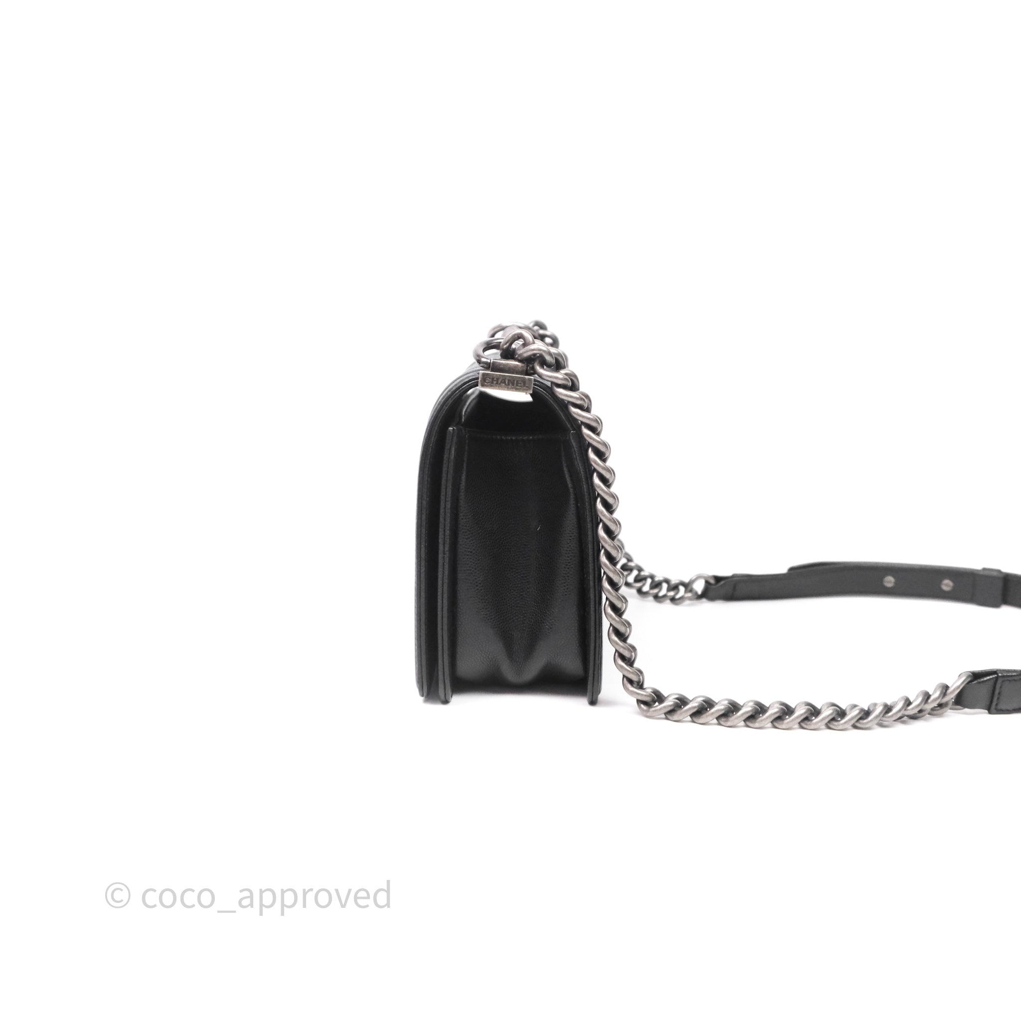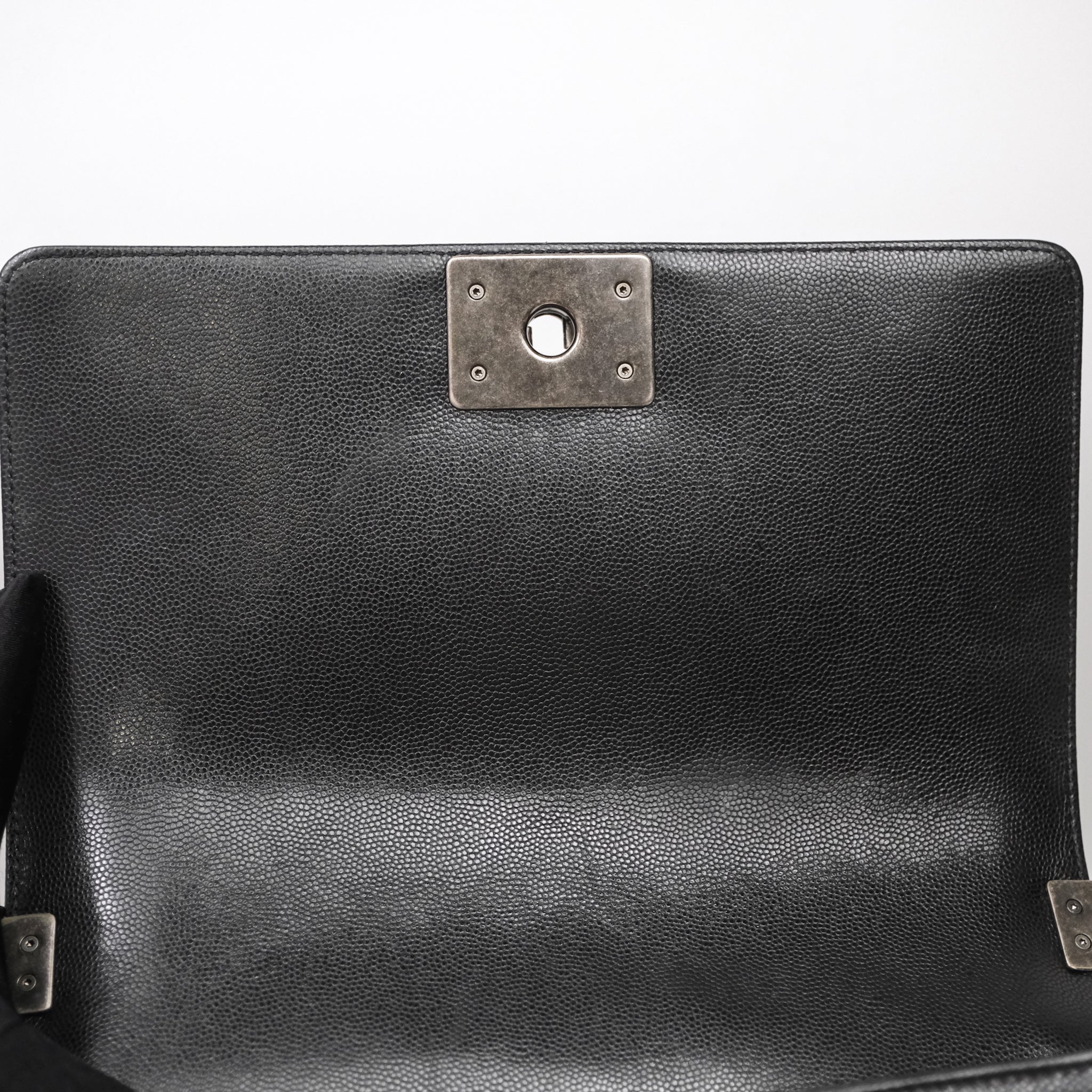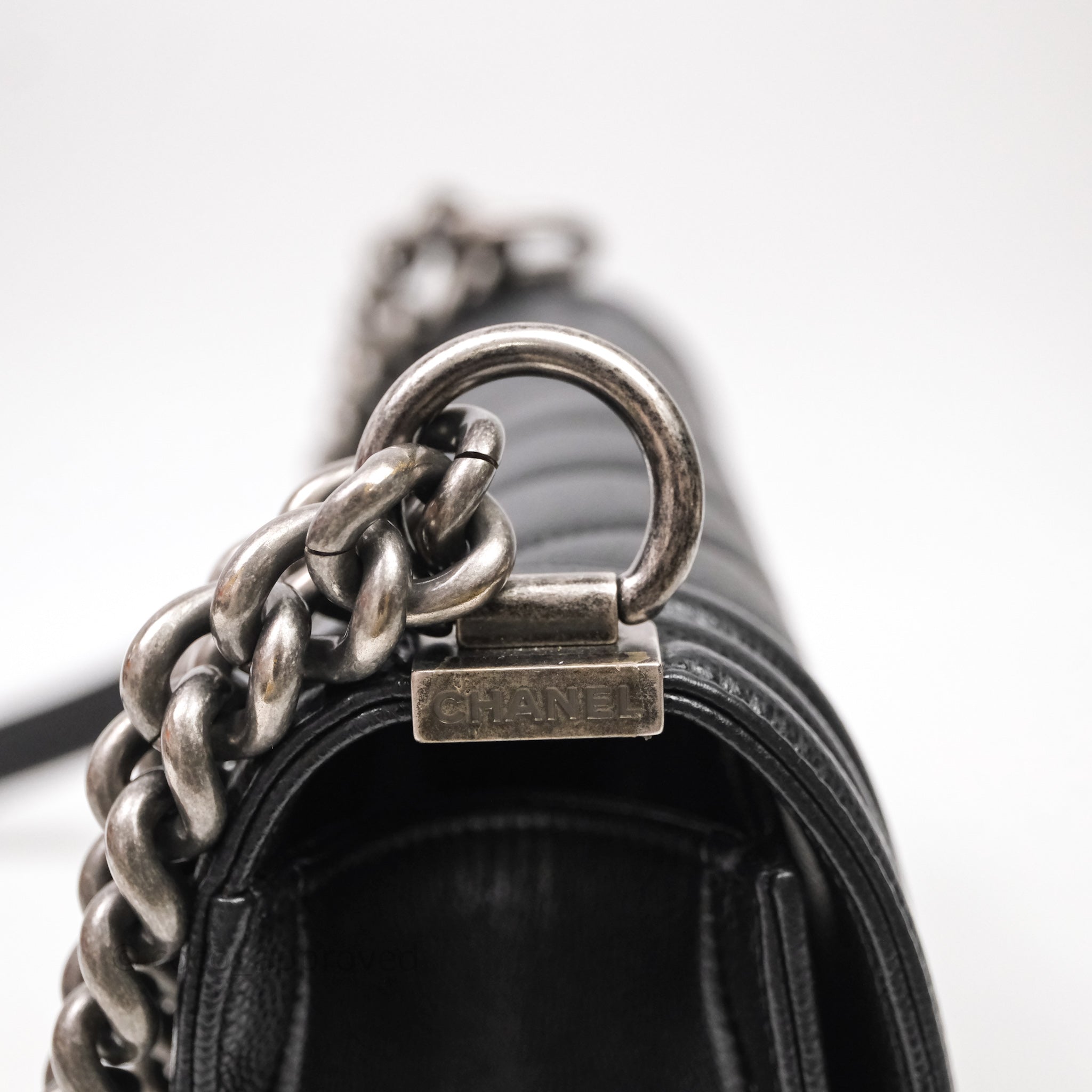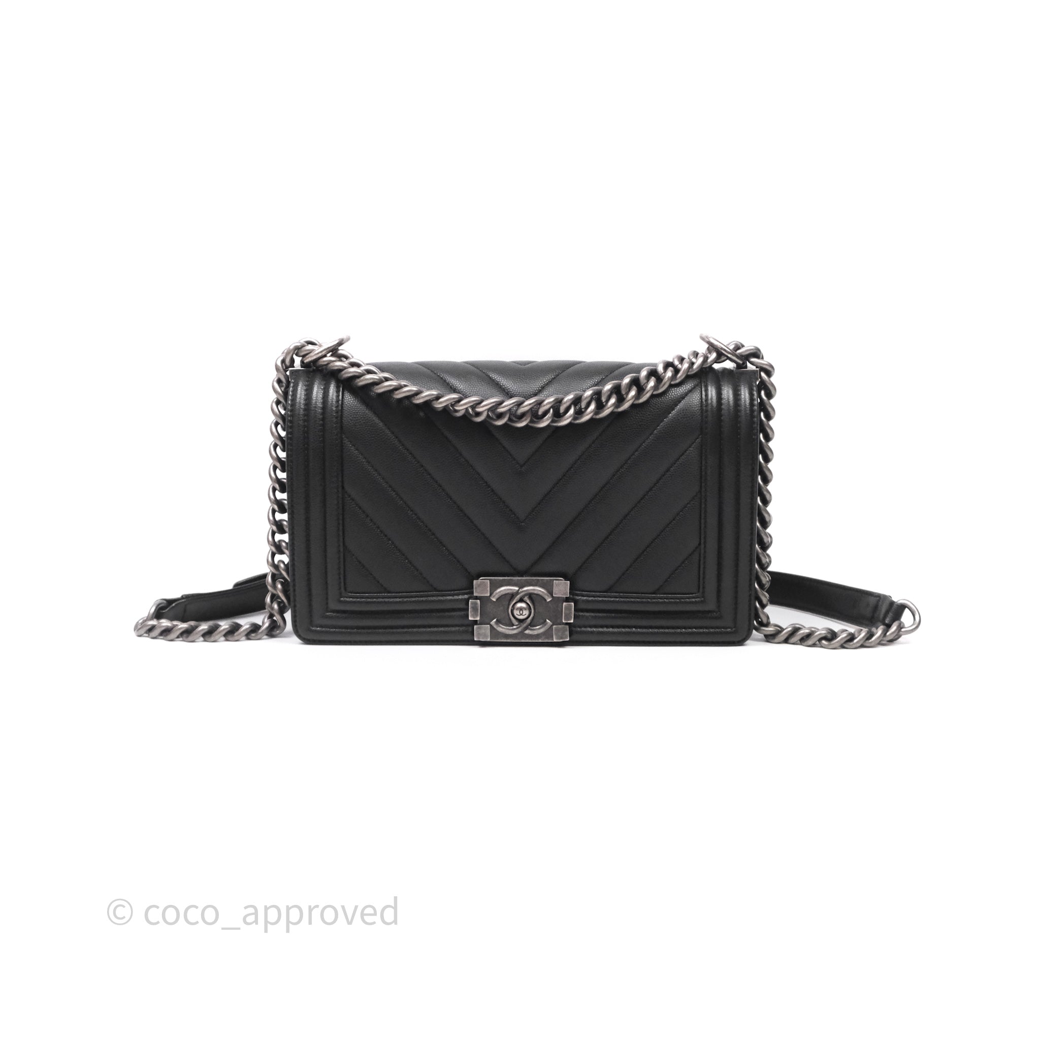 Chanel Medium Boy Chevron Black Caviar Ruthenium Hardware