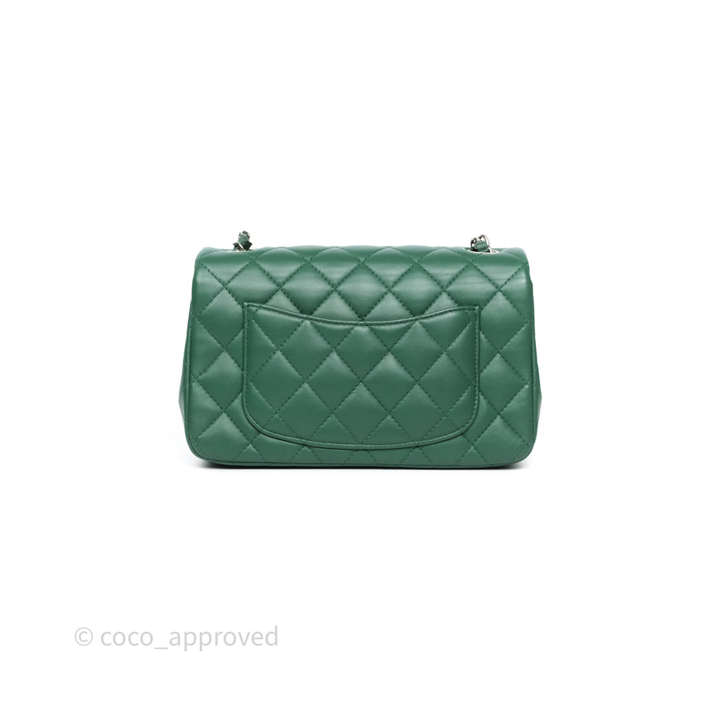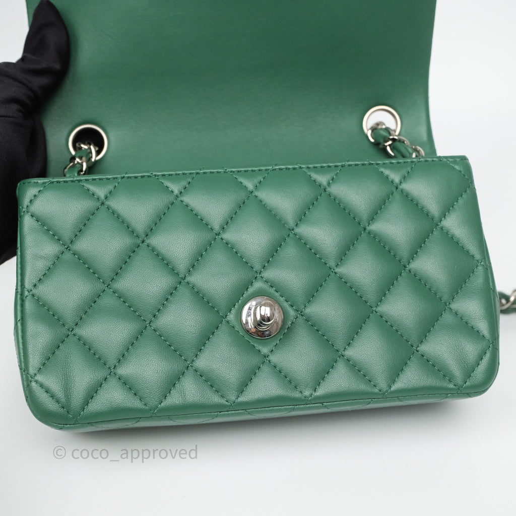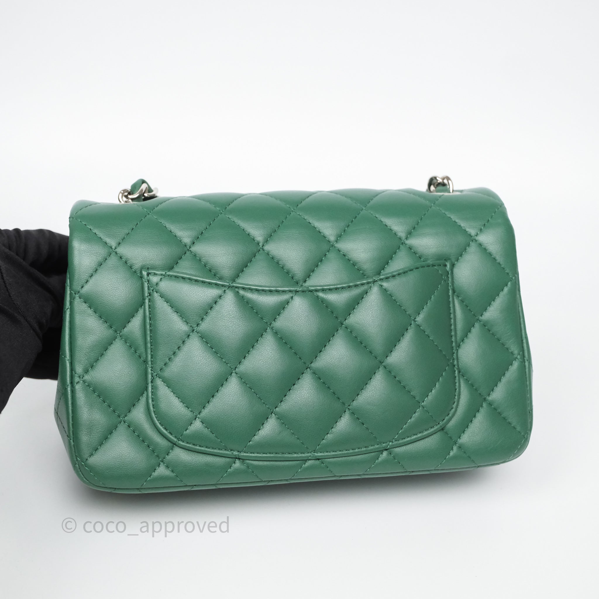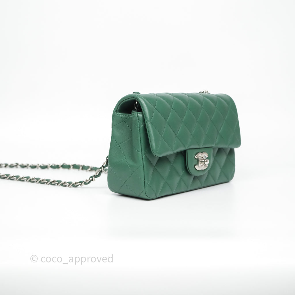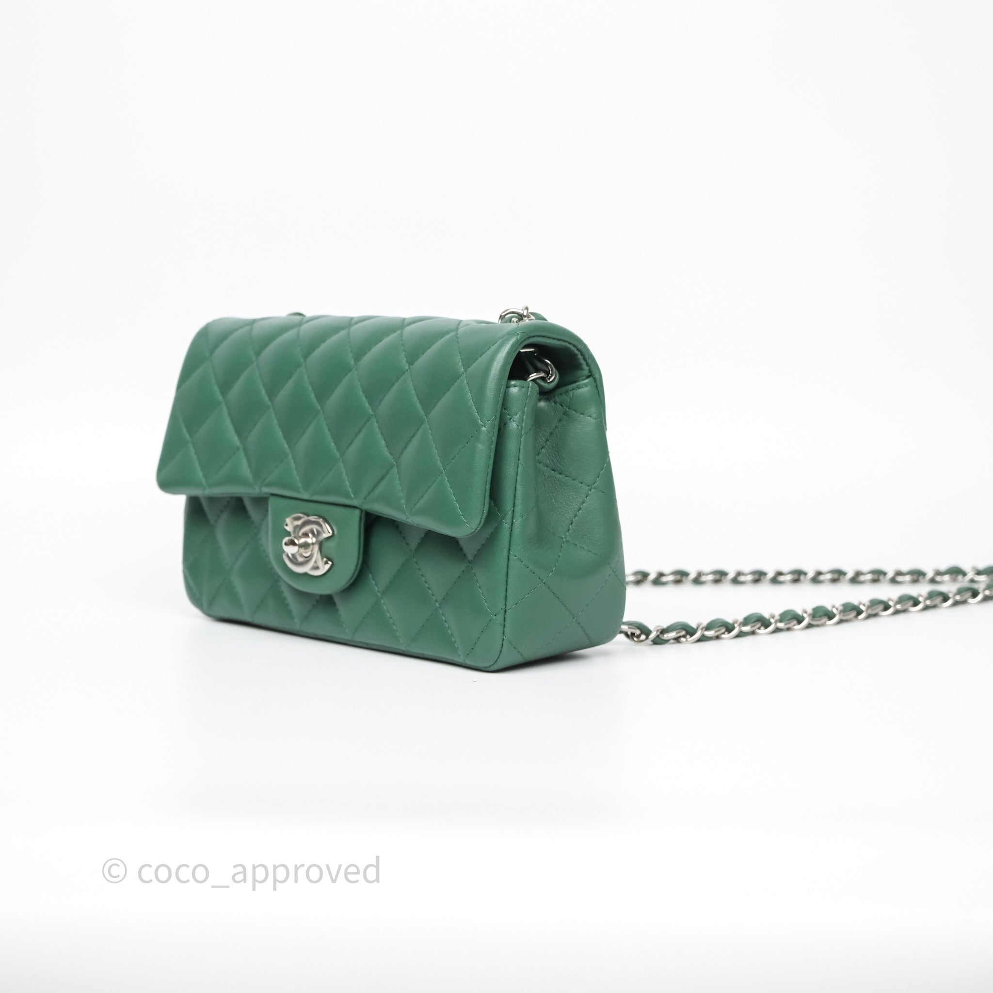 Chanel Quilted Mini Rectangular Green Lambskin Silver Hardware
