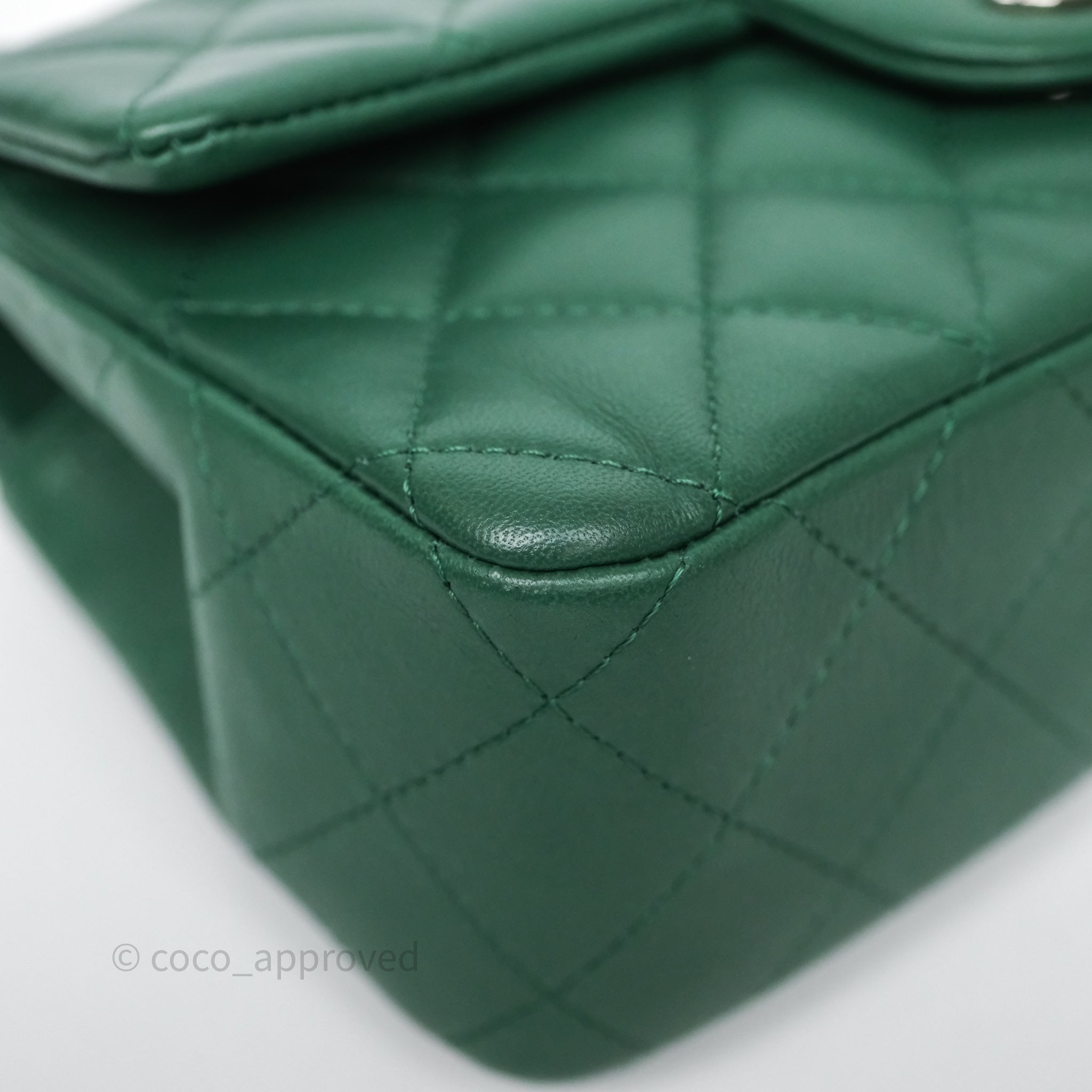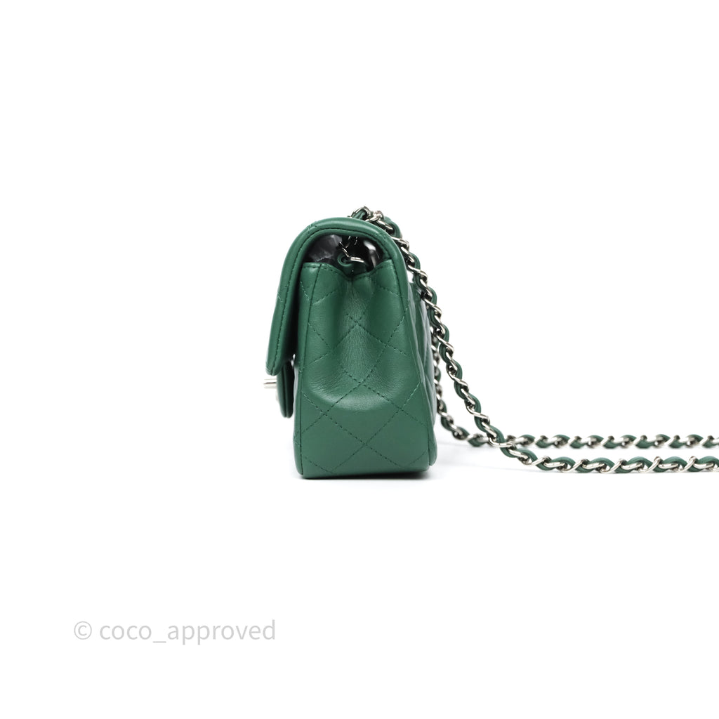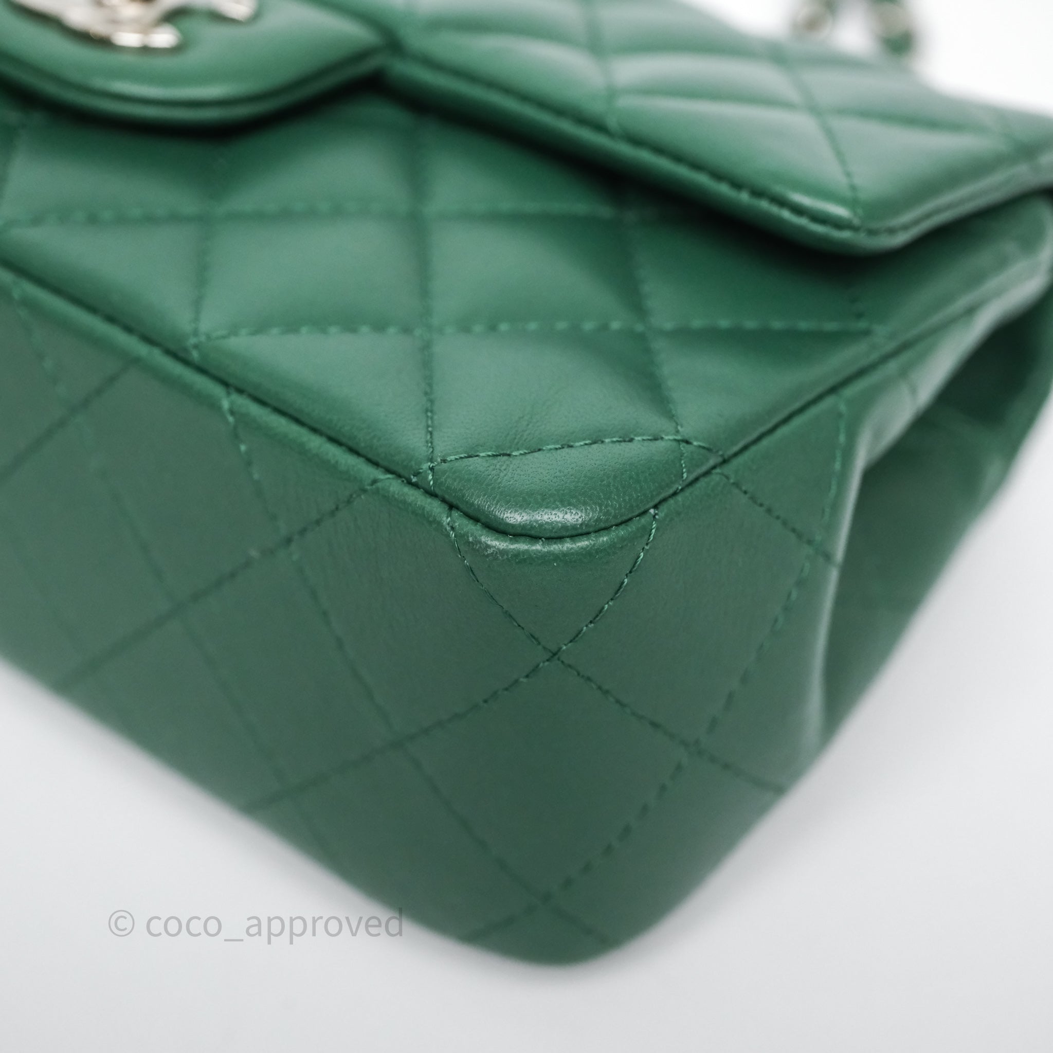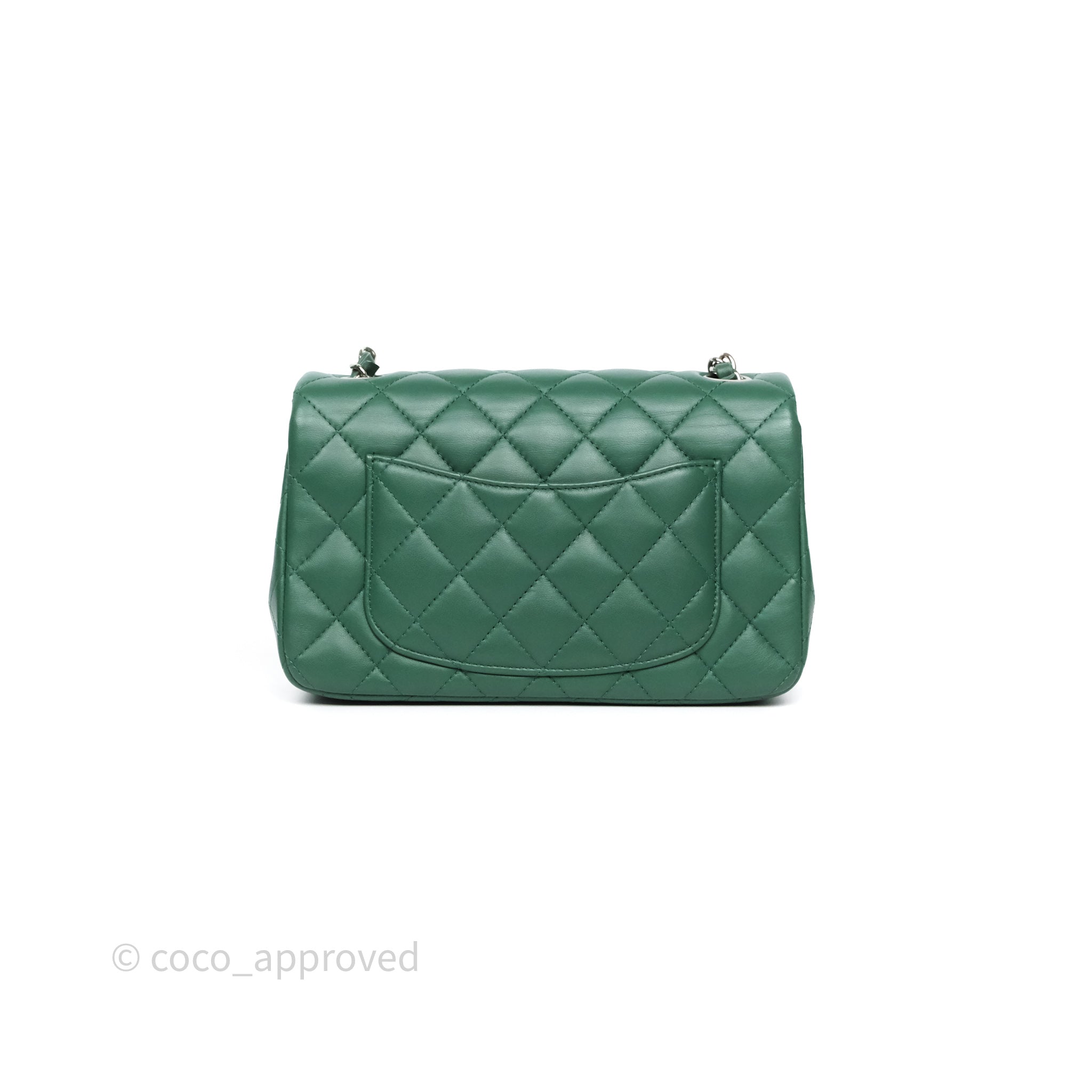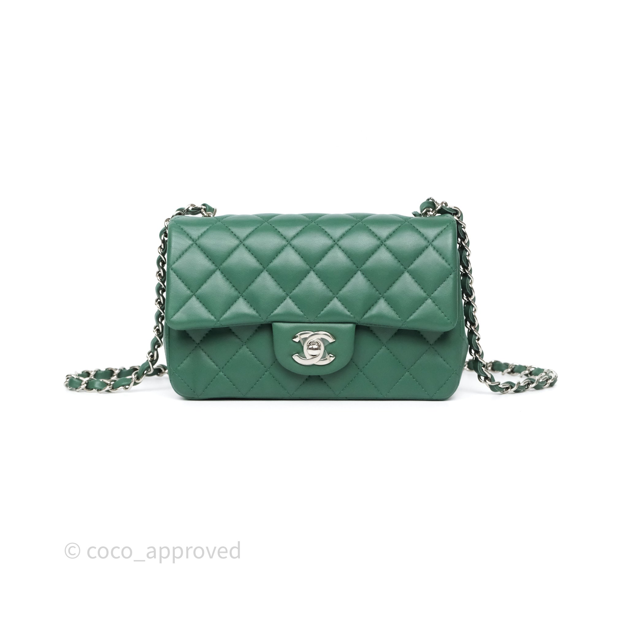 Chanel Quilted Mini Rectangular Green Lambskin Silver Hardware