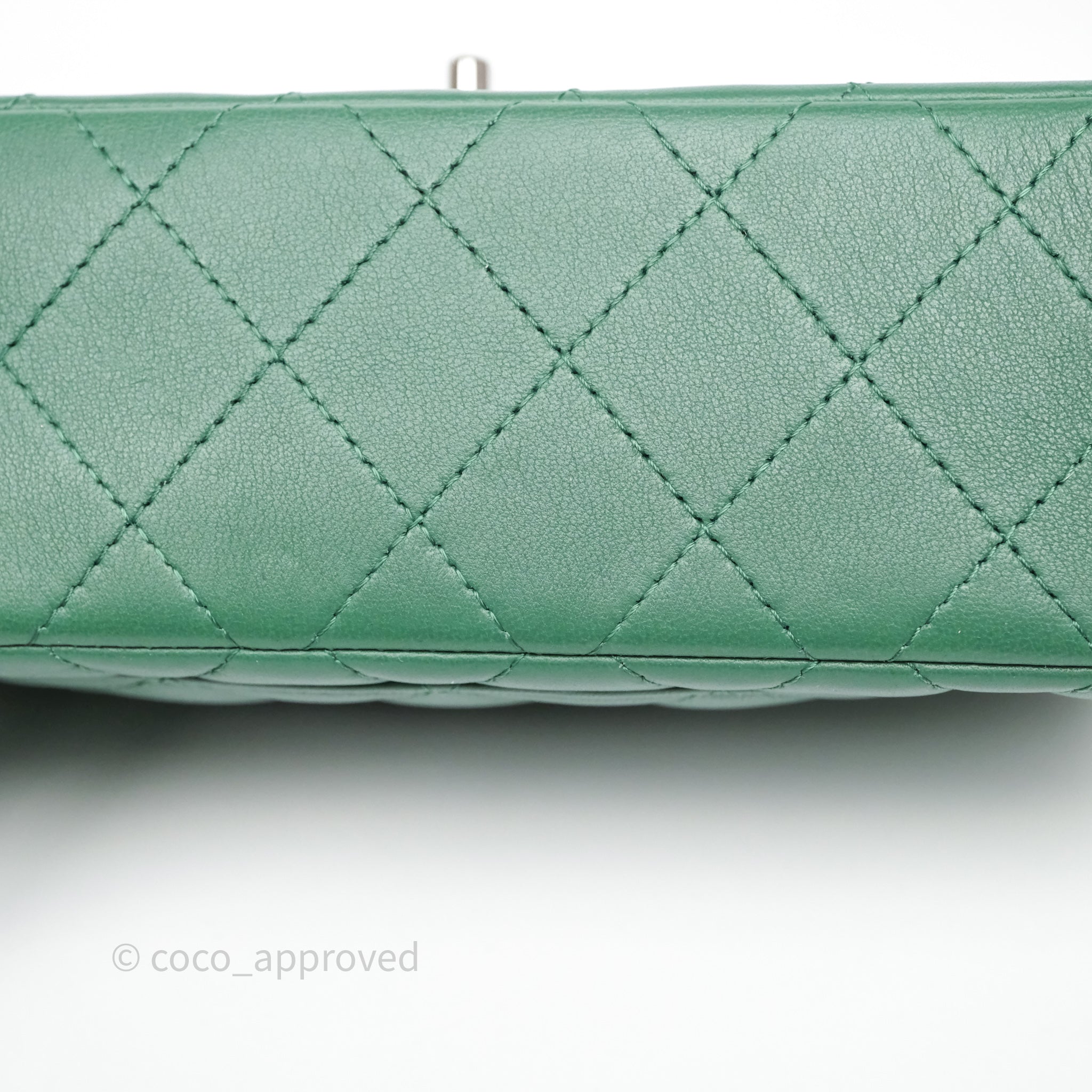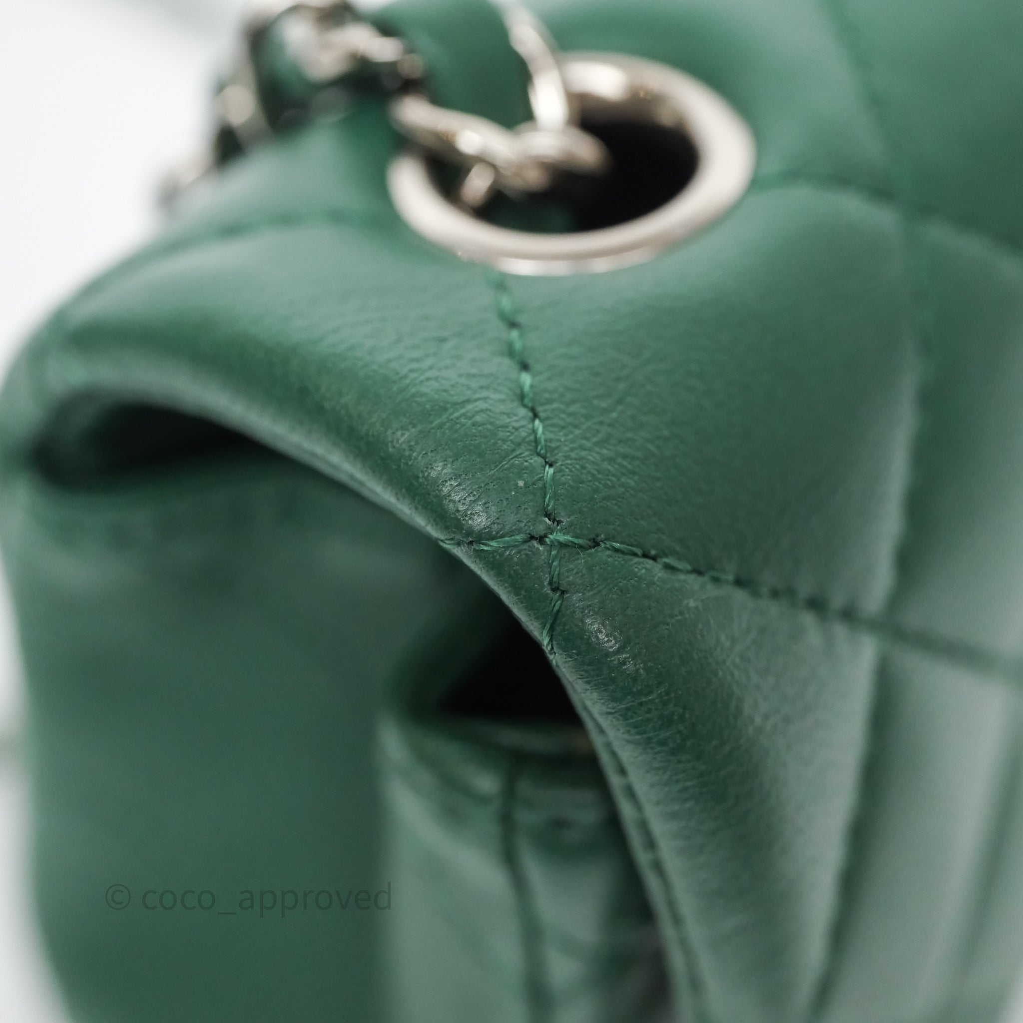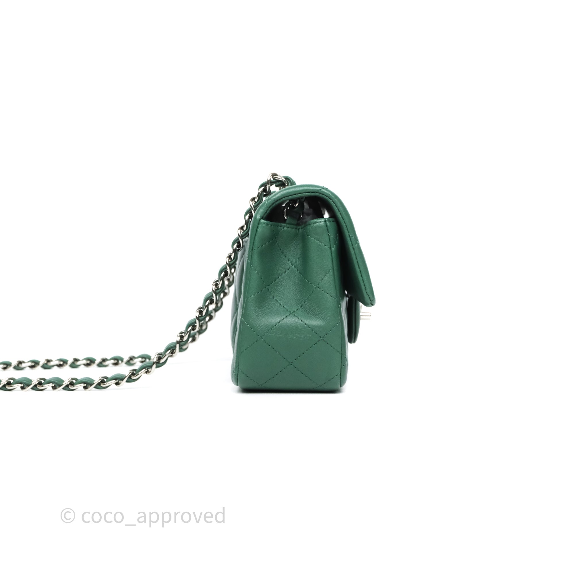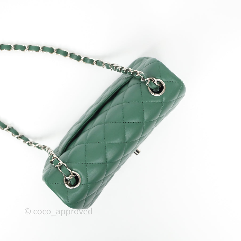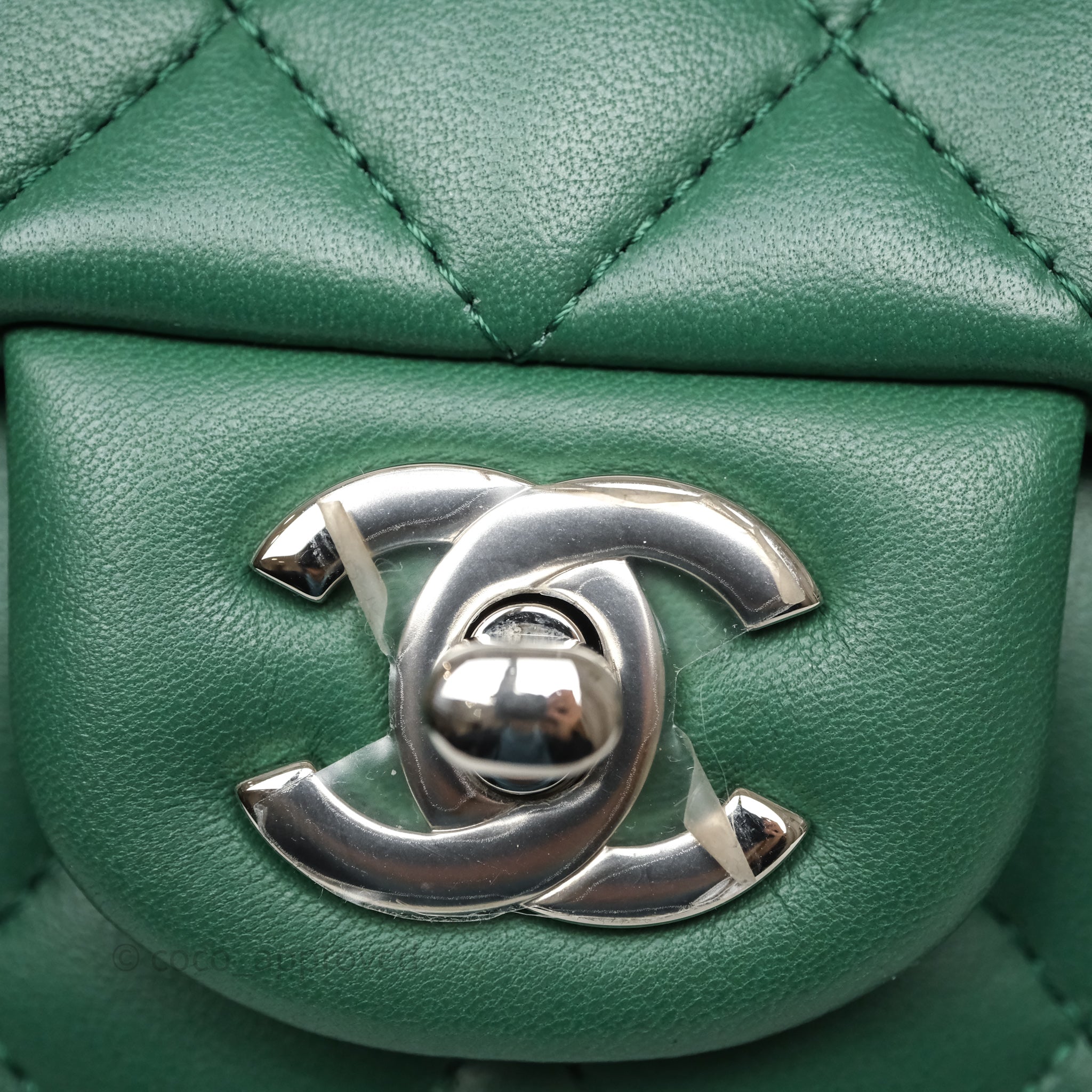 Chanel Quilted Mini Rectangular Green Lambskin Silver Hardware