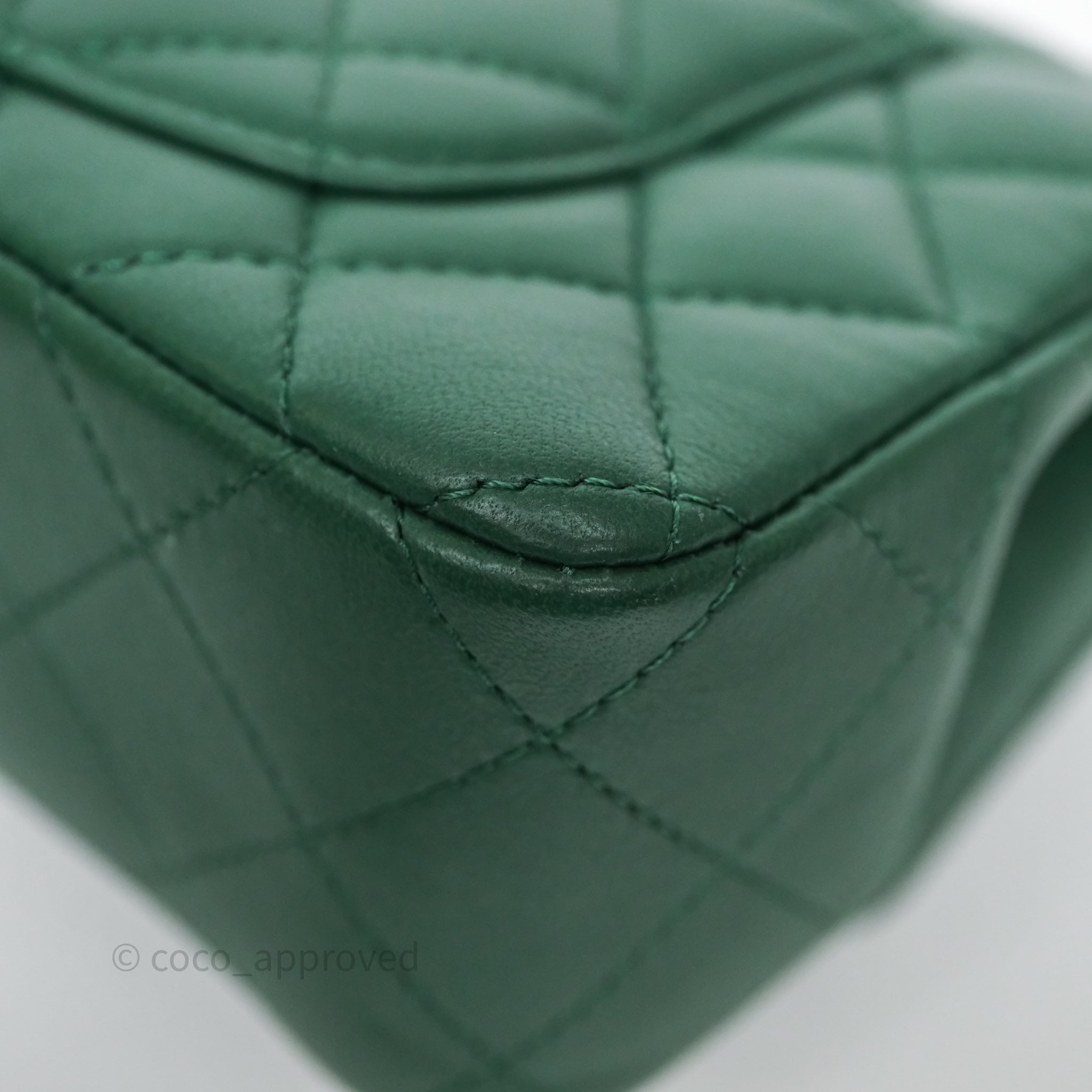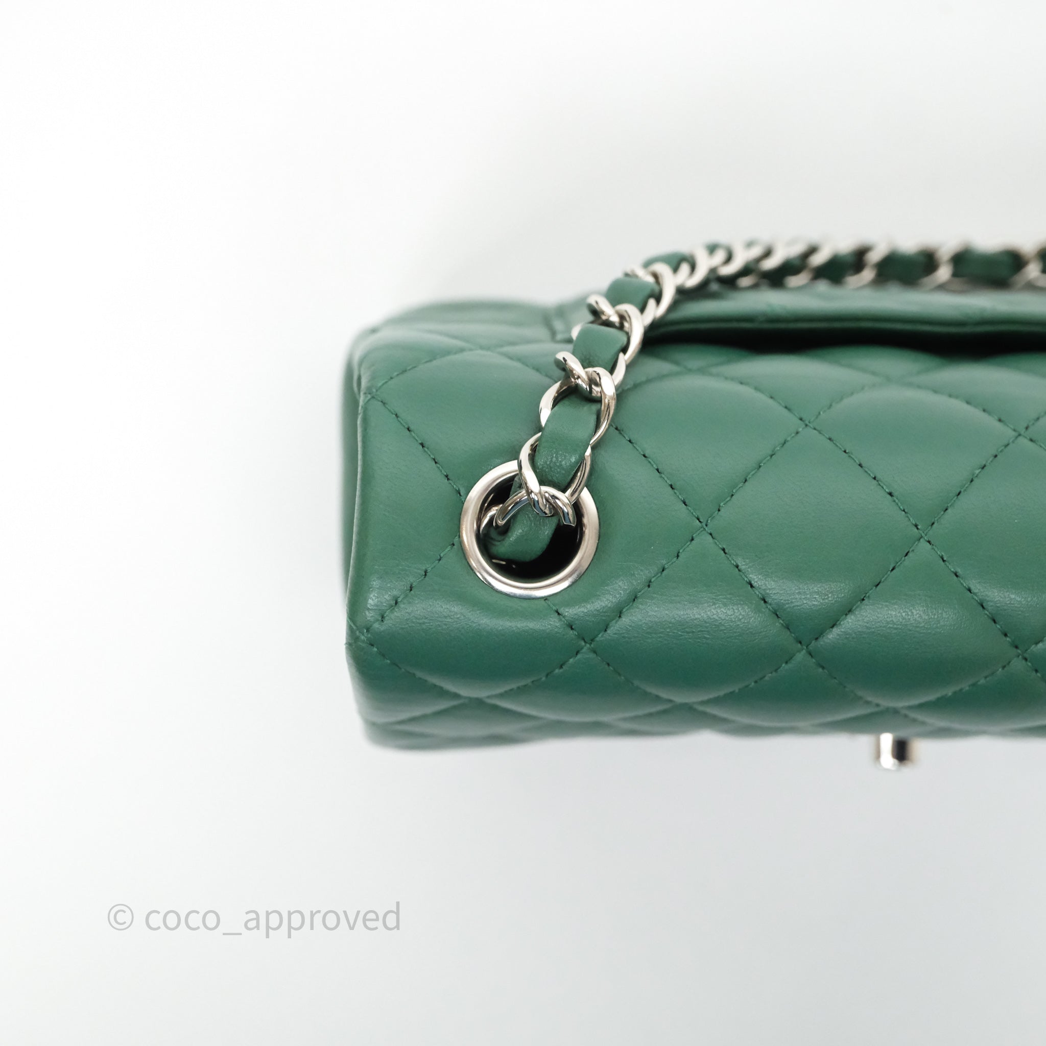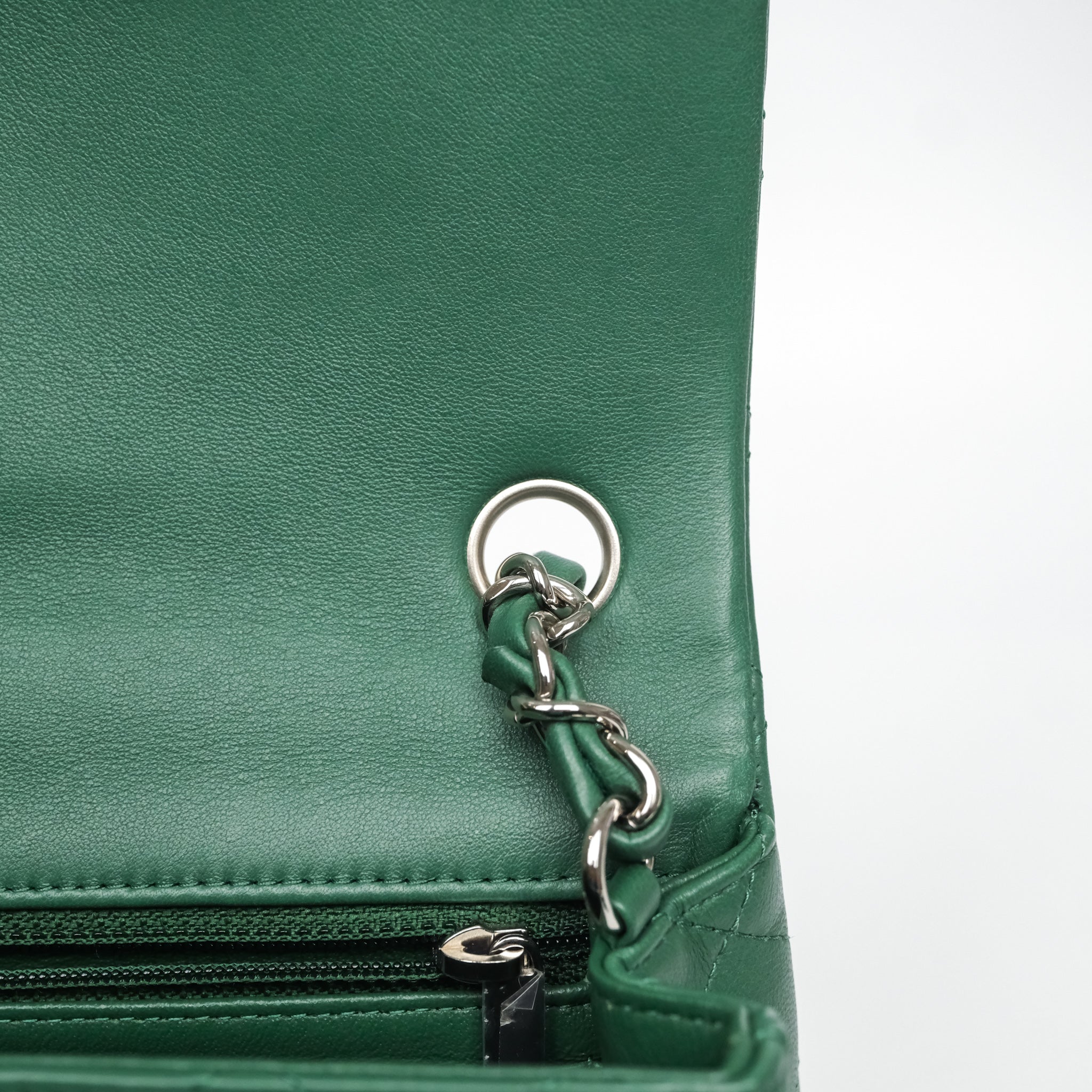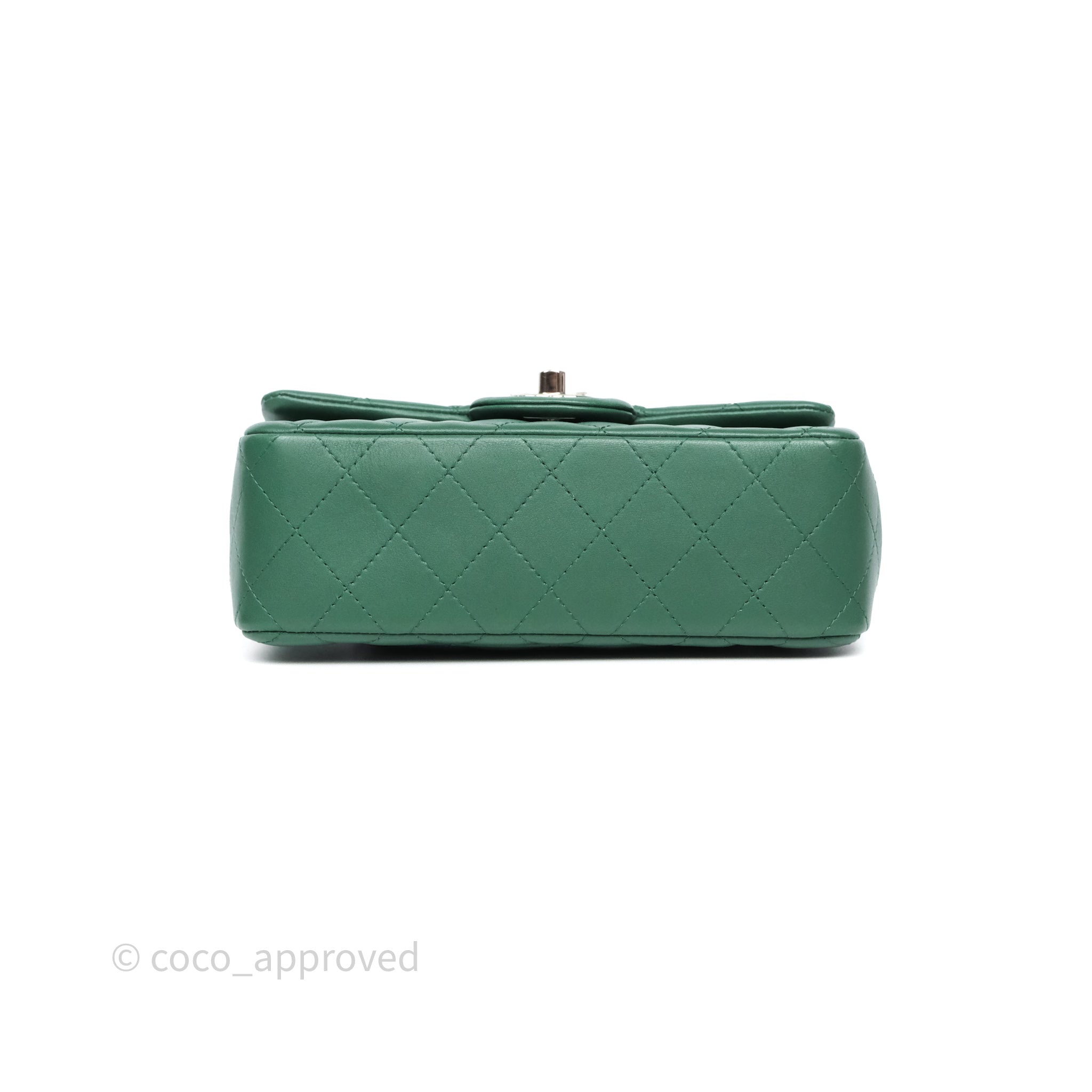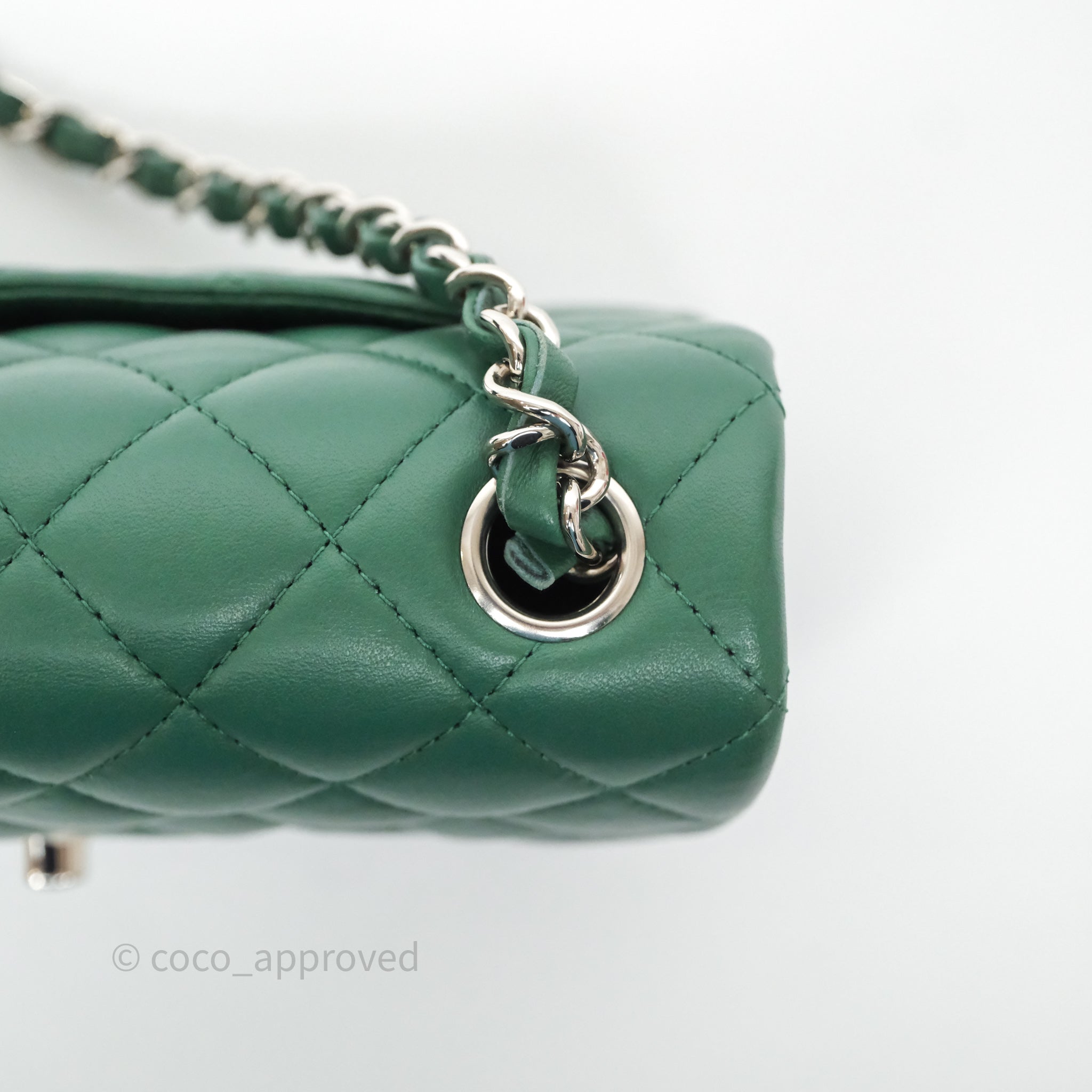 Chanel Quilted Mini Rectangular Green Lambskin Silver Hardware