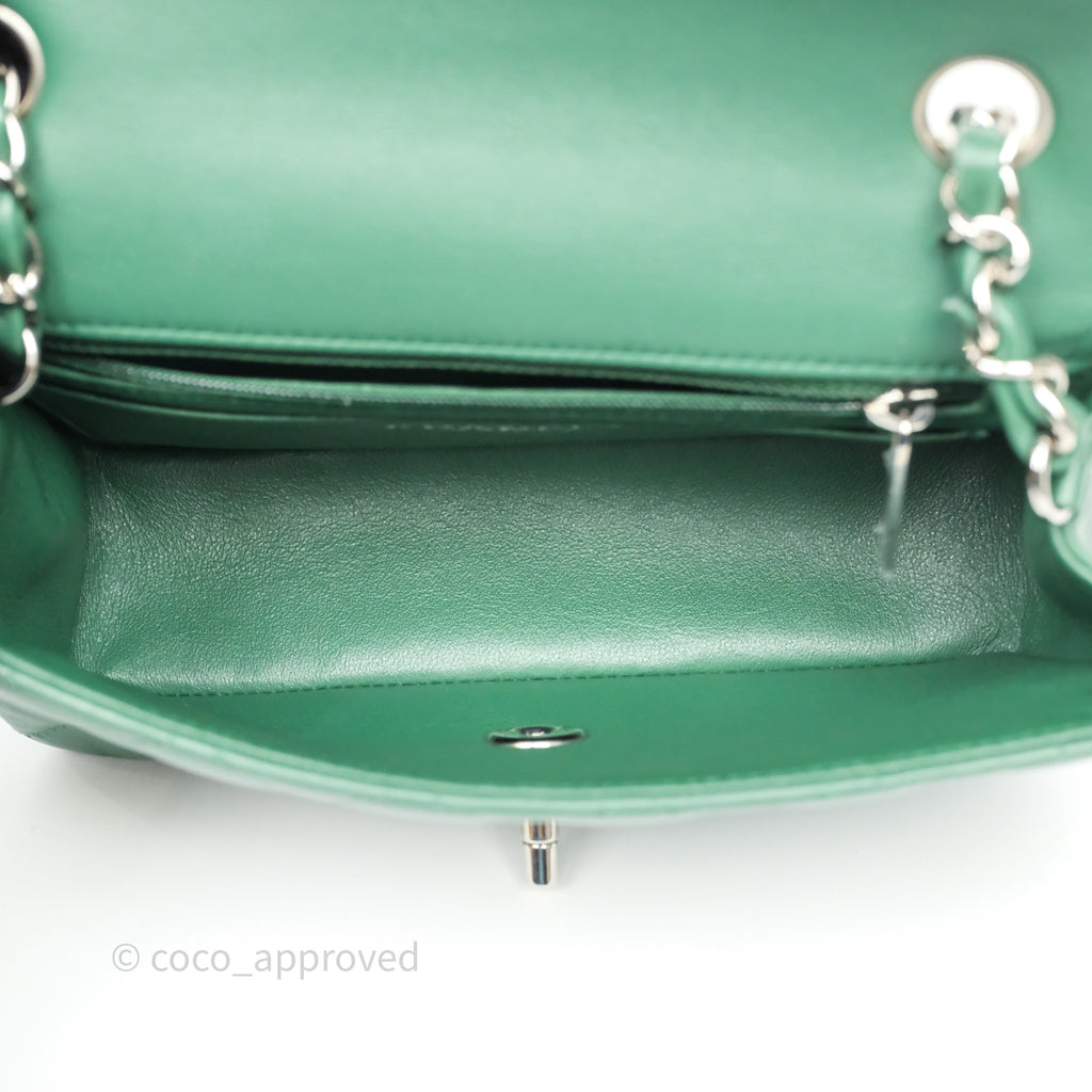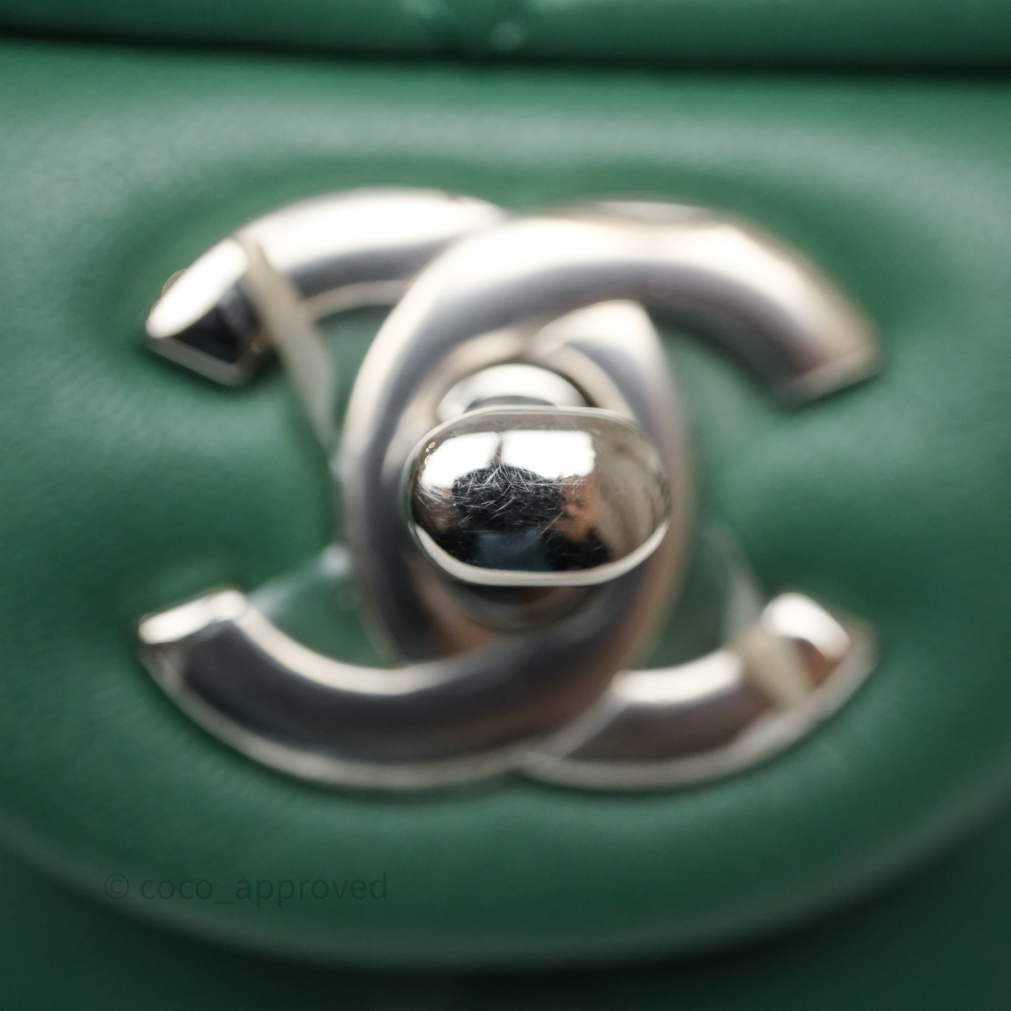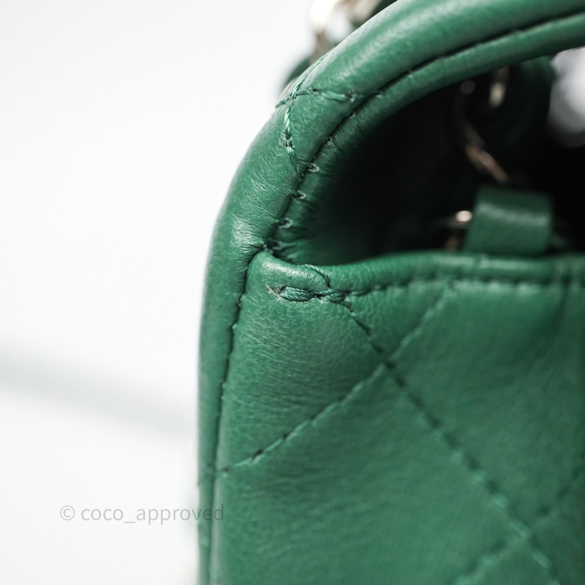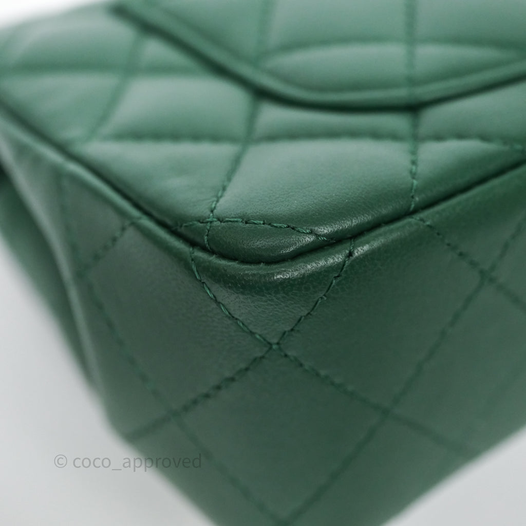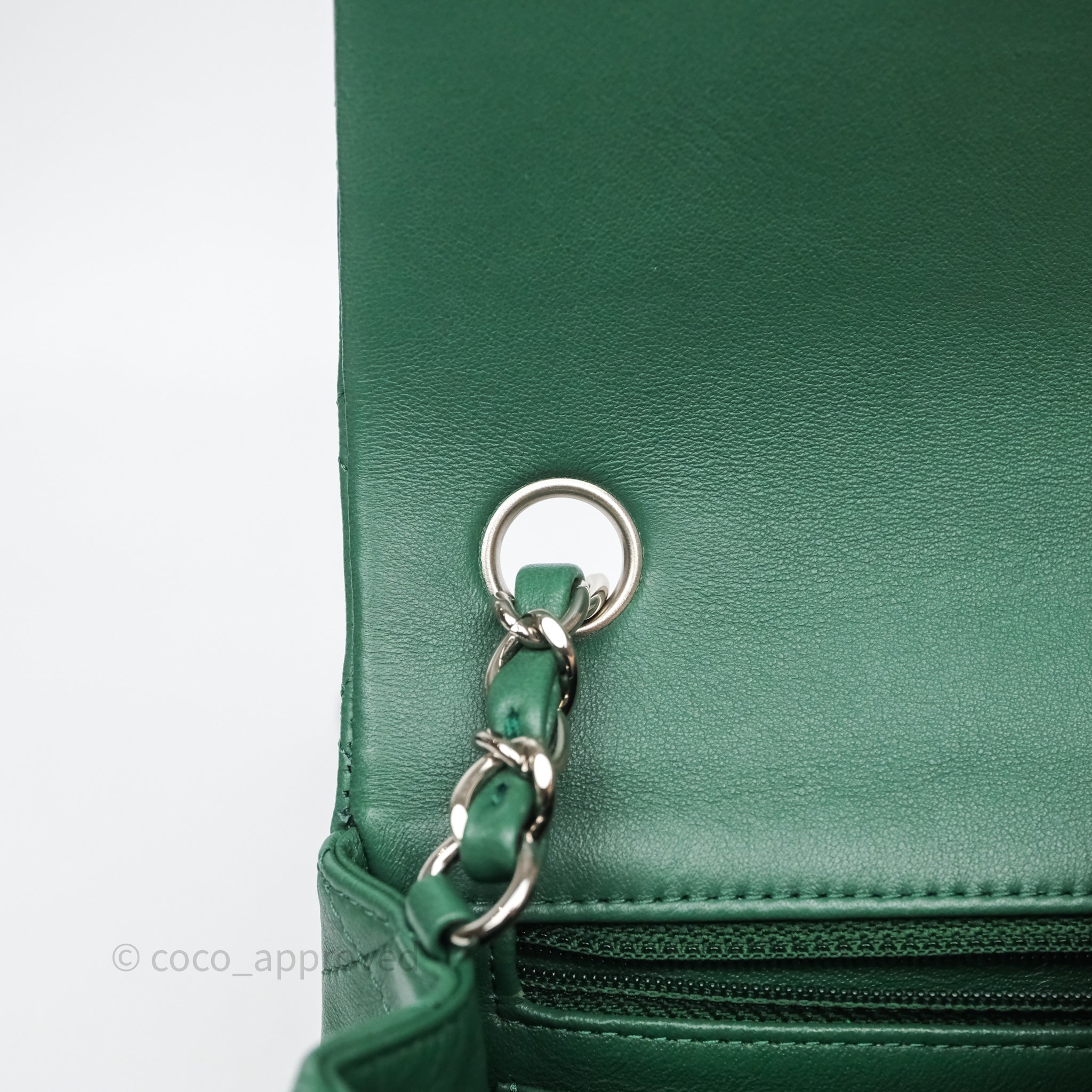 Chanel Quilted Mini Rectangular Green Lambskin Silver Hardware