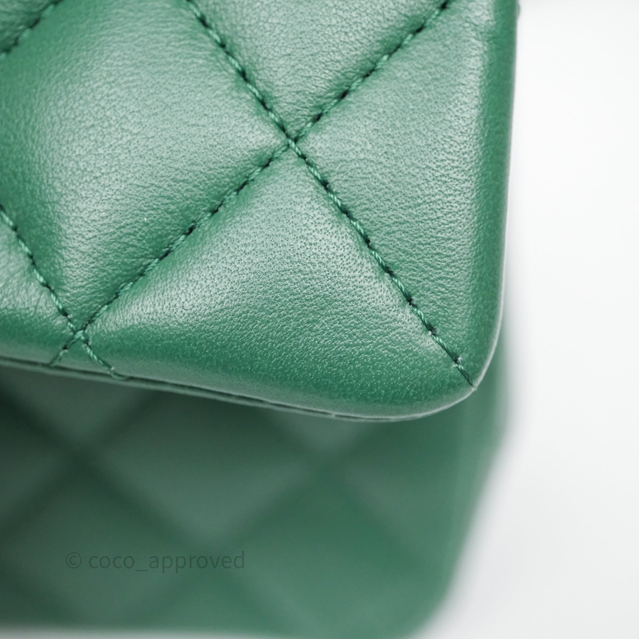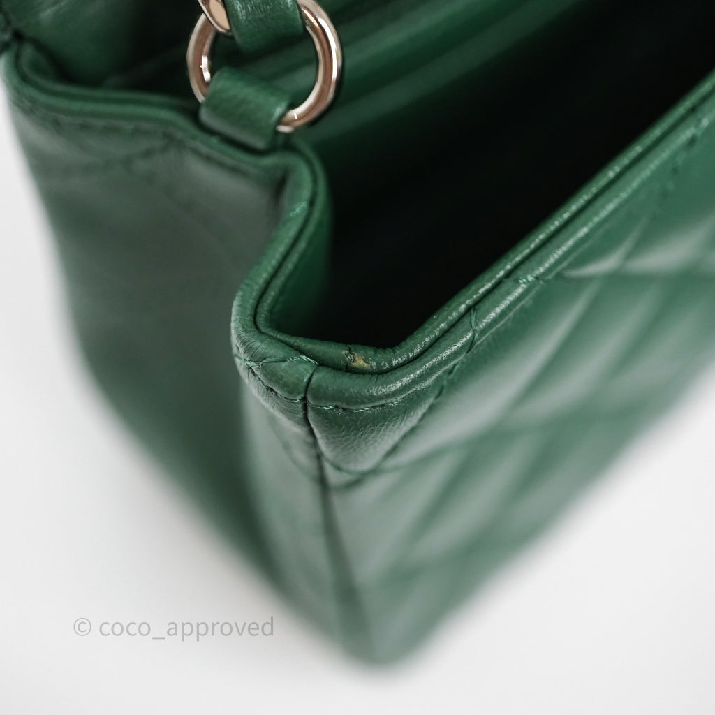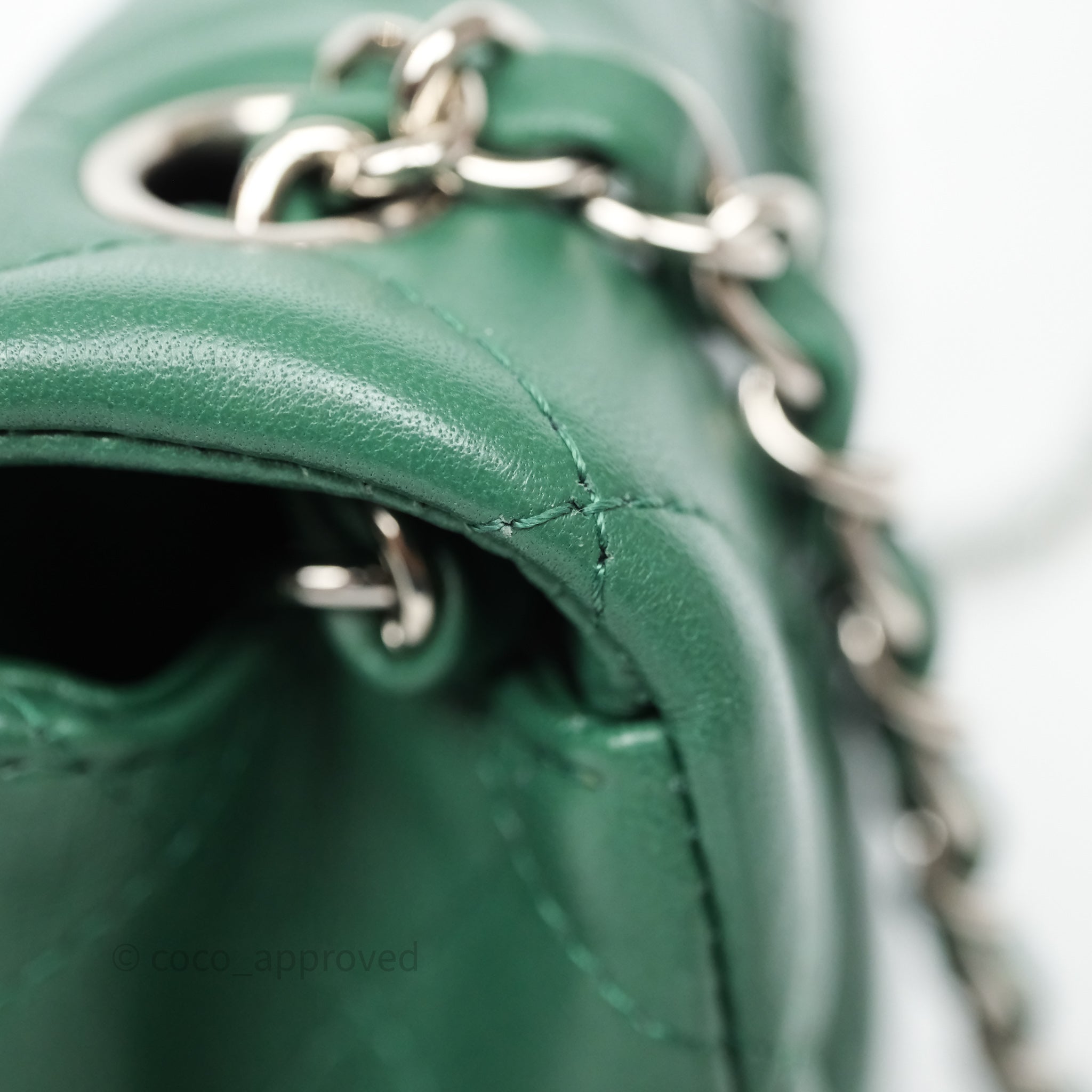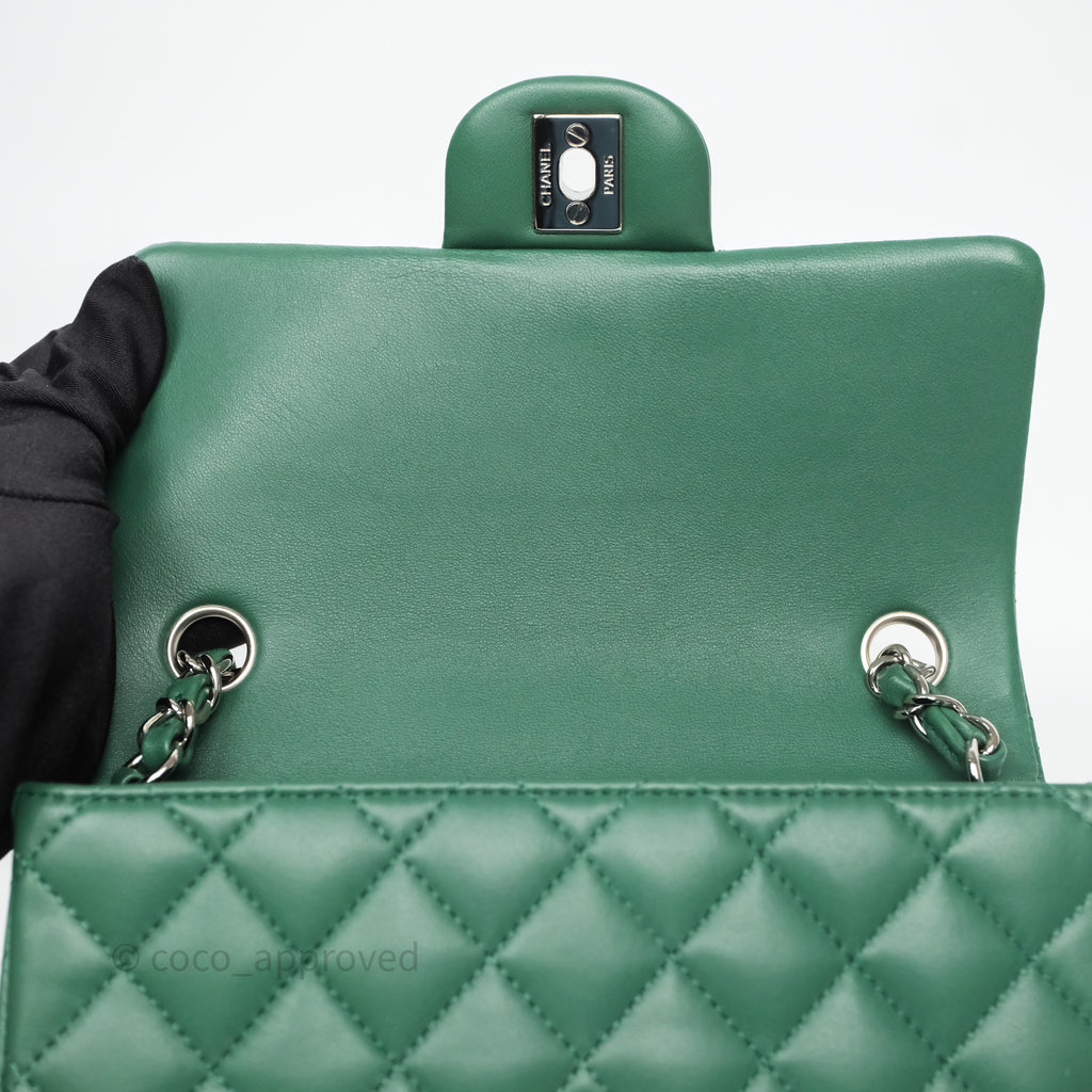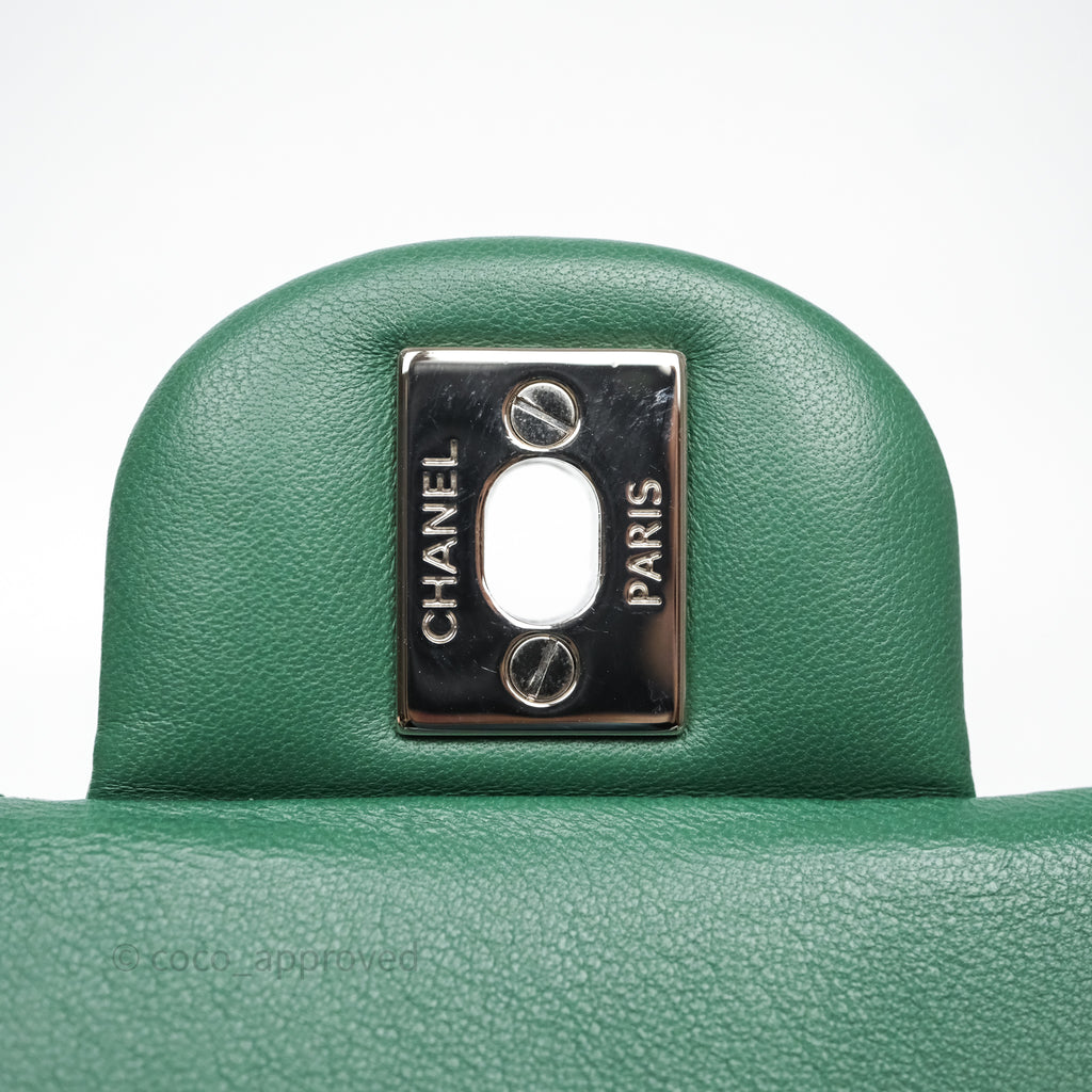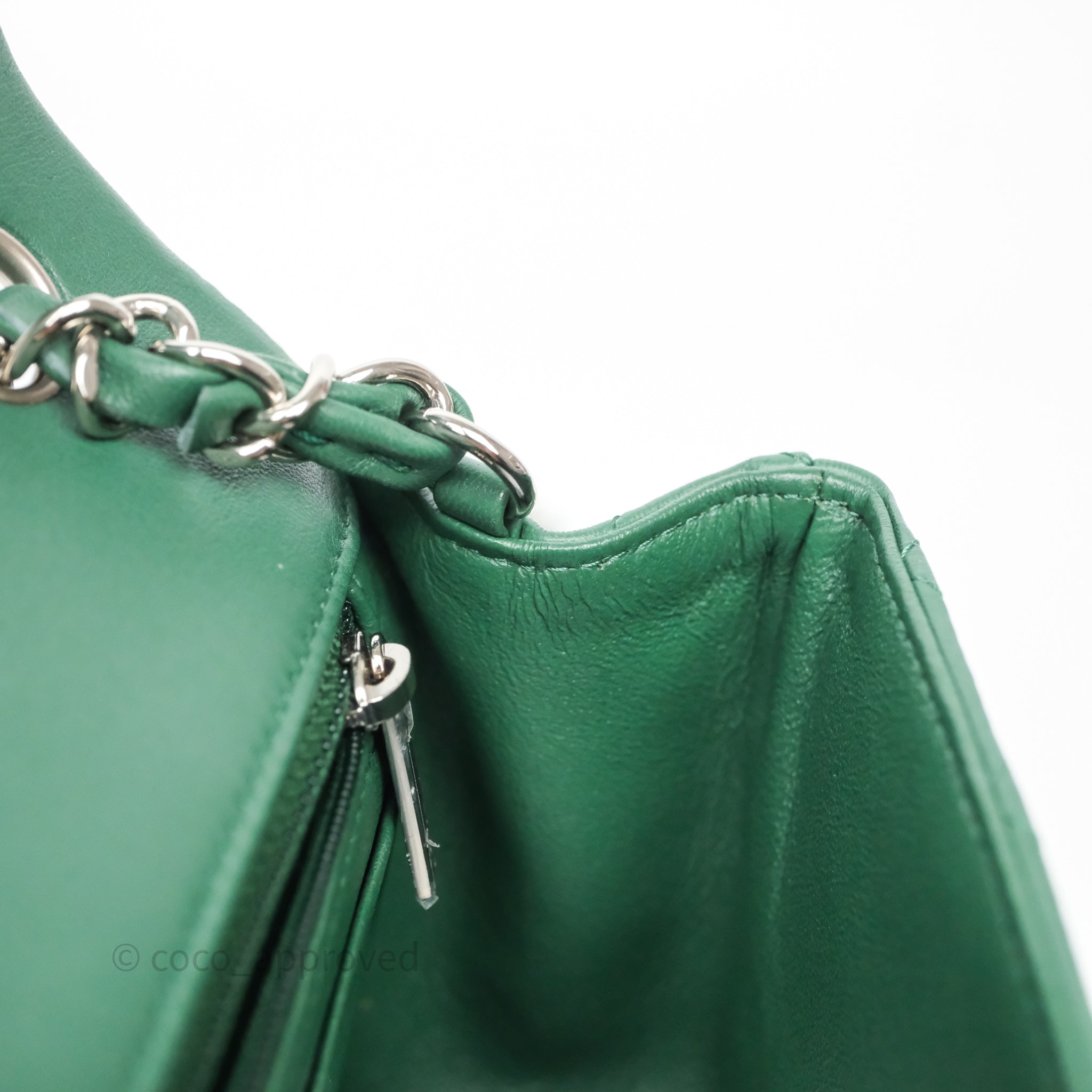 Chanel Quilted Mini Rectangular Green Lambskin Silver Hardware