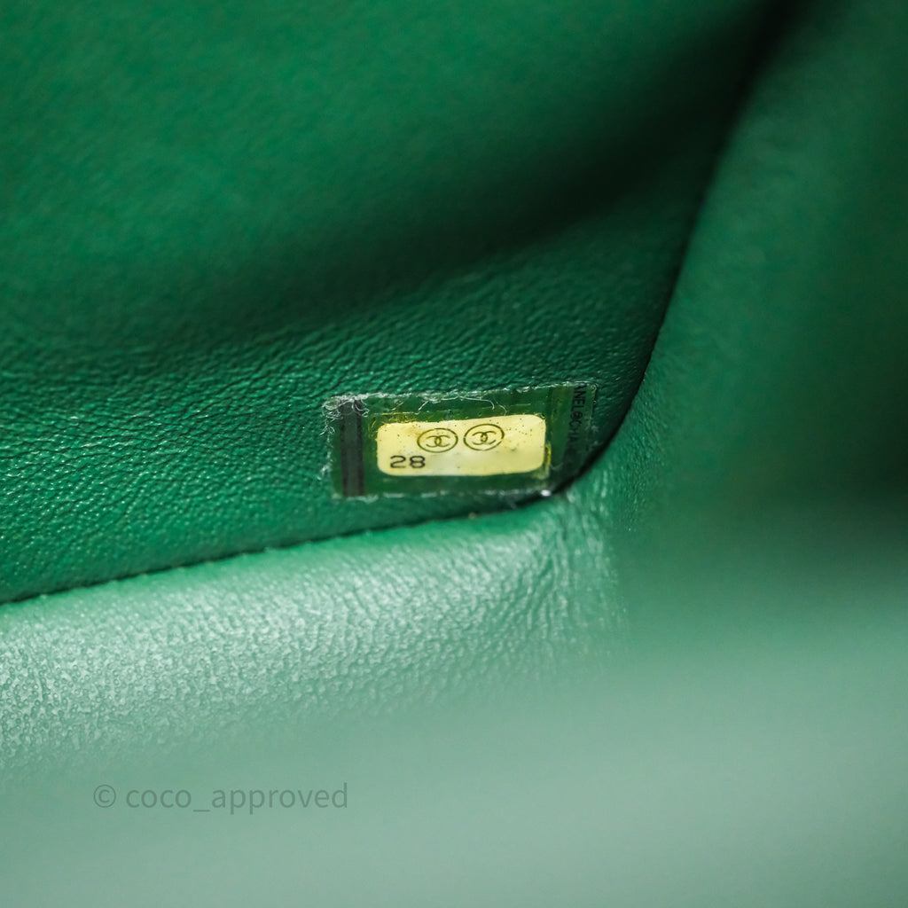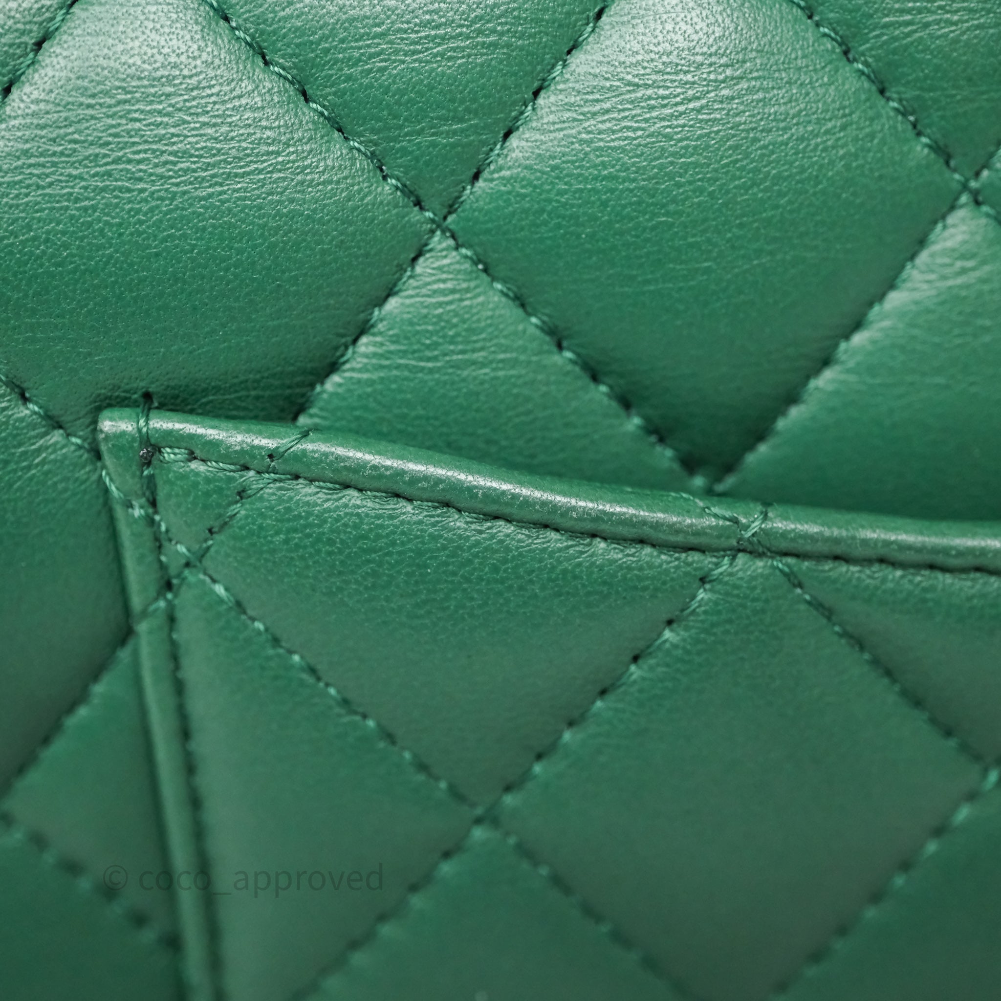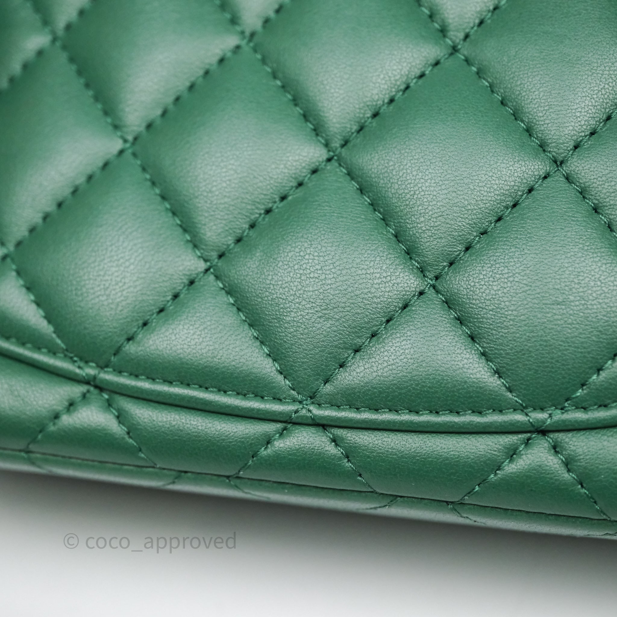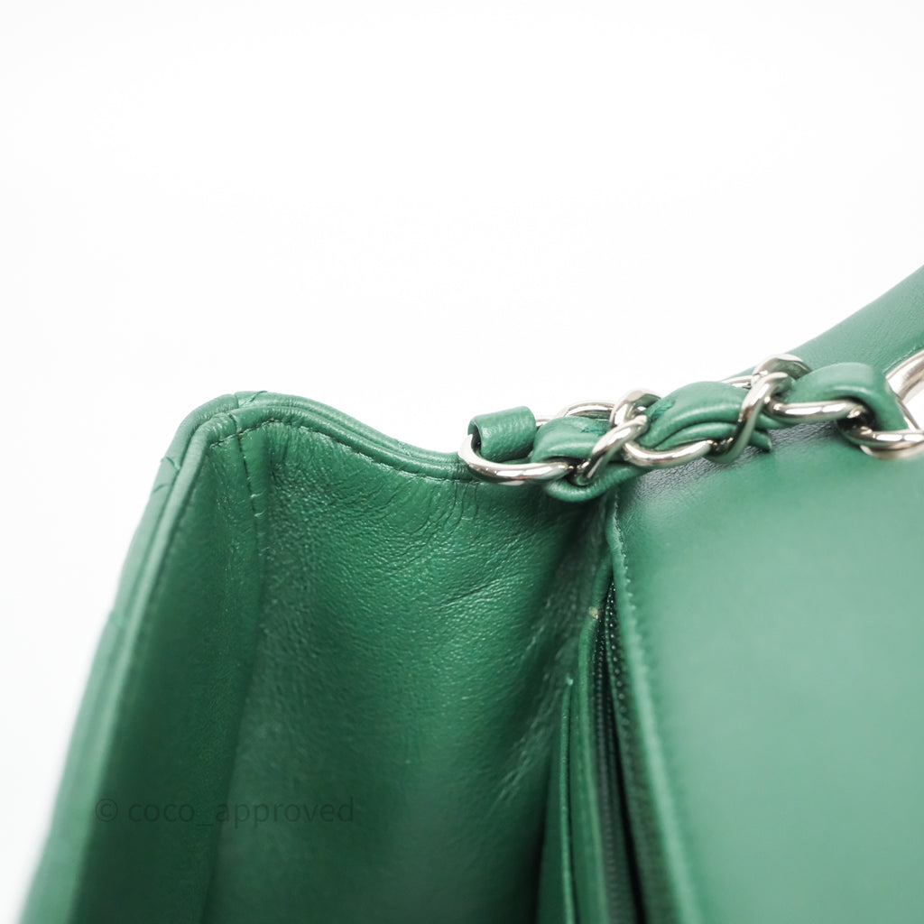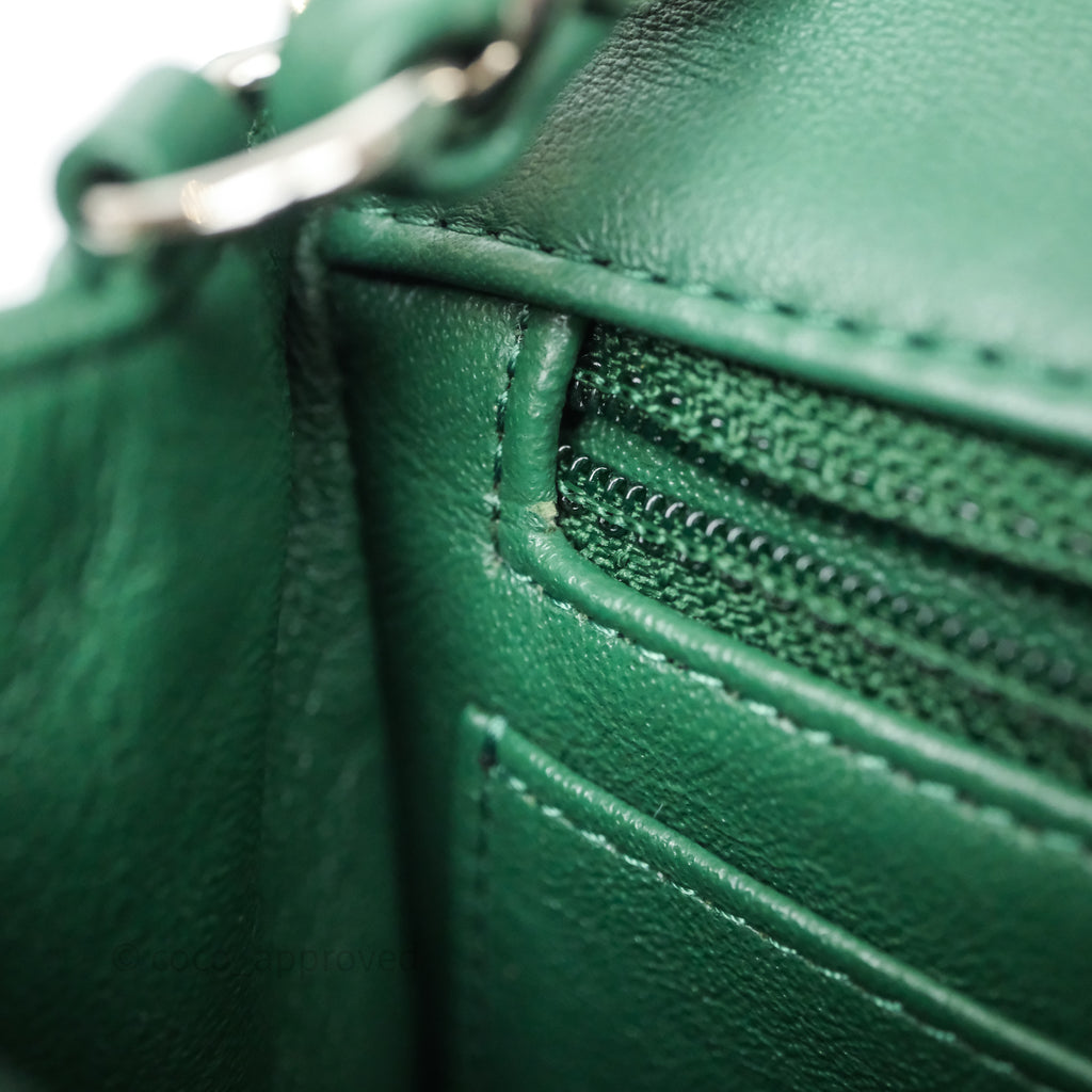 Chanel Quilted Mini Rectangular Green Lambskin Silver Hardware