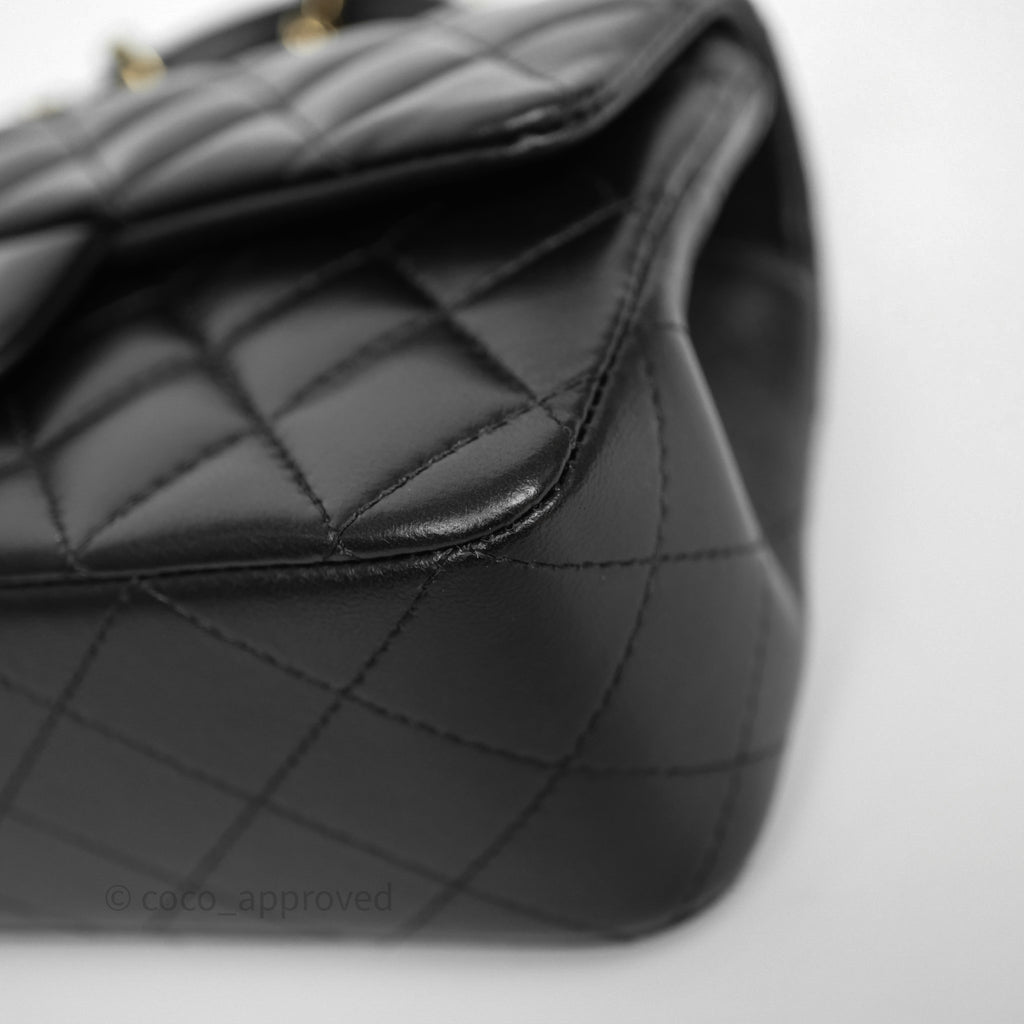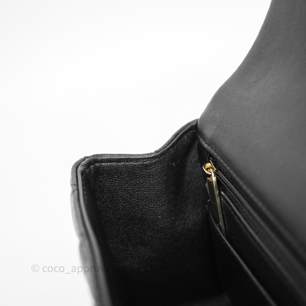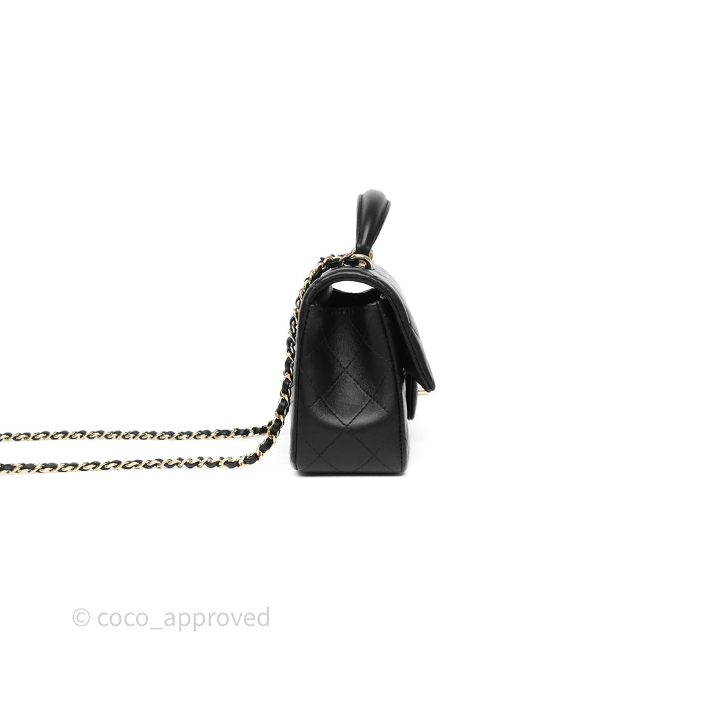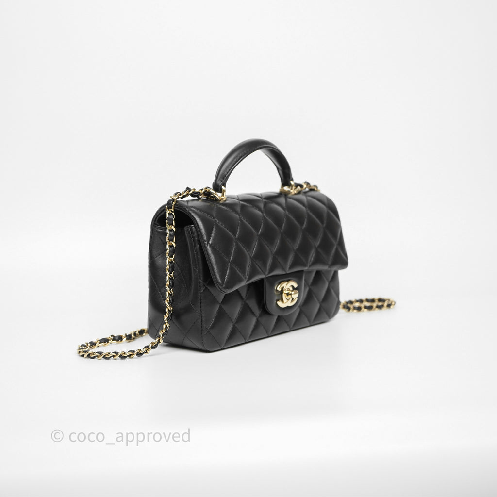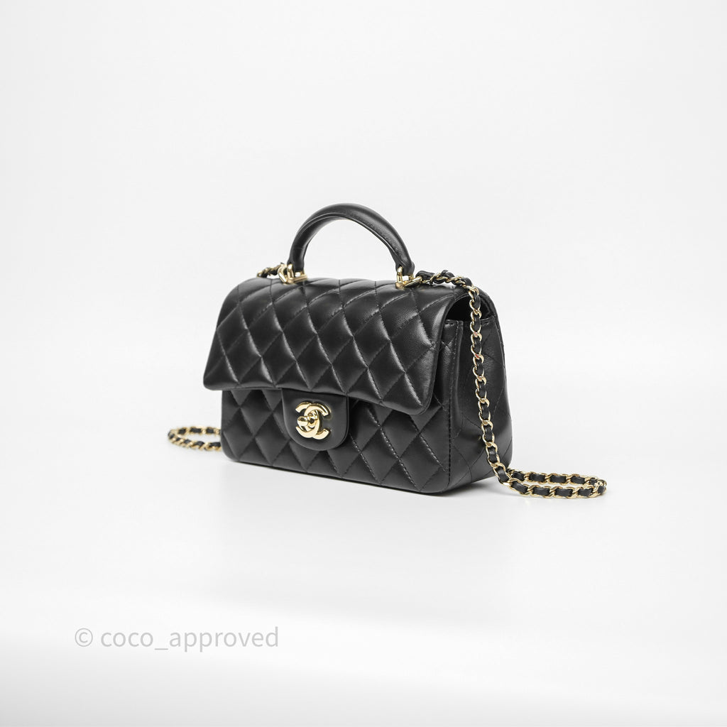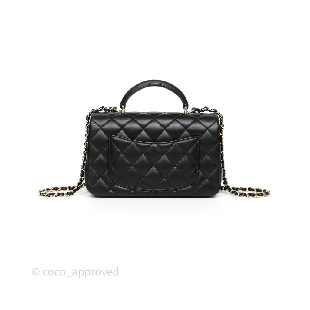 Chanel Top Handle Mini Rectangular Flap Black Lambskin Gold Hardware