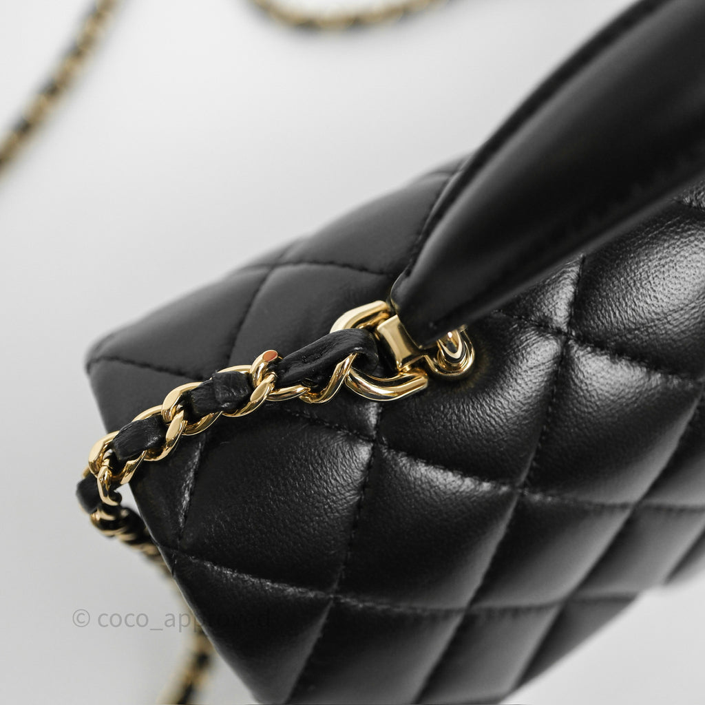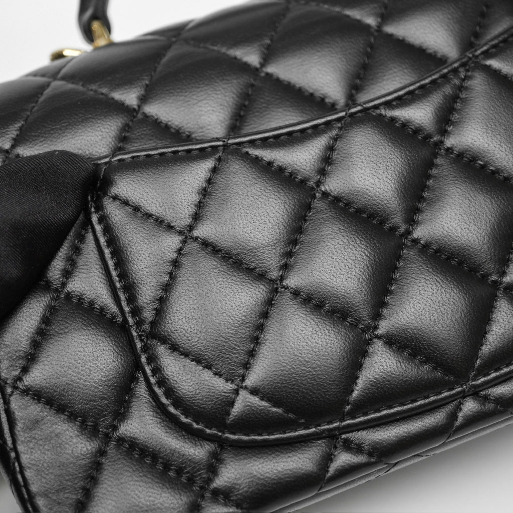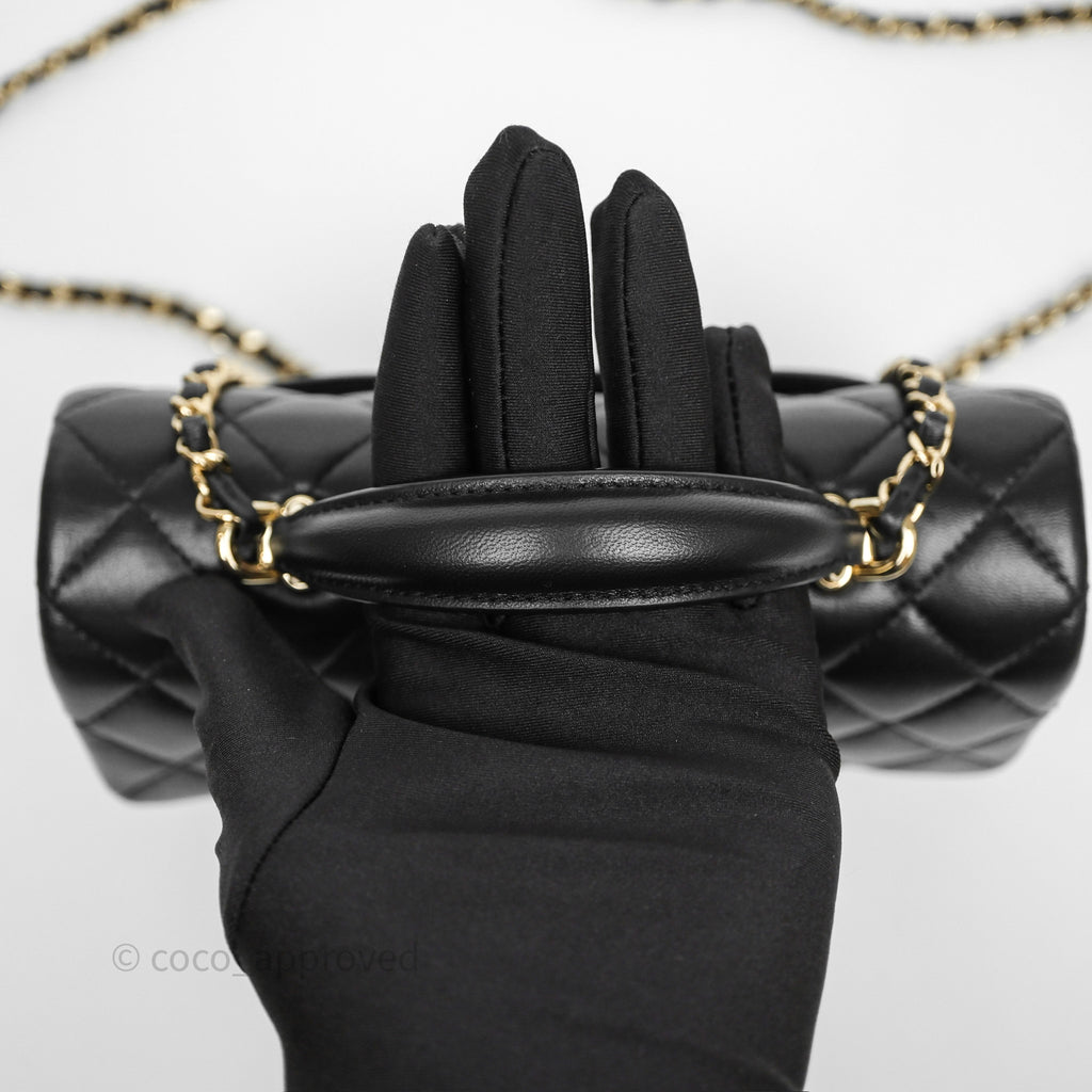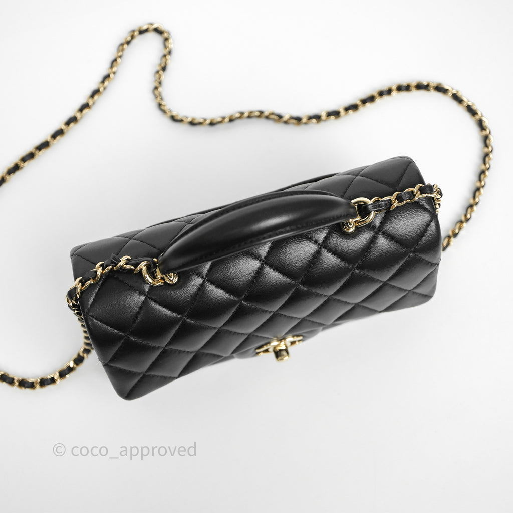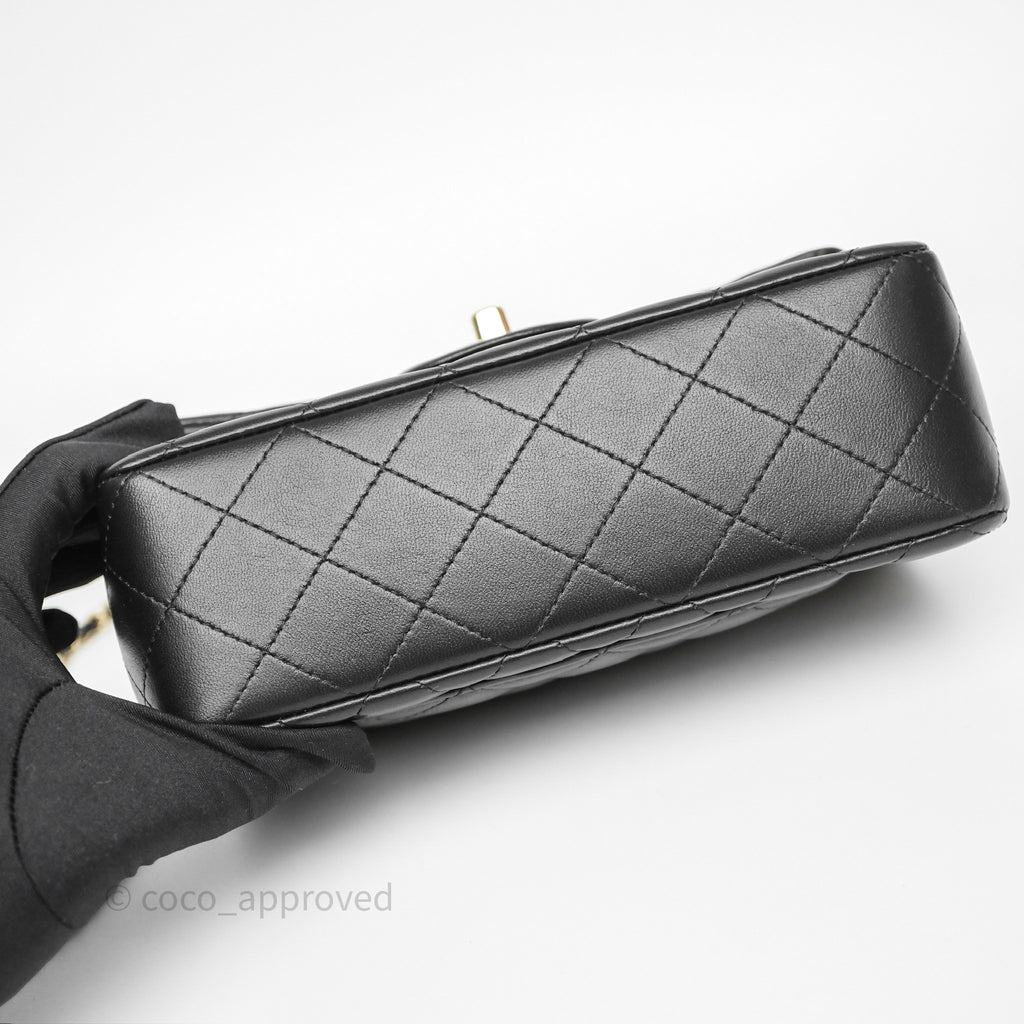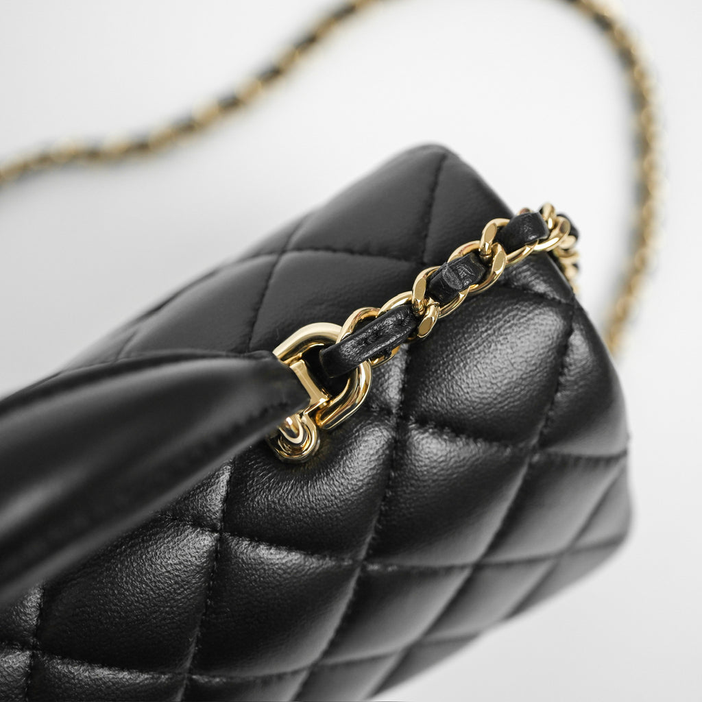Chanel Top Handle Mini Rectangular Flap Black Lambskin Gold Hardware