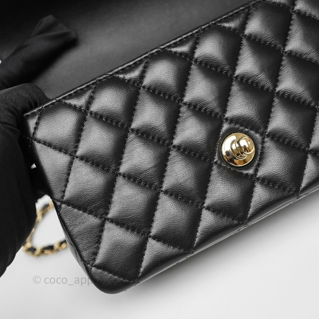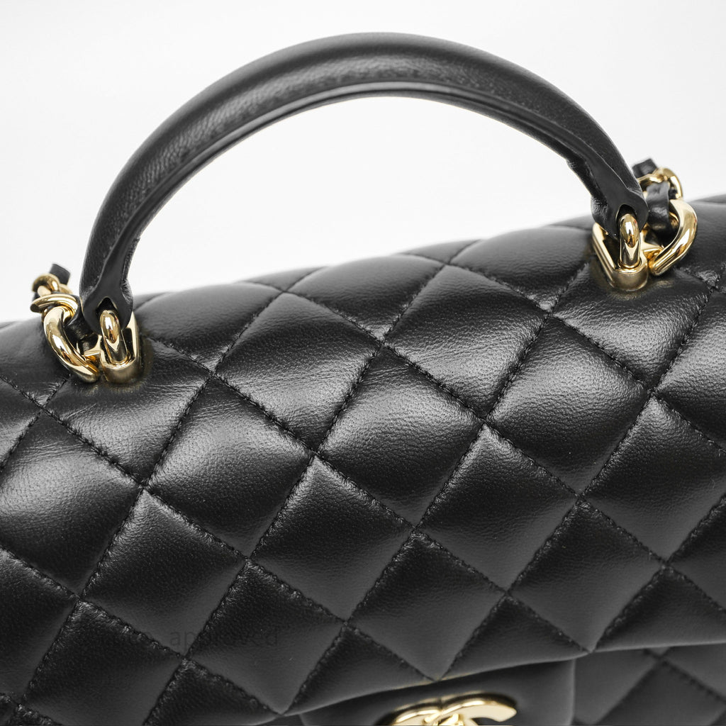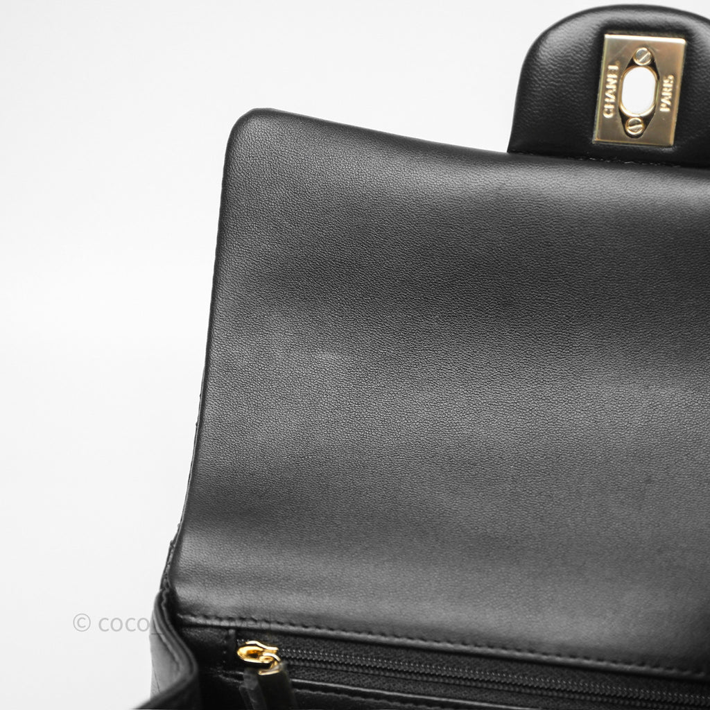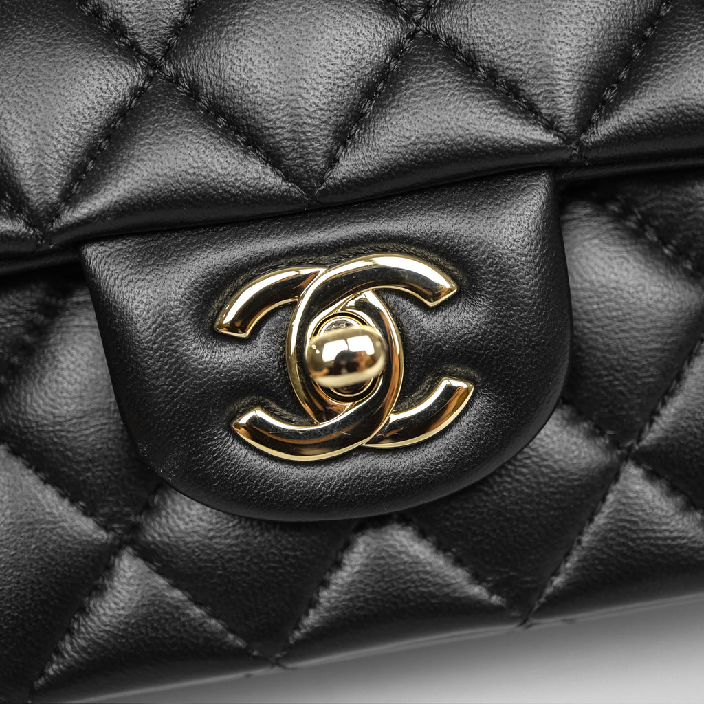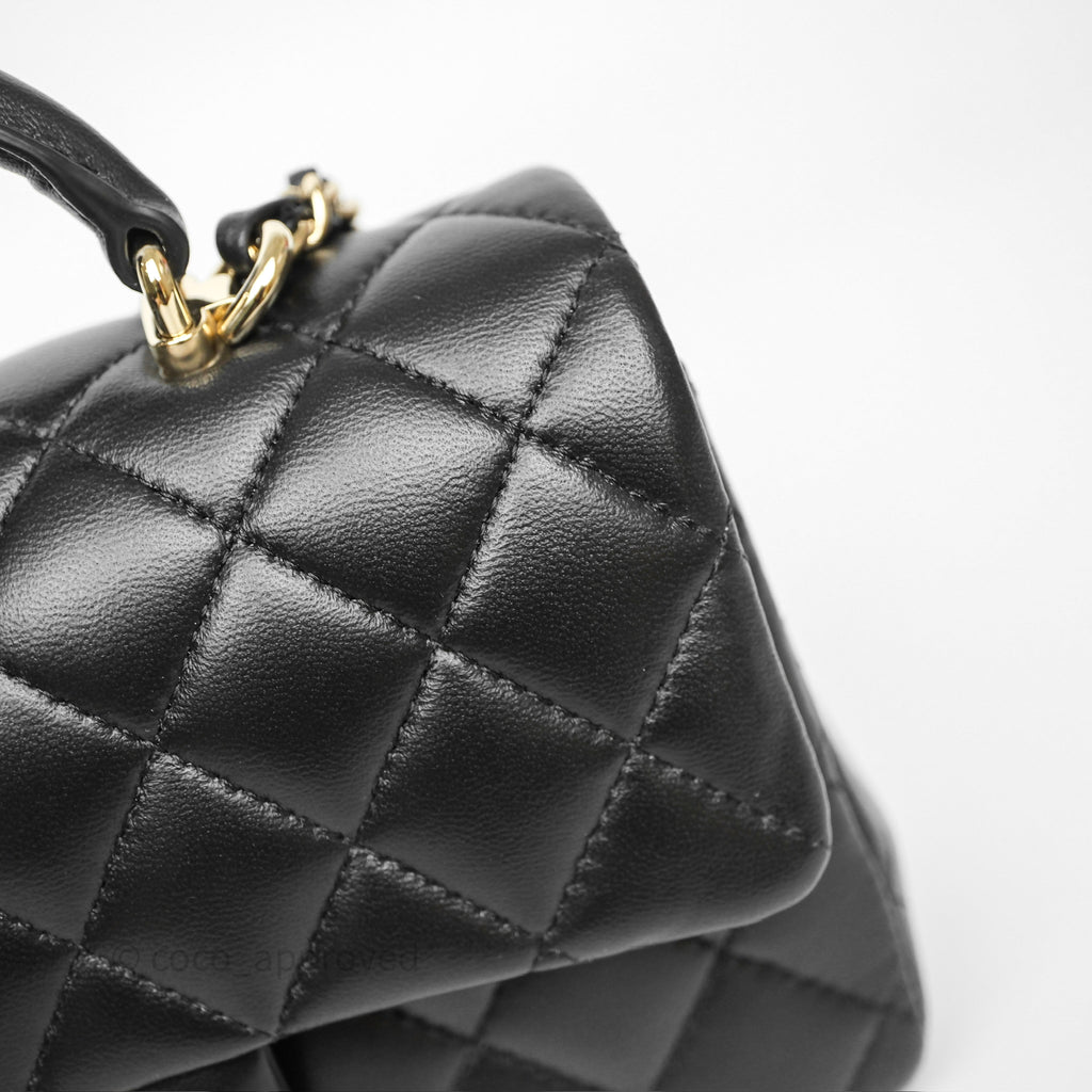 Chanel Top Handle Mini Rectangular Flap Black Lambskin Gold Hardware