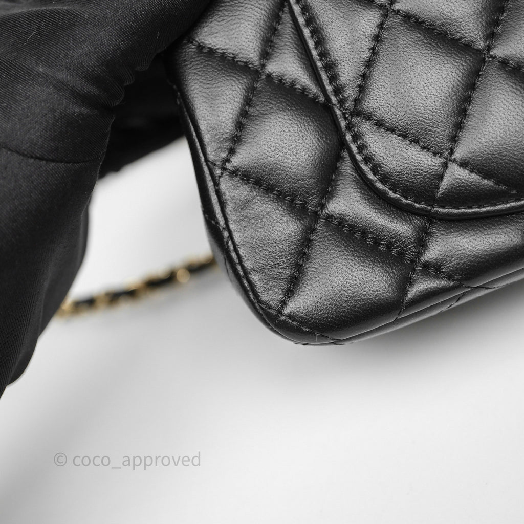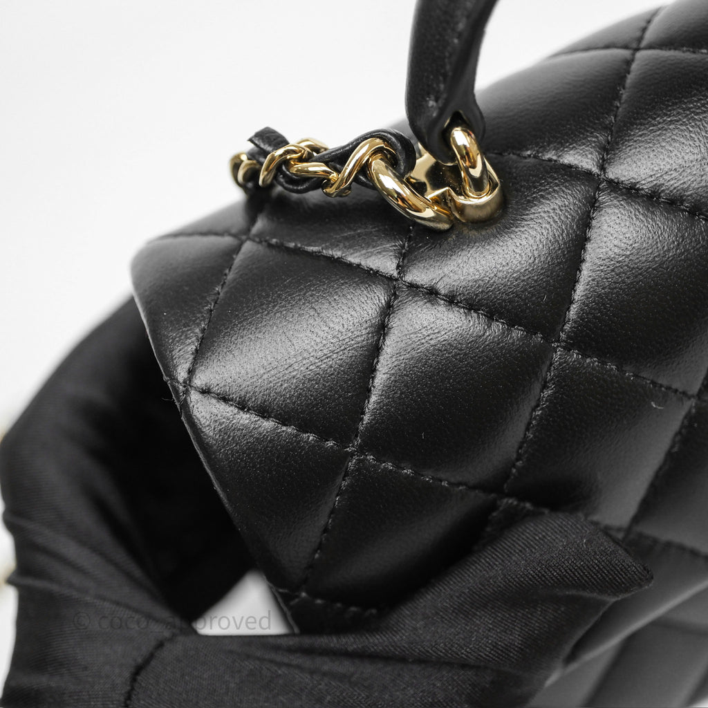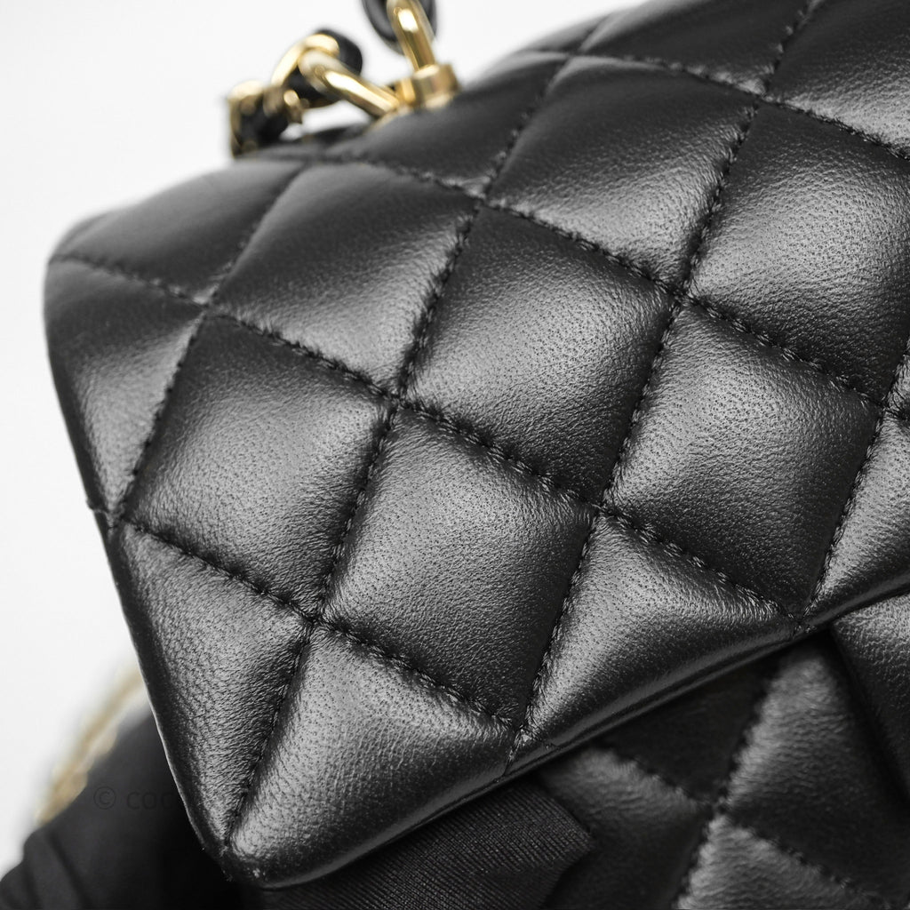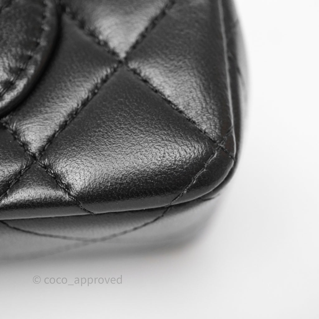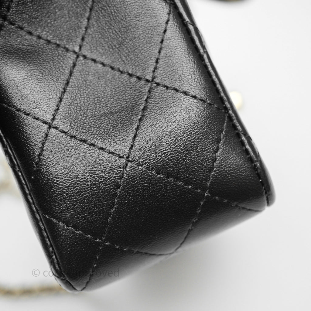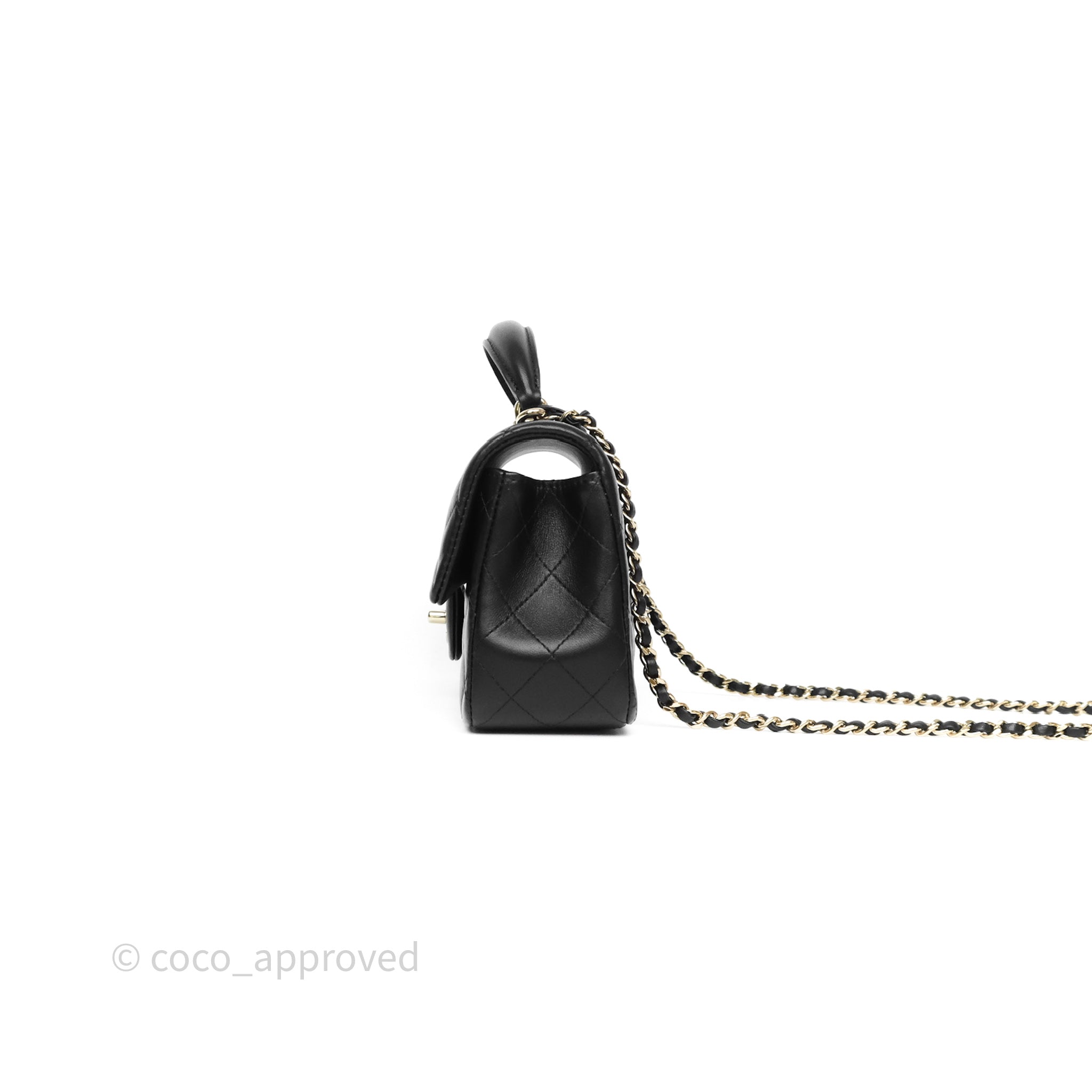 Chanel Top Handle Mini Rectangular Flap Black Lambskin Gold Hardware