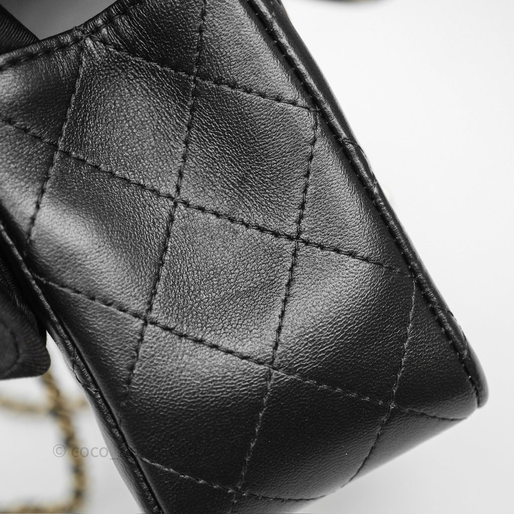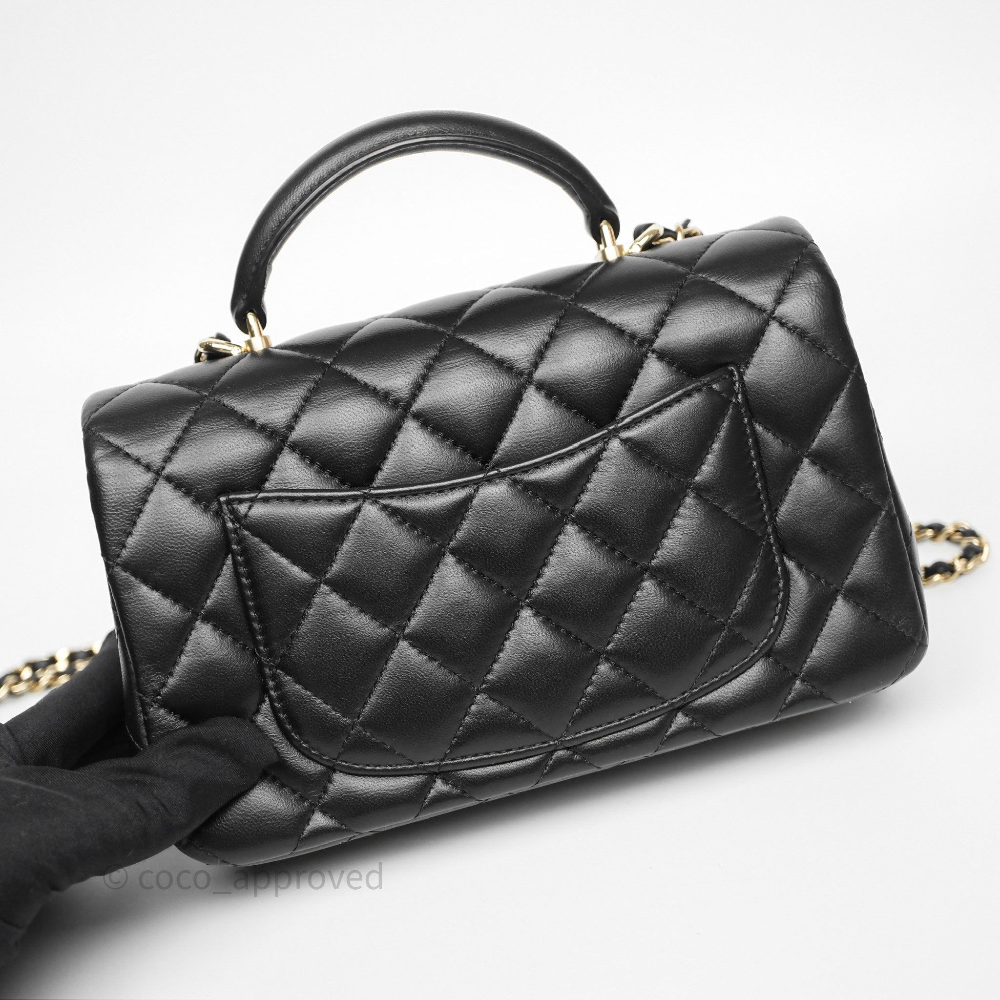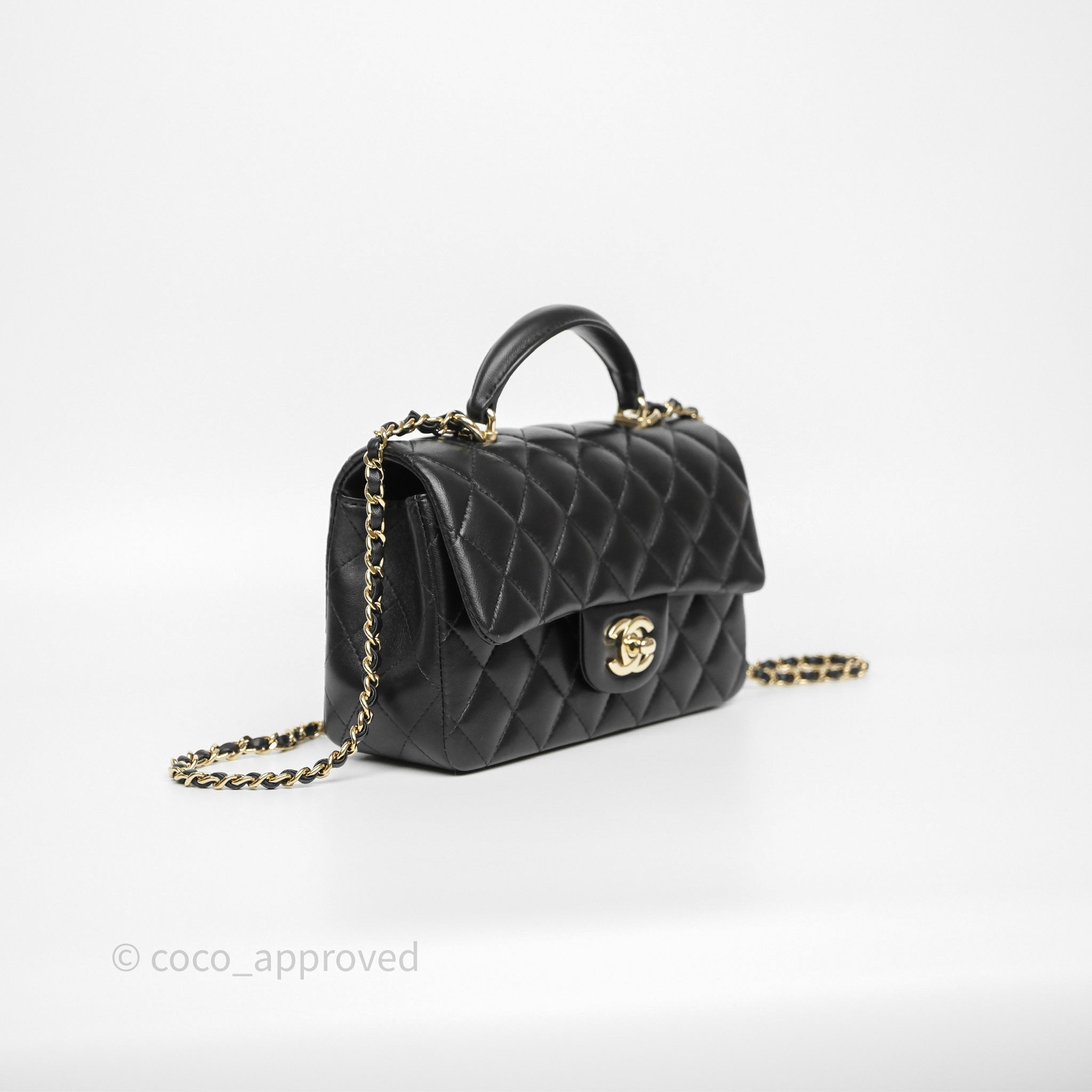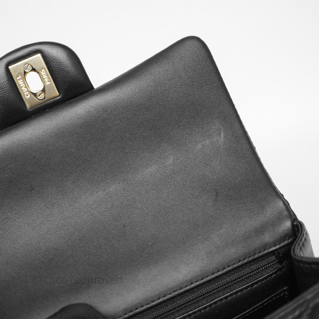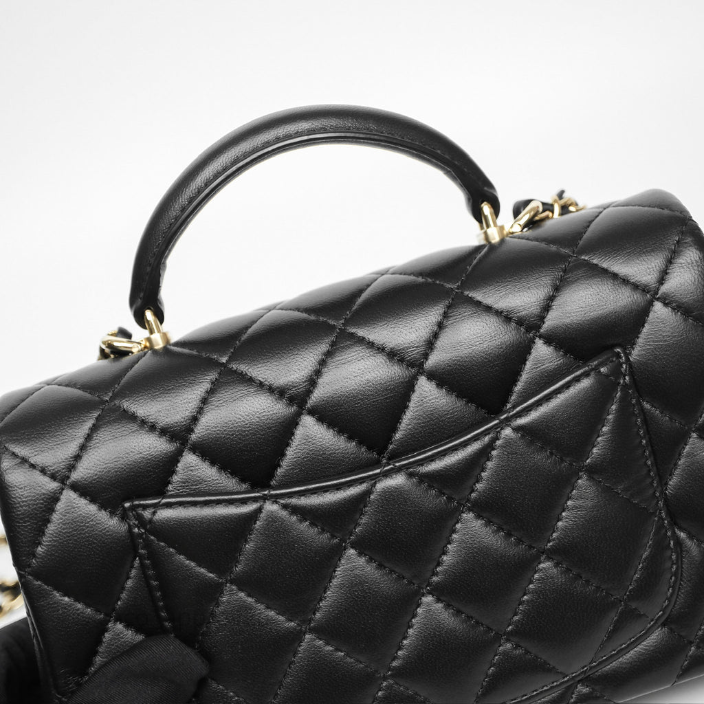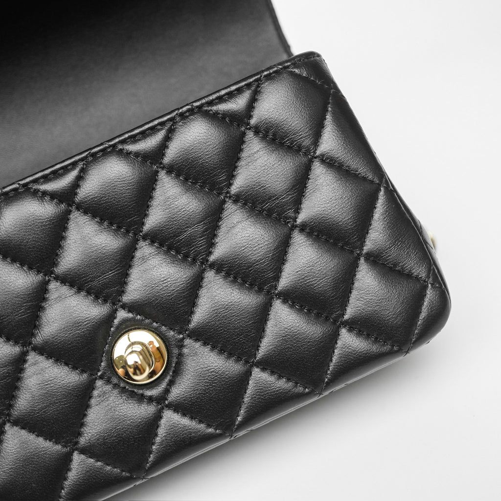 Chanel Top Handle Mini Rectangular Flap Black Lambskin Gold Hardware