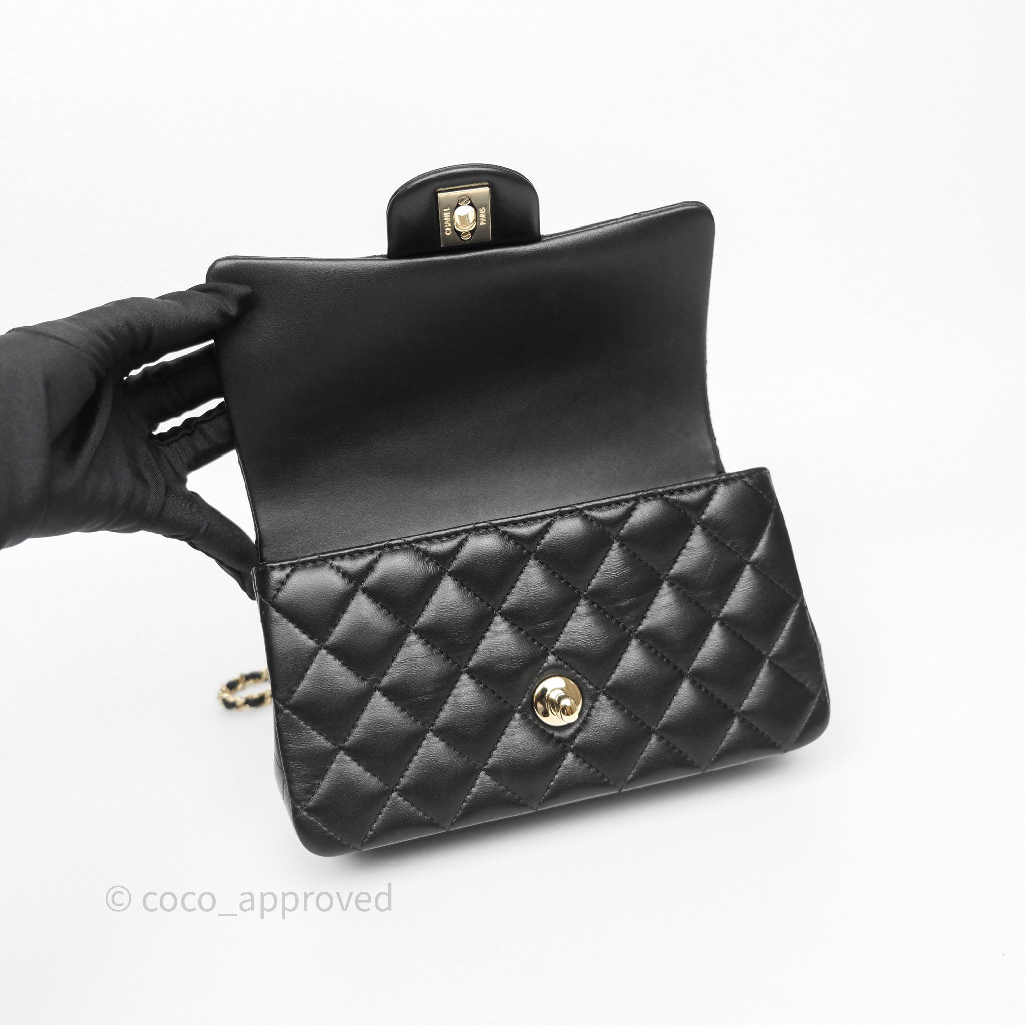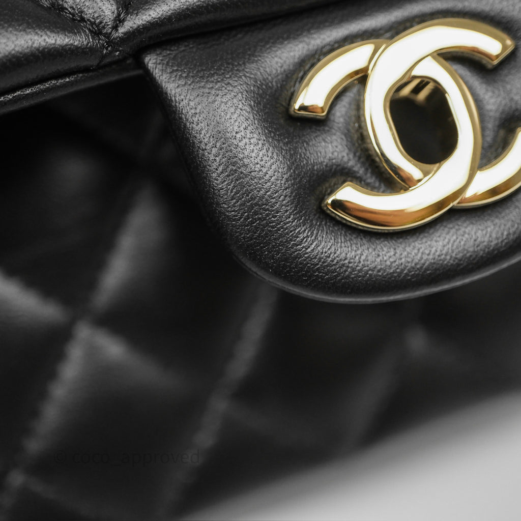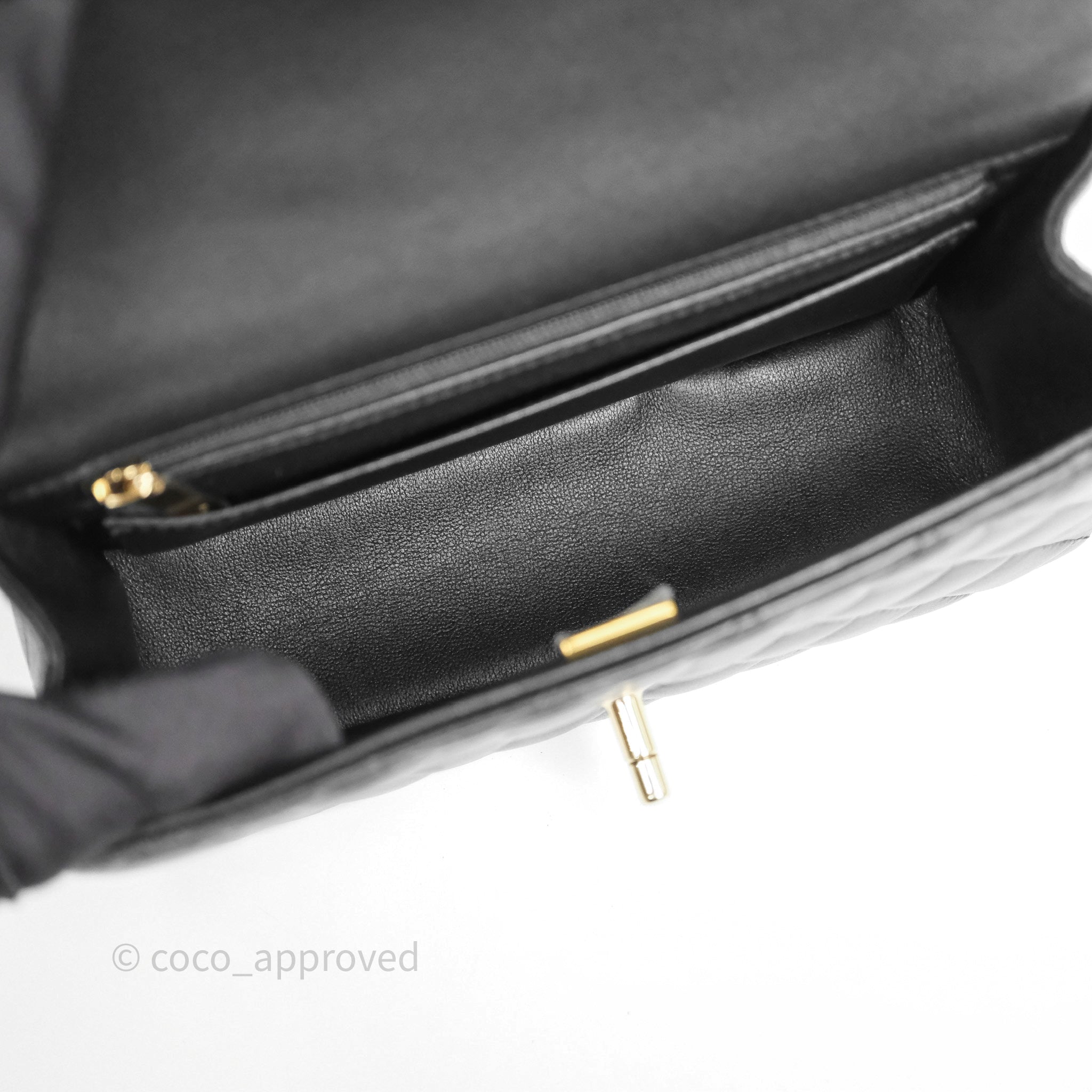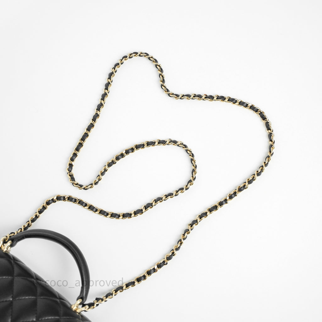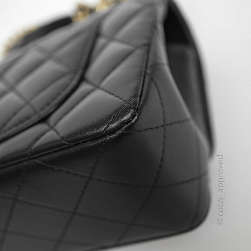 Chanel Top Handle Mini Rectangular Flap Black Lambskin Gold Hardware