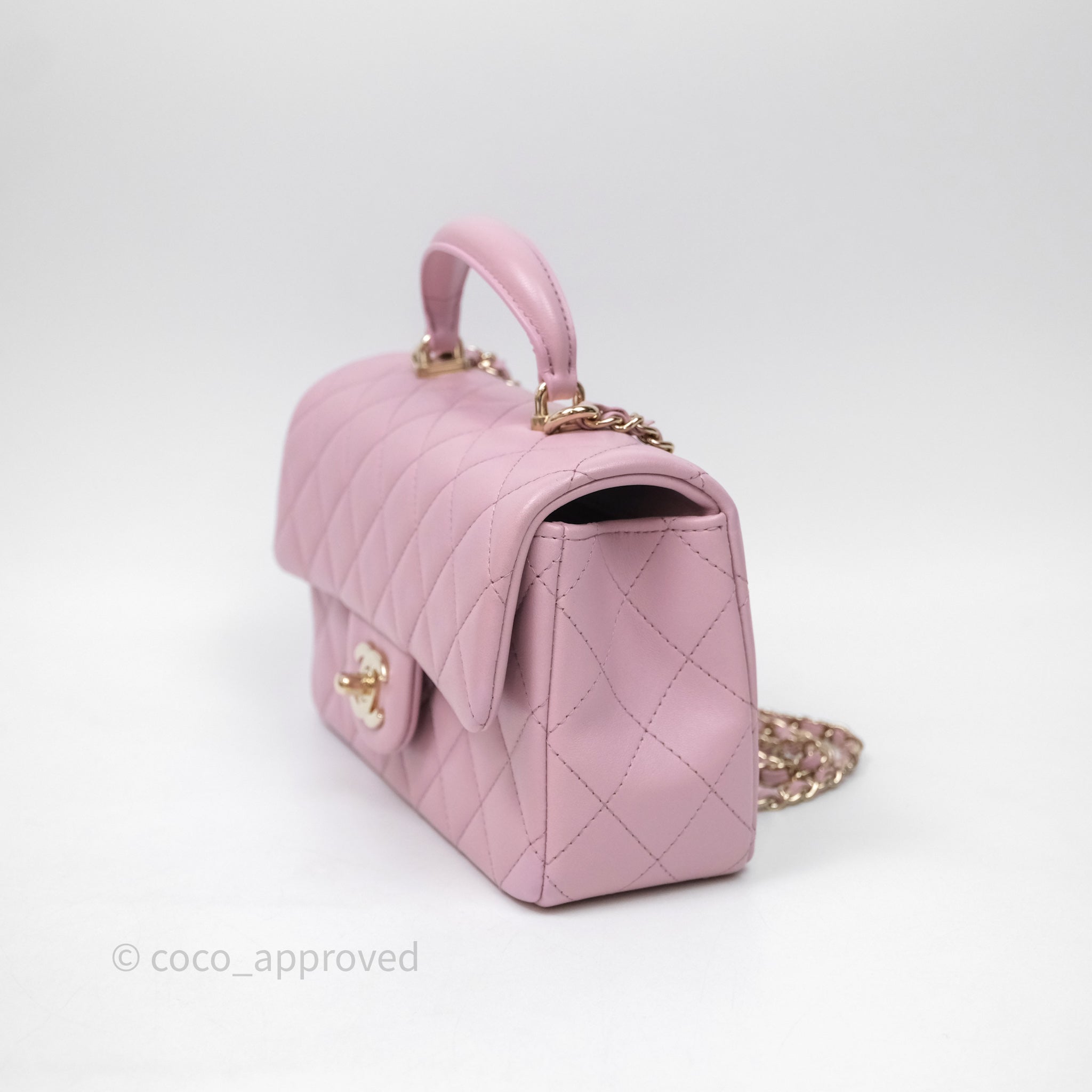 Chanel Top Handle Mini Rectangular Flap Lilac Pink Lambskin Gold Hardware