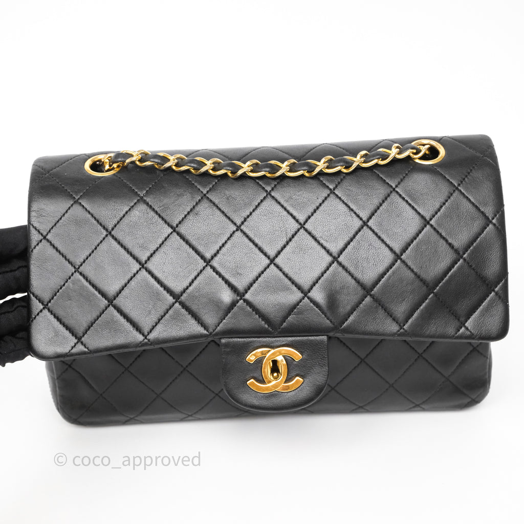 Chanel Vintage Medium Classic Flap Black Lambskin 24K Gold Hardware
