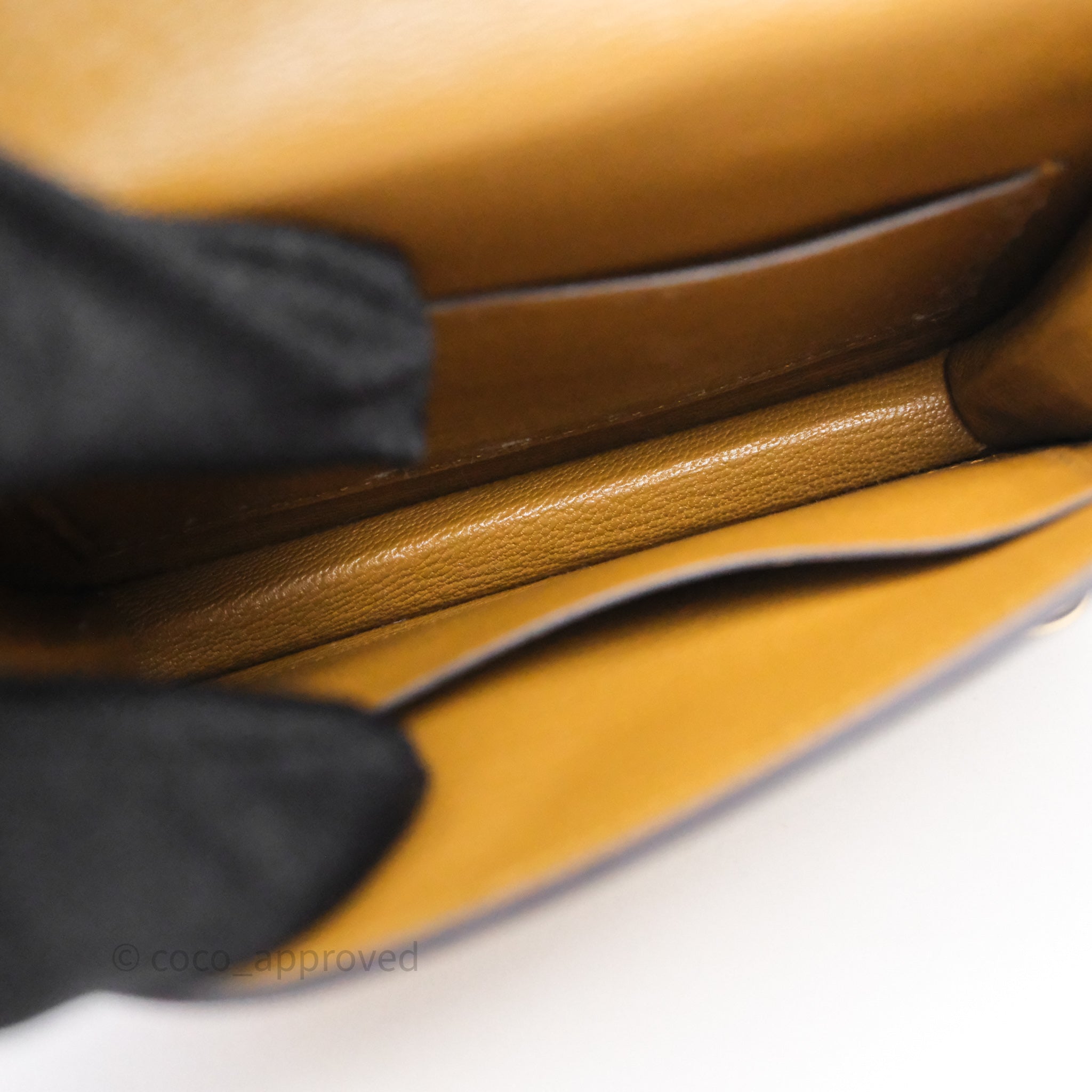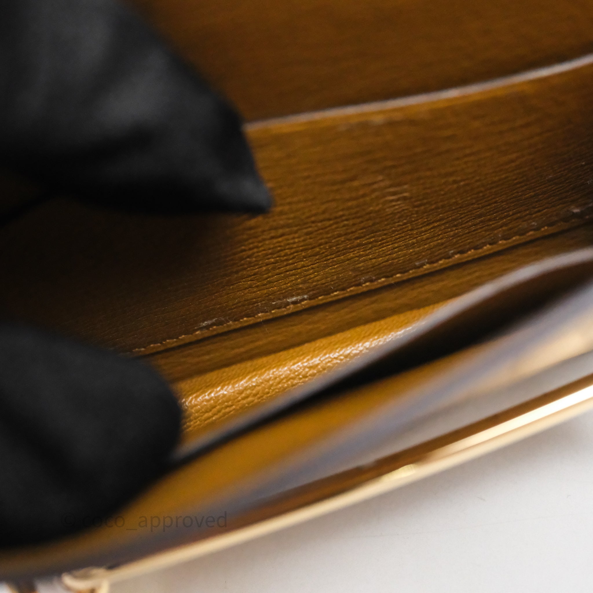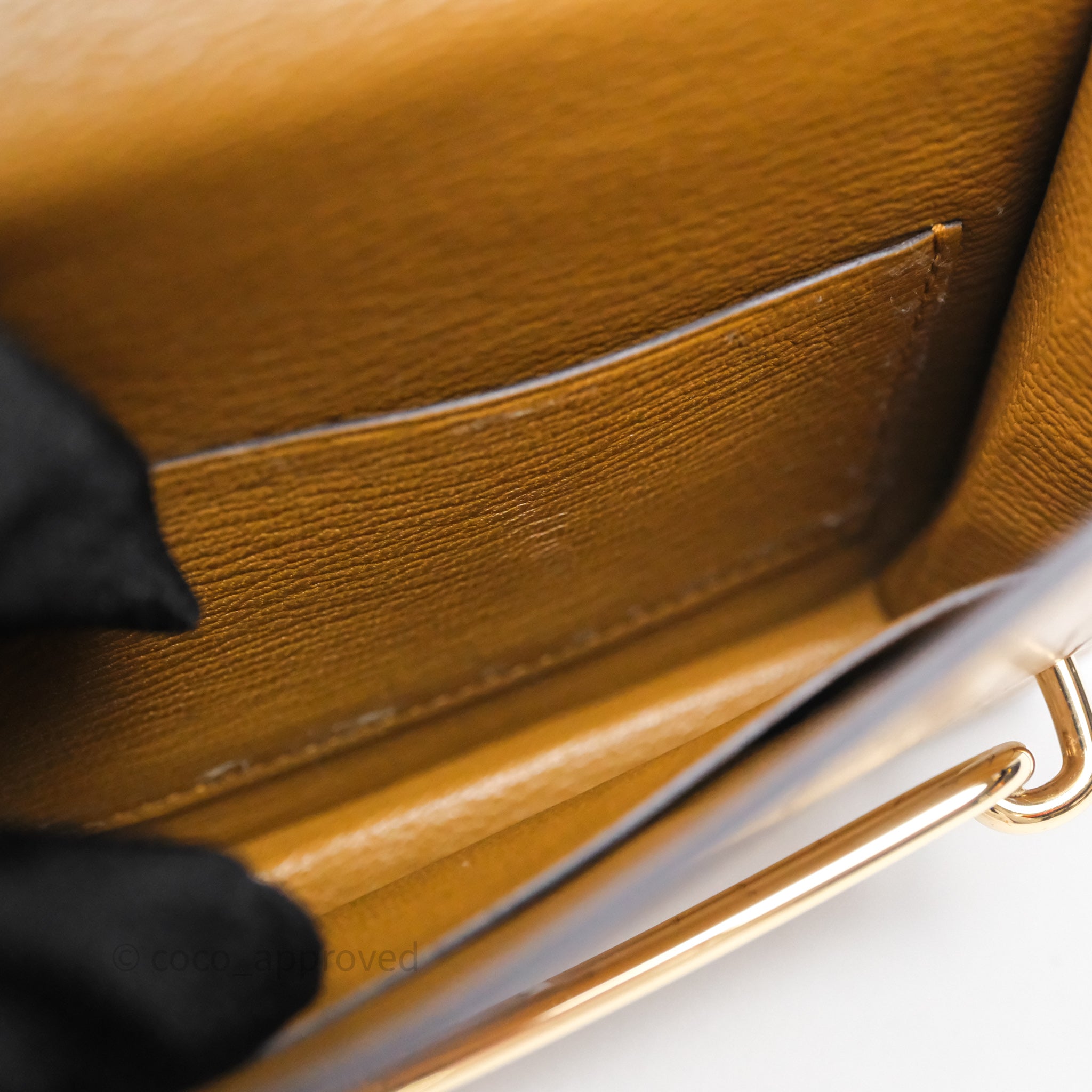 9.4/10 excellent to mint condition. Sign of use on interior. Scratches and wear under flap. Scratches on hardware. Minor rubbing on pouch.
