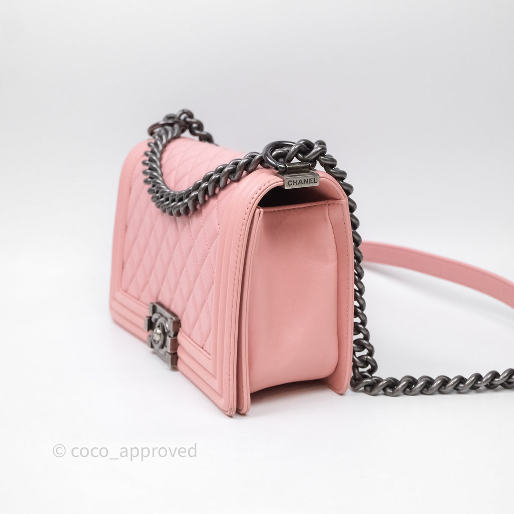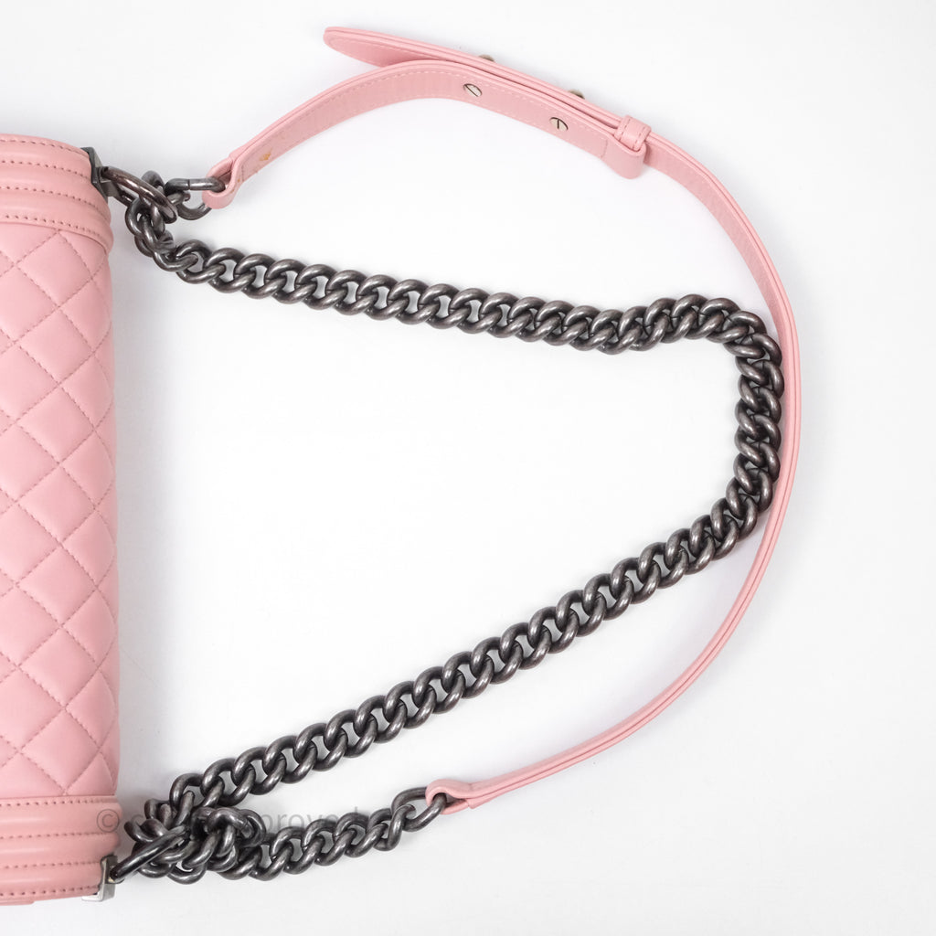 Chanel Quilted Medium Boy Pink Lambskin Ruthenium Hardware